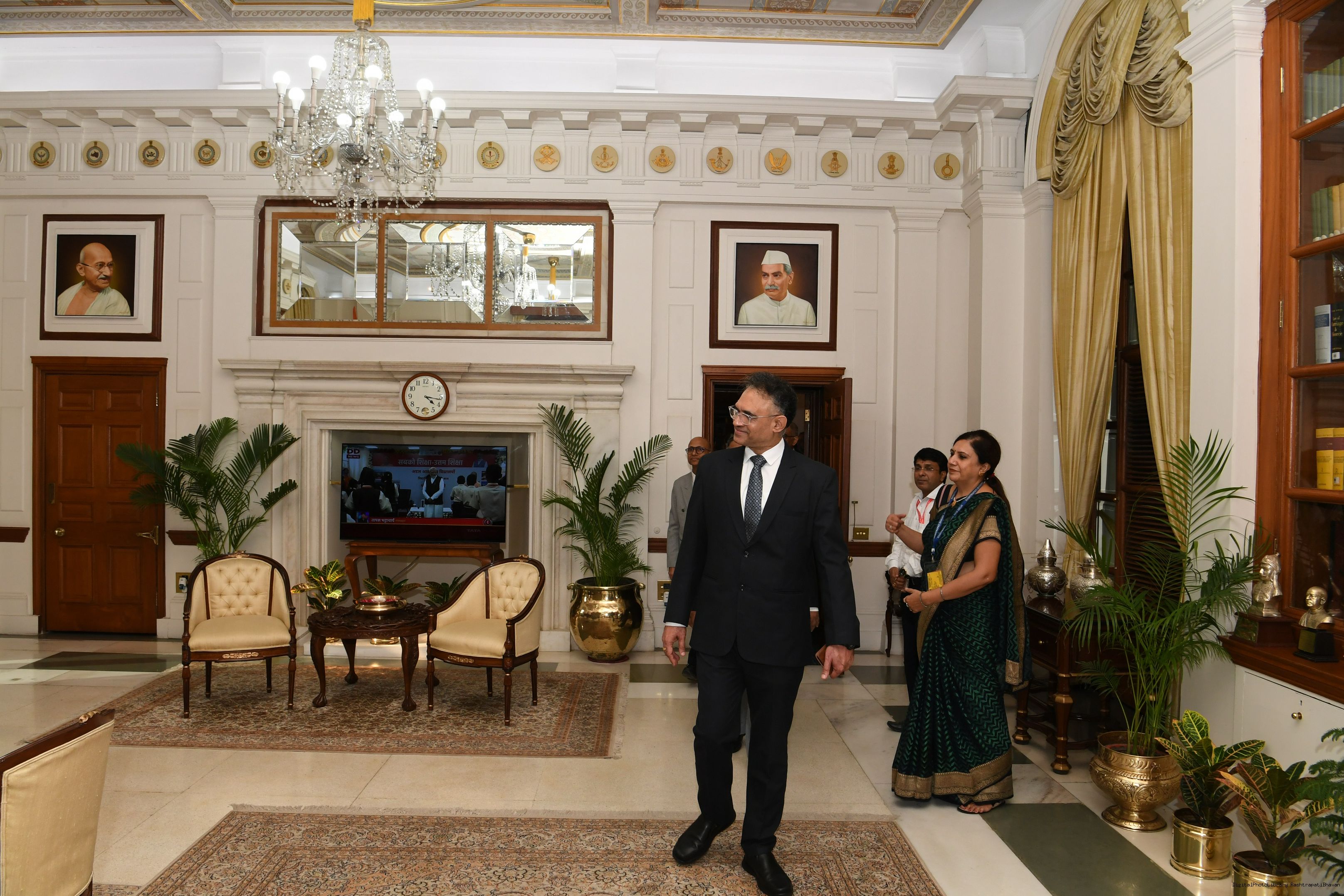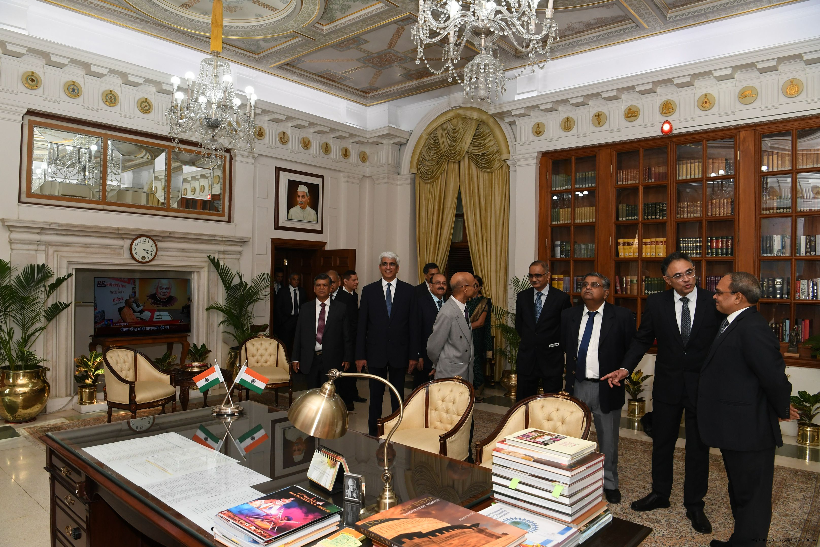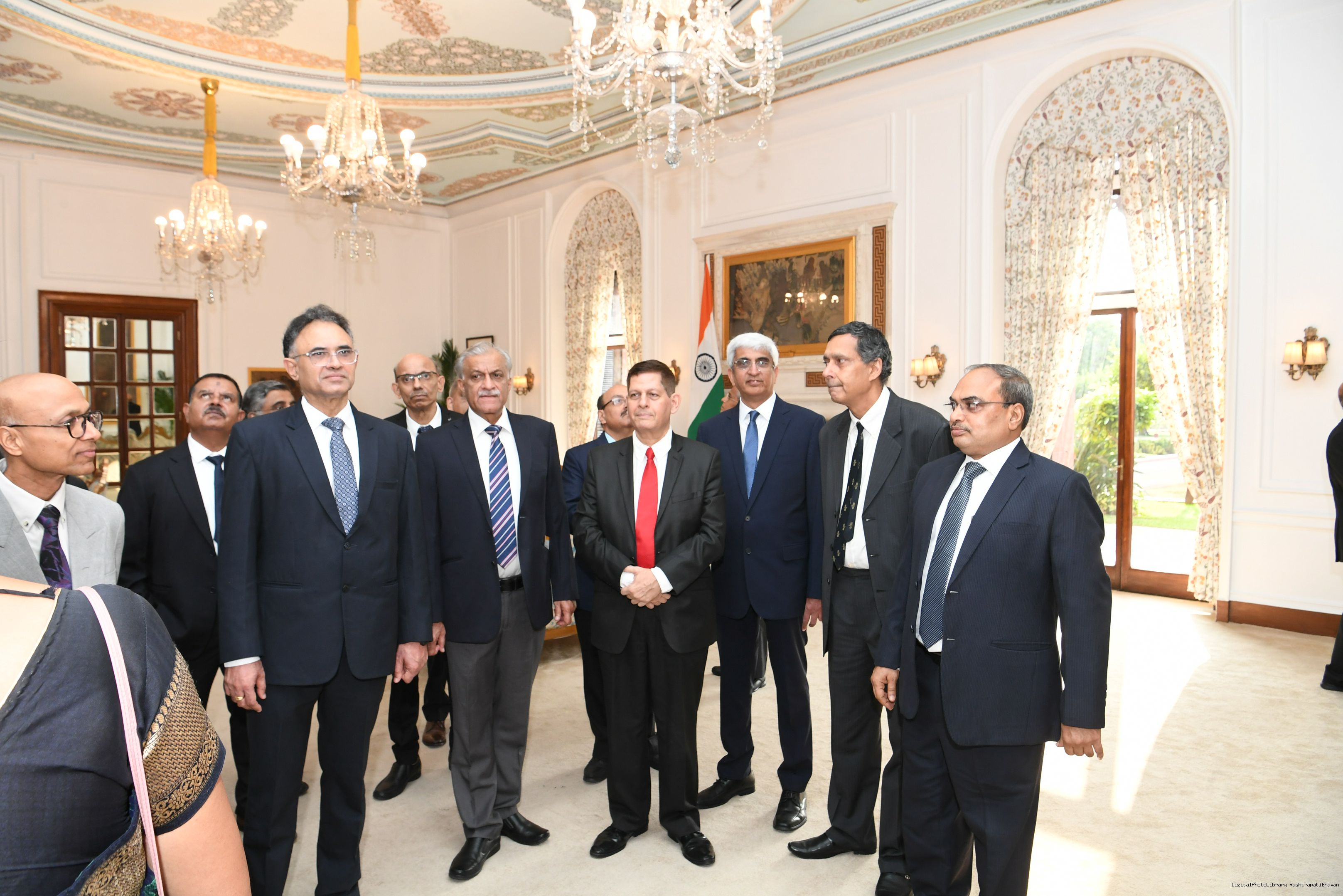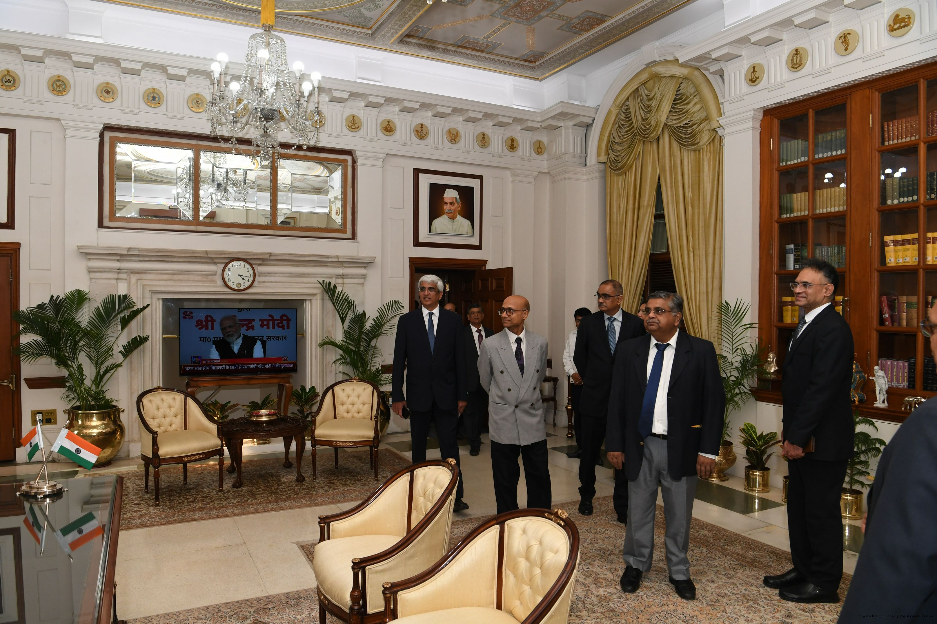 | Caption: | The President mets and posing a group photograph with Shri B.G. Mallya GM Integral Coach Factory Perambur and others on 23-9-2023 |