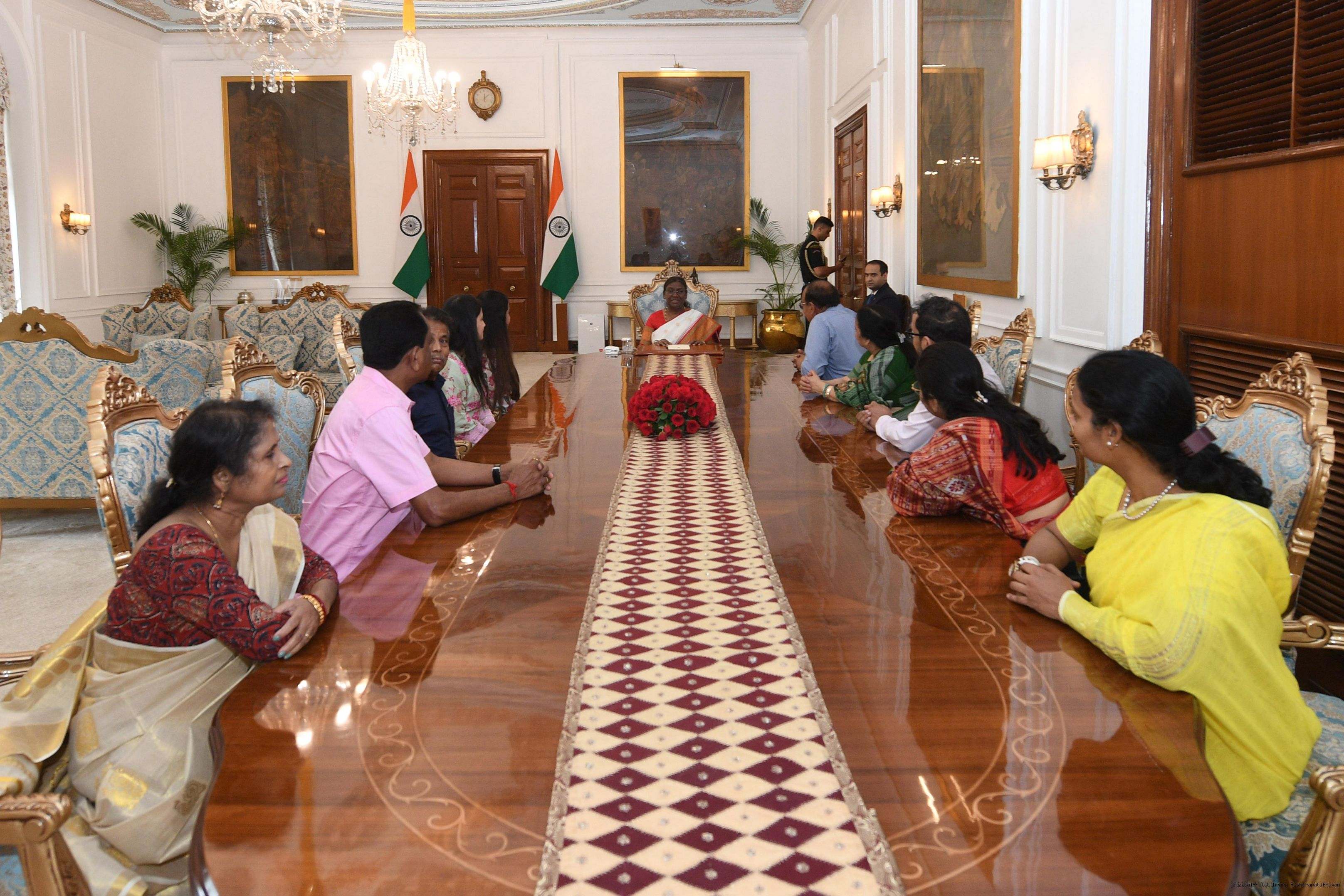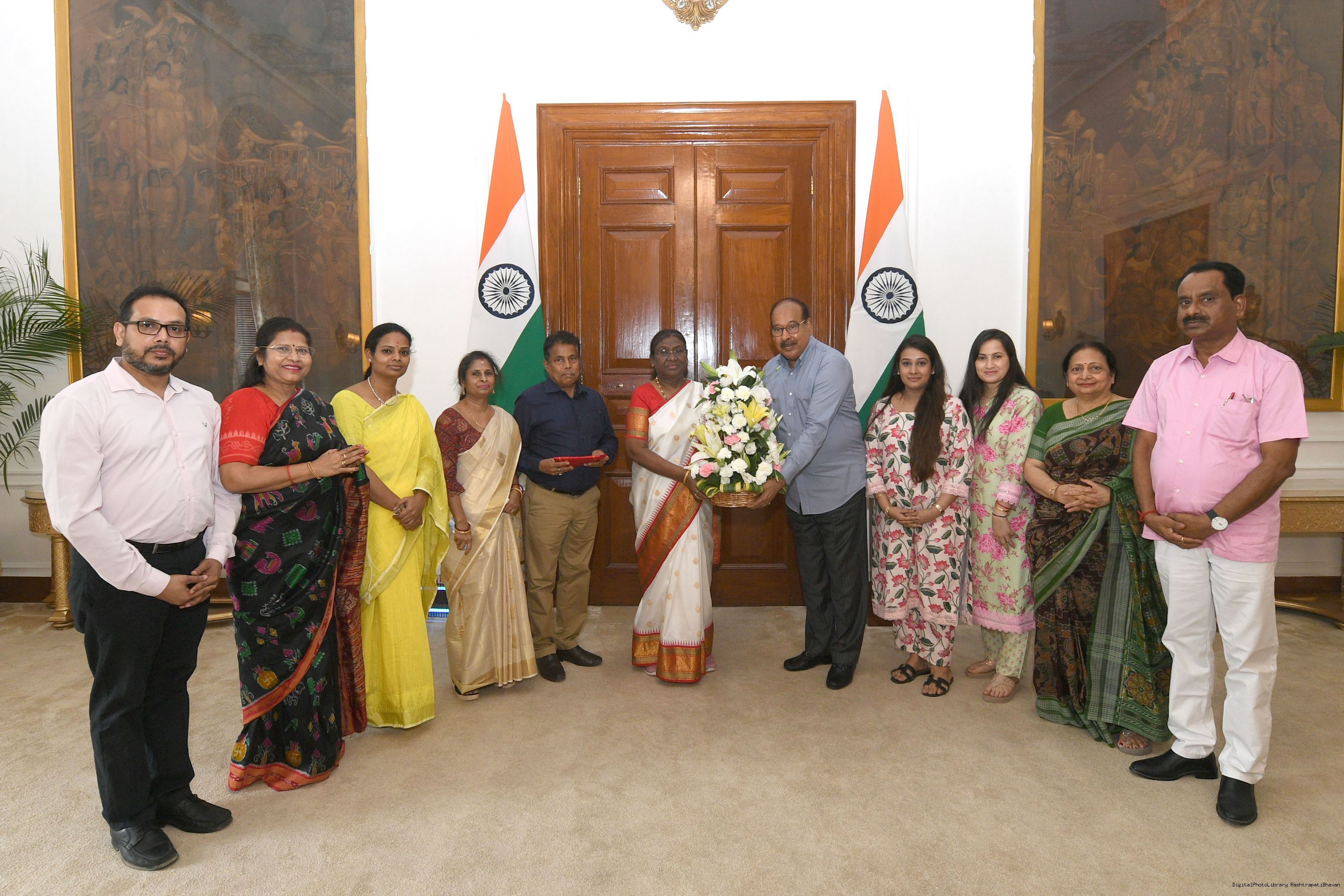 | Caption: | Shri Ravinder Nath Pradhan, Secretary along with others meeting with the president of India Smt Droupadi Murmu at Rashatrapati Bhawan on June 05, 2024. |