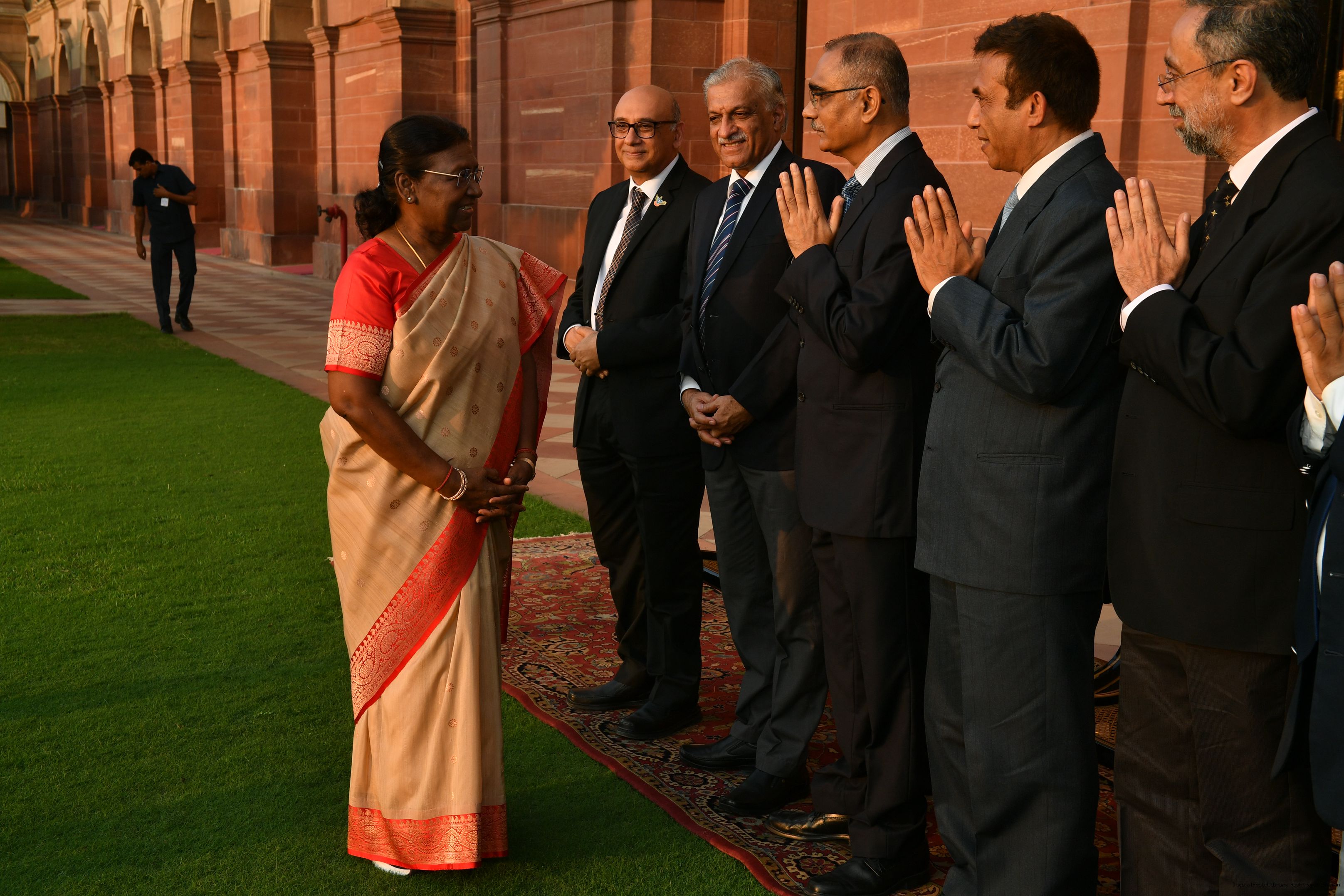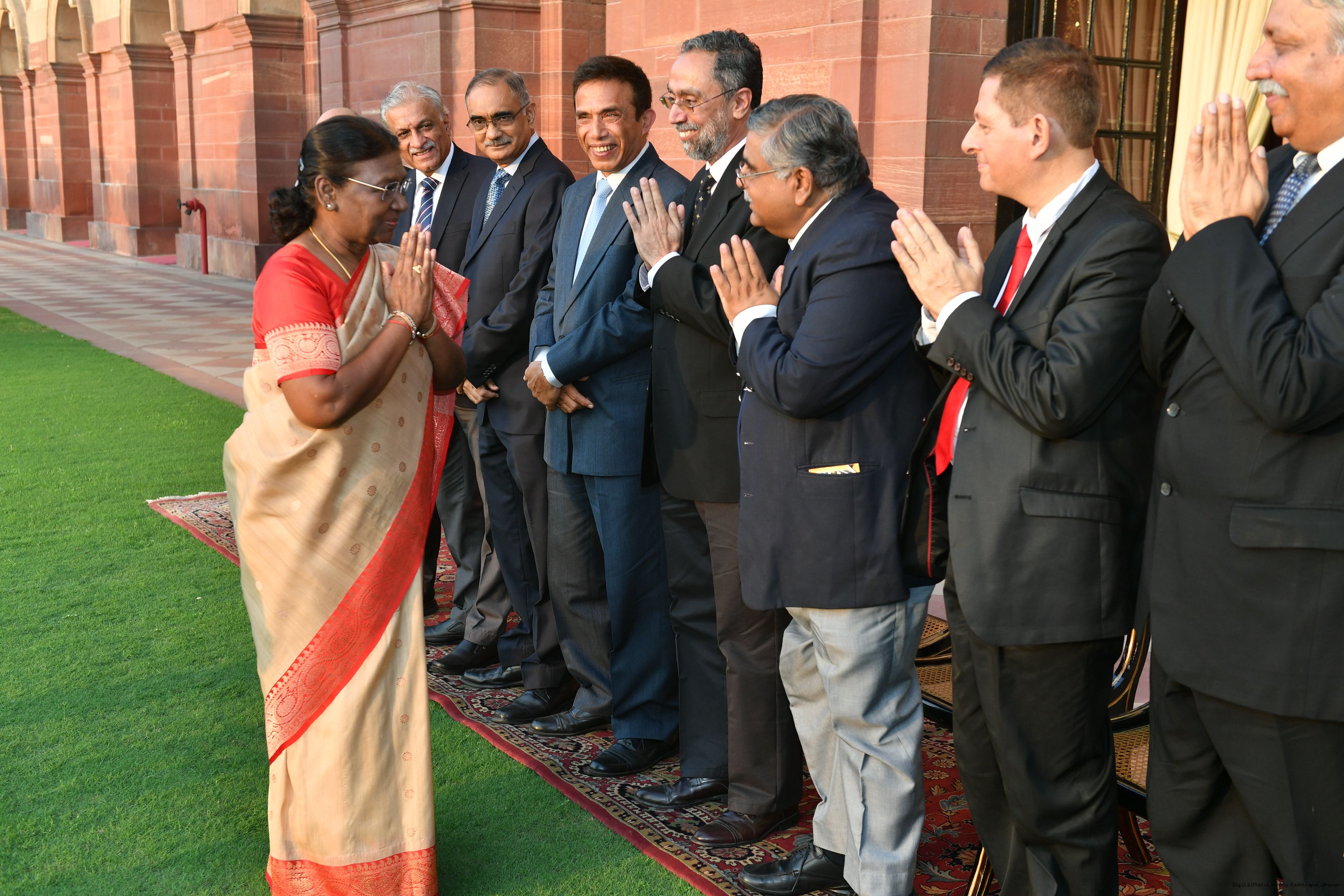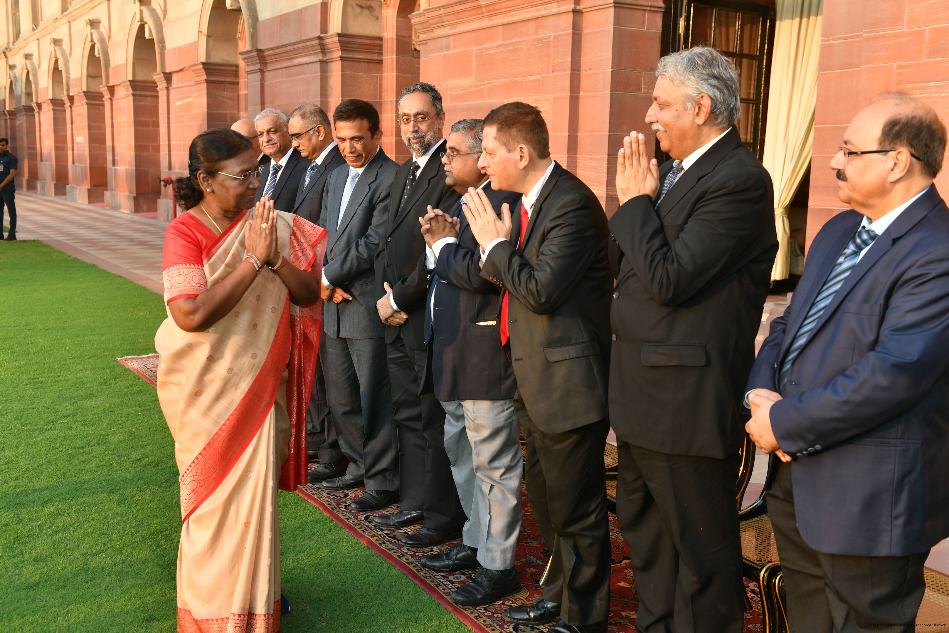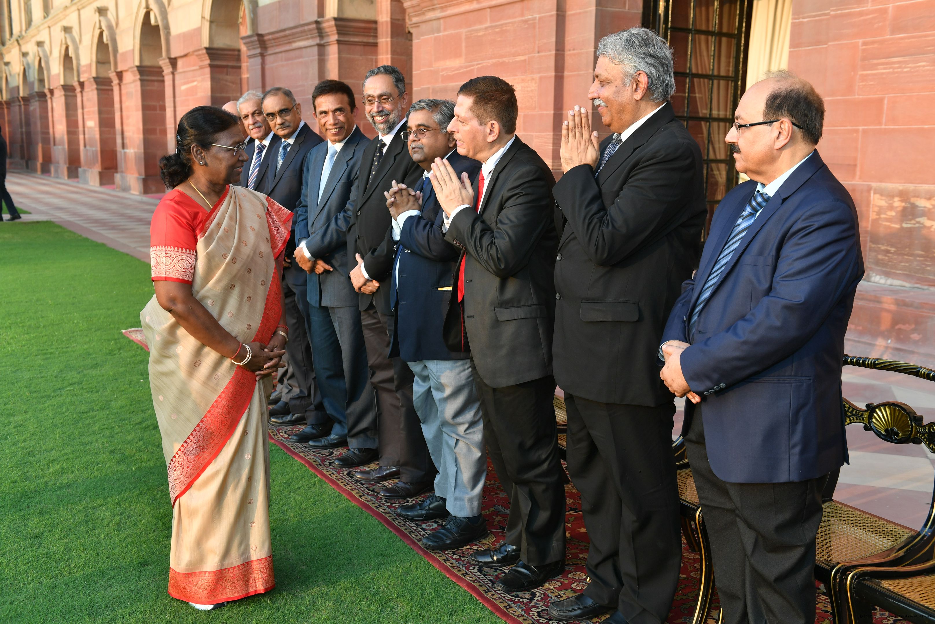 | Caption: | The President mets and posing a group photograph with Shri B.G. Mallya GM Integral Coach Factory Perambur and others on 23-9-2023 |