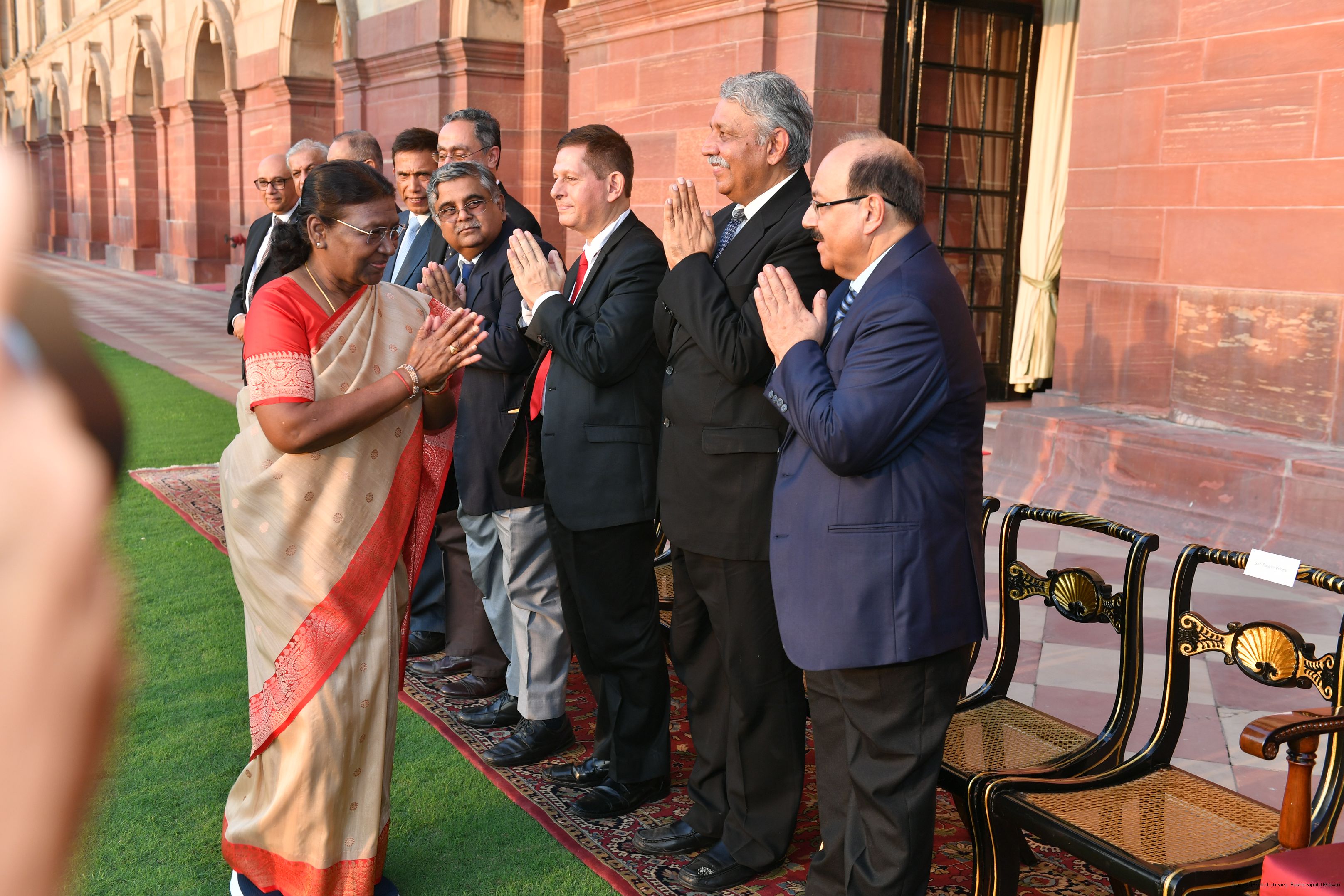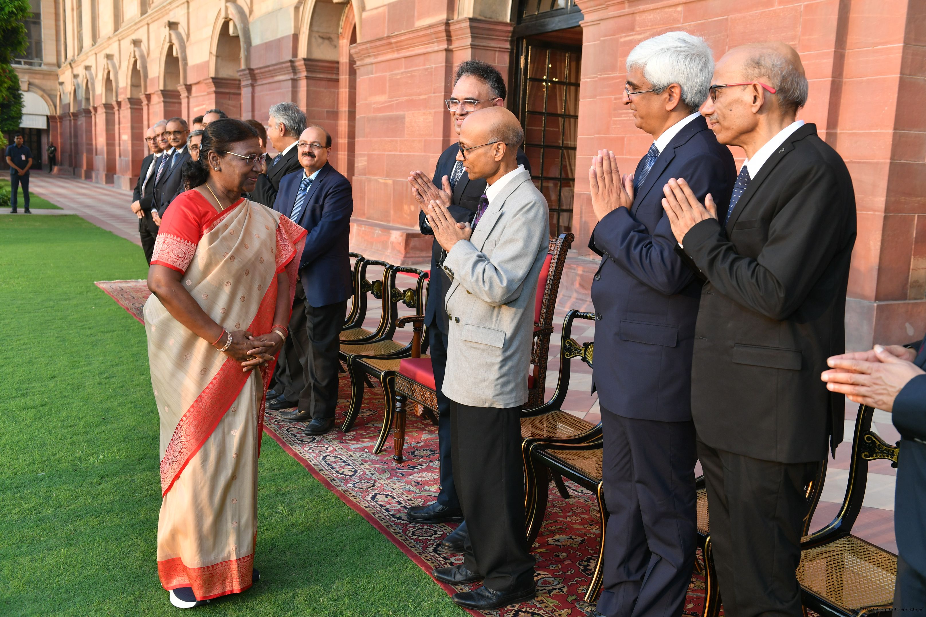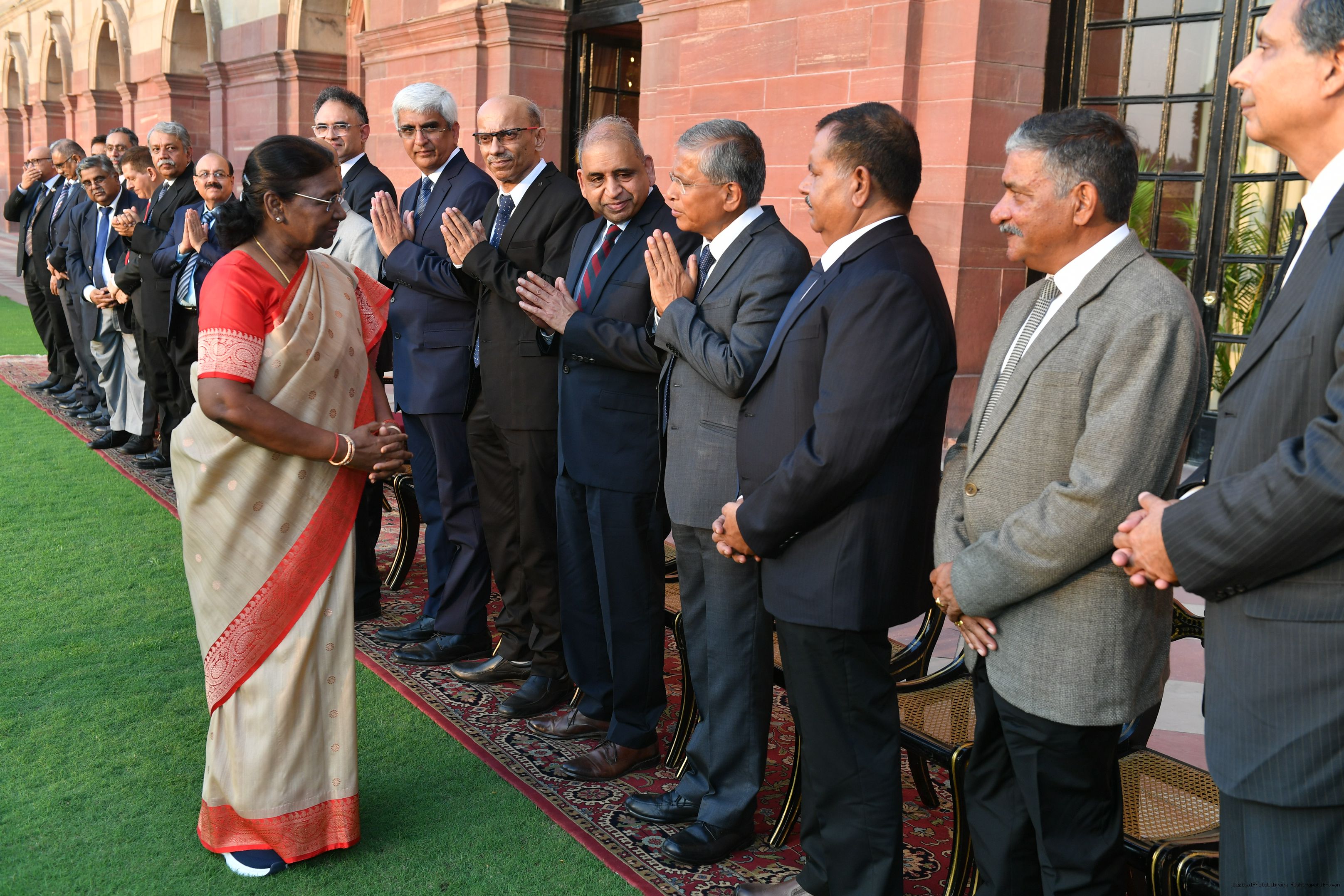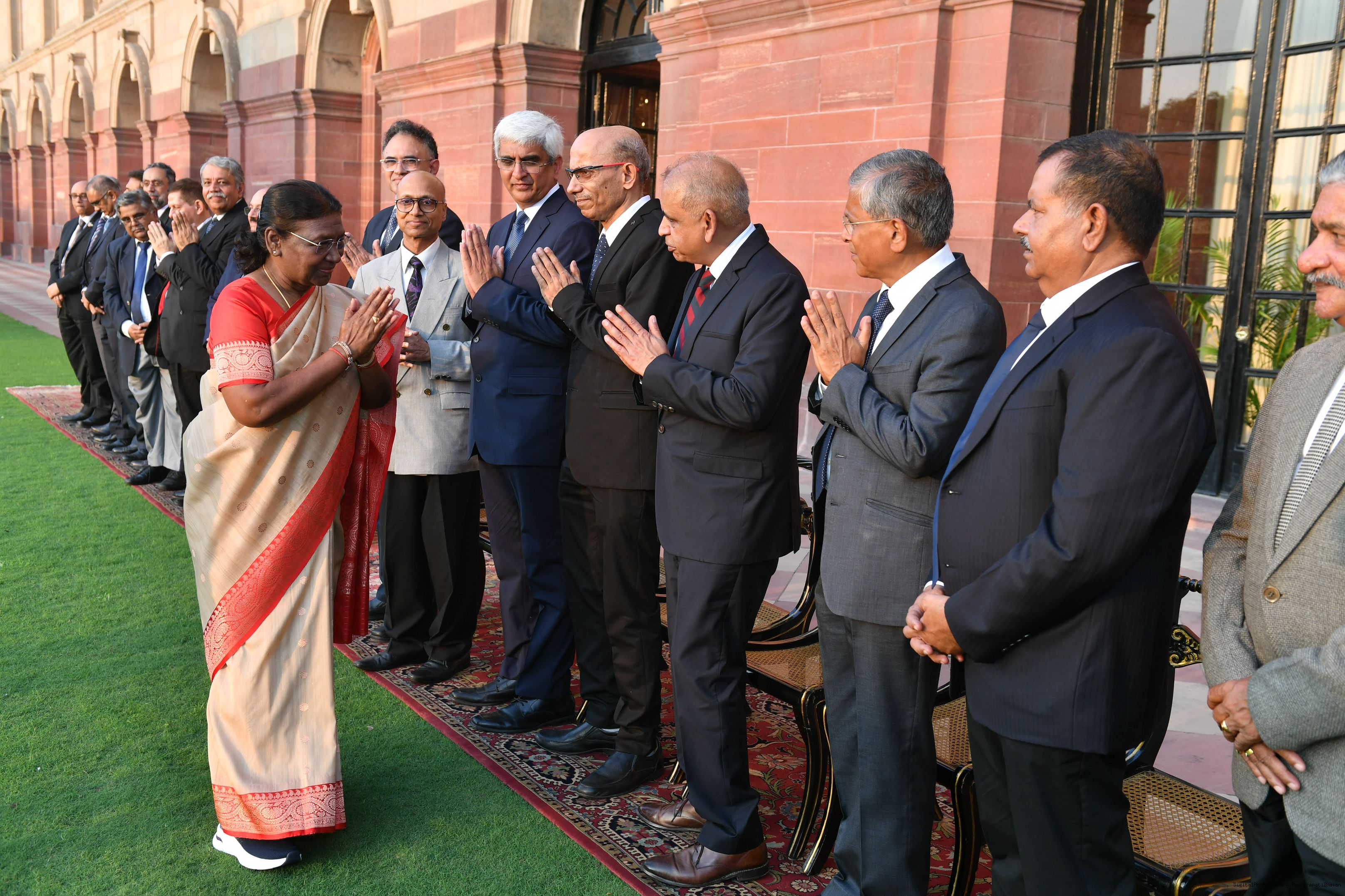 | Caption: | The President mets and posing a group photograph with Shri B.G. Mallya GM Integral Coach Factory Perambur and others on 23-9-2023 |