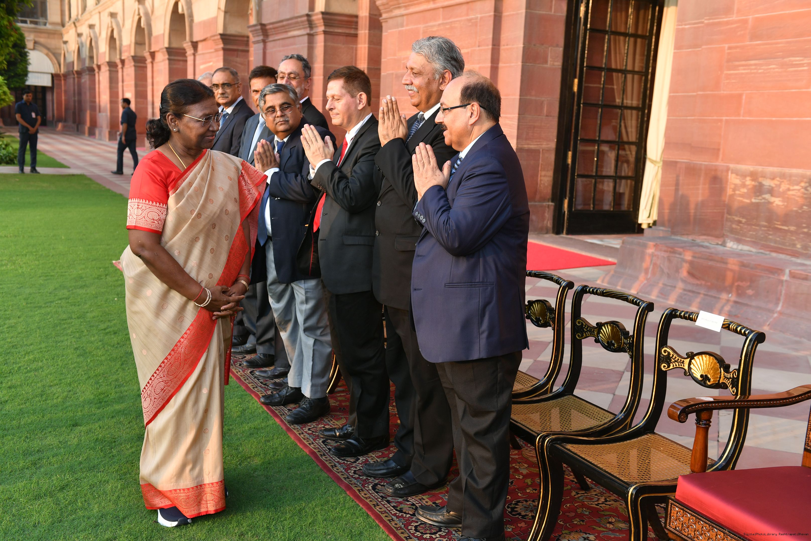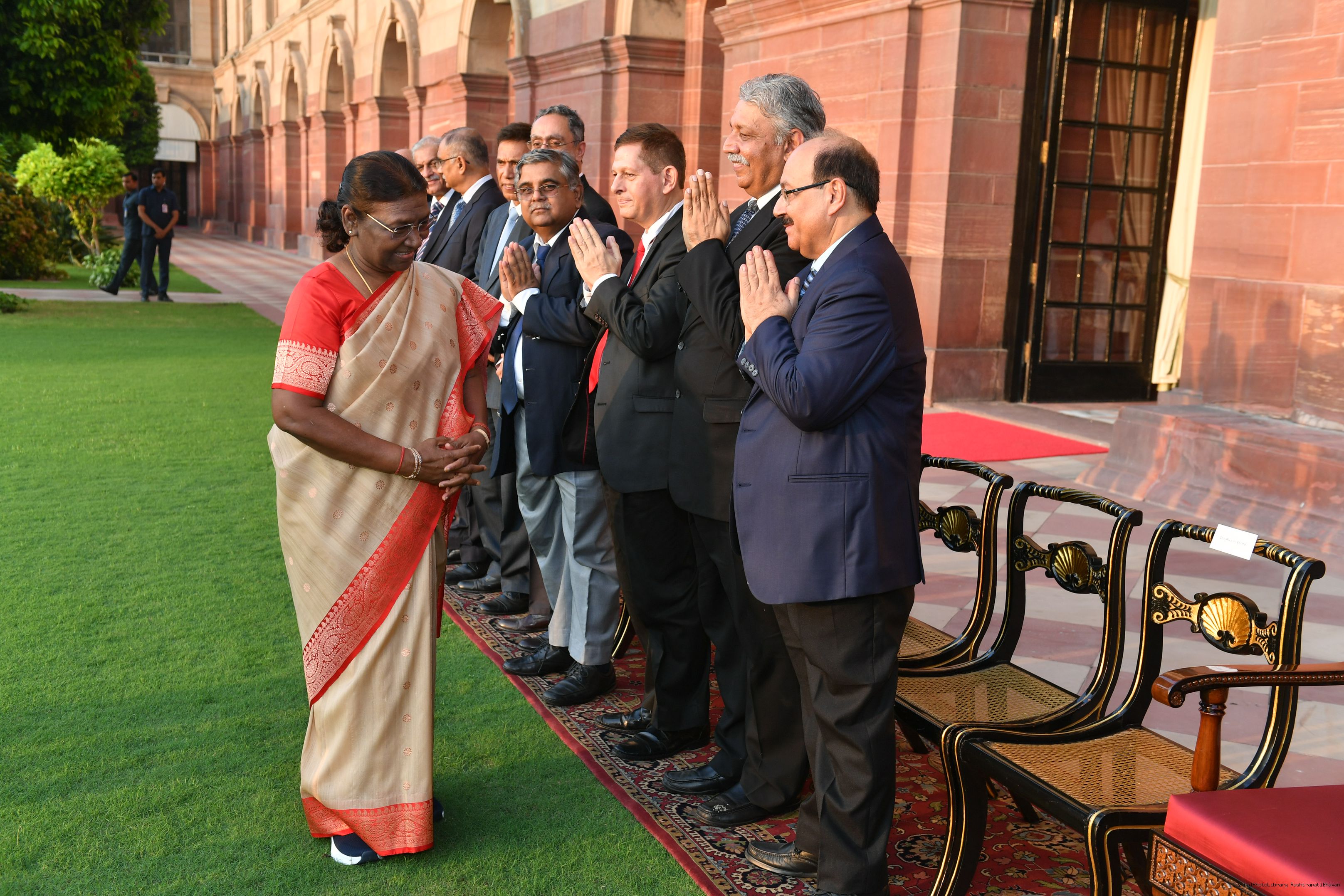 | Category: | The President mets and posing A Group photograph with Shri B.G. Mallya GM Integral Coach Factory Perambur and others on 23-9-2023 |