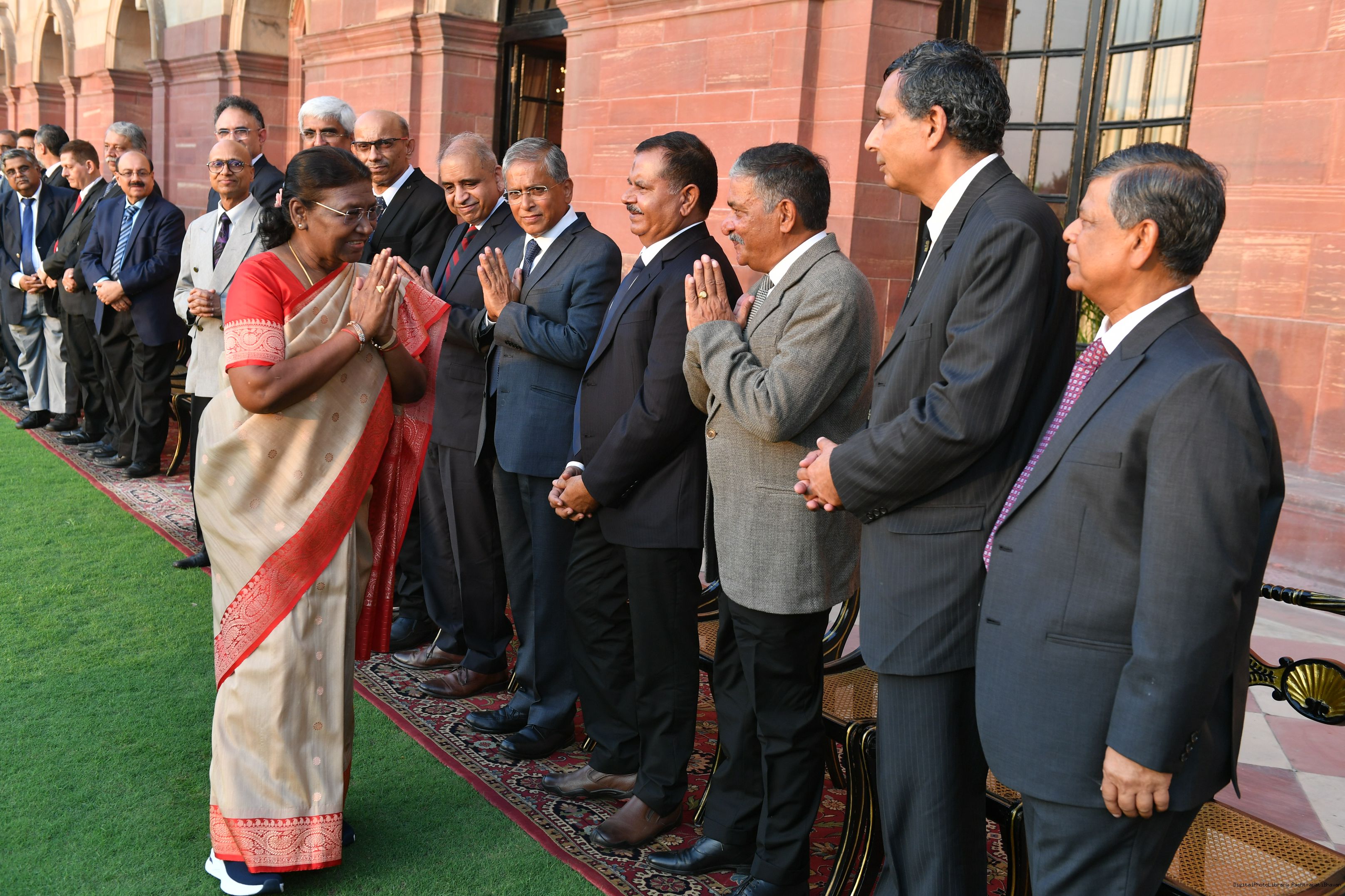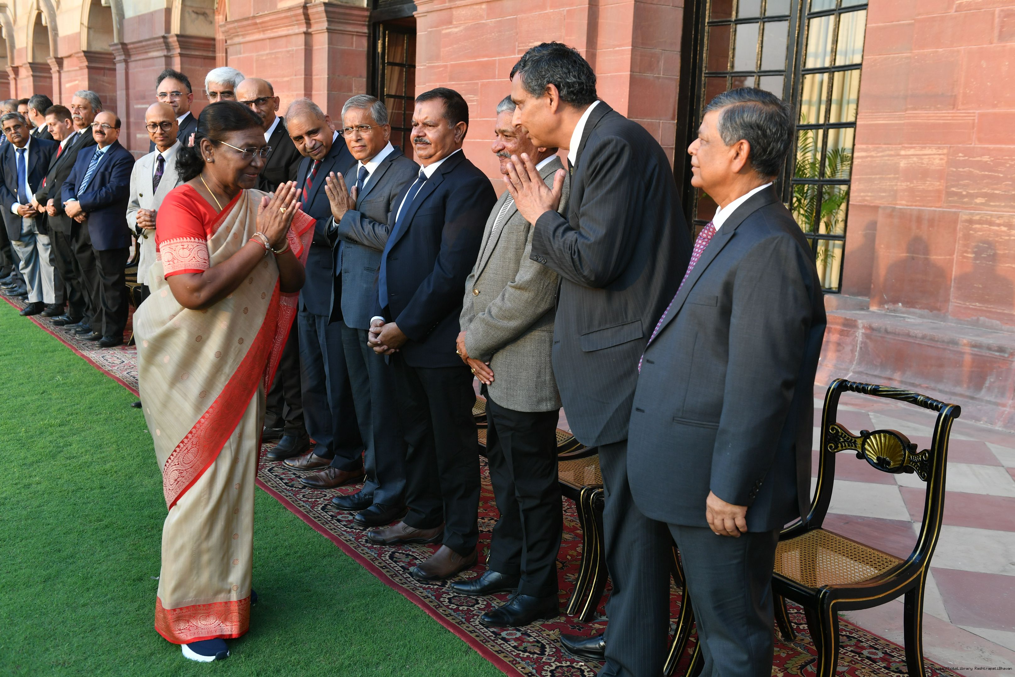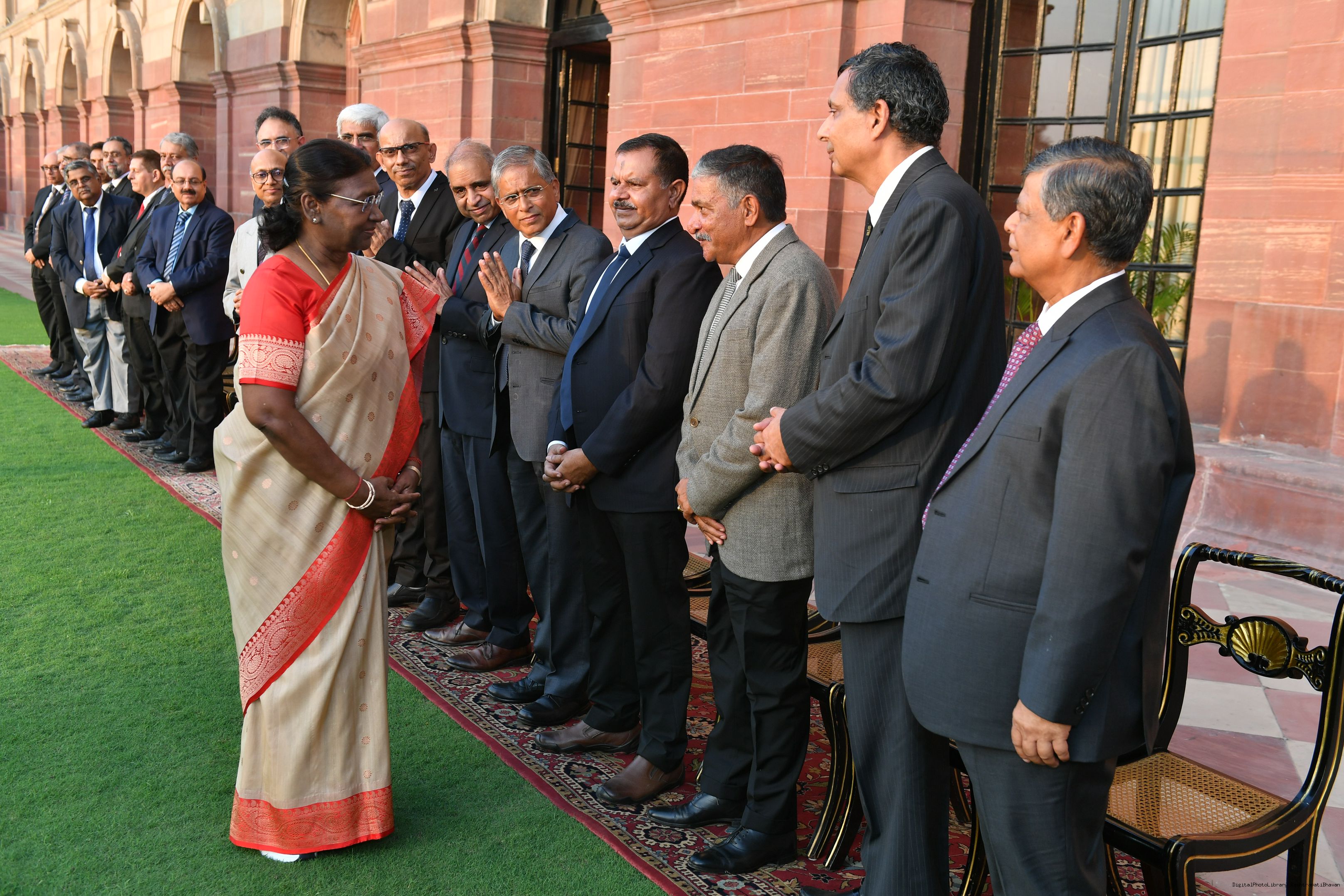 | Caption: | The President mets and posing a group photograph with Shri B.G. Mallya GM Integral Coach Factory Perambur and others on 23-9-2023 |