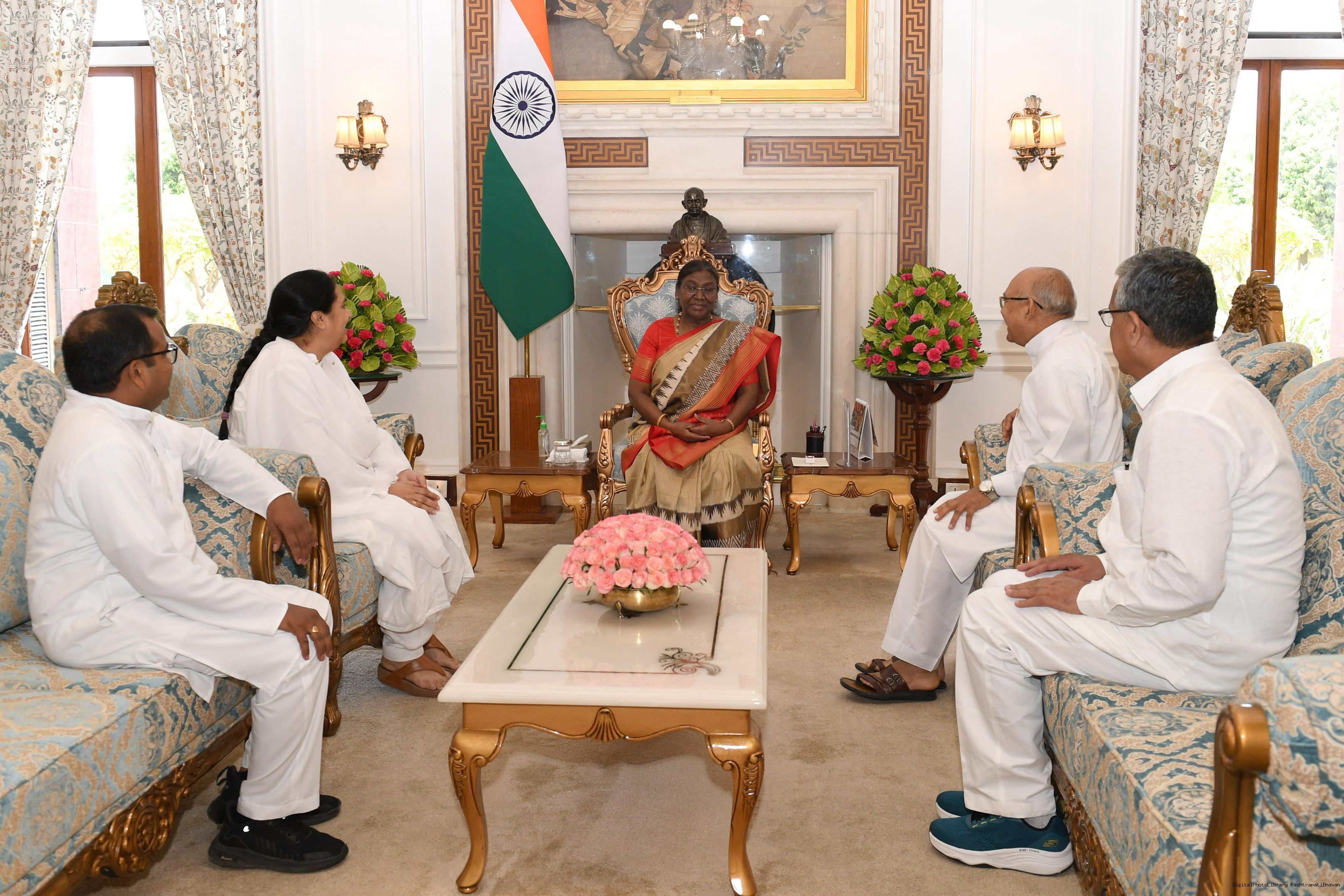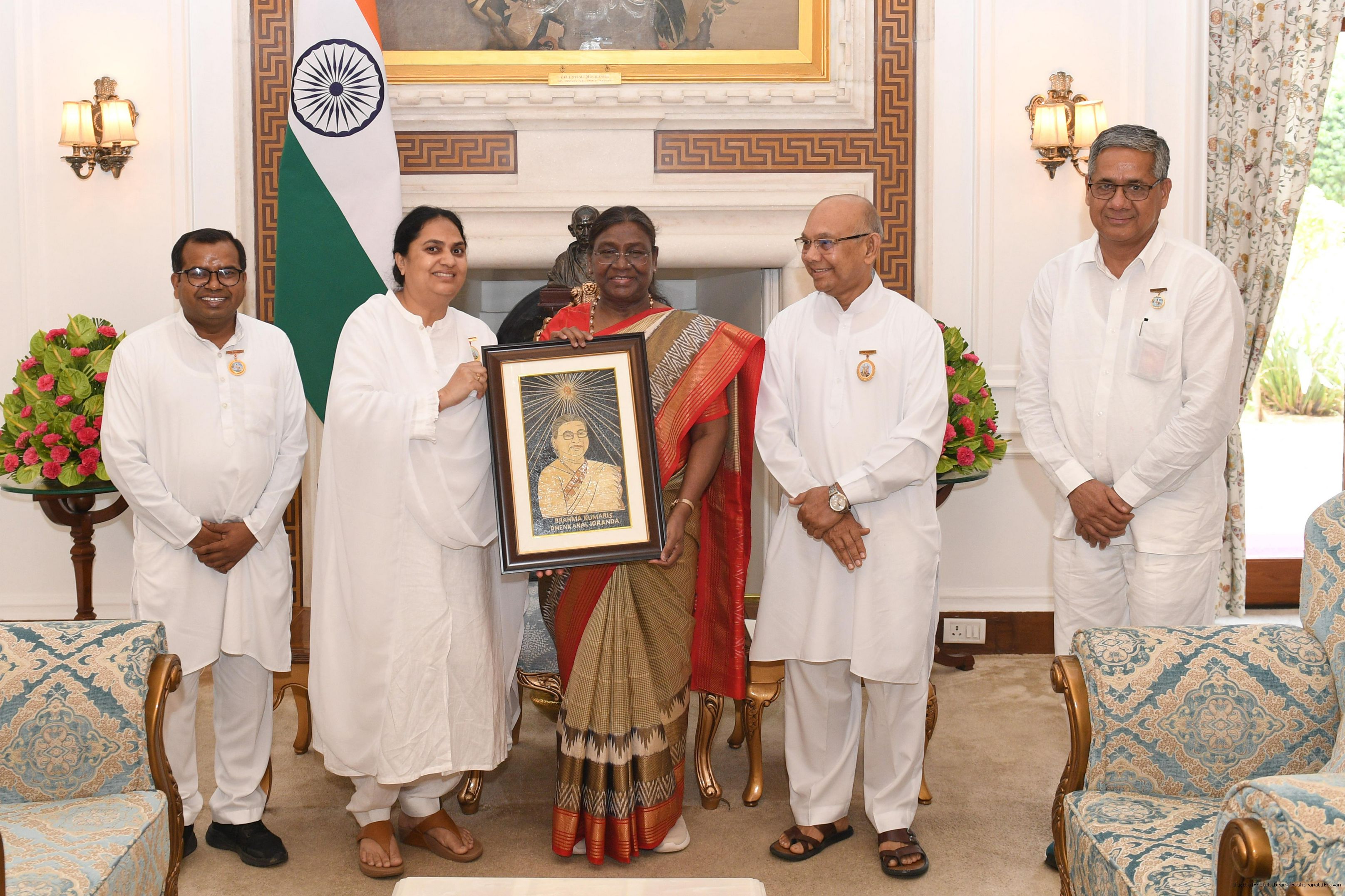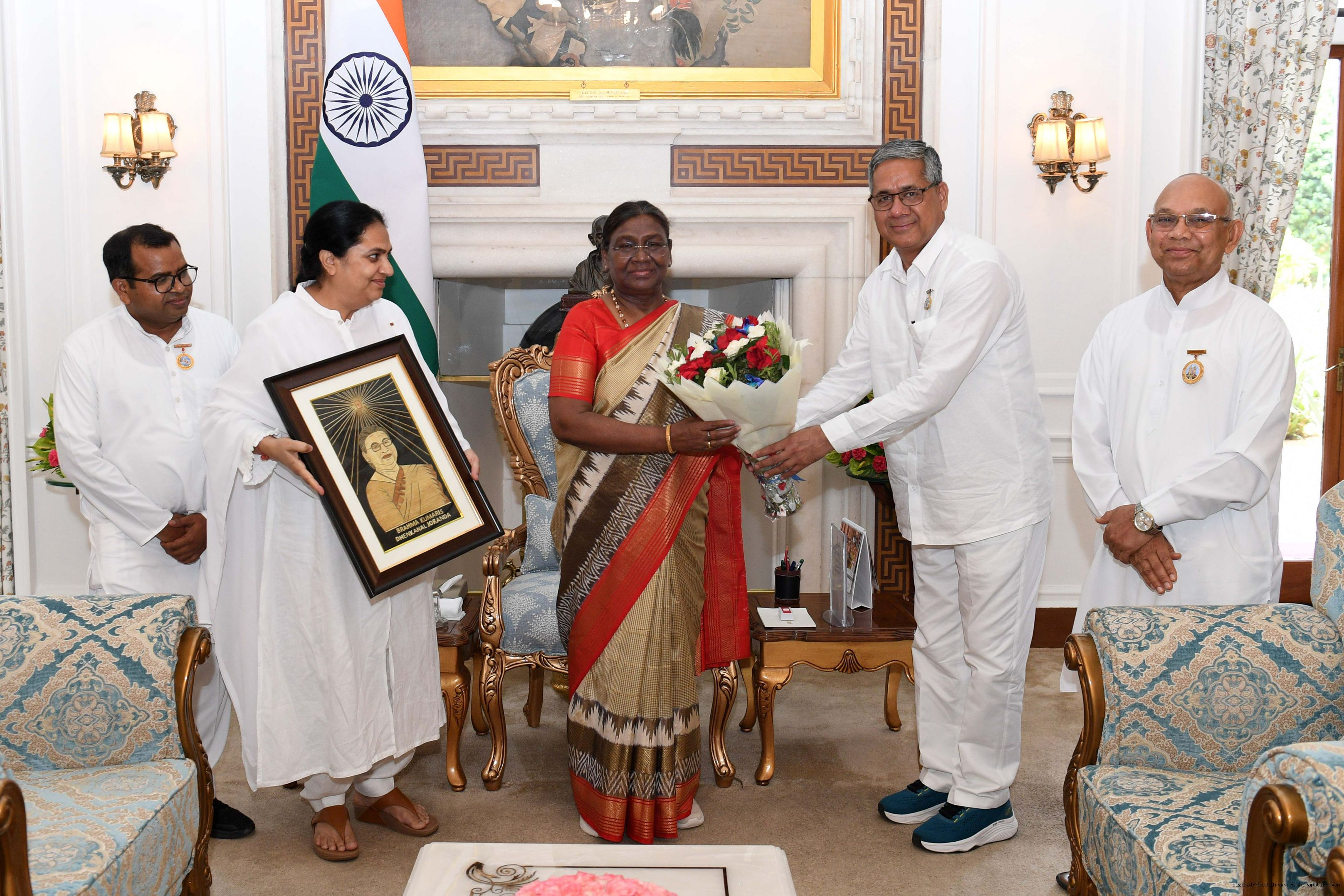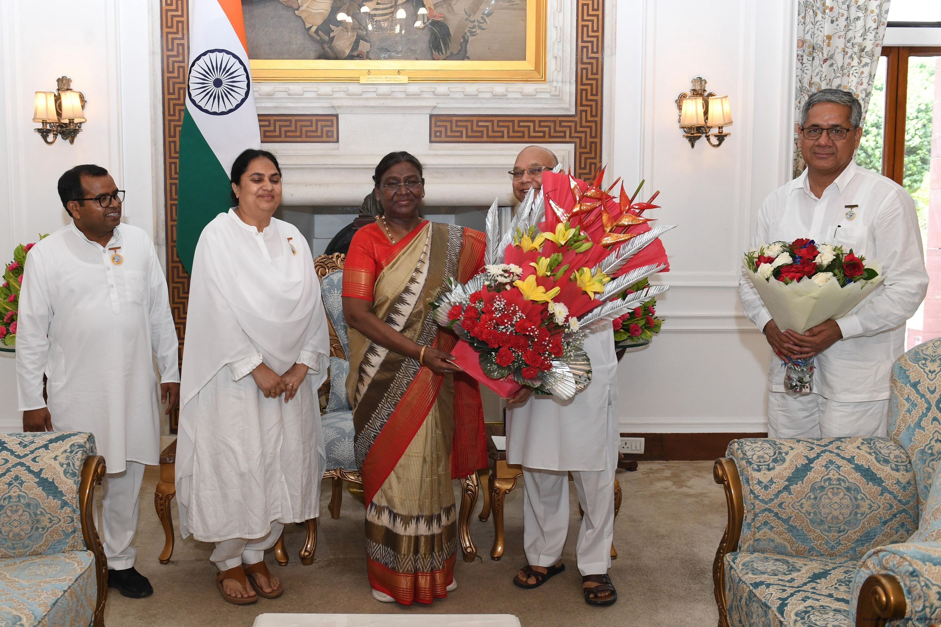 | Caption: | BK Suraj Kumar along with others meeting with the president of India Smt Droupadi Murmu at Rashatrapati Bhawan on June 07, 2024. |