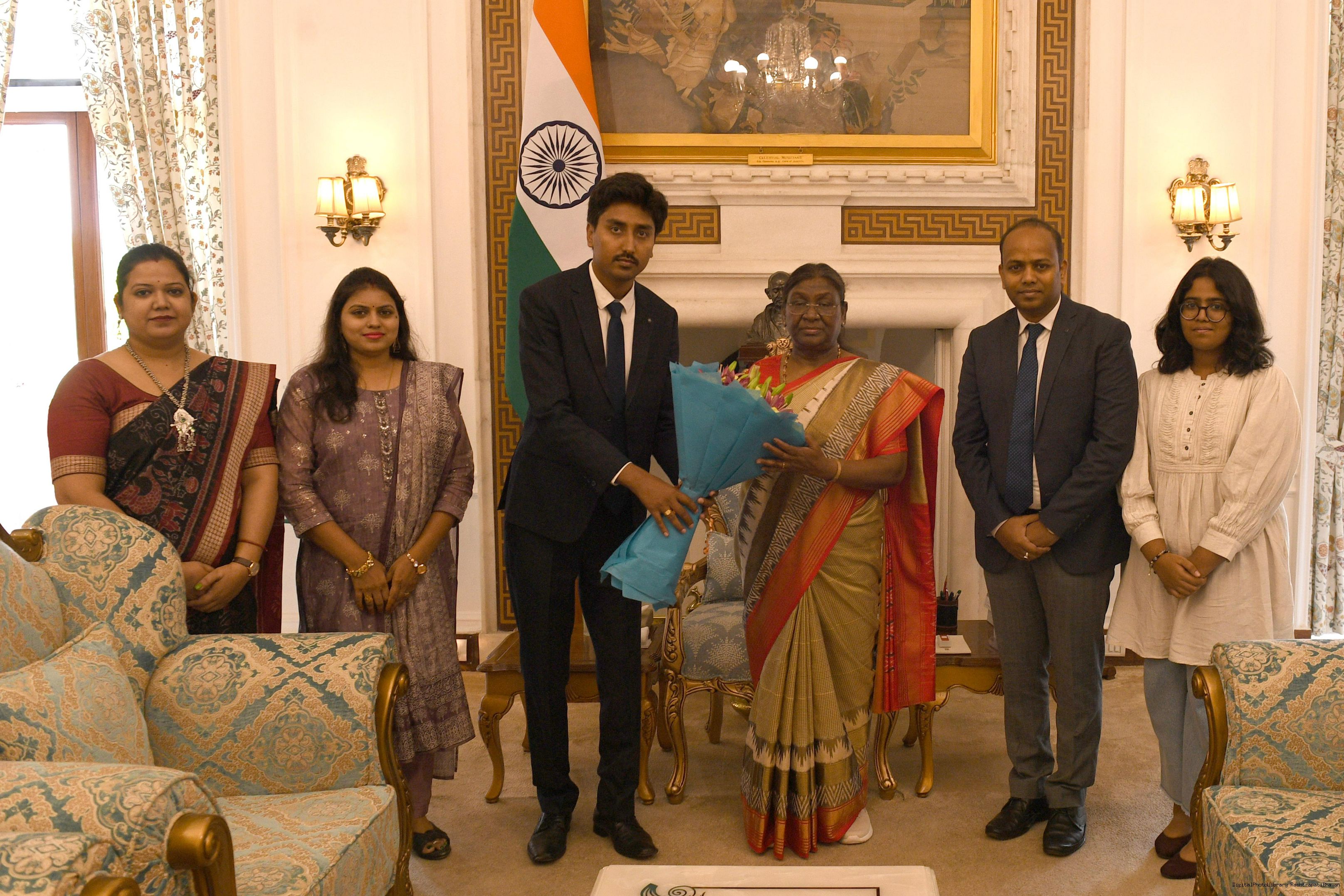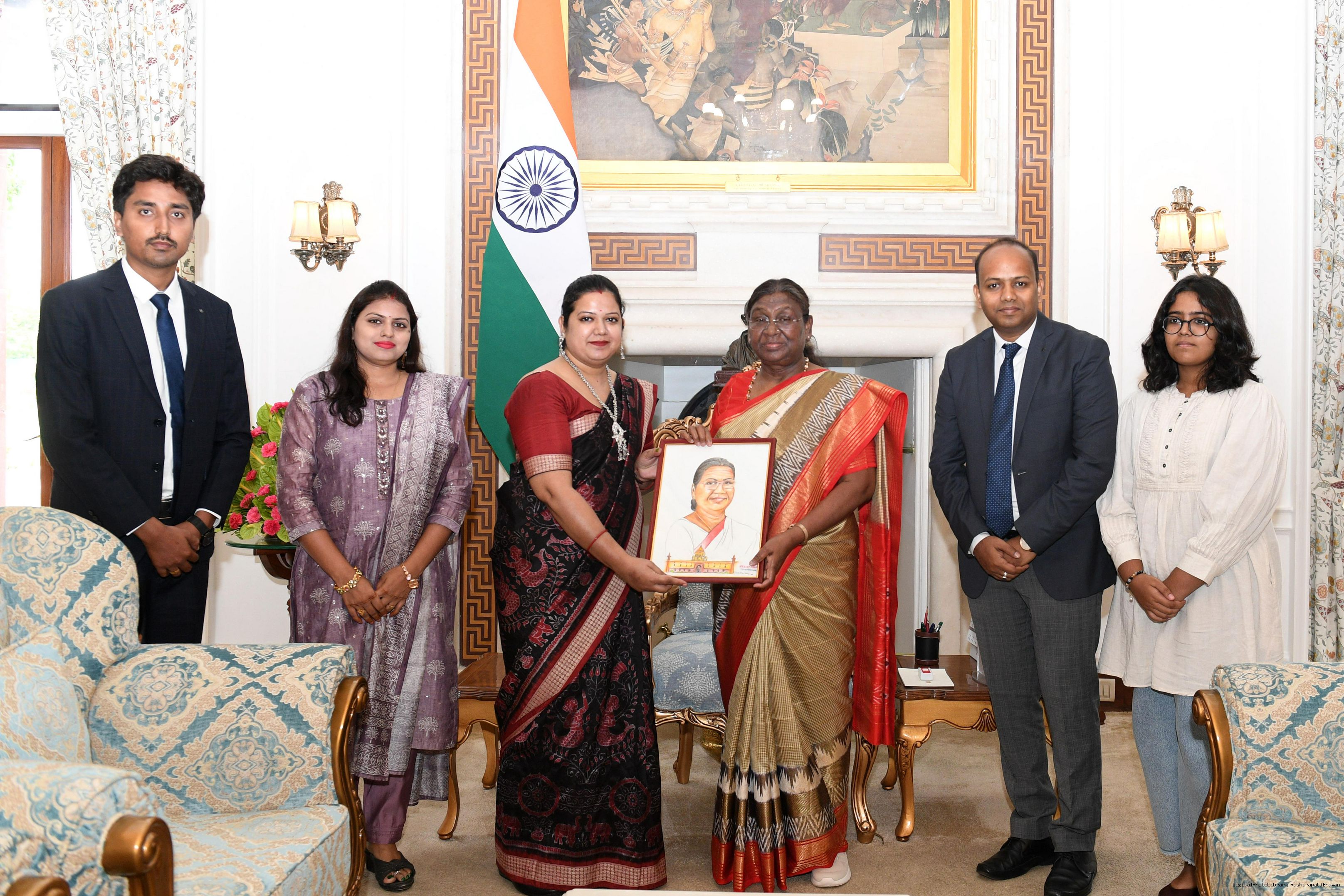 | Caption: | Shri Nitesh Sharma from Rairangpur along with others meeting with the president of India Smt Droupadi Murmu at Rashatrapati Bhawan on June 07, 2024. |