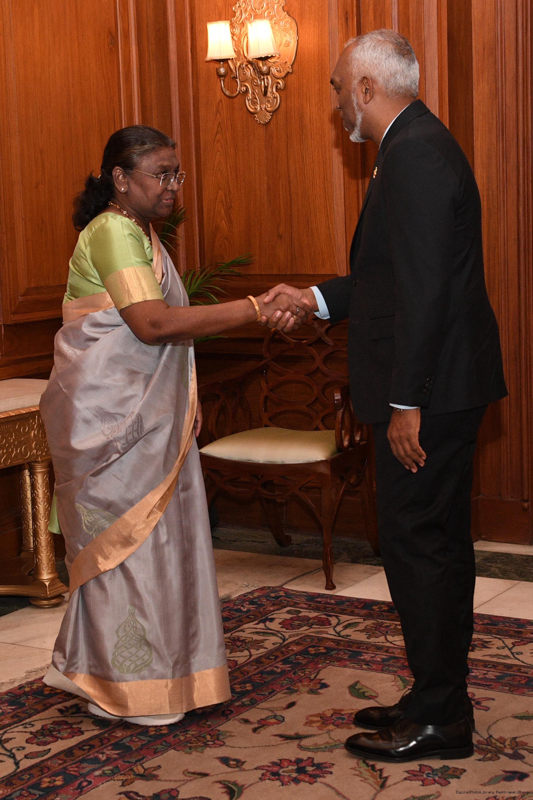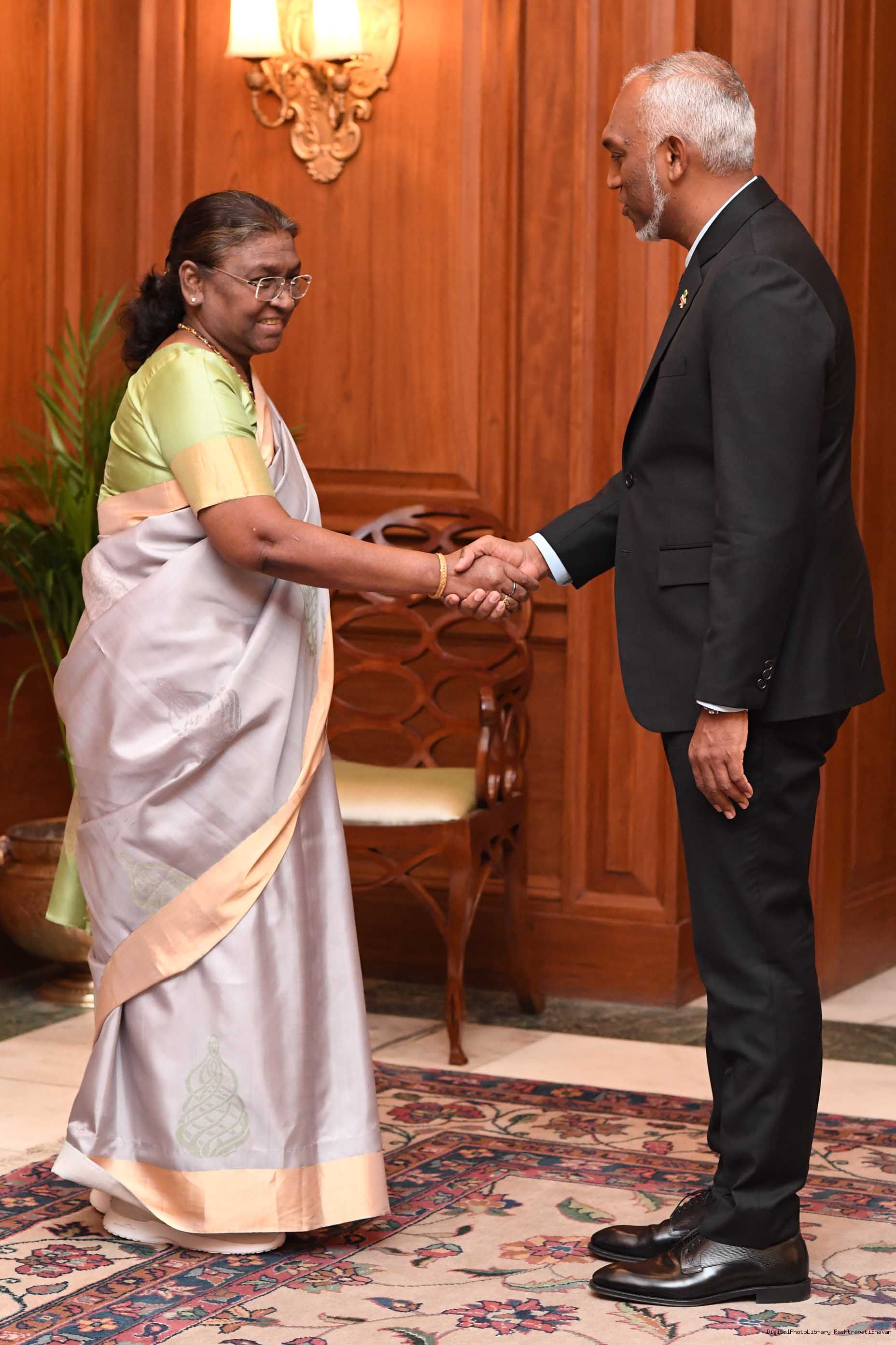 | Caption: | The President of the Republic of Maldives, Dr. Mohamed Muizzu met the President of India, Smt Droupadi Murmu at Rashtrapati Bhavan on June 10, 2024. |