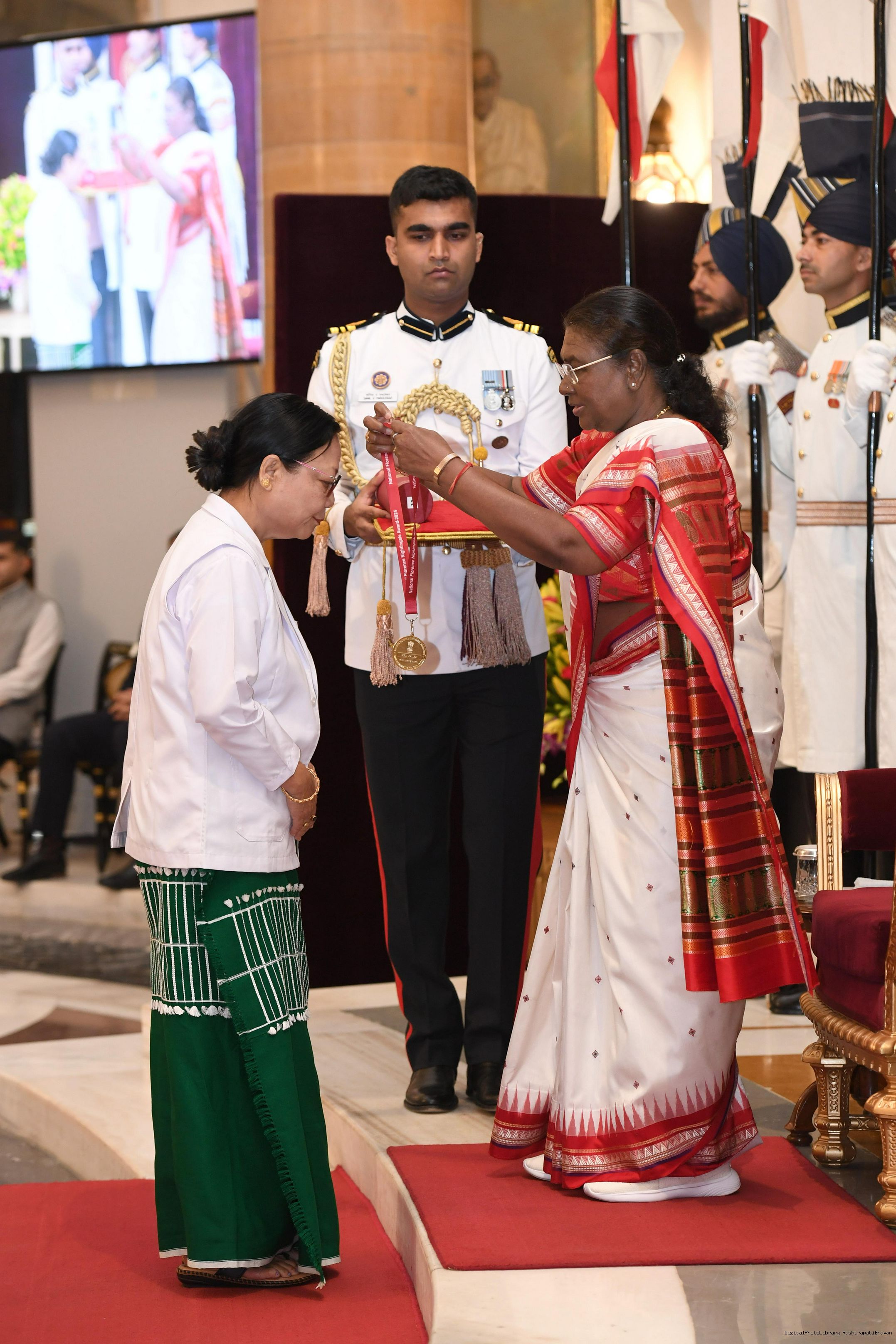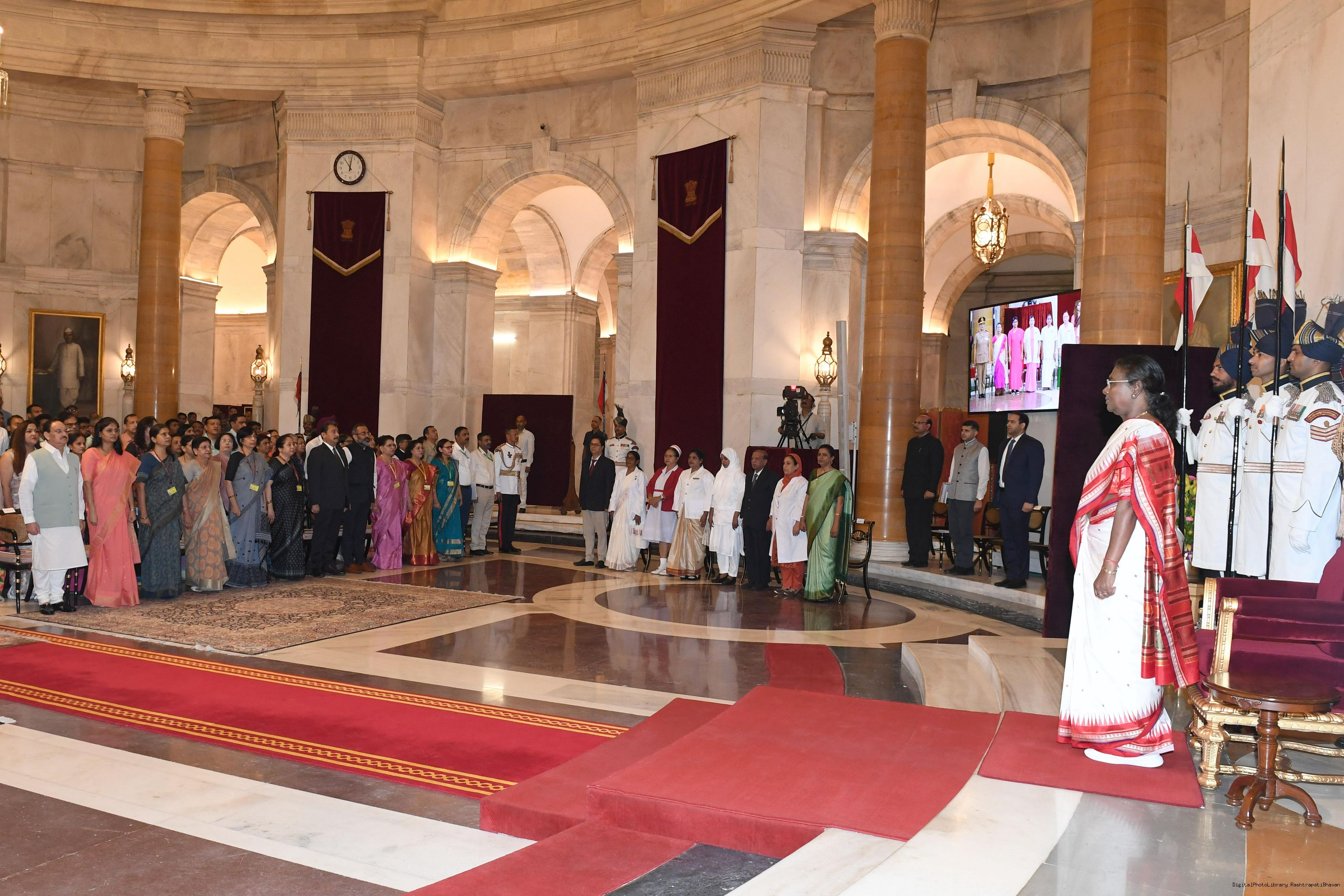 | Caption: | The President of India, Smt Droupadi Murmu presented the National Florence Nightingale Awards for the year 2024 to the Nursing professionals at Rashtrapati Bhavan on September 11, 2024. |