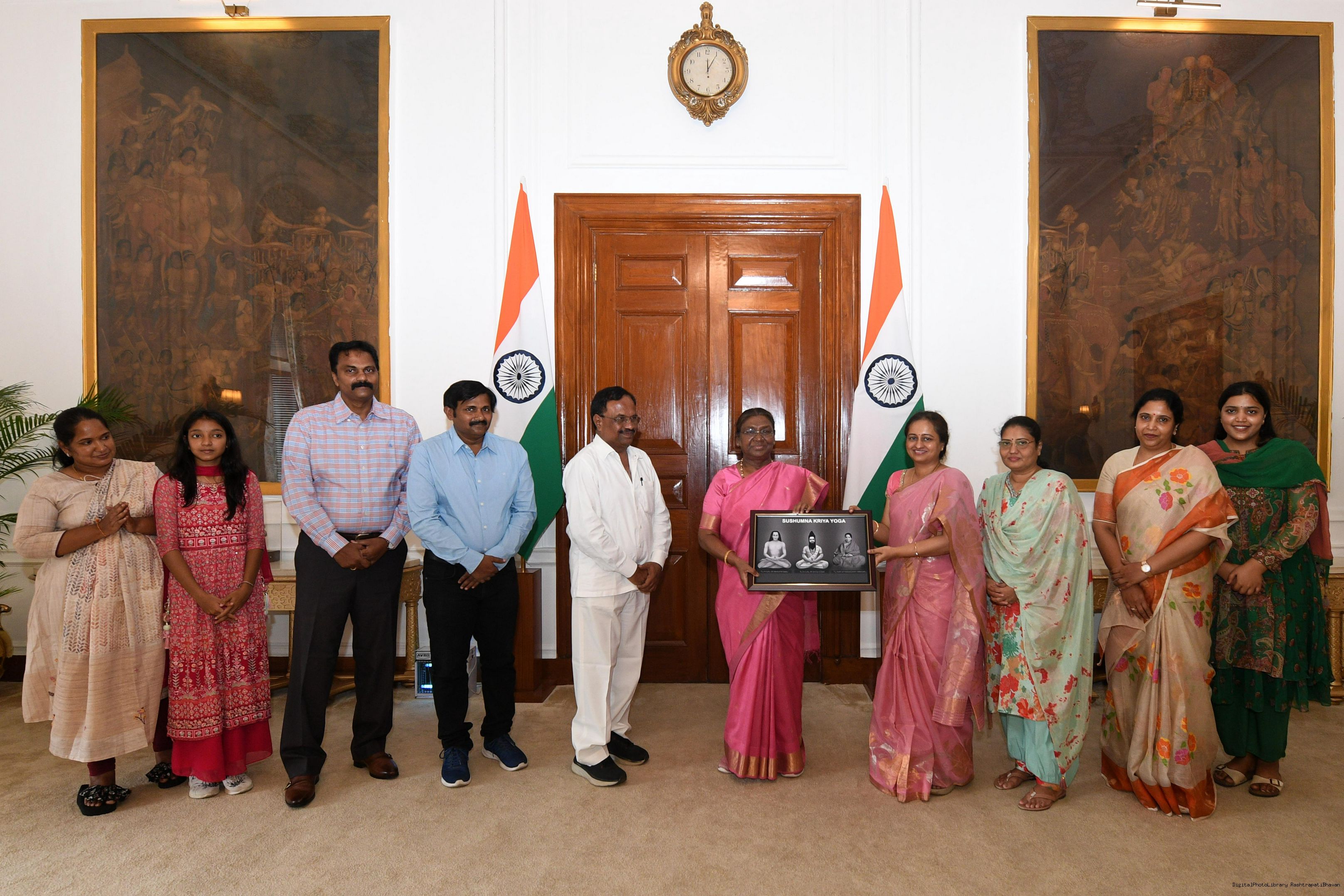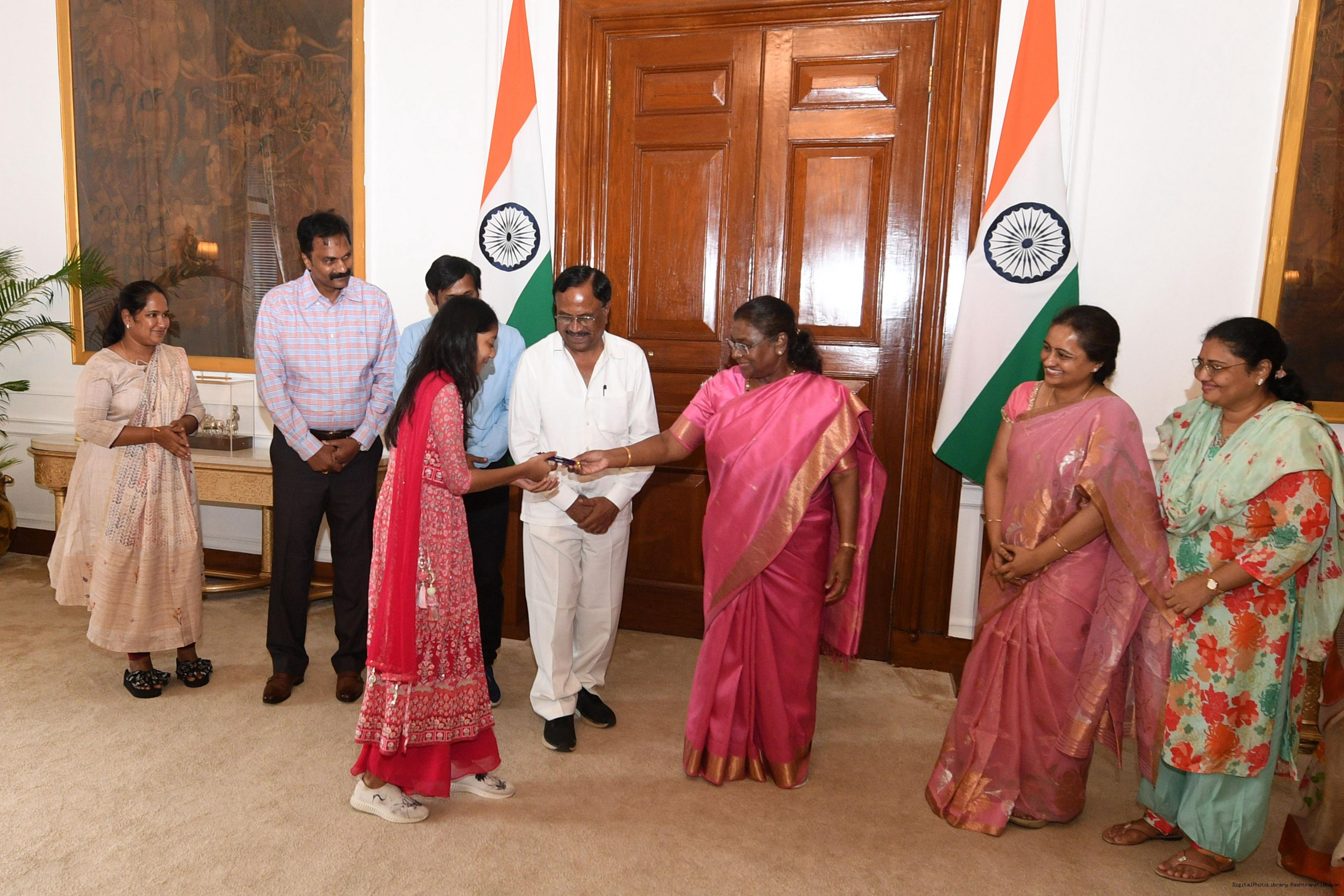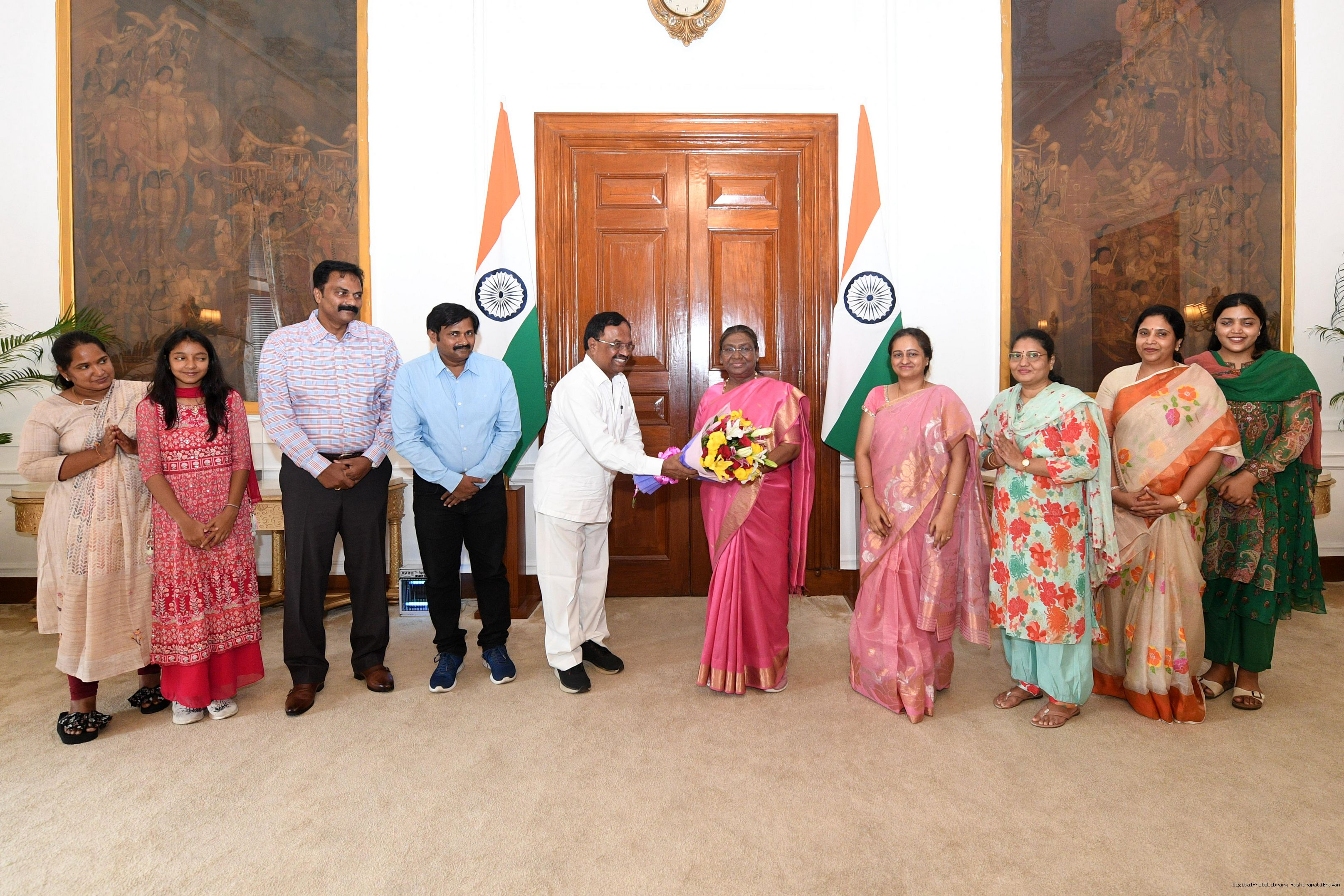 | Caption: | Shri V. Vijaya Raghava Reddy from Rairangpur along with others meeting with the President of India, Smt. Droupadi Murmu at Rashtrapati Bhavan on July 01, 2024. |