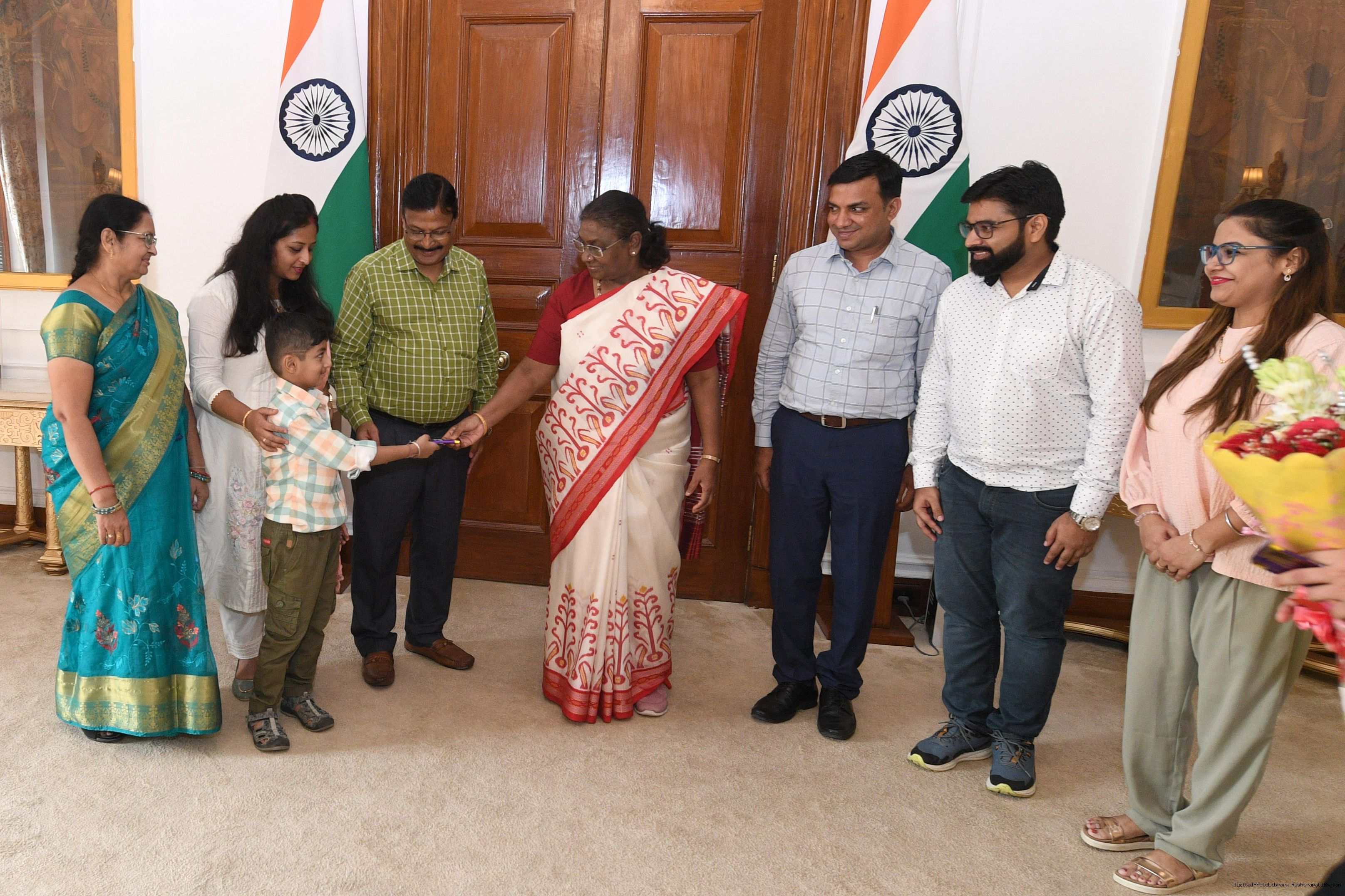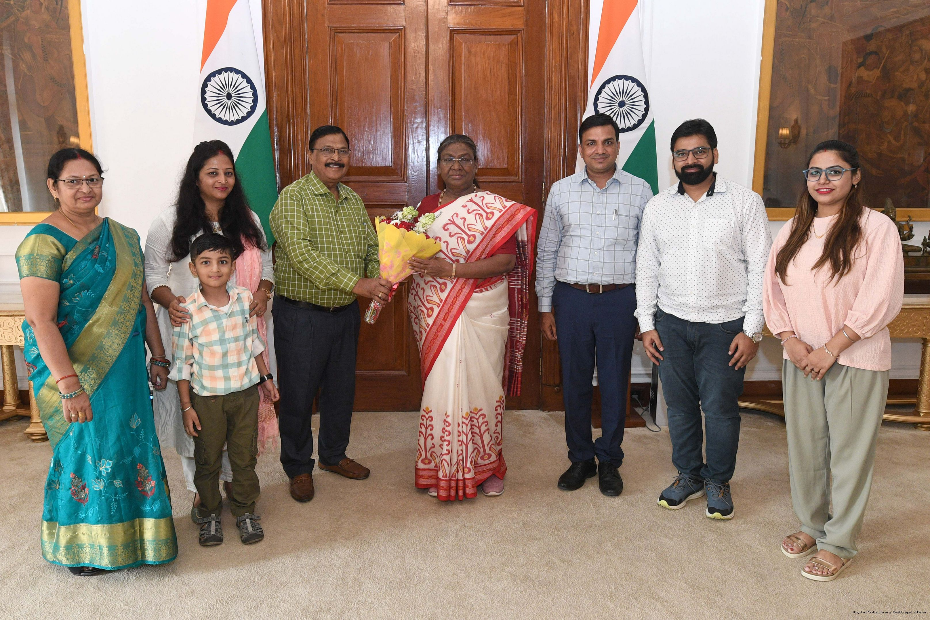 | Caption: | Shri Rajendra Prasad Ram, Advocate from Rairangpur along with others meeting with the president of India Smt Droupadi Murmu at Rashatrapati Bhawan on June 21, 2024. |