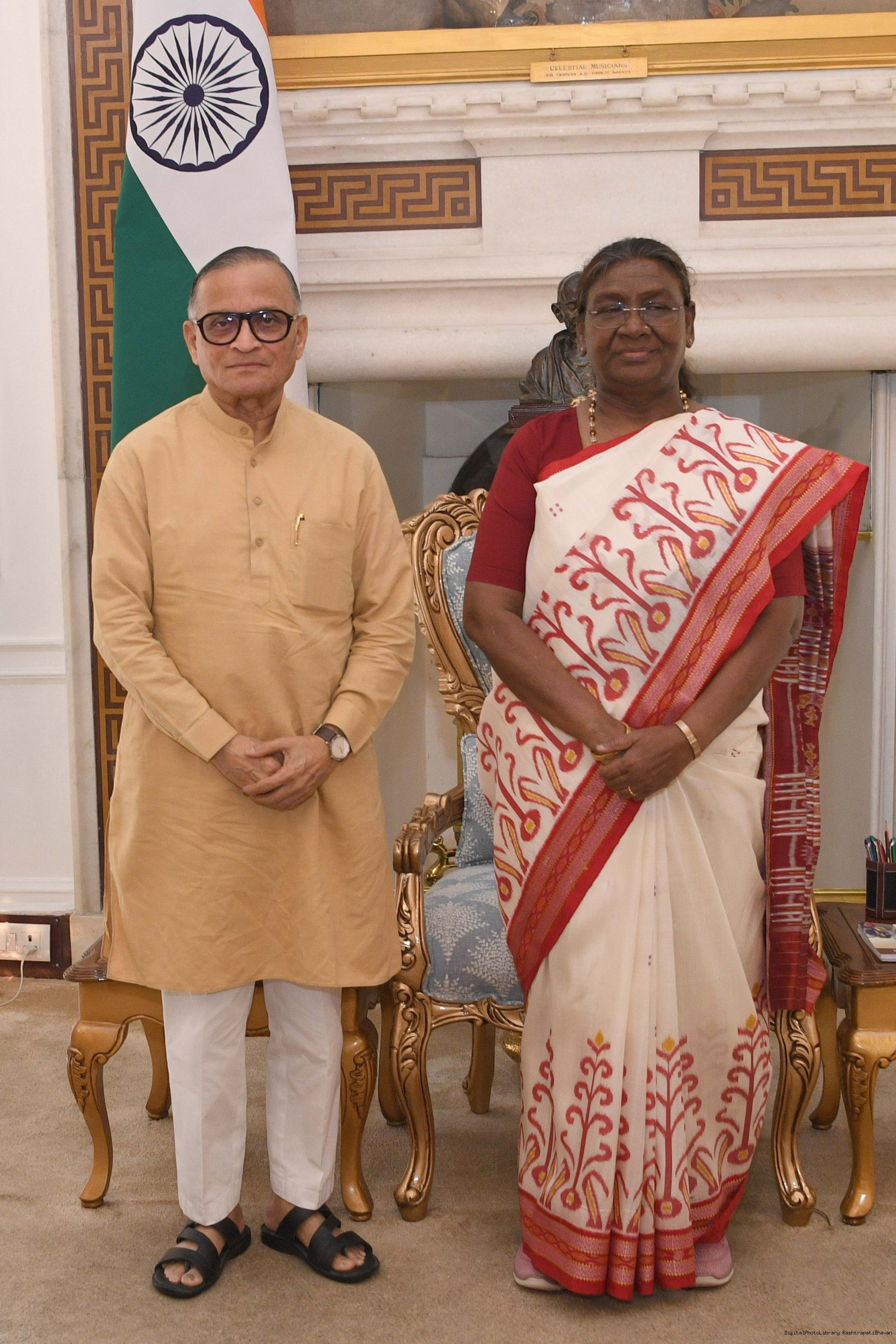 | Caption: | Shri V. Satish, Sanghatak, BJP meeting with the president of India Smt Droupadi Murmu at Rashatrapati Bhawan on June 21, 2024. |