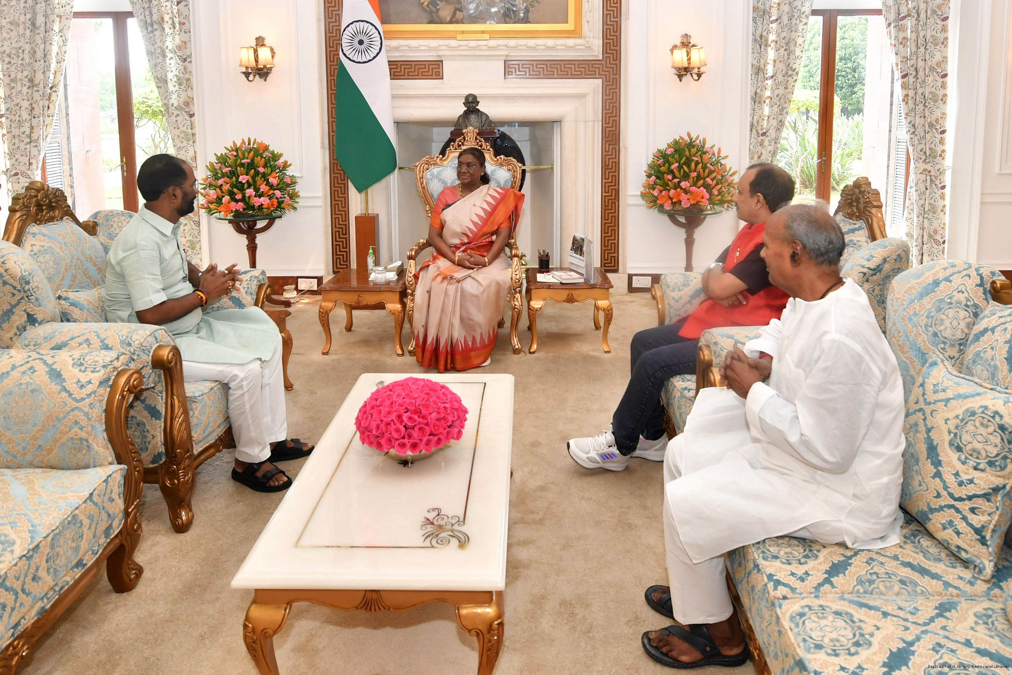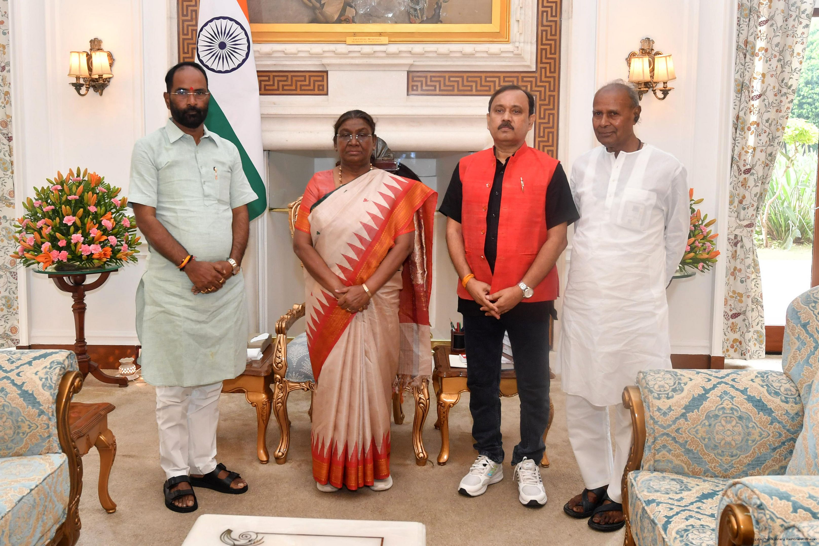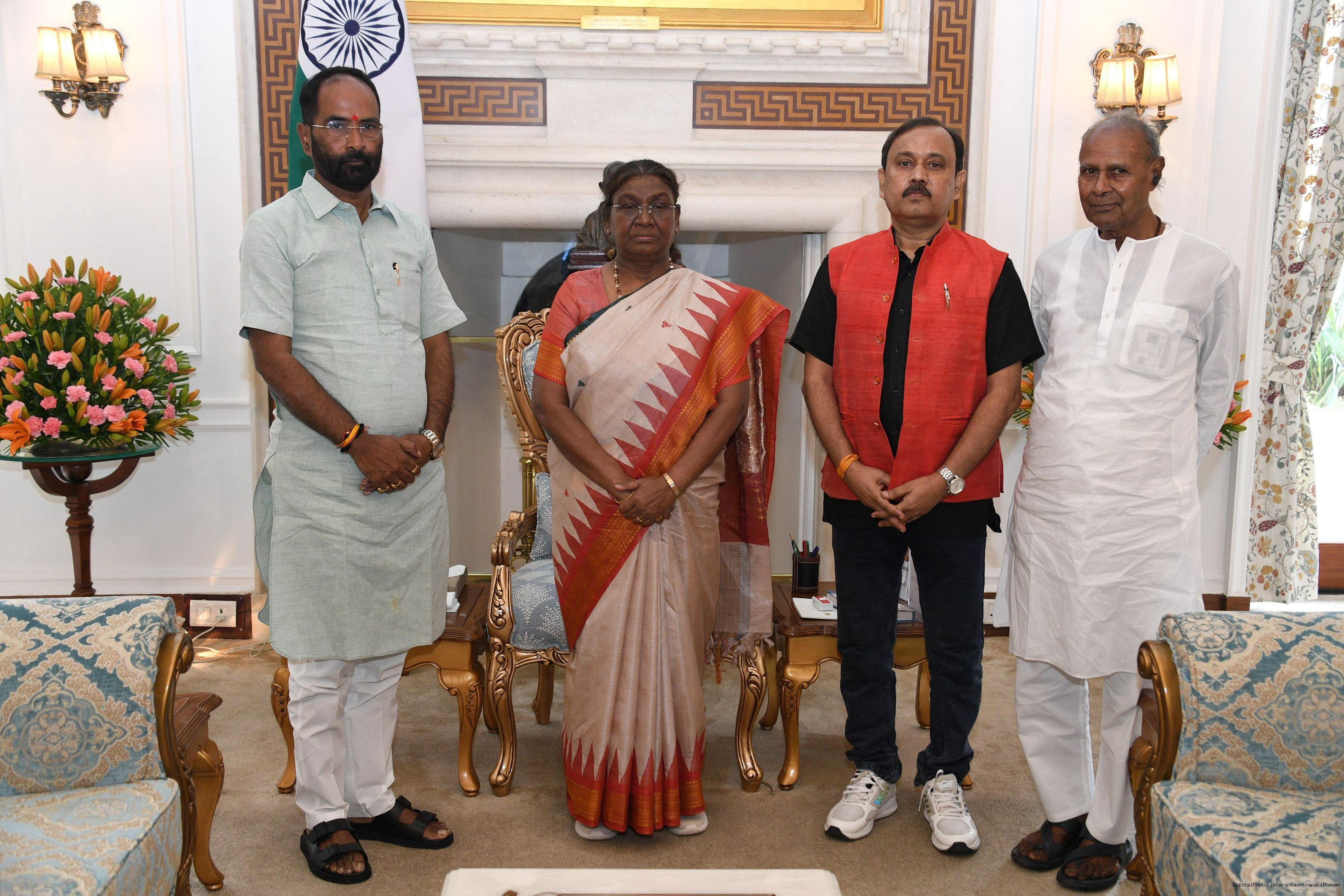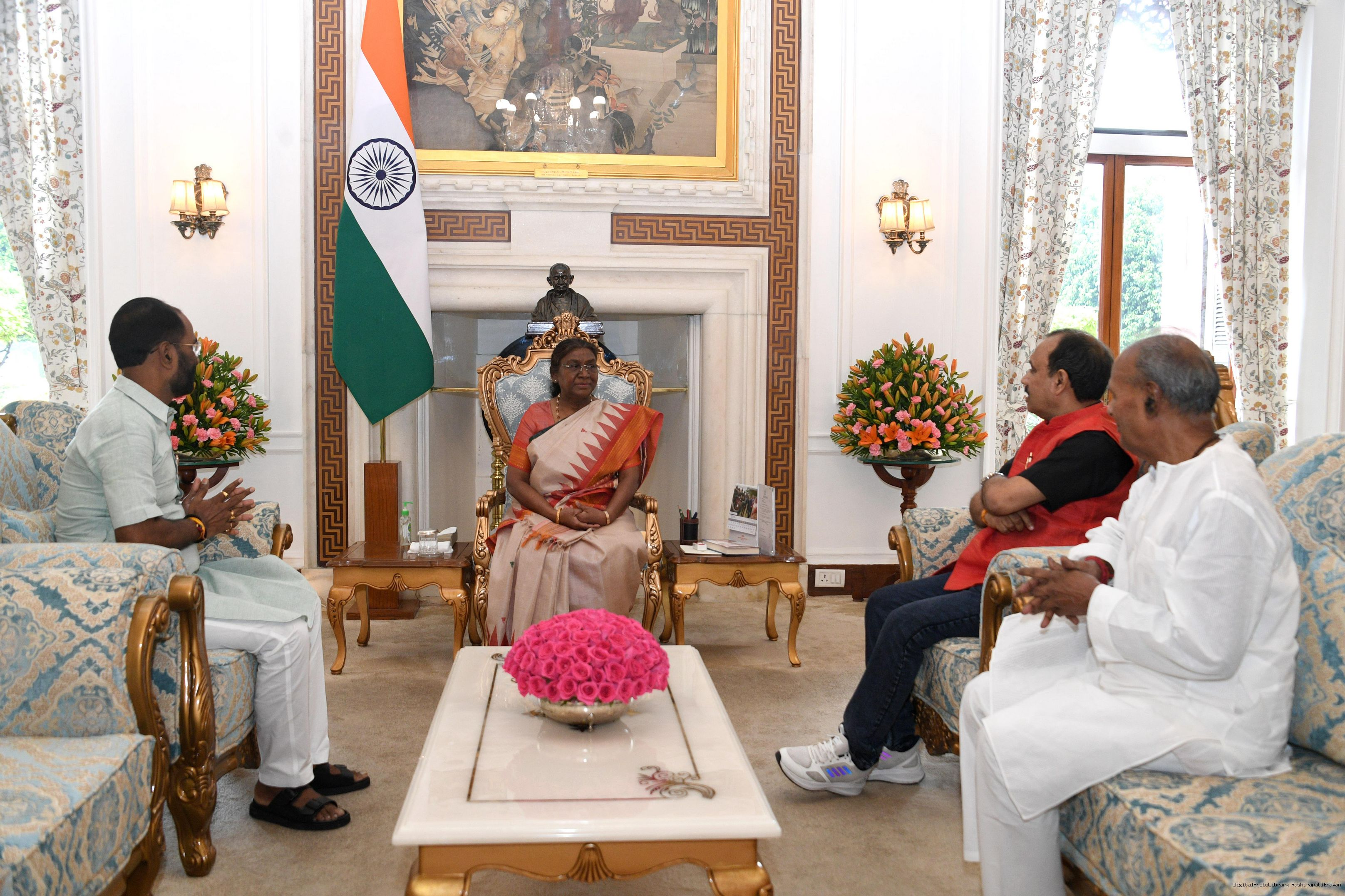 | Caption: | Dr. Ravinder Nath Tiwari and Shri Mahamaya Prasad meeting with the President of India Smt. Droupadi Murmu at Rashtrapati Bhvan on July 10, 2024. |