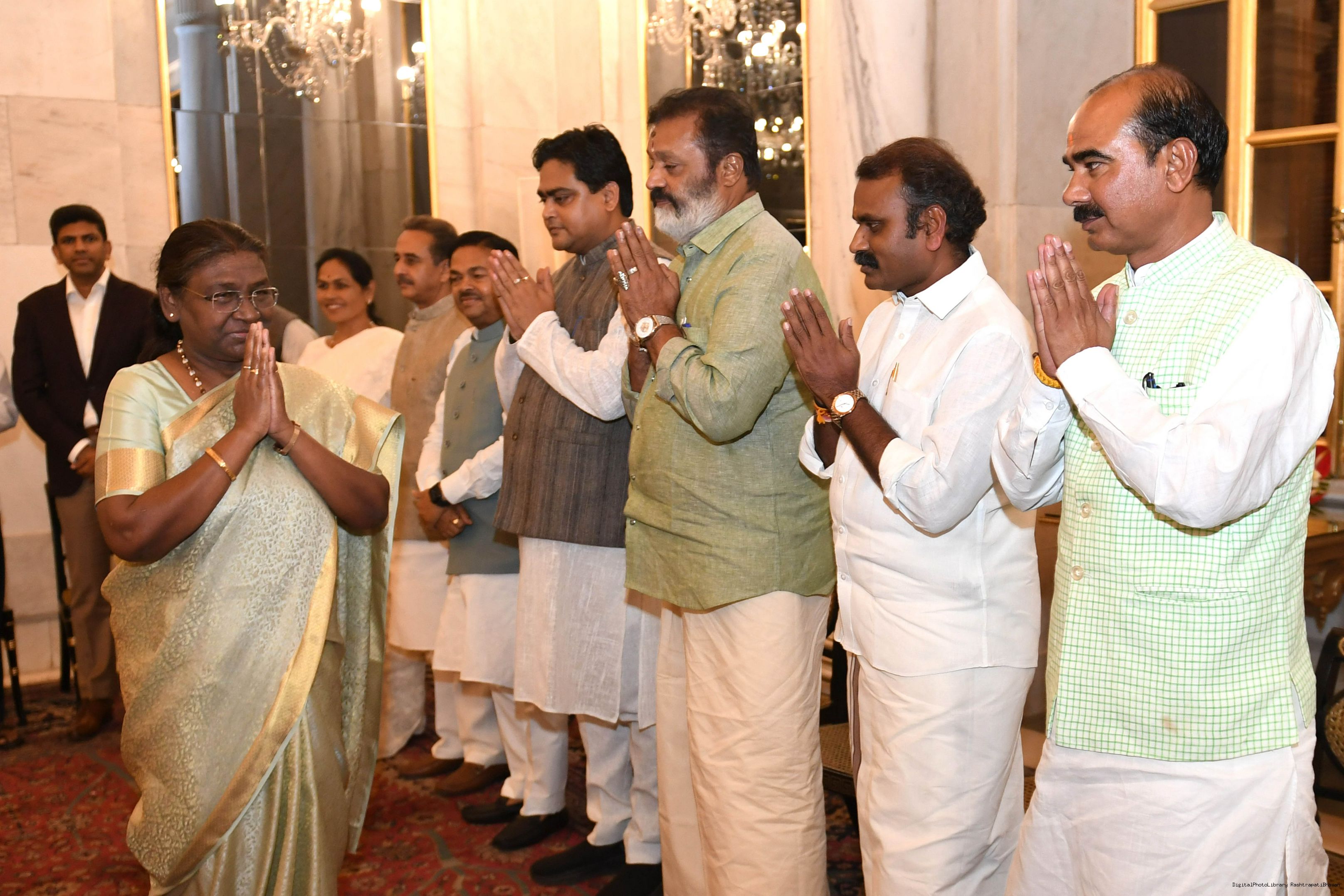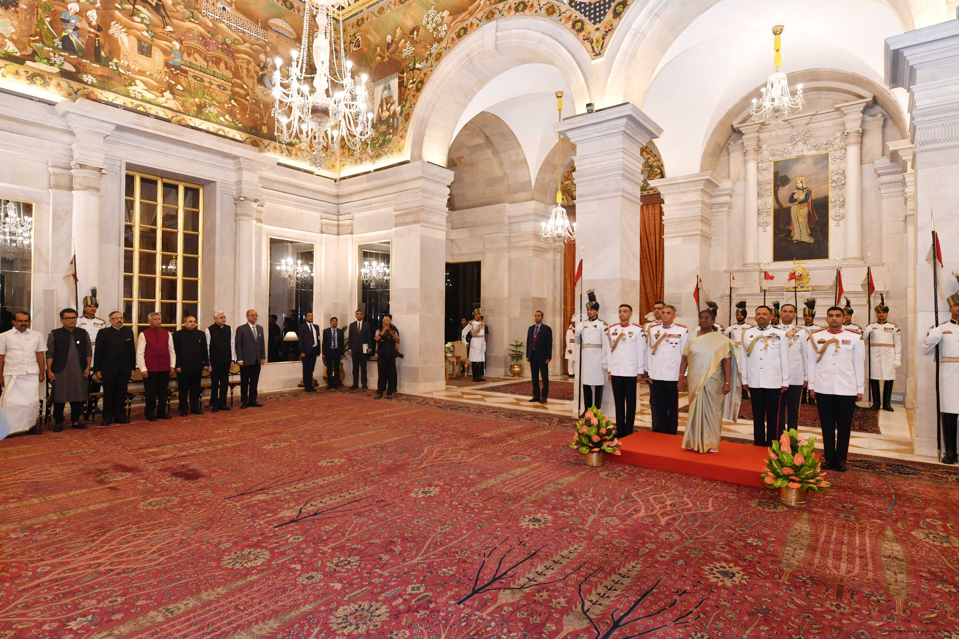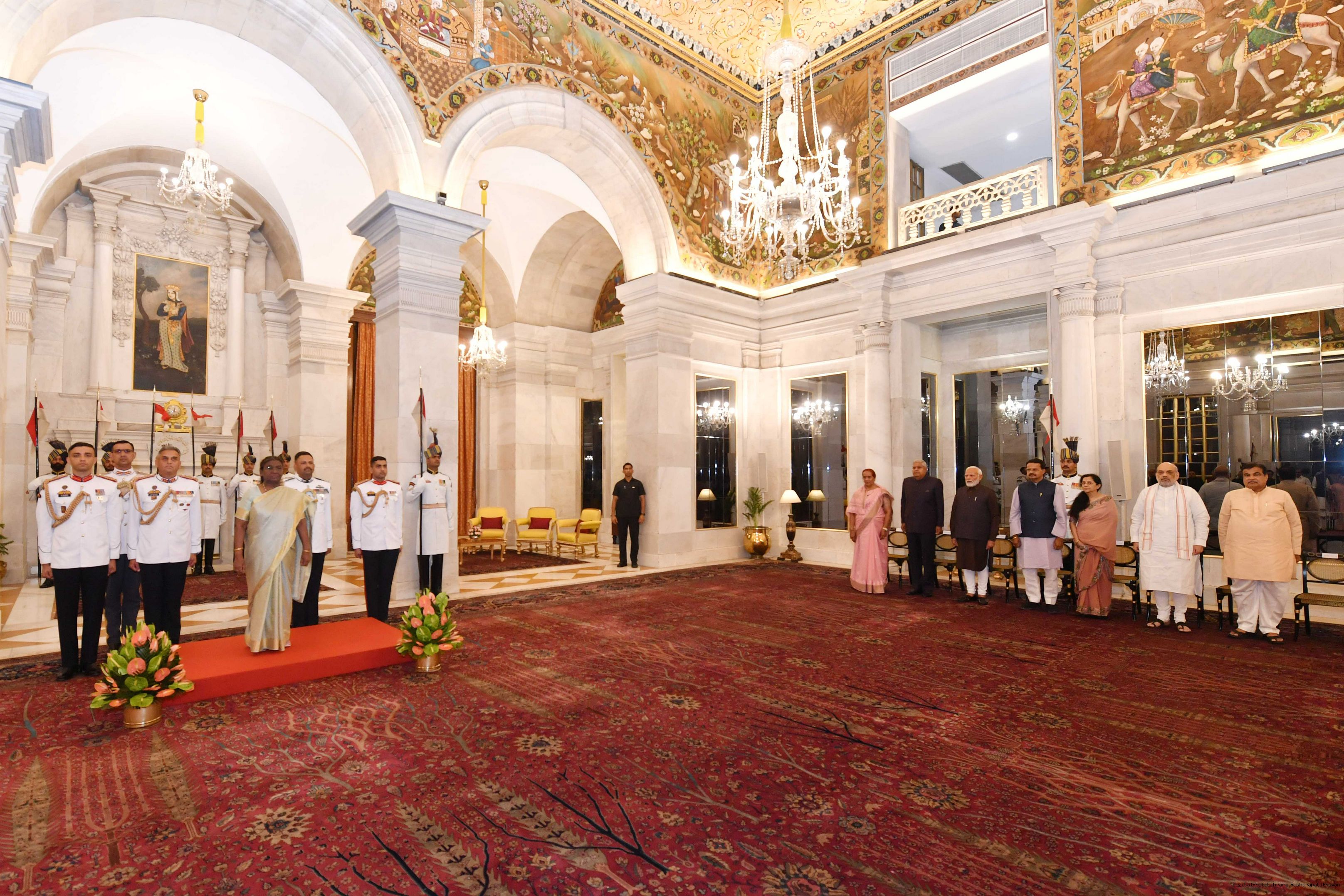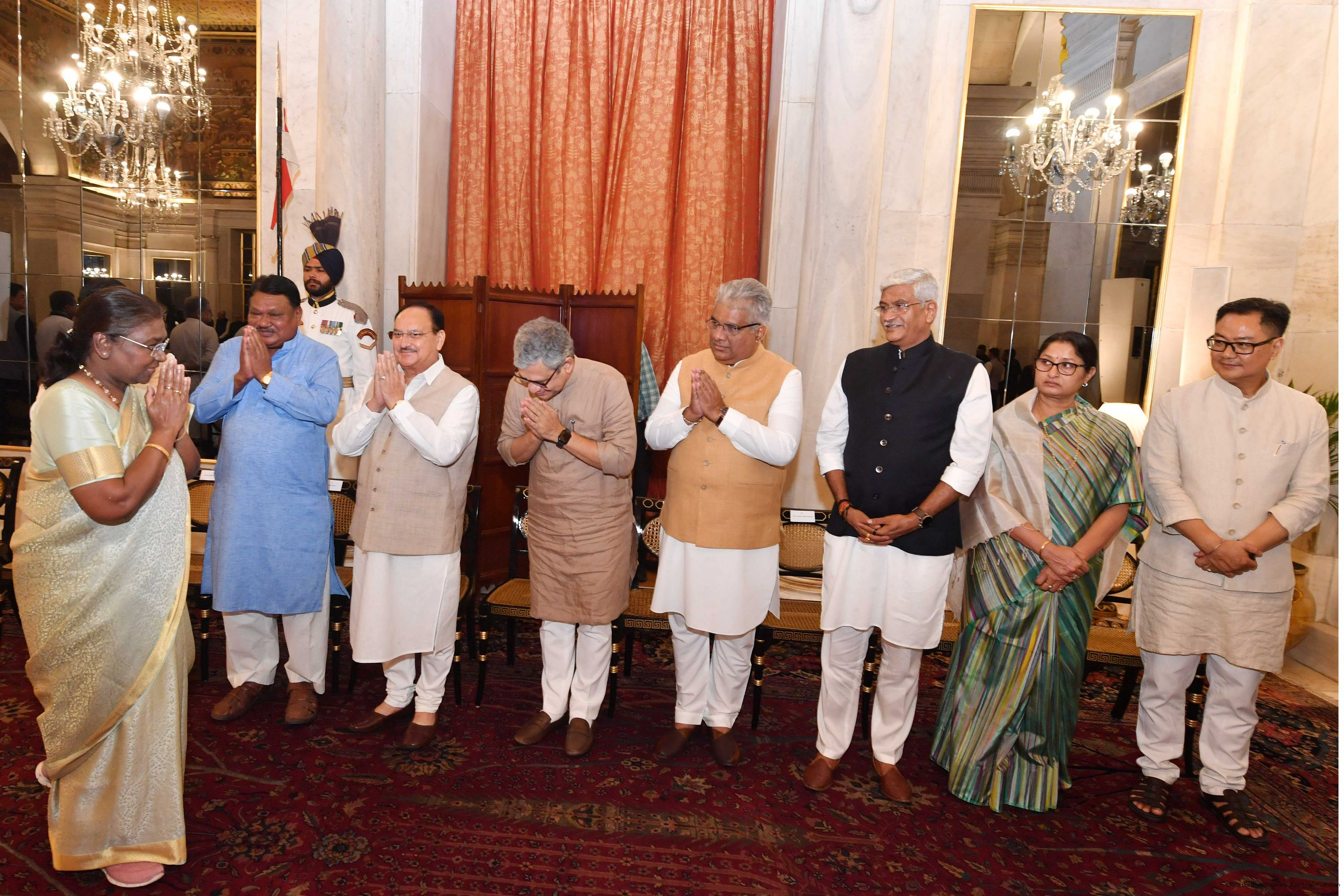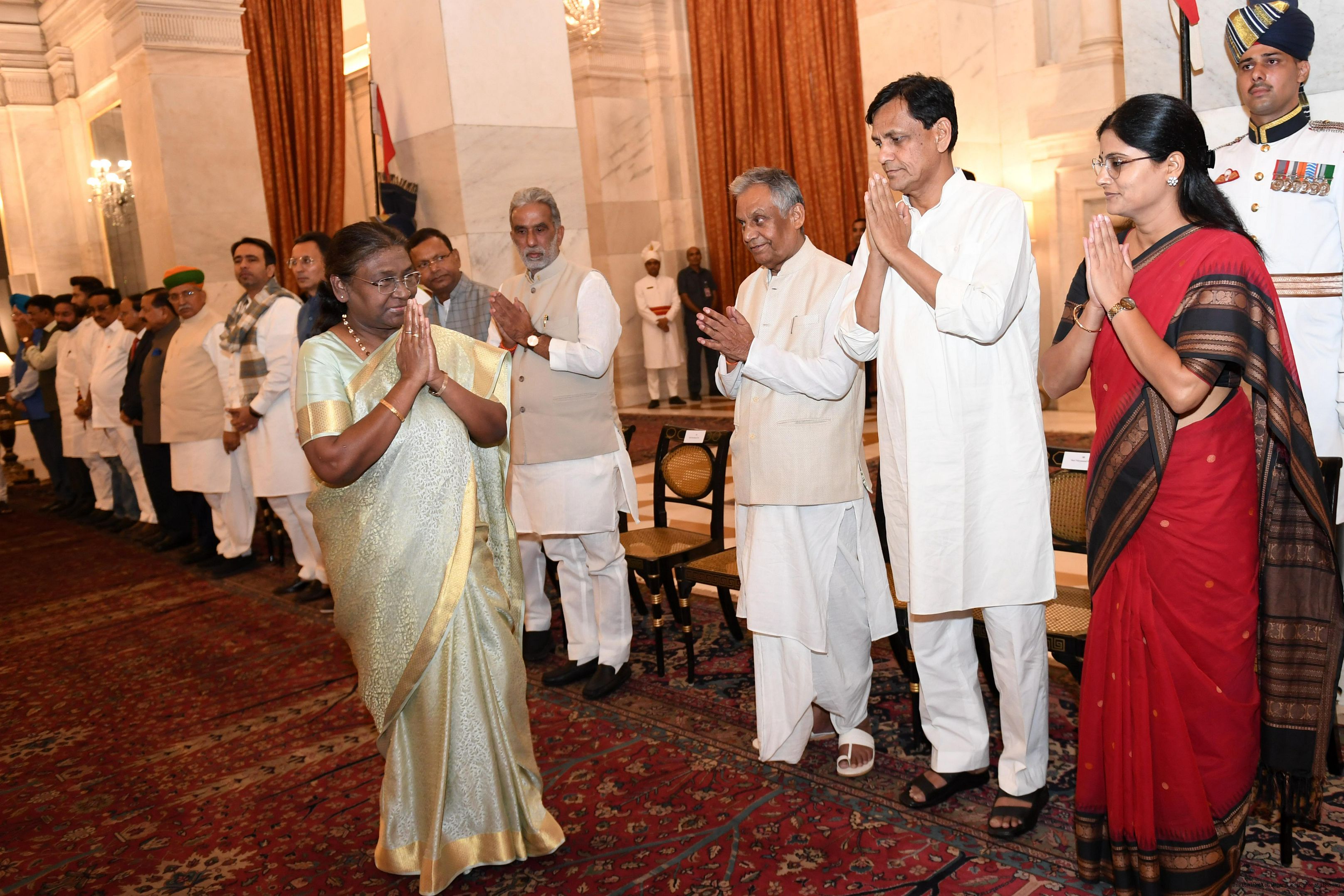 | Caption: | The President of India Smt. Droupadi Murmu hosted a dinner in honour of the Union Council of Ministers at Rashtrapati Bhavan on June 24, 2024. |