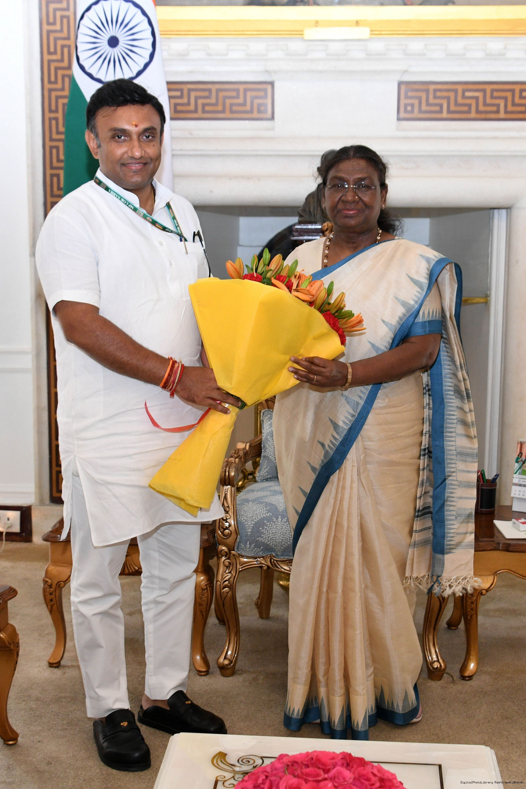 | Caption: | Dr. K Sudhakar, MP(Lok Sabha) from Chikkaballapur Constituencyt, Former Minister, Govt. of Karnataka called on the President of India Smt. Droupadi Murmu at Rashtrapati Bhavan on June 27, 2024. |