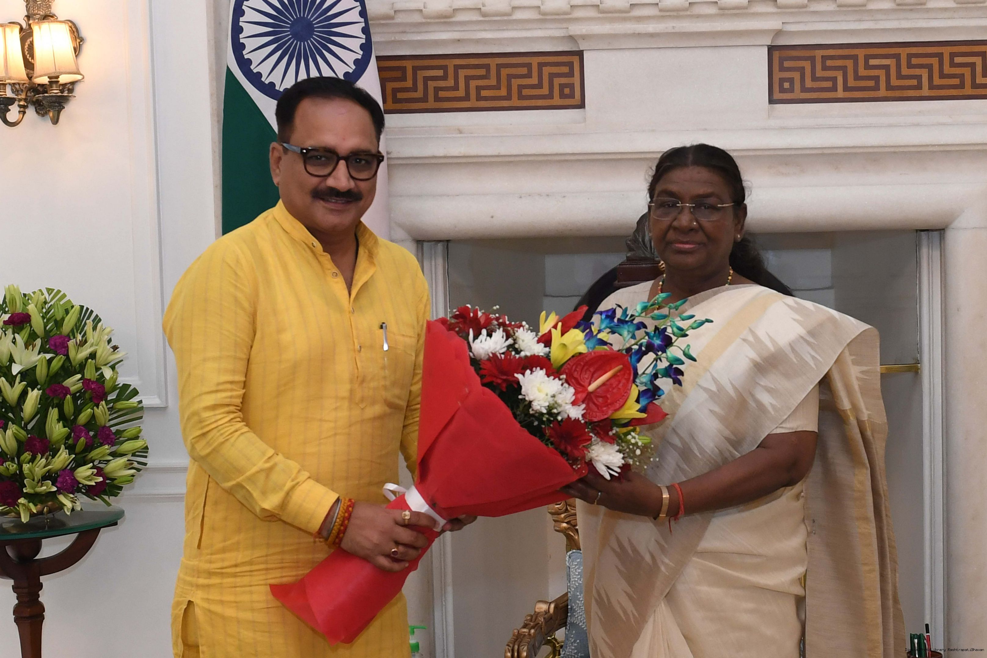 | Caption: | Shri Virendra kumar Sachdeva, Presisent BJP, Delhi State meeting with the President of India Smt. Droupadi Murmu at Rashtrapati Bhavan on September 12, 2024. |