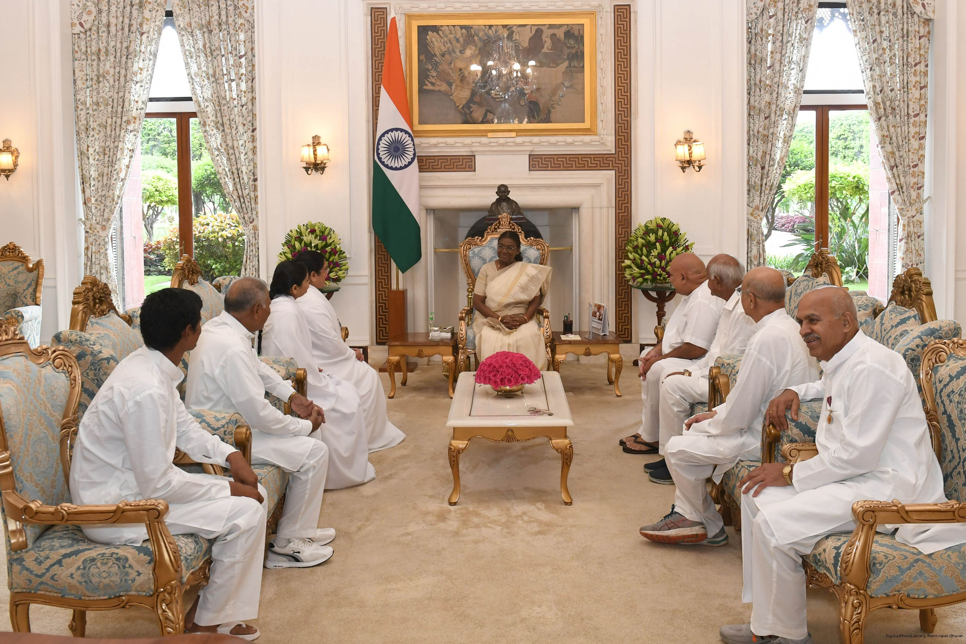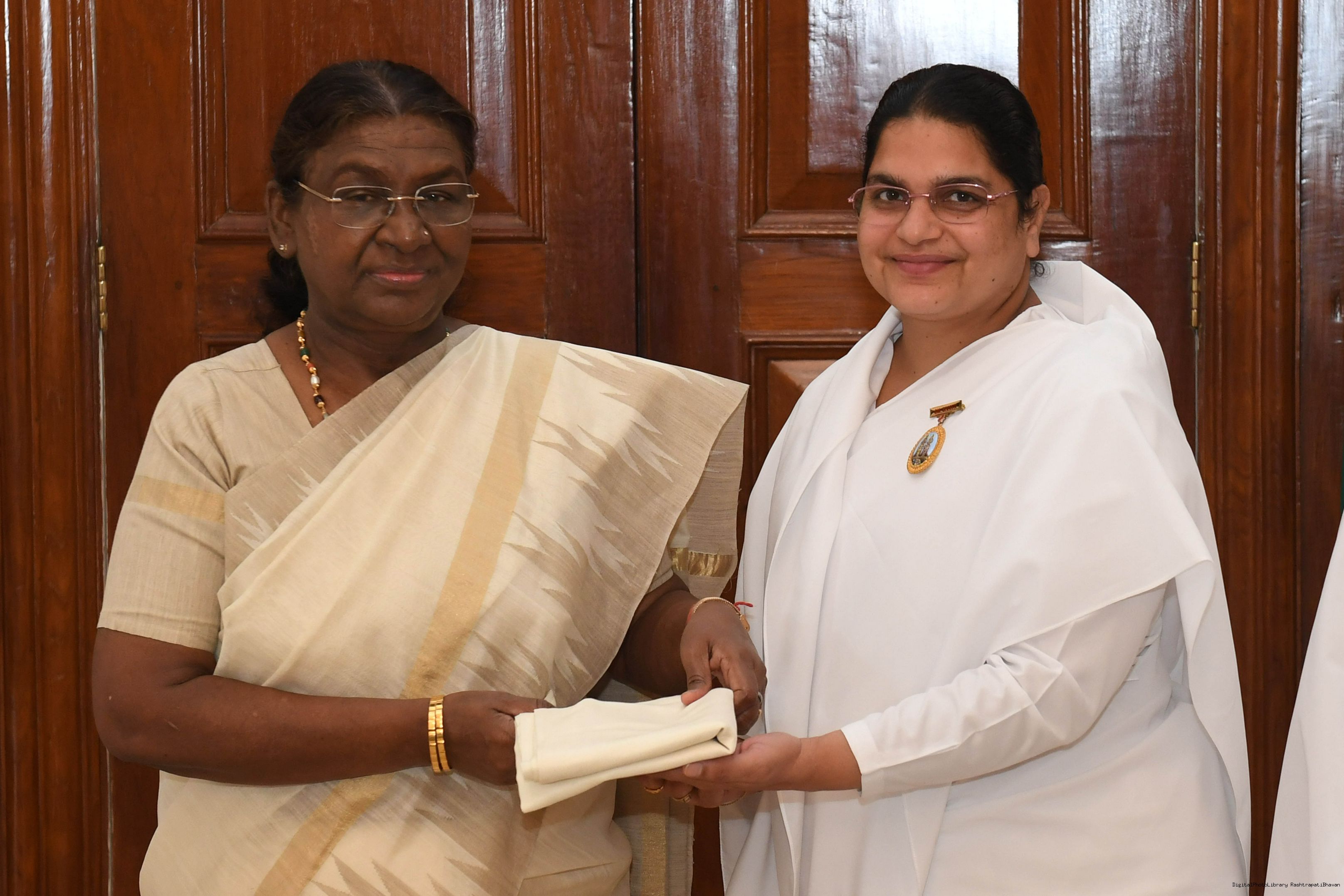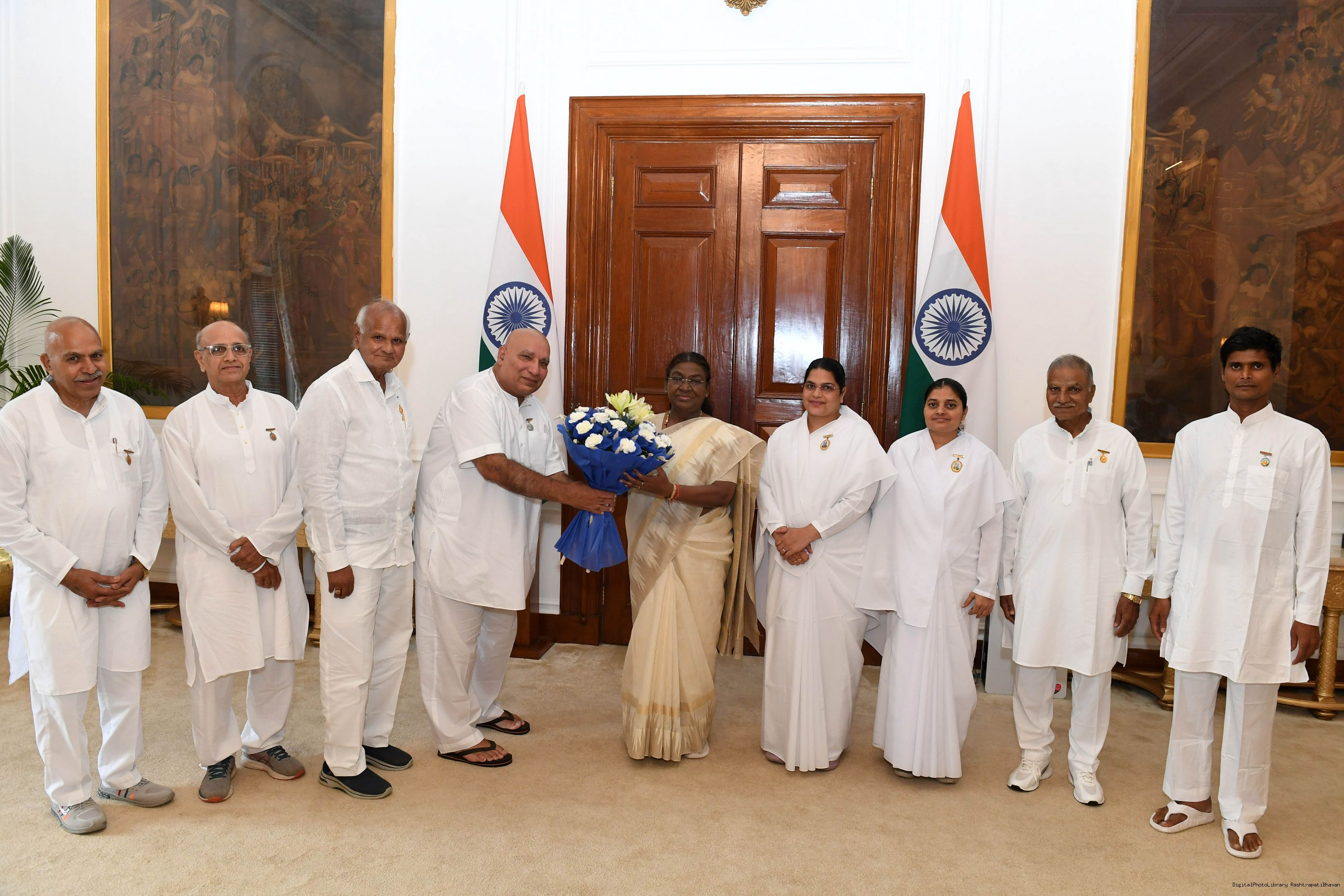 | Caption: | BK Satish along with others meeting with the President of India Smt. Droupadi Murmu at Rashtrapati Bhavan on September 12, 2024. |