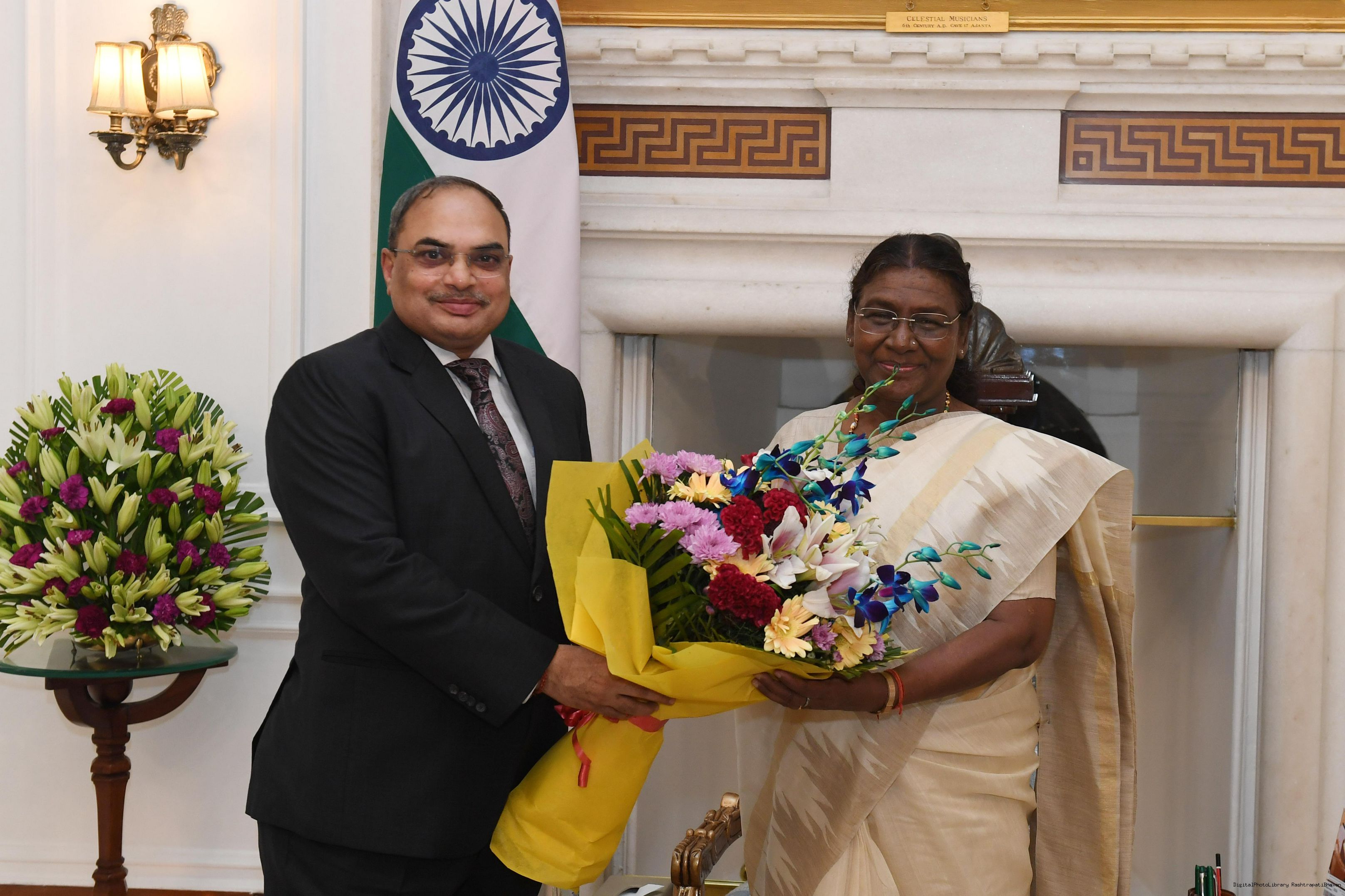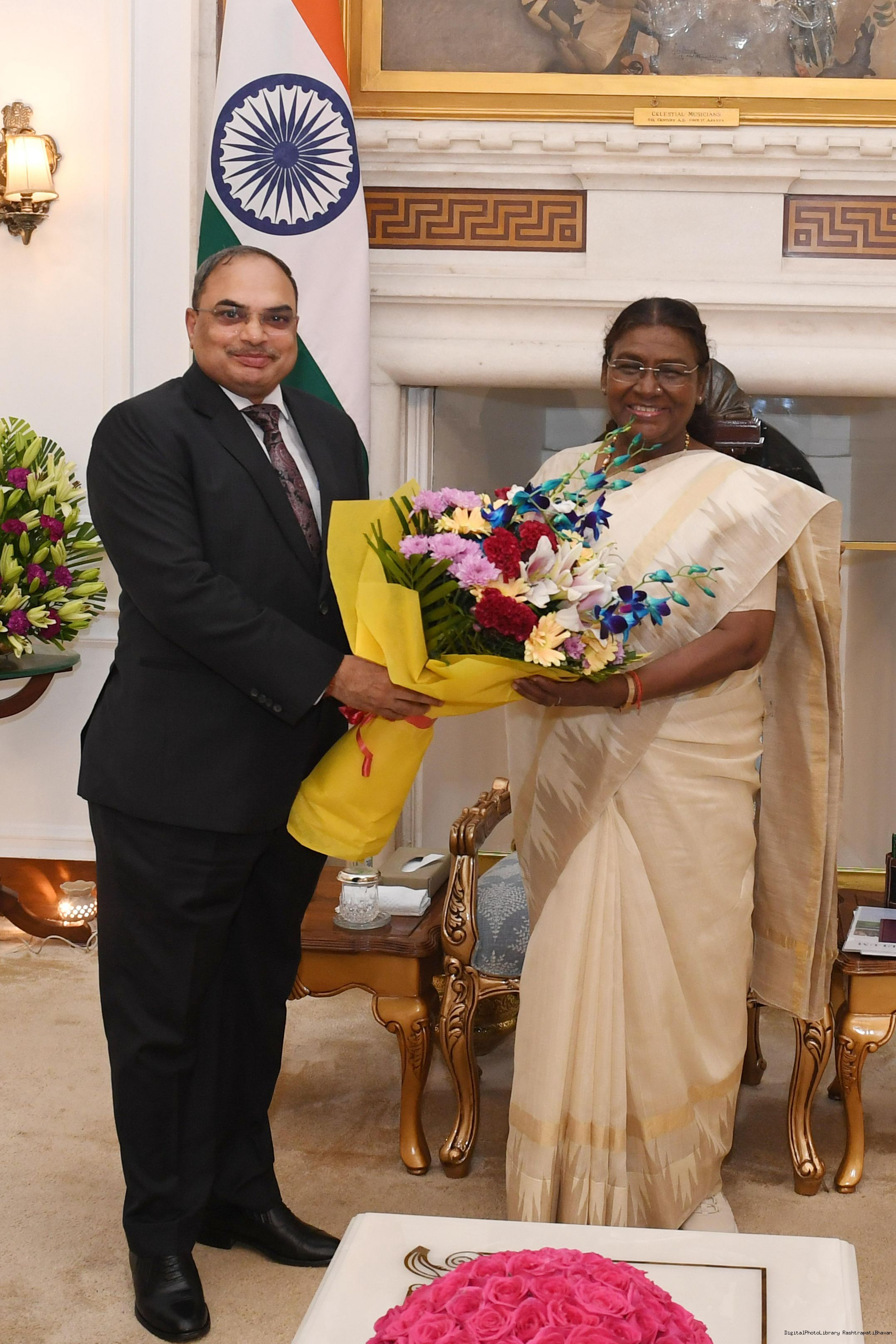 | Caption: | Shri Rajesh Verma, Chairperson, Commission for Air Quality Management in NCR meeting with the President of India Smt. Droupadi Murmu at Rashtrapati Bhavan on September 12, 2024. |