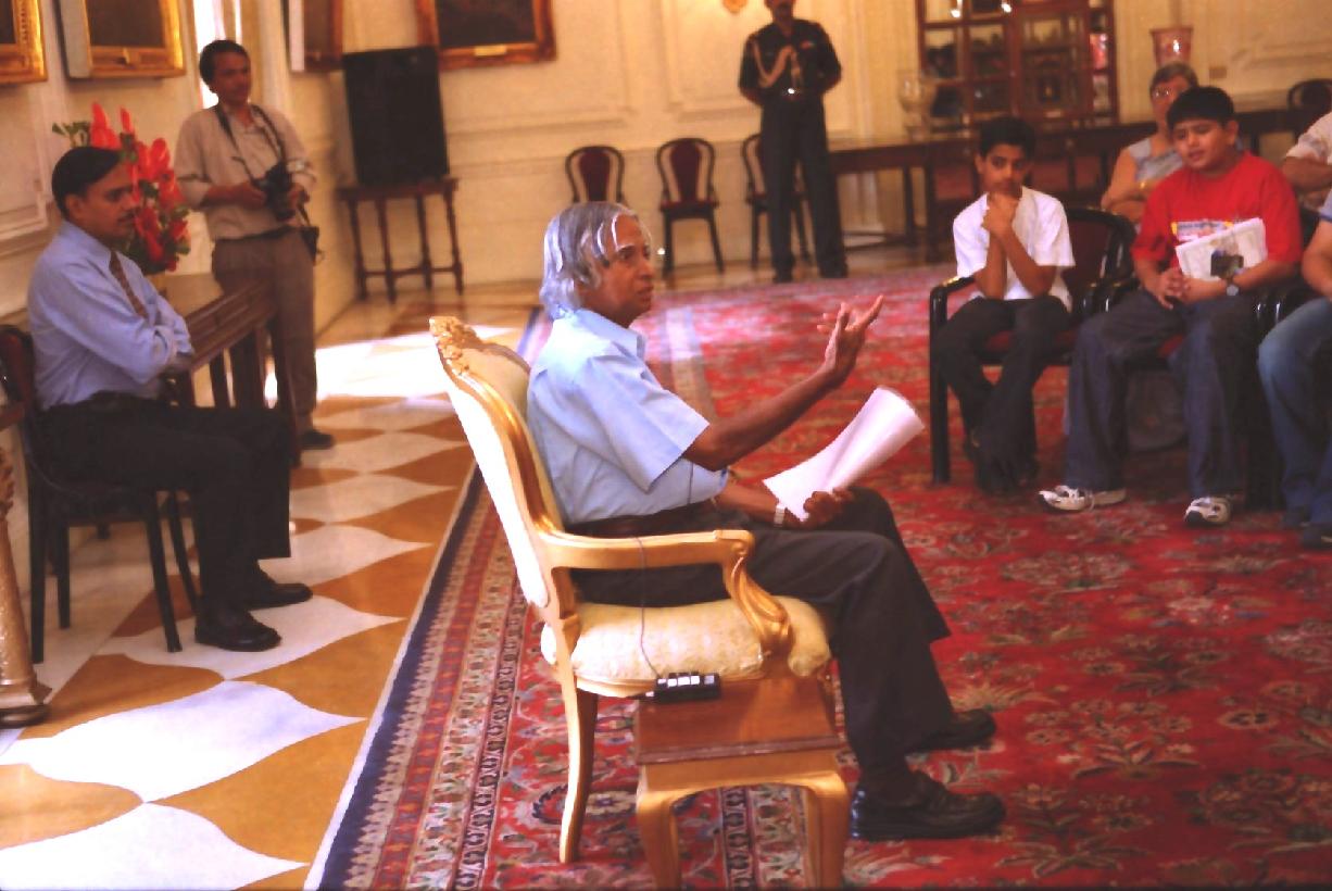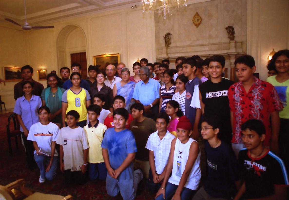 | Caption: | The Students from Beacon High Mumbai calling on the President of India, Dr A P J Abdul Kalam at the Yellow Drawing Room of Rashtrapati Bhavan in New Delhi on July 28, 2003 |