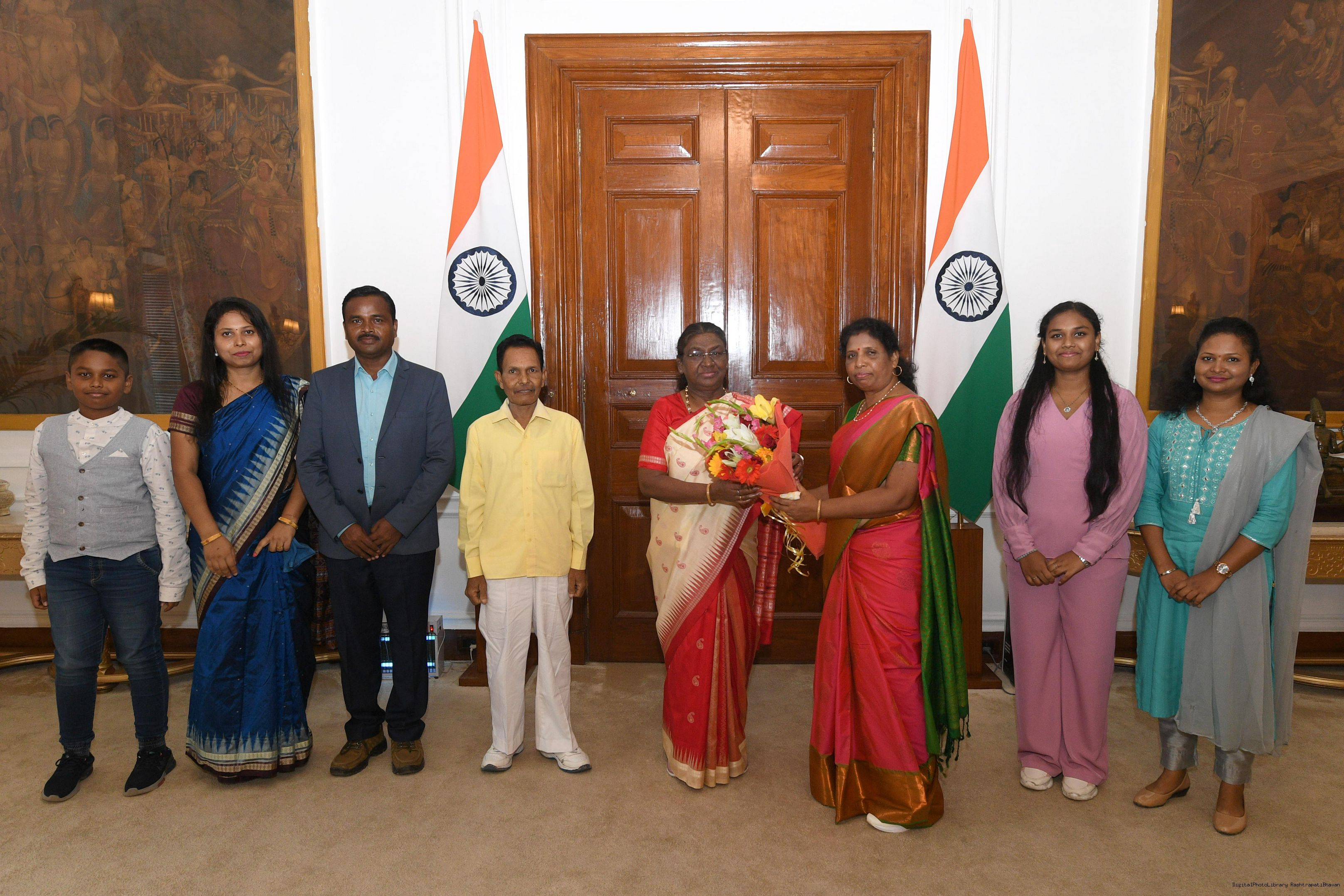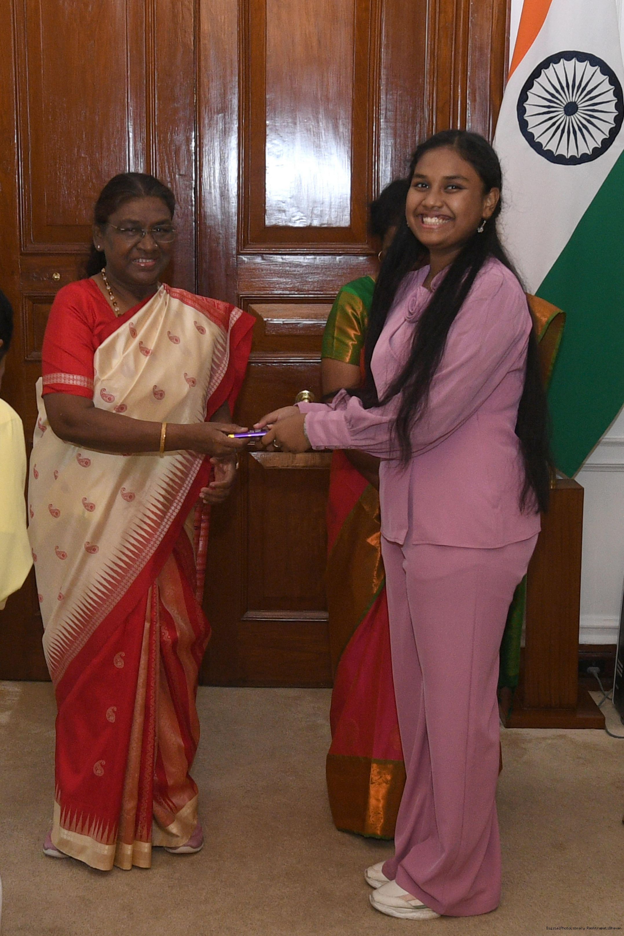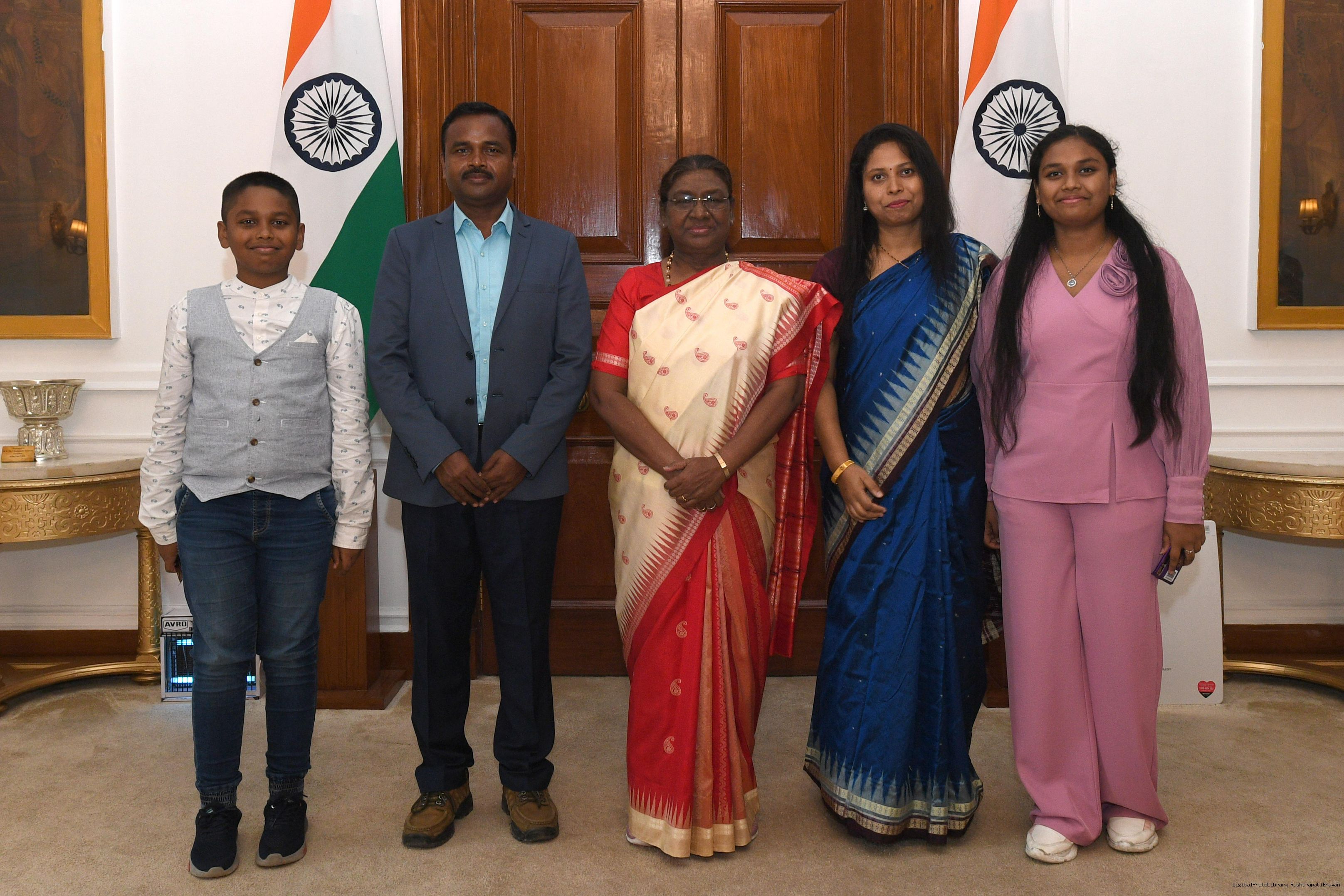 | Caption: | Ms Shilpa Singh Tudu along with others meeting with the President of India Smt. Droupadi Murmu at Rashtrapati Bhavan on July 18, 2024. |