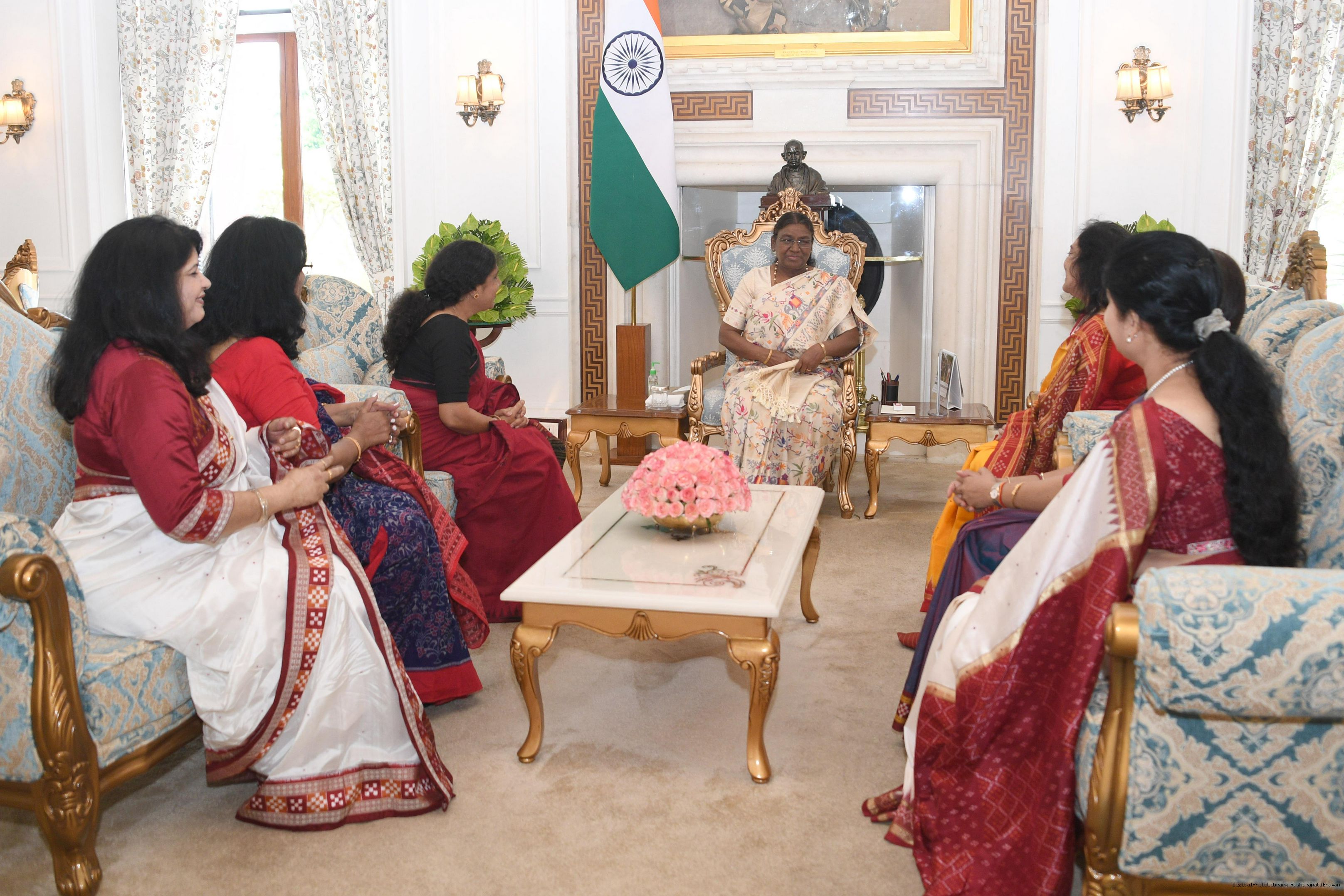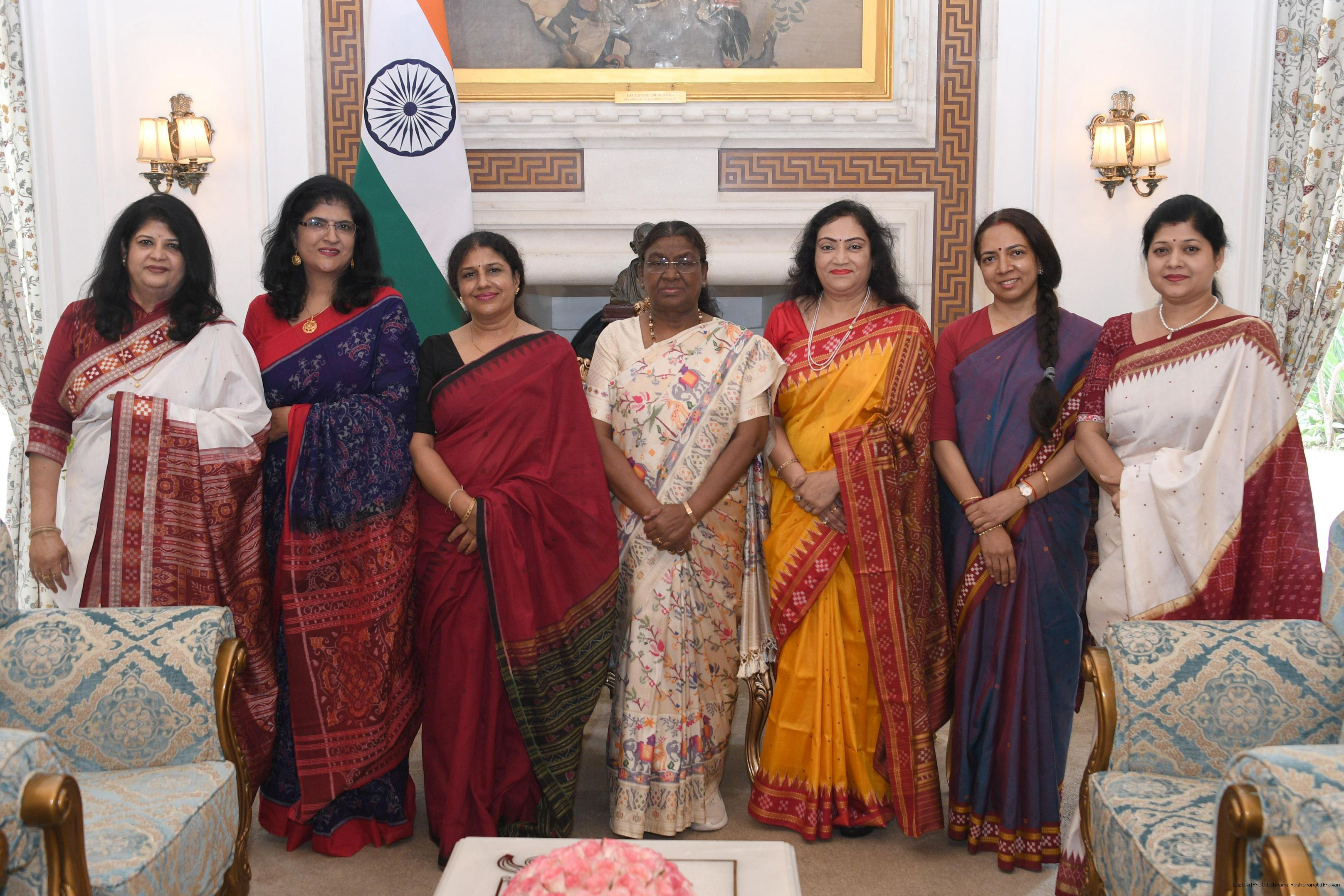 | Caption: | Smt. Mausumi Acharya, President, Utkalini along with others meeting with the President of India Smt. Droupadi Murmu at Rashtrapati Bhavan on July 18, 2024. |