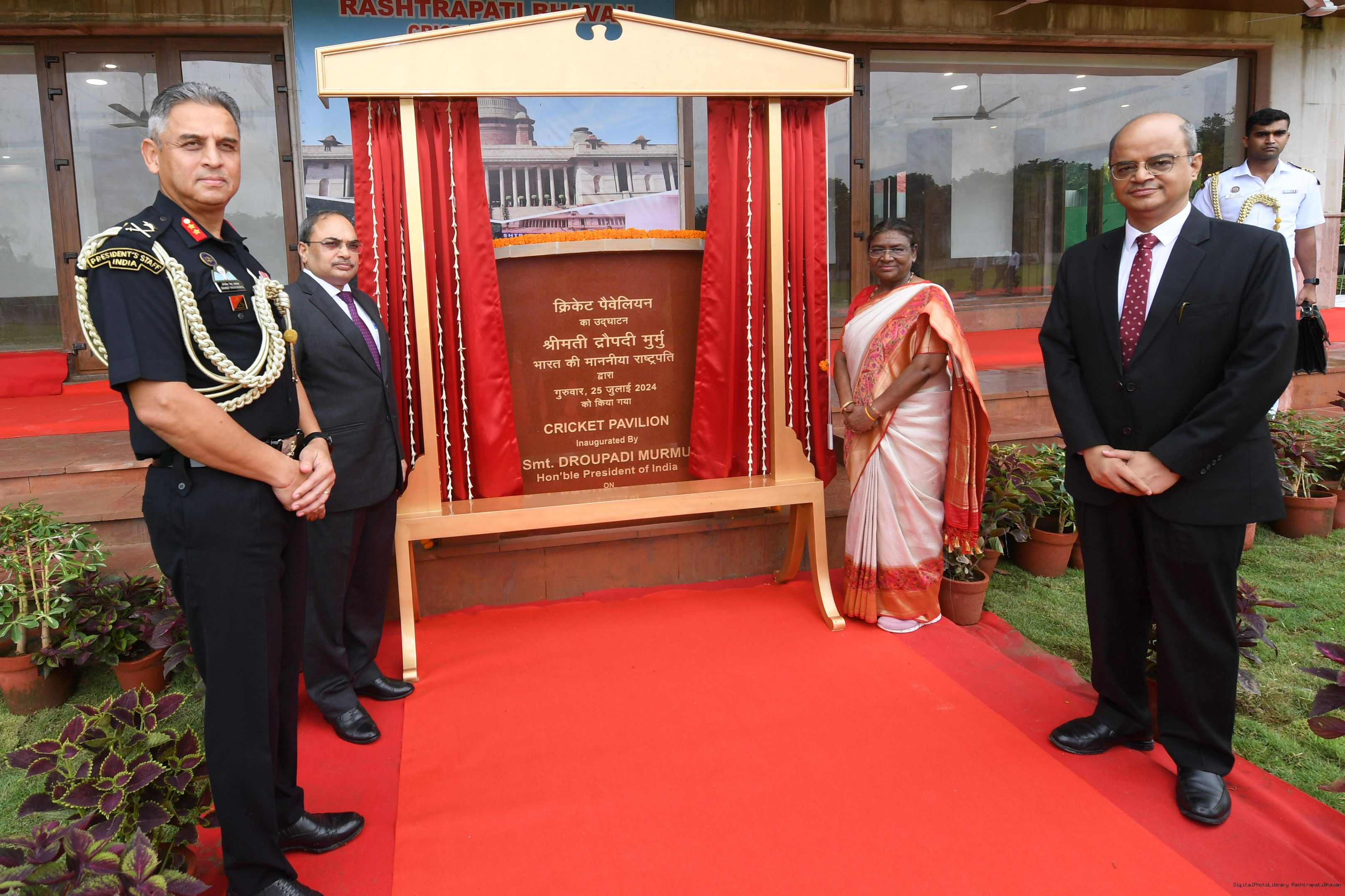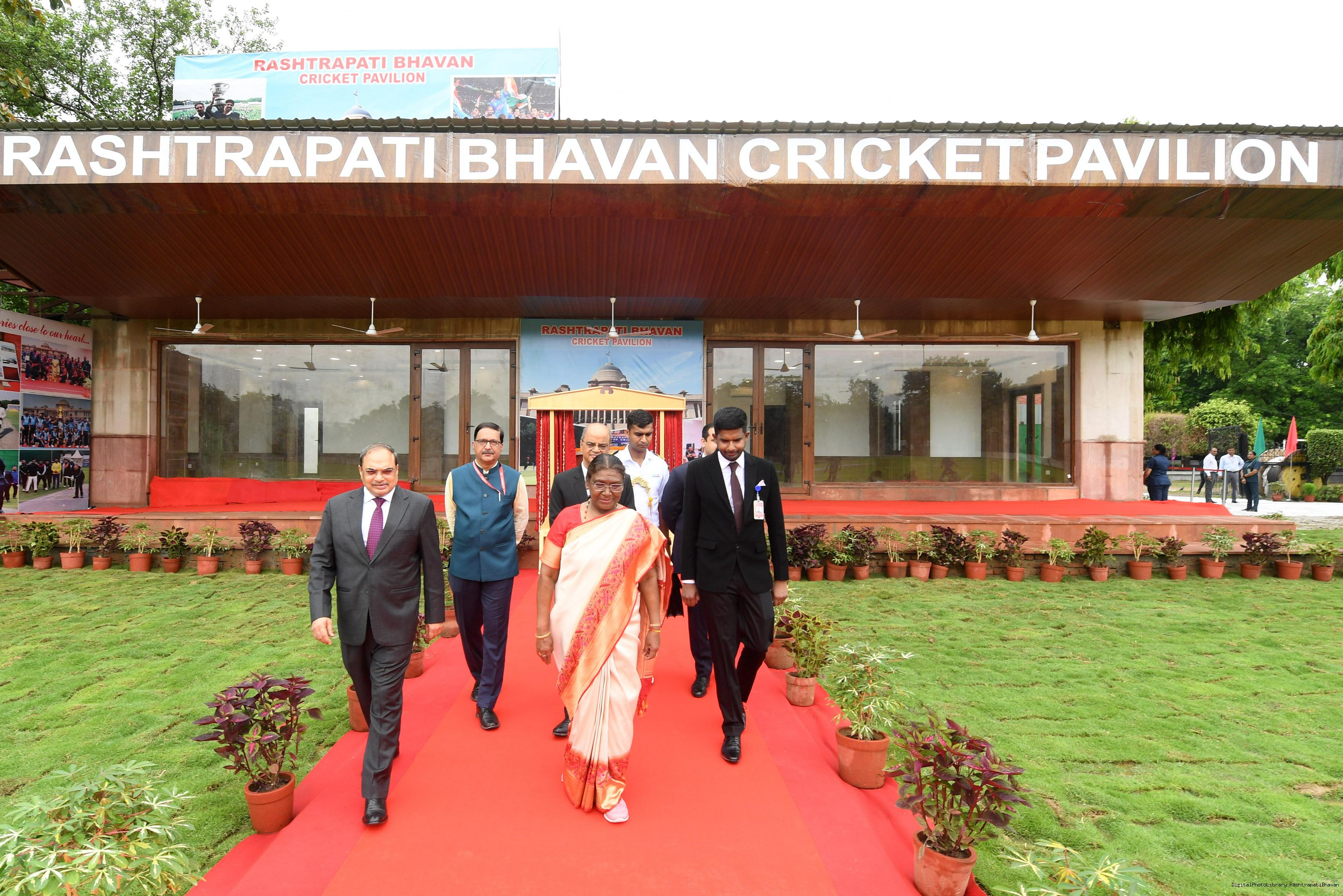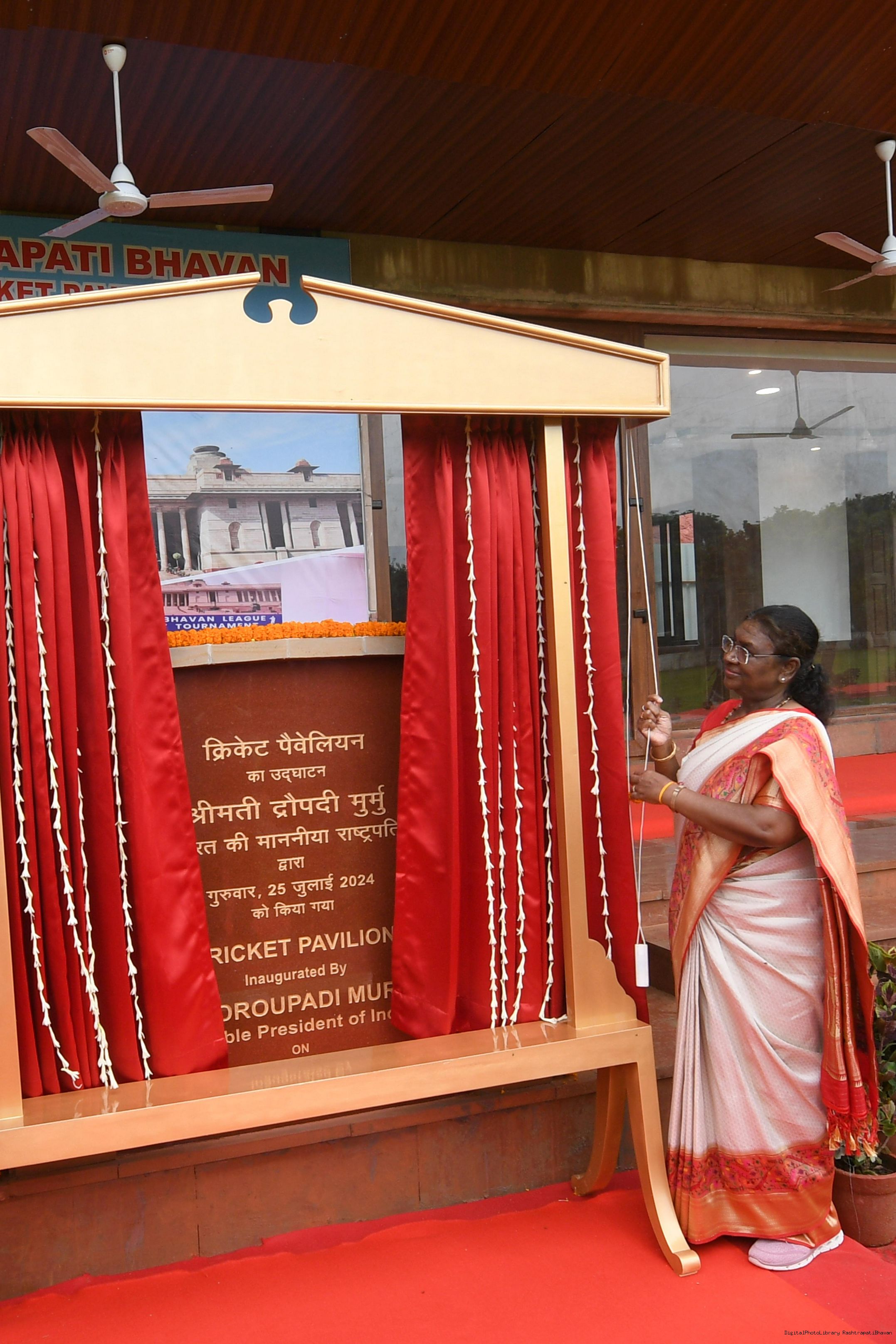 | Caption: | The President of India, Smt Droupadi Murmu Inaugurated Cricket Pavilion, Sch-B, President Estate at Rashtrapati Bhavan on July 25, 2024. |