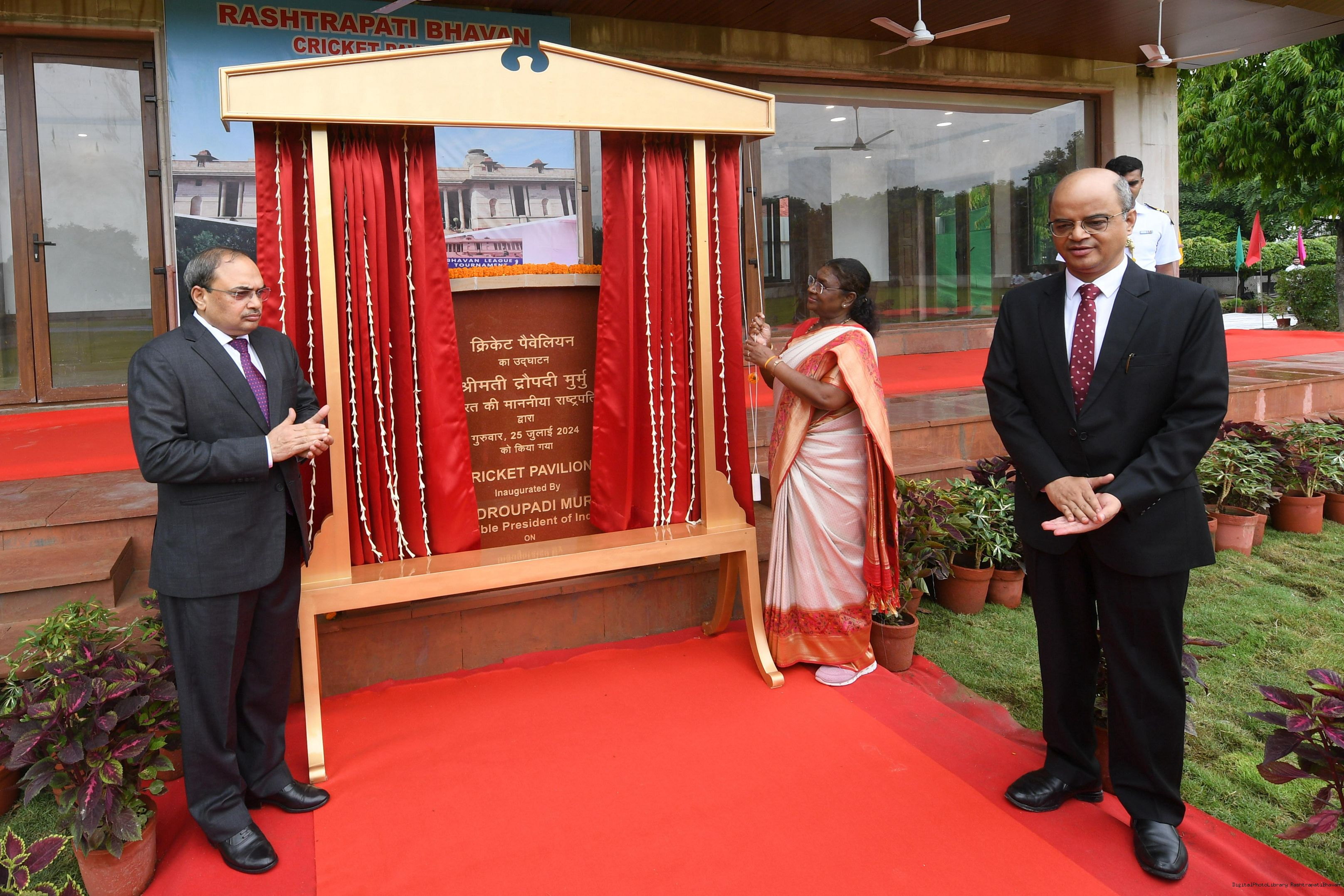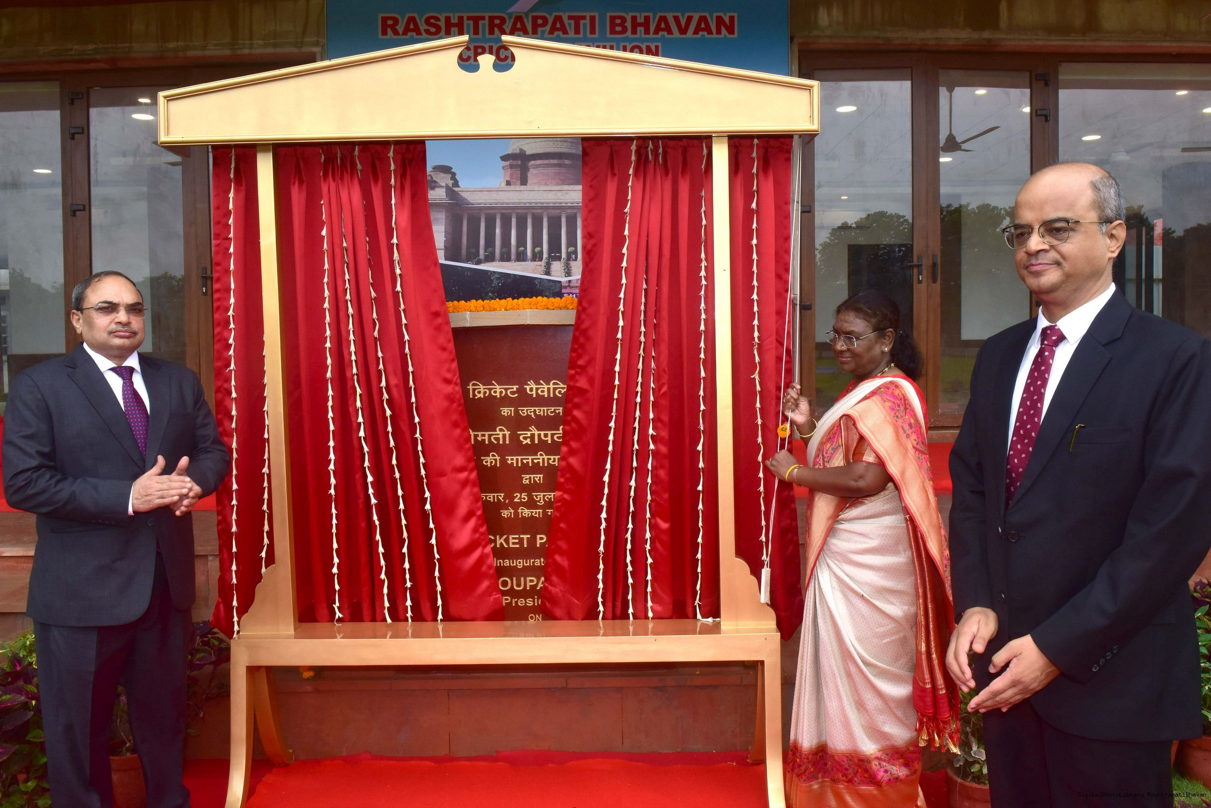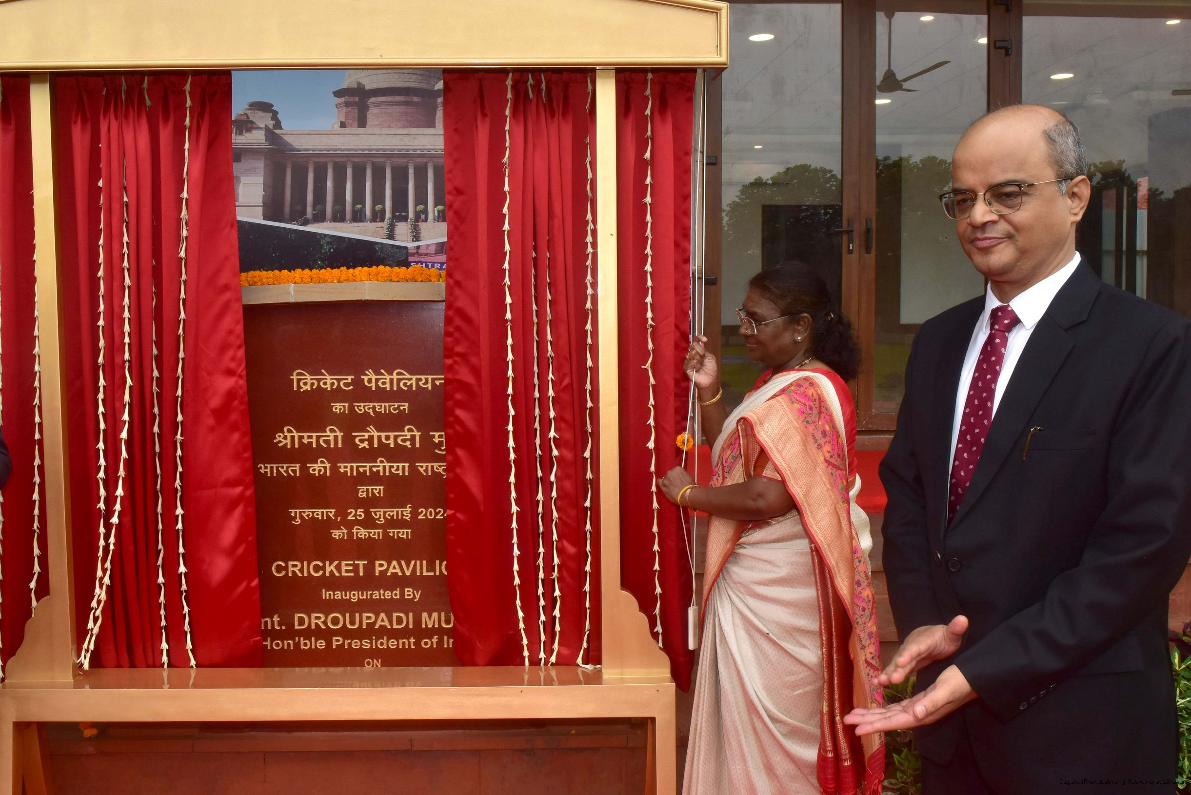 | Caption: | The President of India, Smt Droupadi Murmu Inaugurated Cricket Pavilion, Sch-B, President Estate at Rashtrapati Bhavan on July 25, 2024. |