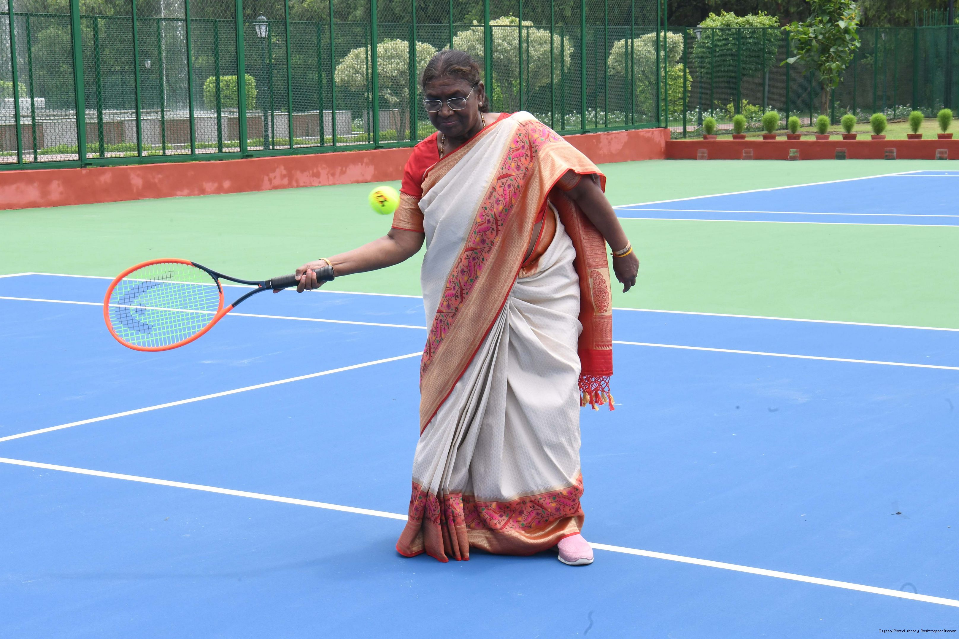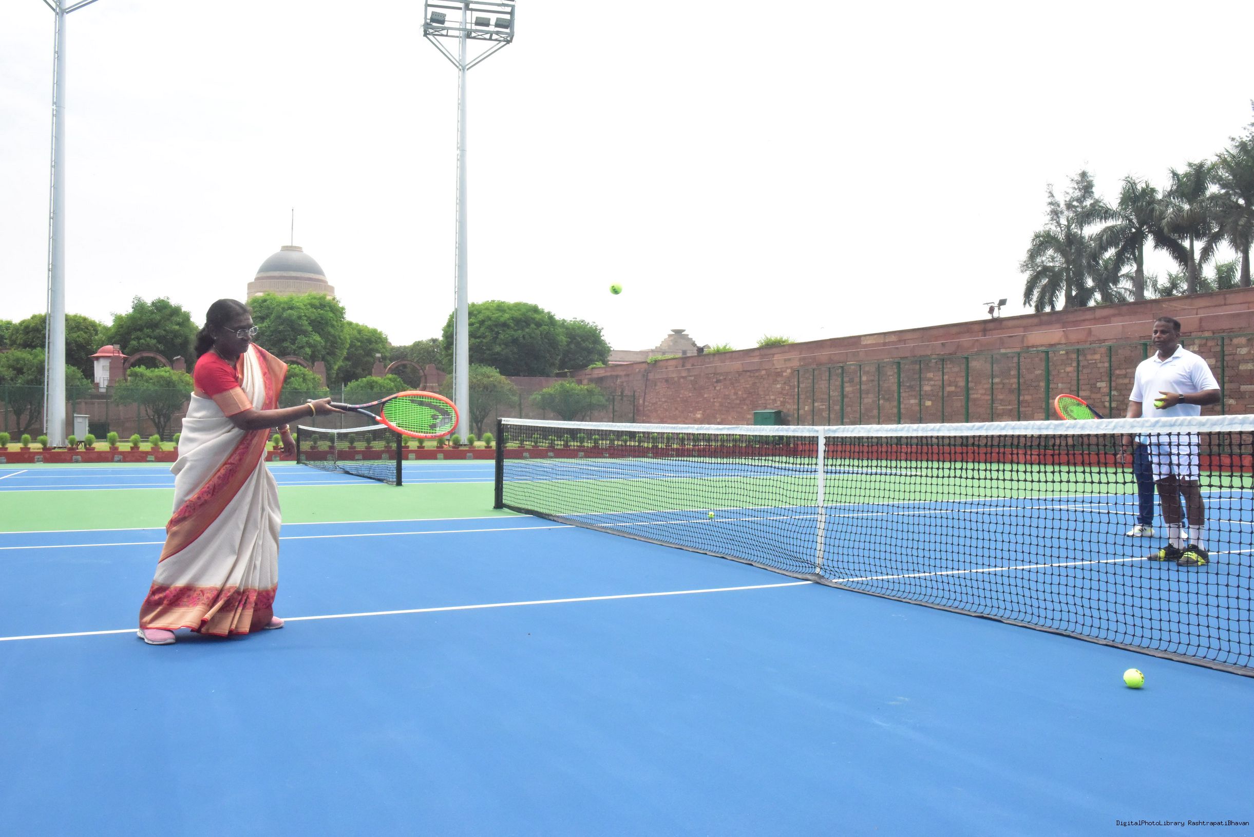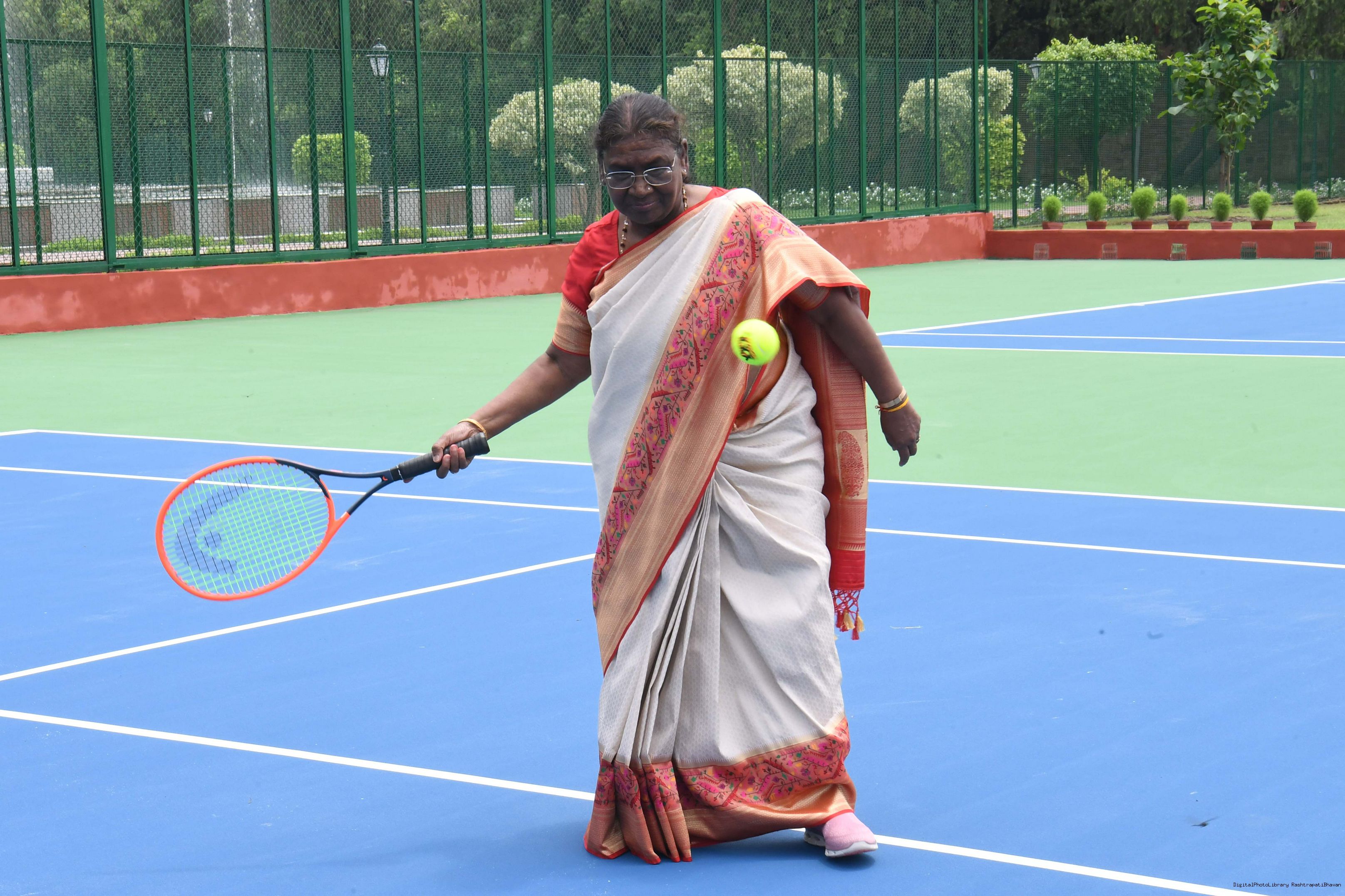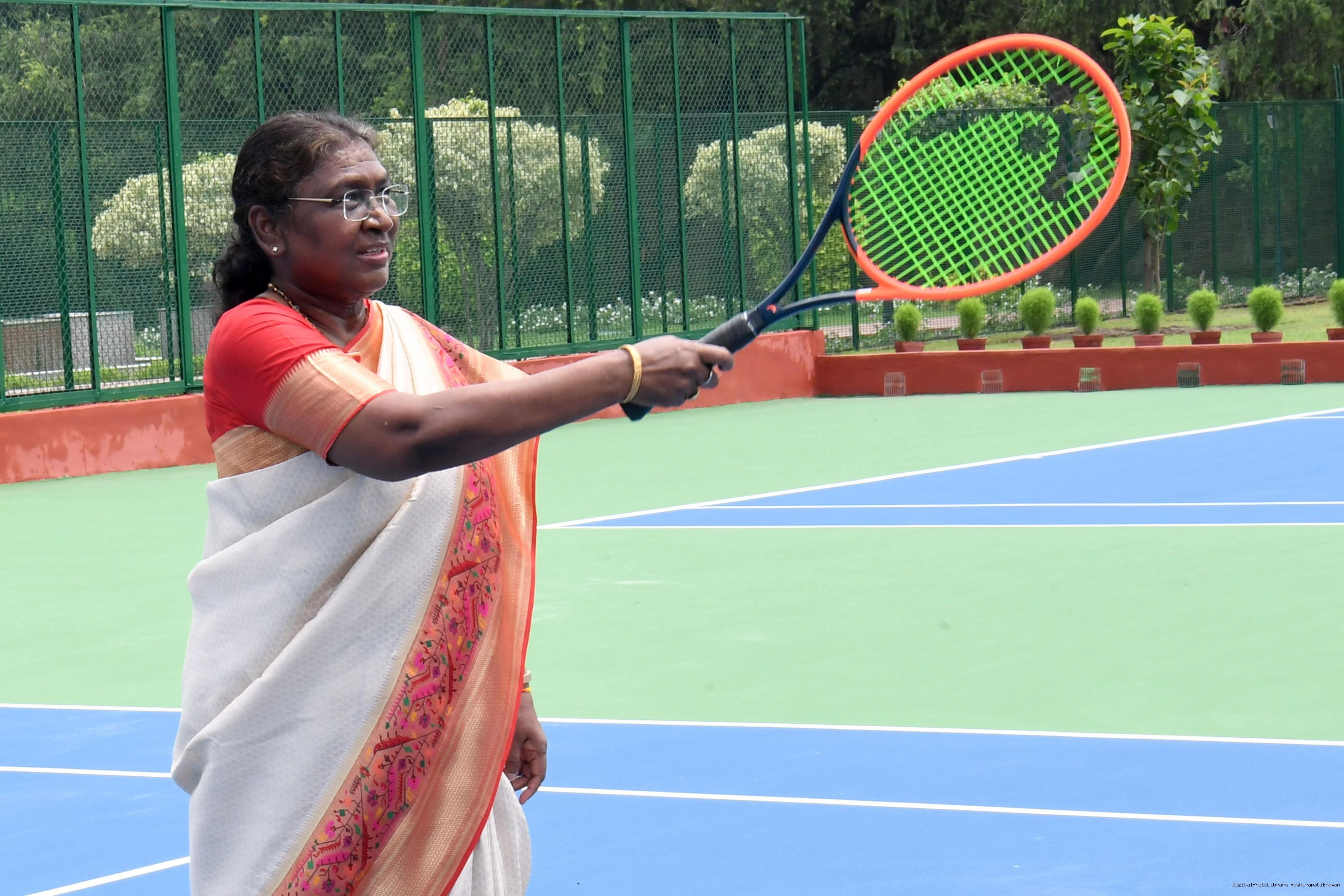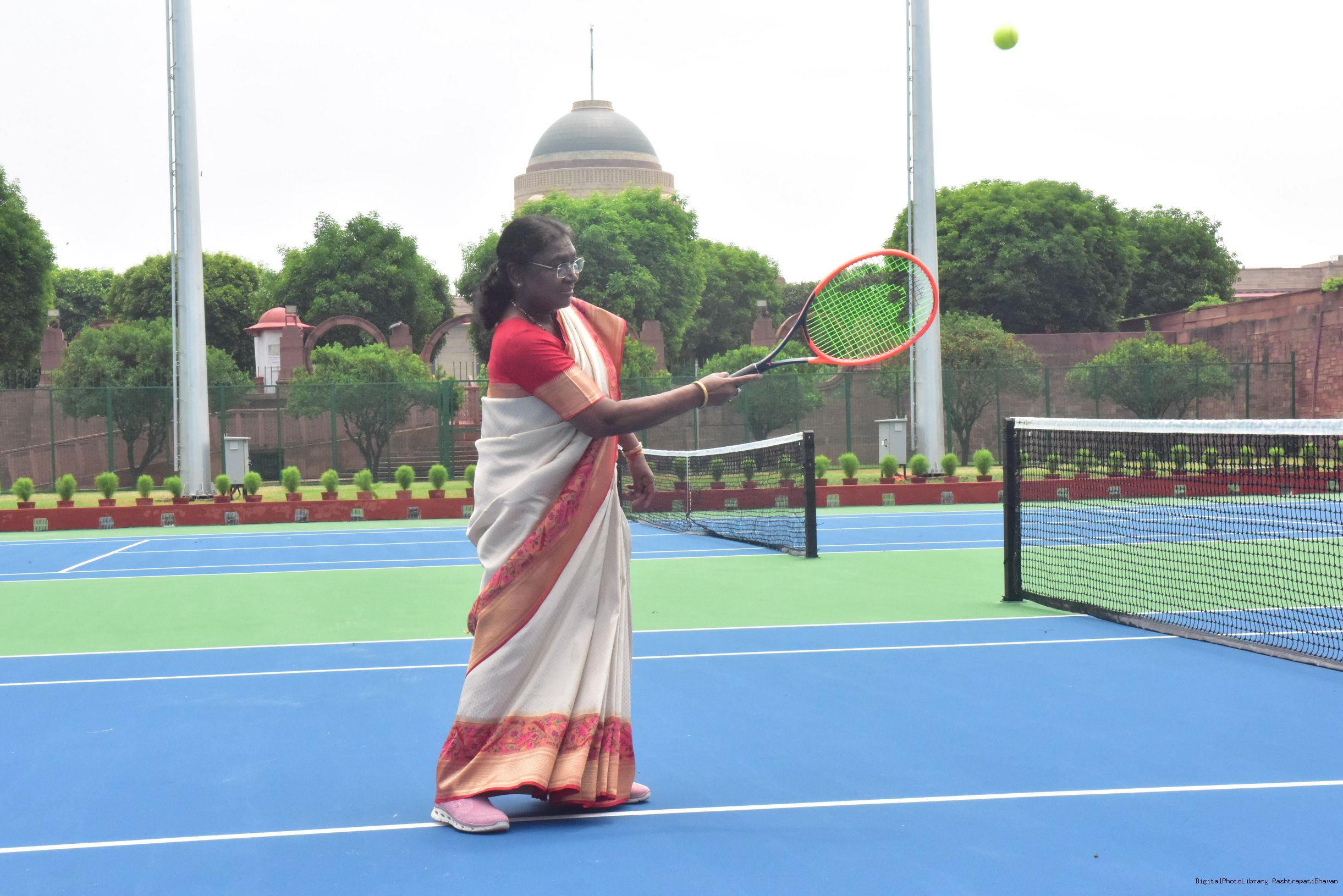 | Caption: | The President of India, Smt Droupadi Murmu Inaugurated Tennis Courts (Synthetic Grass) President Estate at Rashtrapati Bhavan on July 25, 2024. |