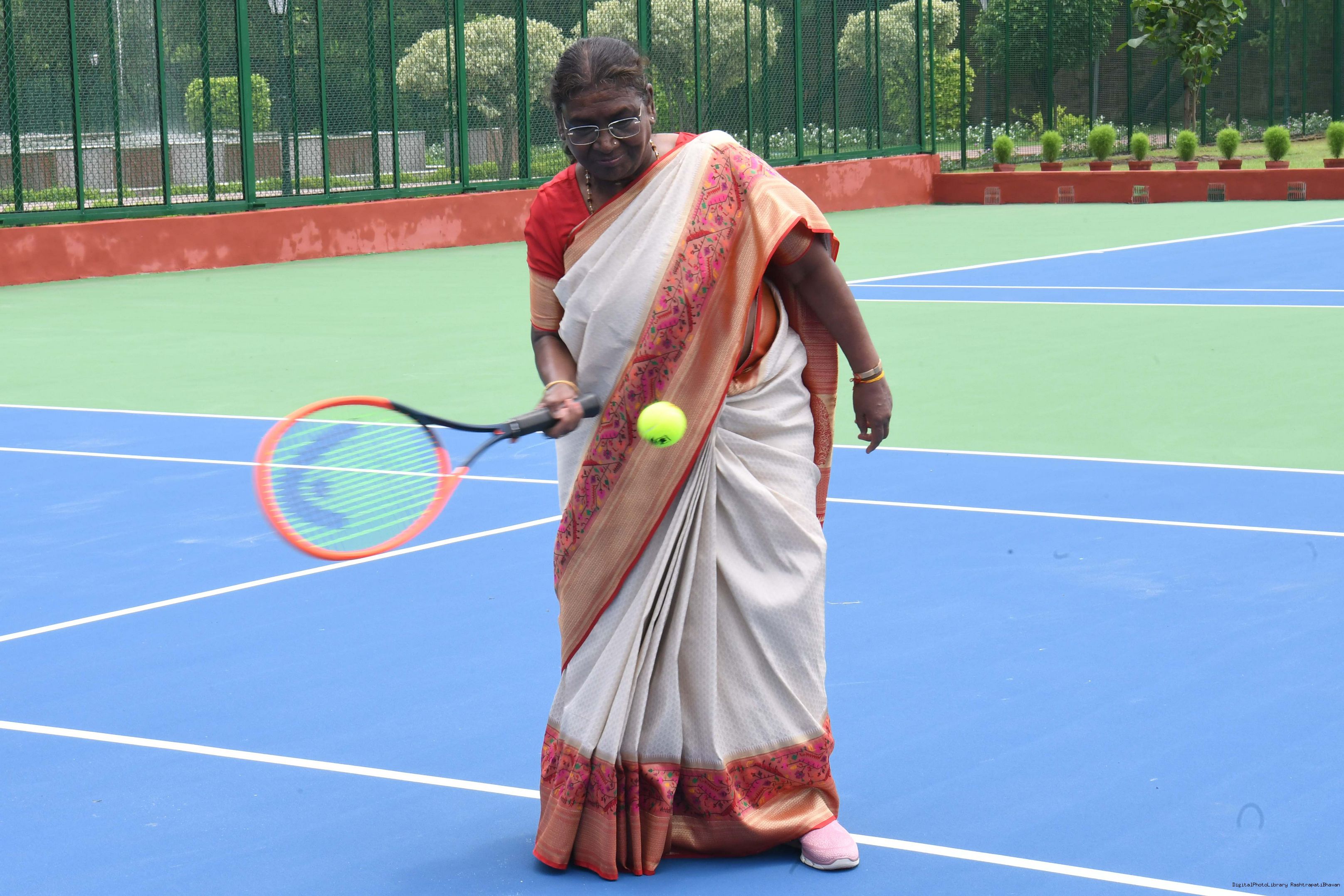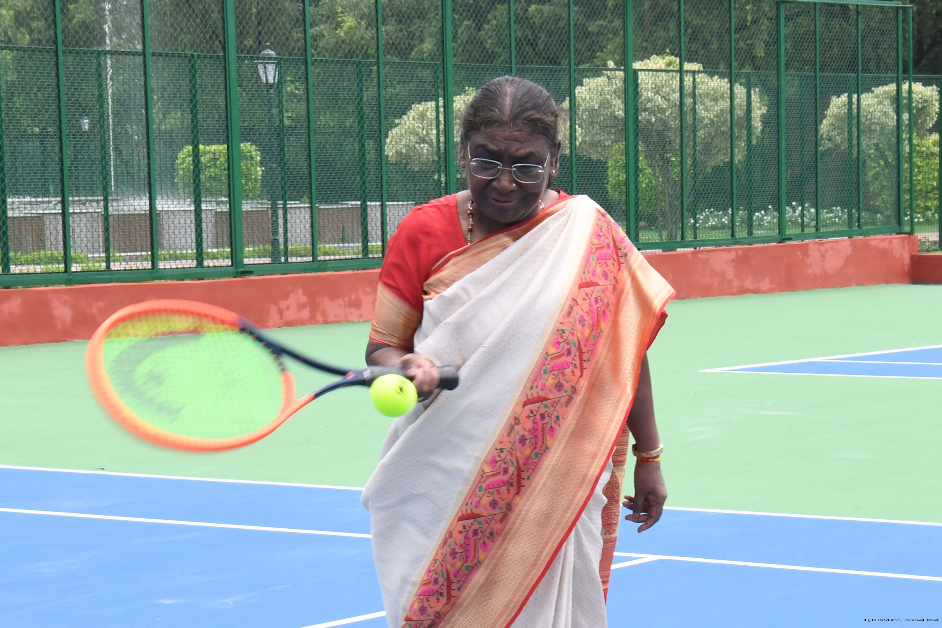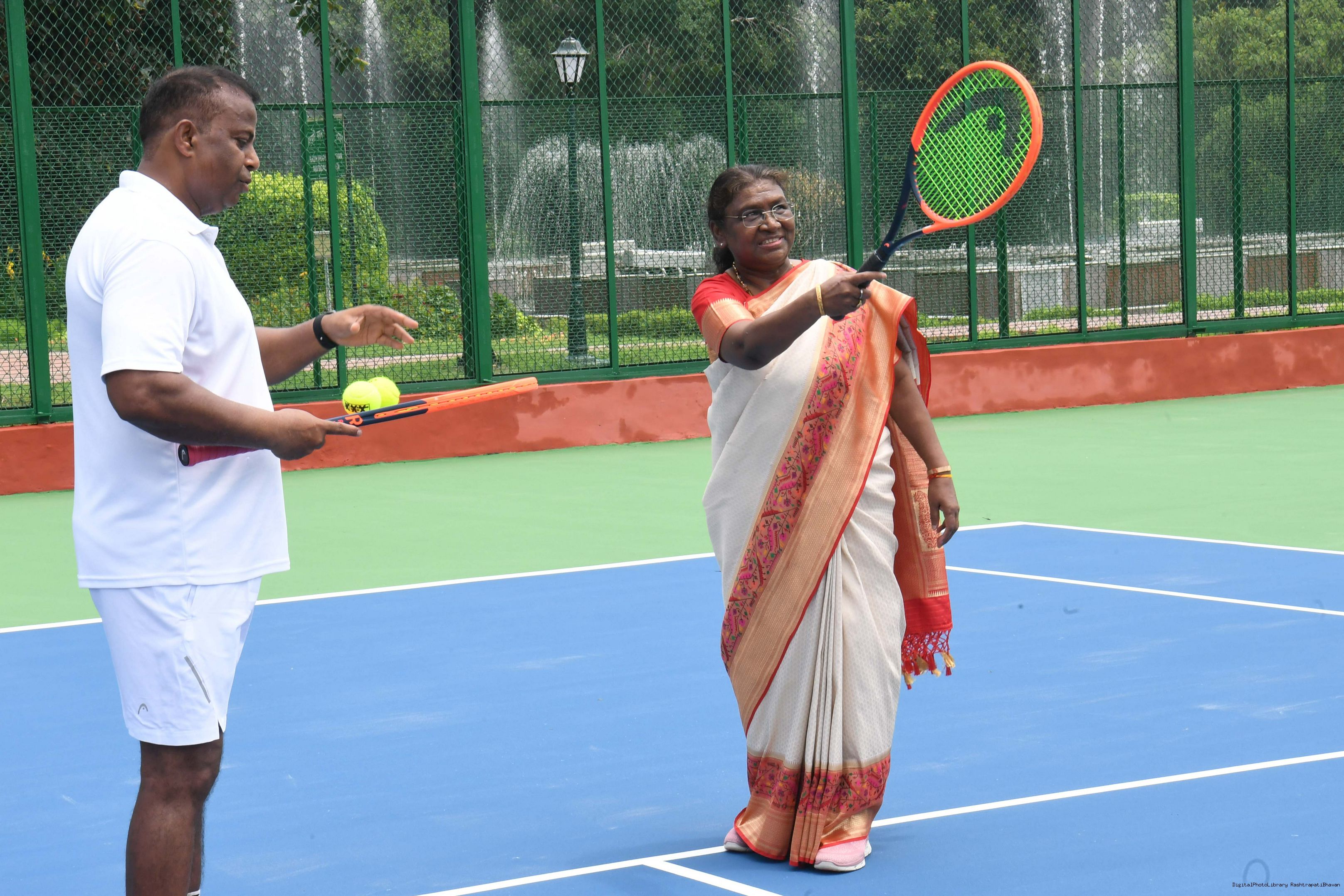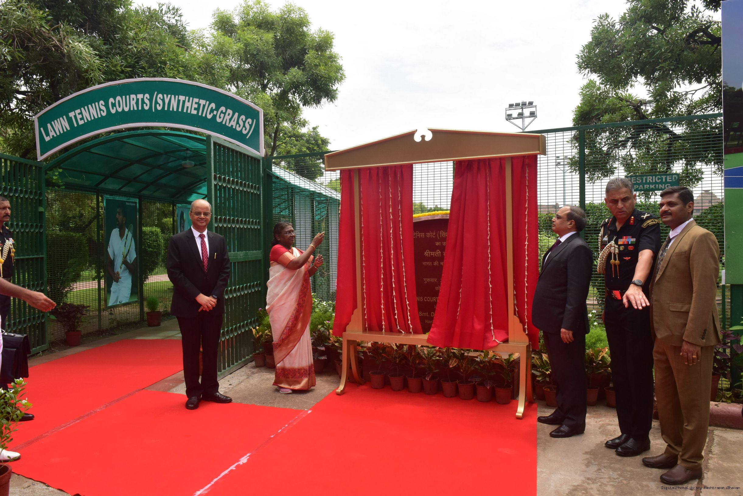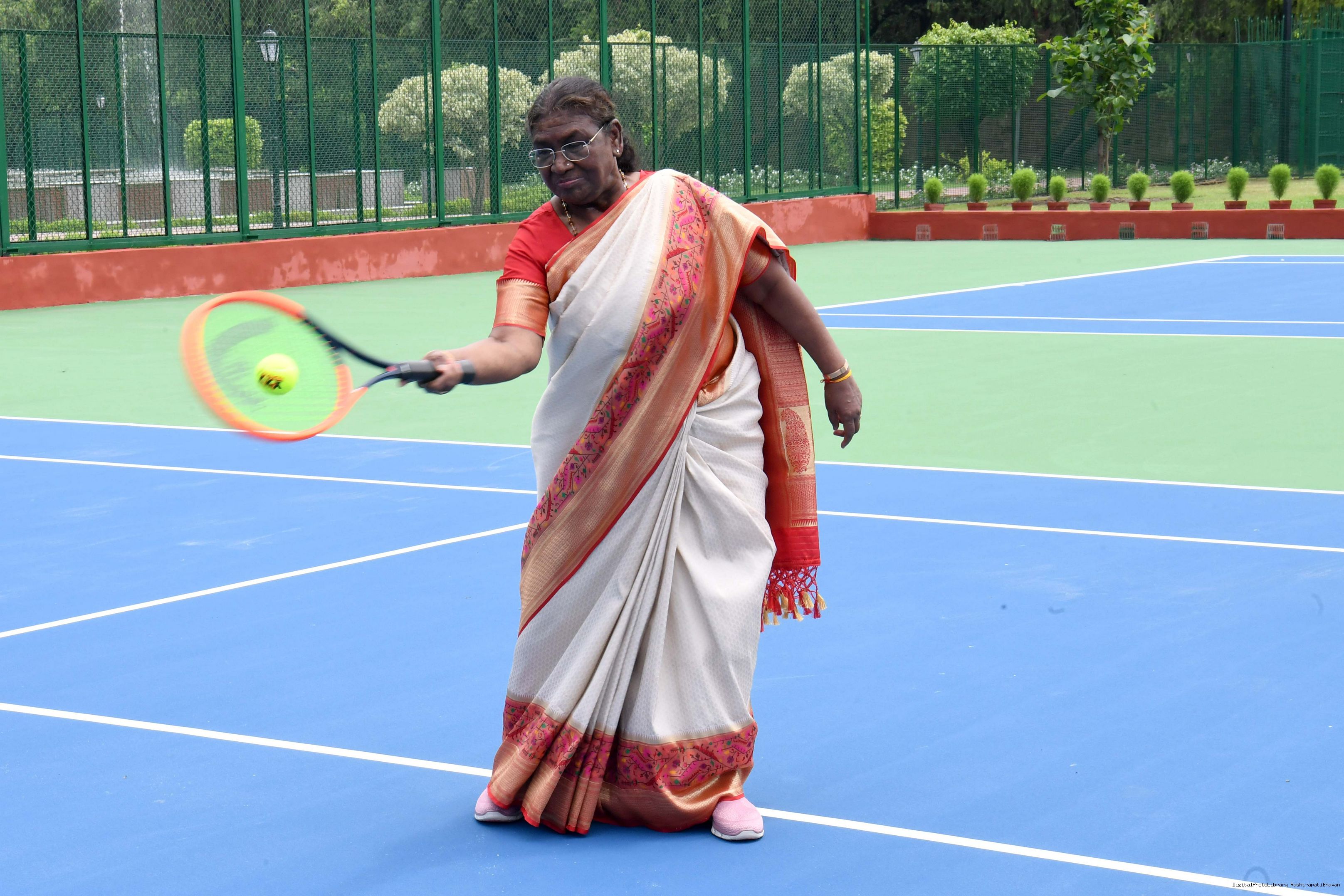 | Caption: | The President of India, Smt Droupadi Murmu Inaugurated Tennis Courts (Synthetic Grass) President Estate at Rashtrapati Bhavan on July 25, 2024. |