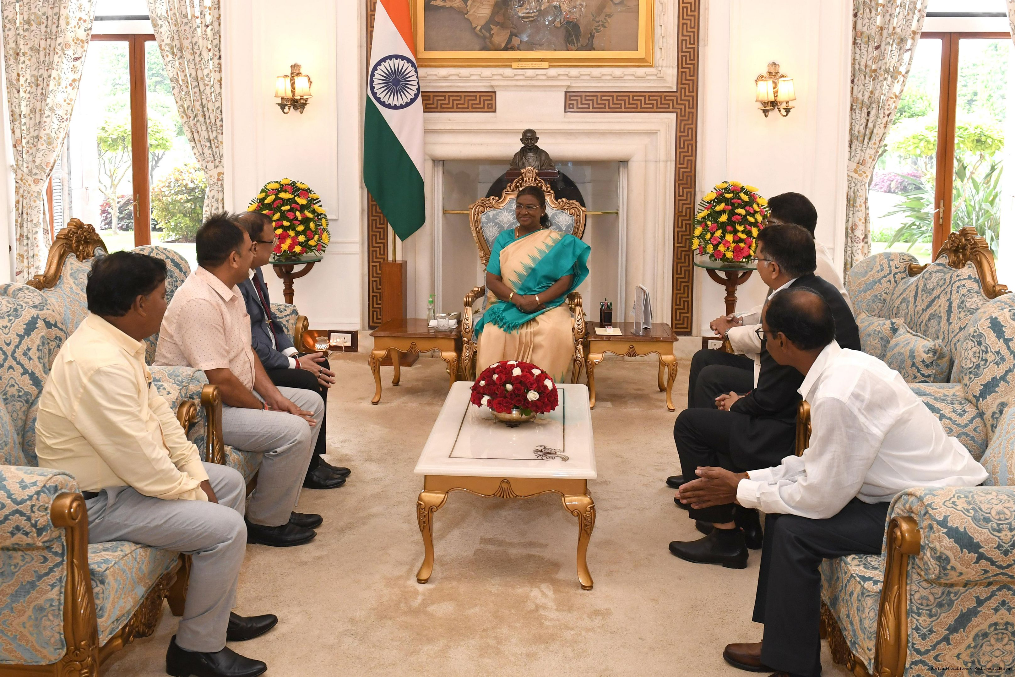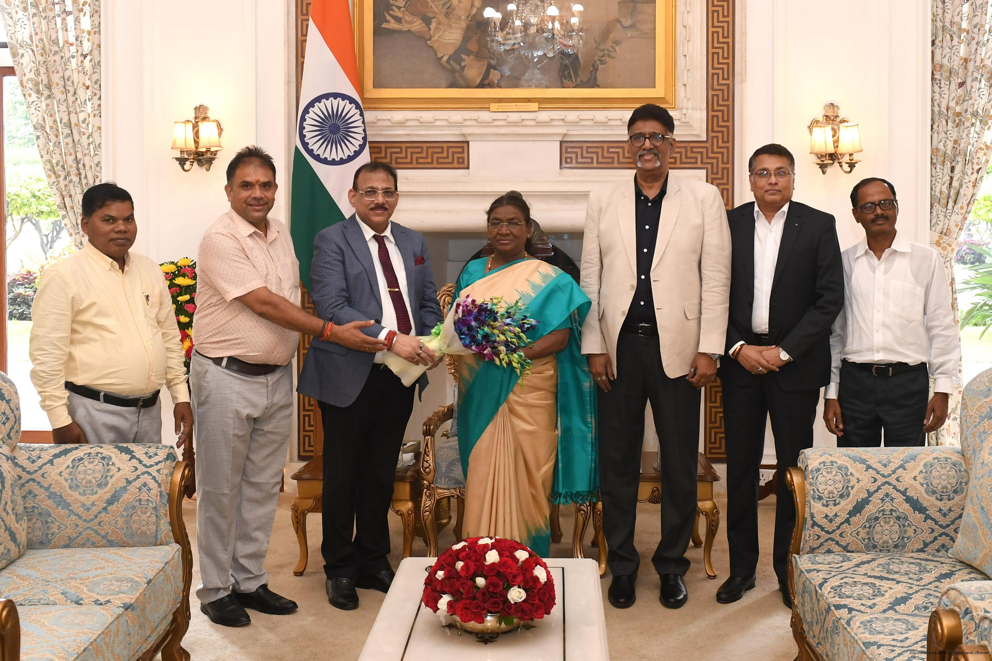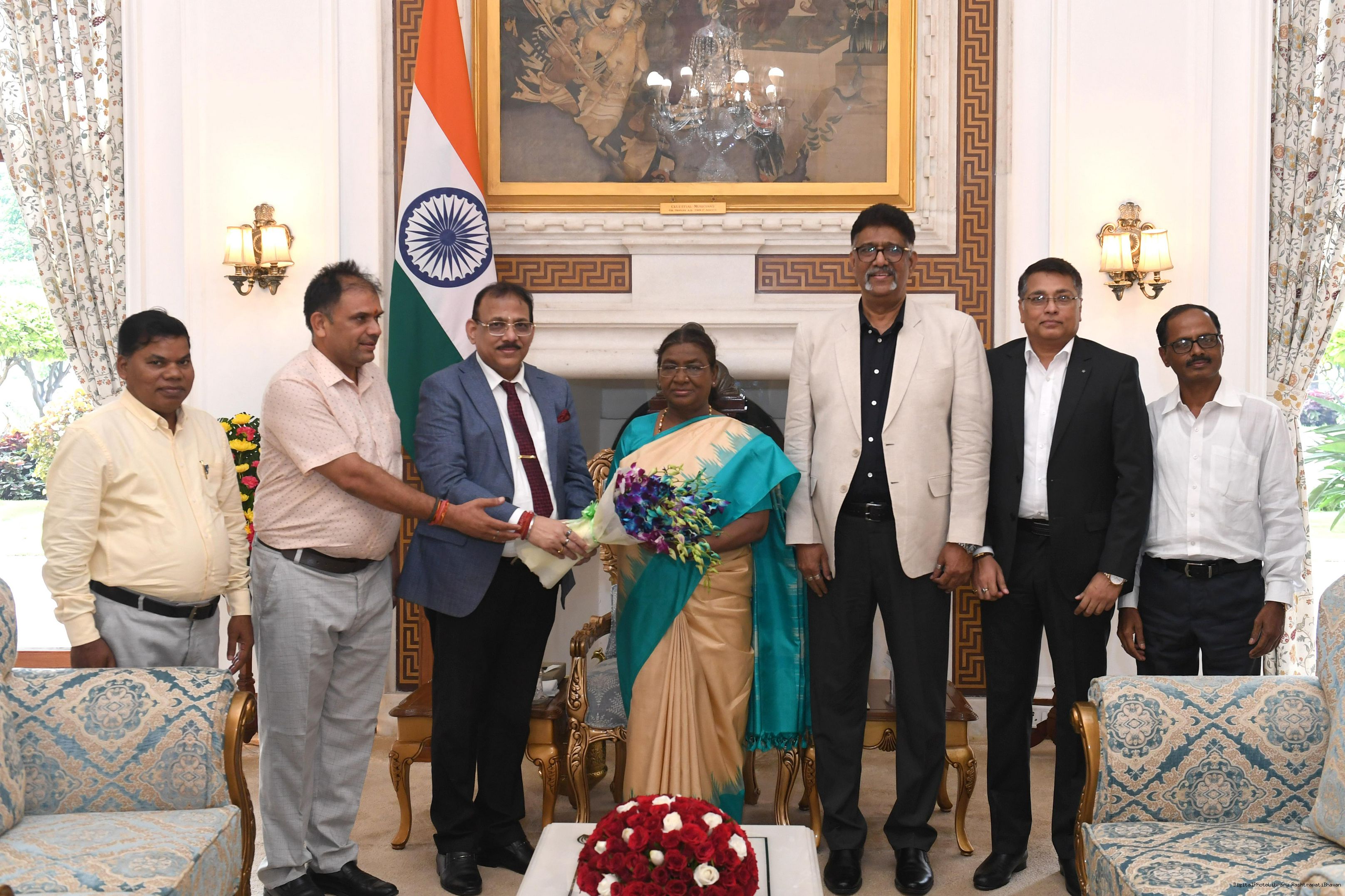 | Caption: | Dr. Manoranjan Mohanty, General Secretary, Sri Jagannath Samiti along with others meeting with the President of India Smt. Droupadi Murmu at Rashtrapati Bhavan on September 17, 2024. |