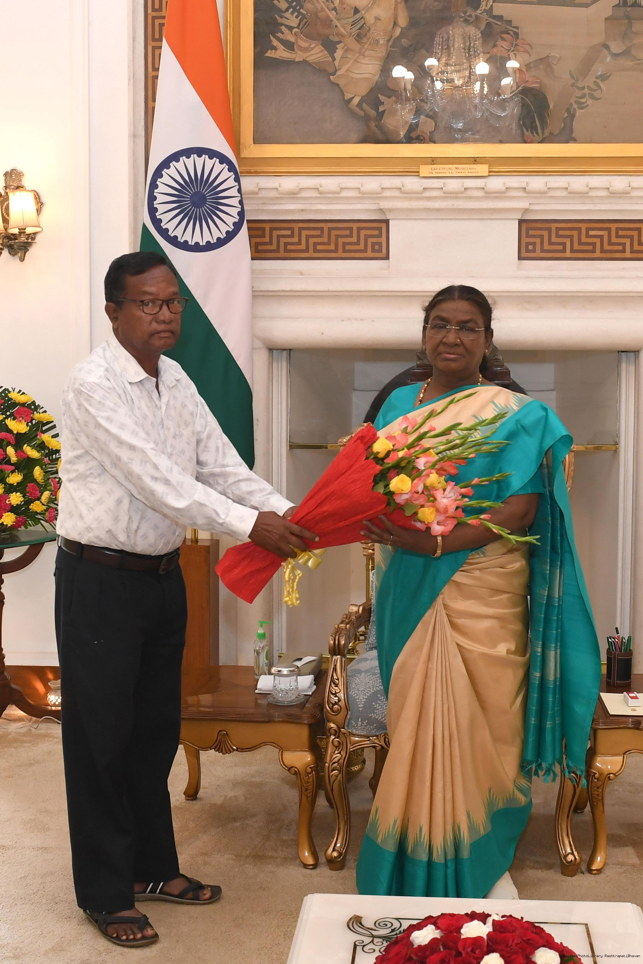 | Caption: | Shri Selai Charan Purty from Sunamara, District Mayurbhanj, Odisha meeting with the President of India Smt. Droupadi Murmu at Rashtrapati Bhavan on September 17, 2024. |