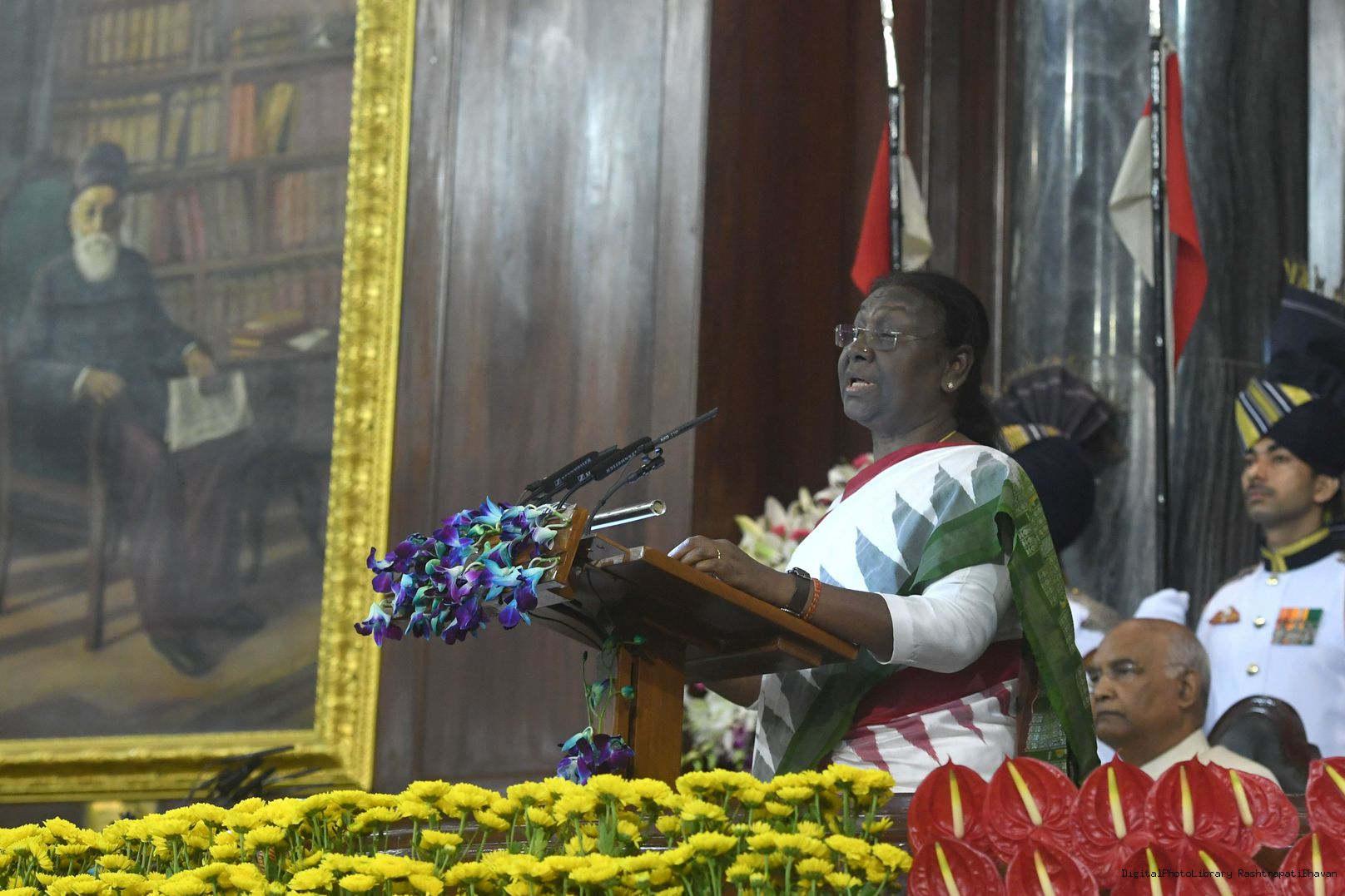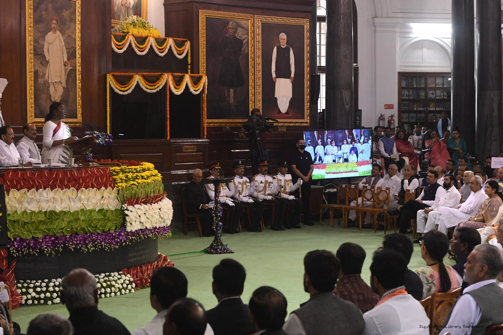 | Caption: | The Chief Justice of India, Shri Justice N.V. Ramana administered the oath of the office of the President of India to Smt. Droupadi Murmu, at a swearing-in ceremony in the central hall of Parliament, New Delhi on July 25, 2022. |