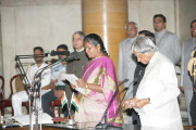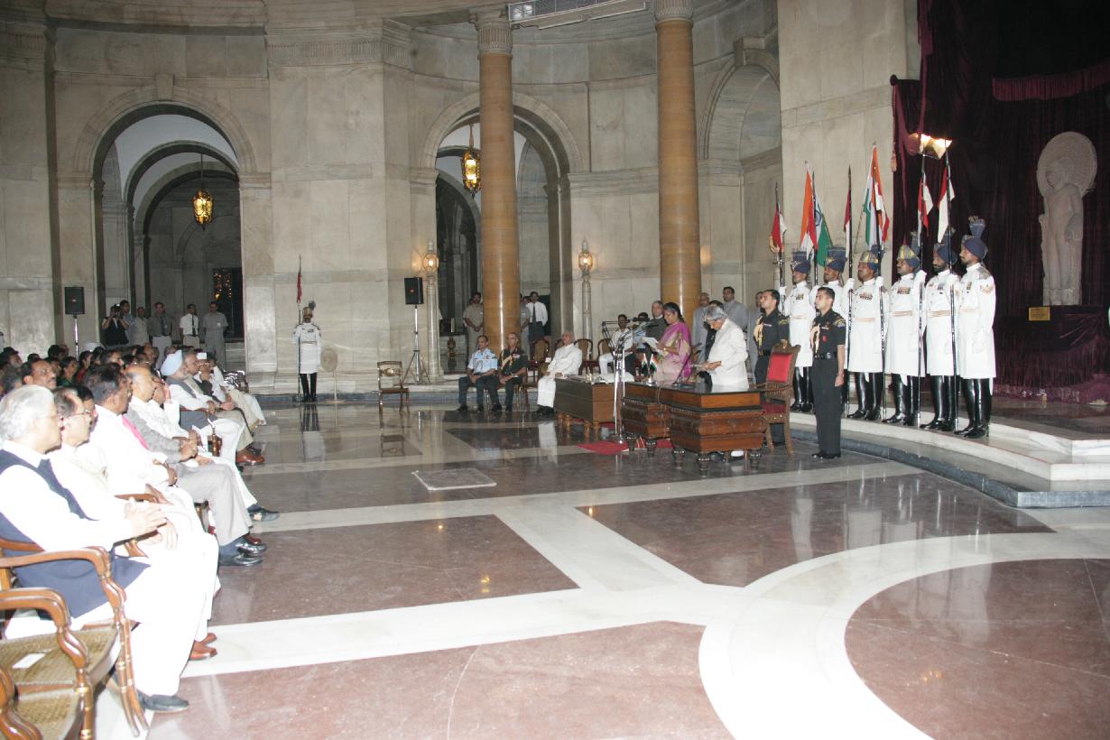 | Caption: | The President of India, Dr A P J Abdul Kalam administering the oath of the Council of Minister of State at a Swearing-in-Ceremony at the Durbar Hall of Rashtrapati Bhavan in New Delhi on May 18, 2007 |