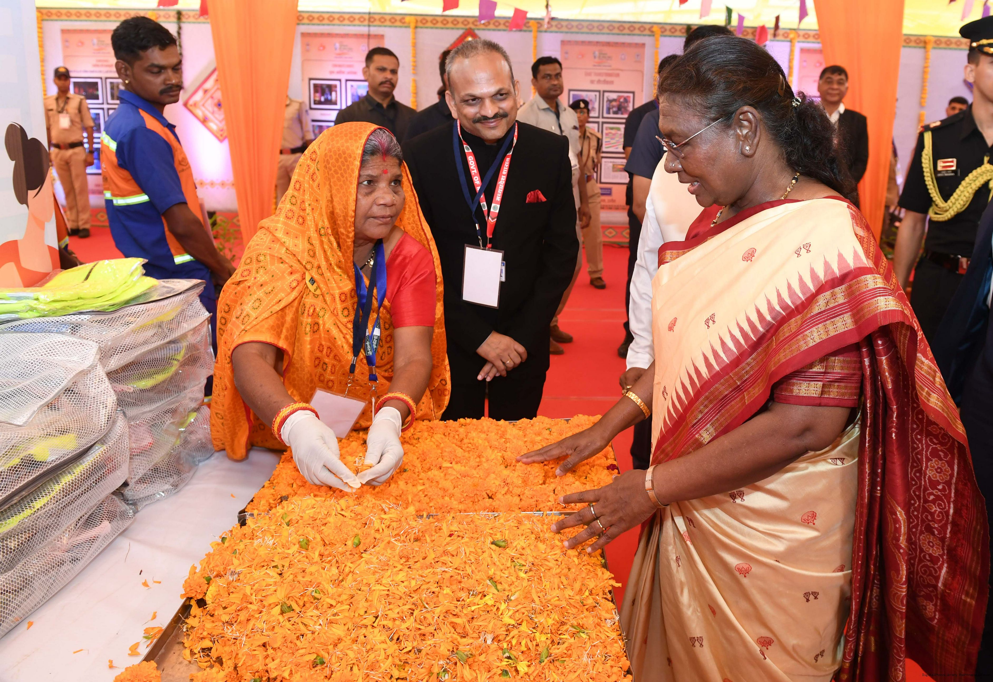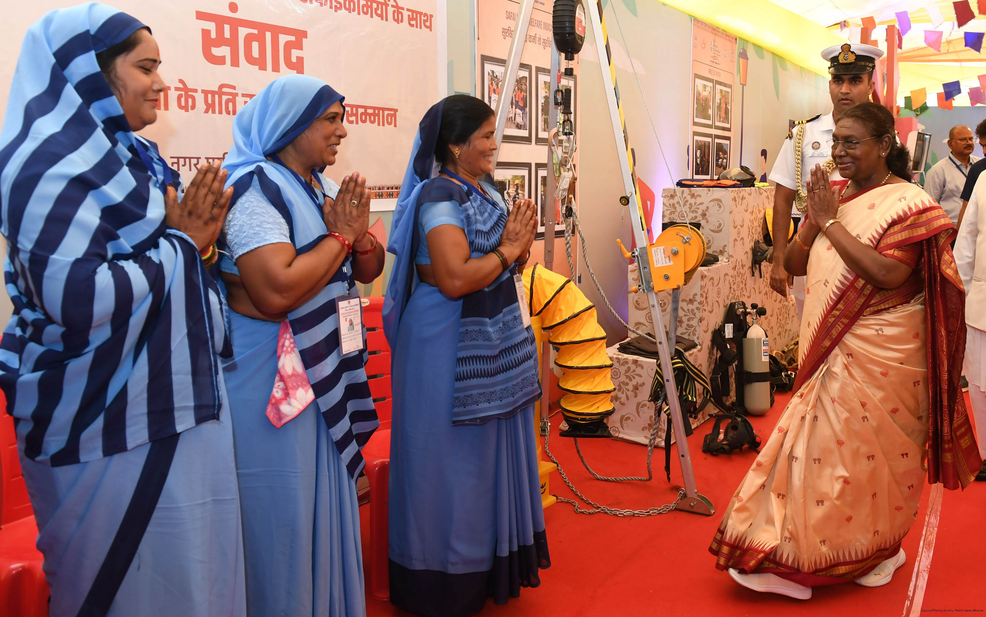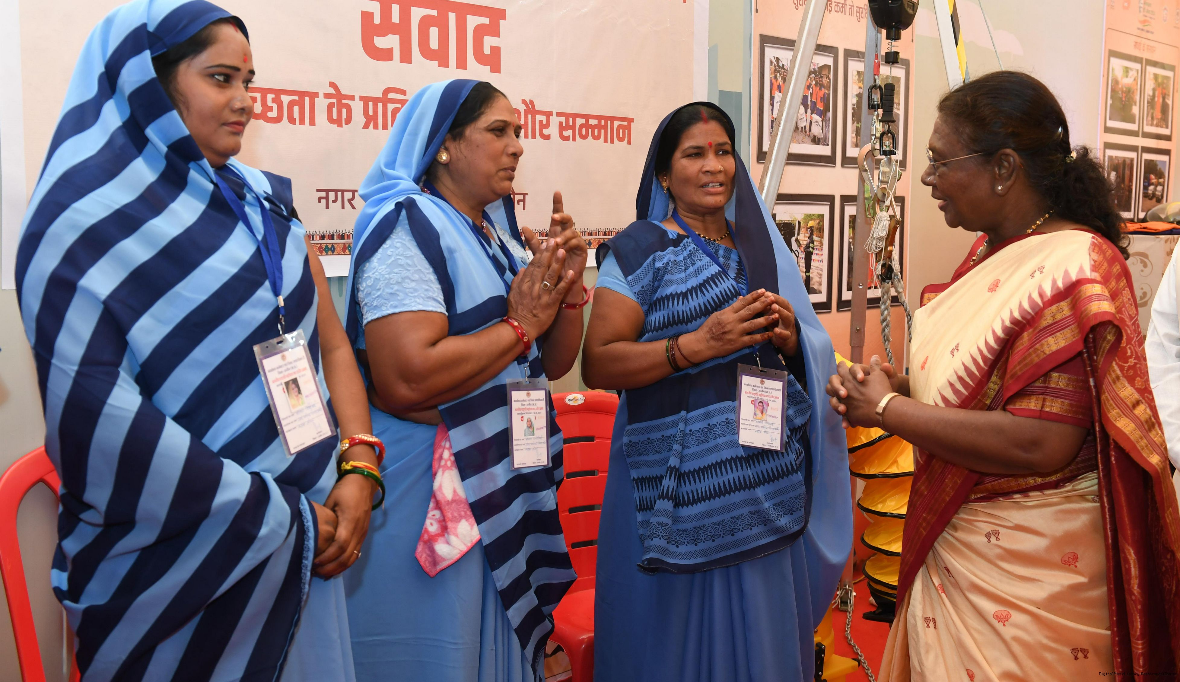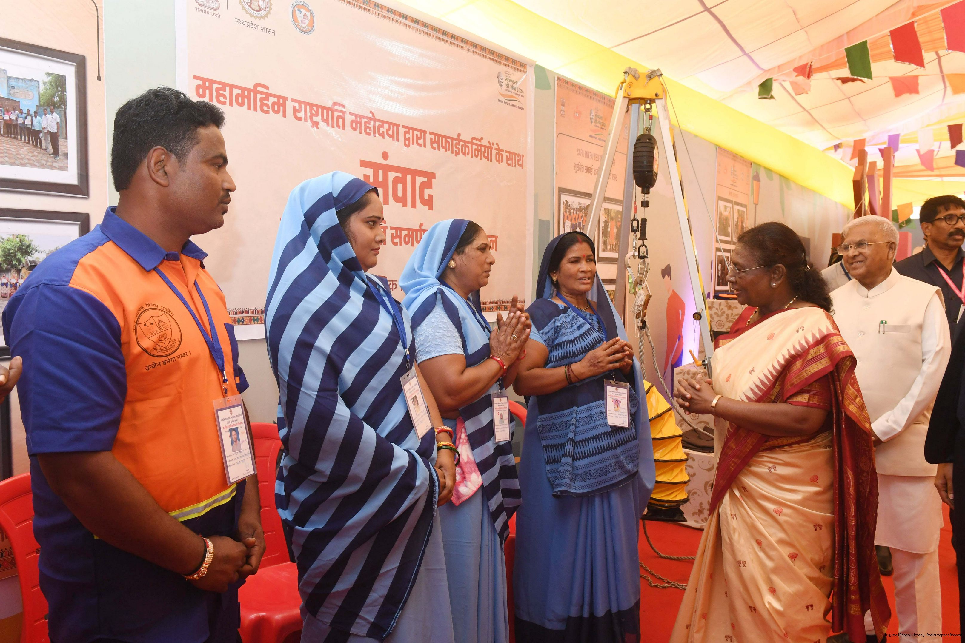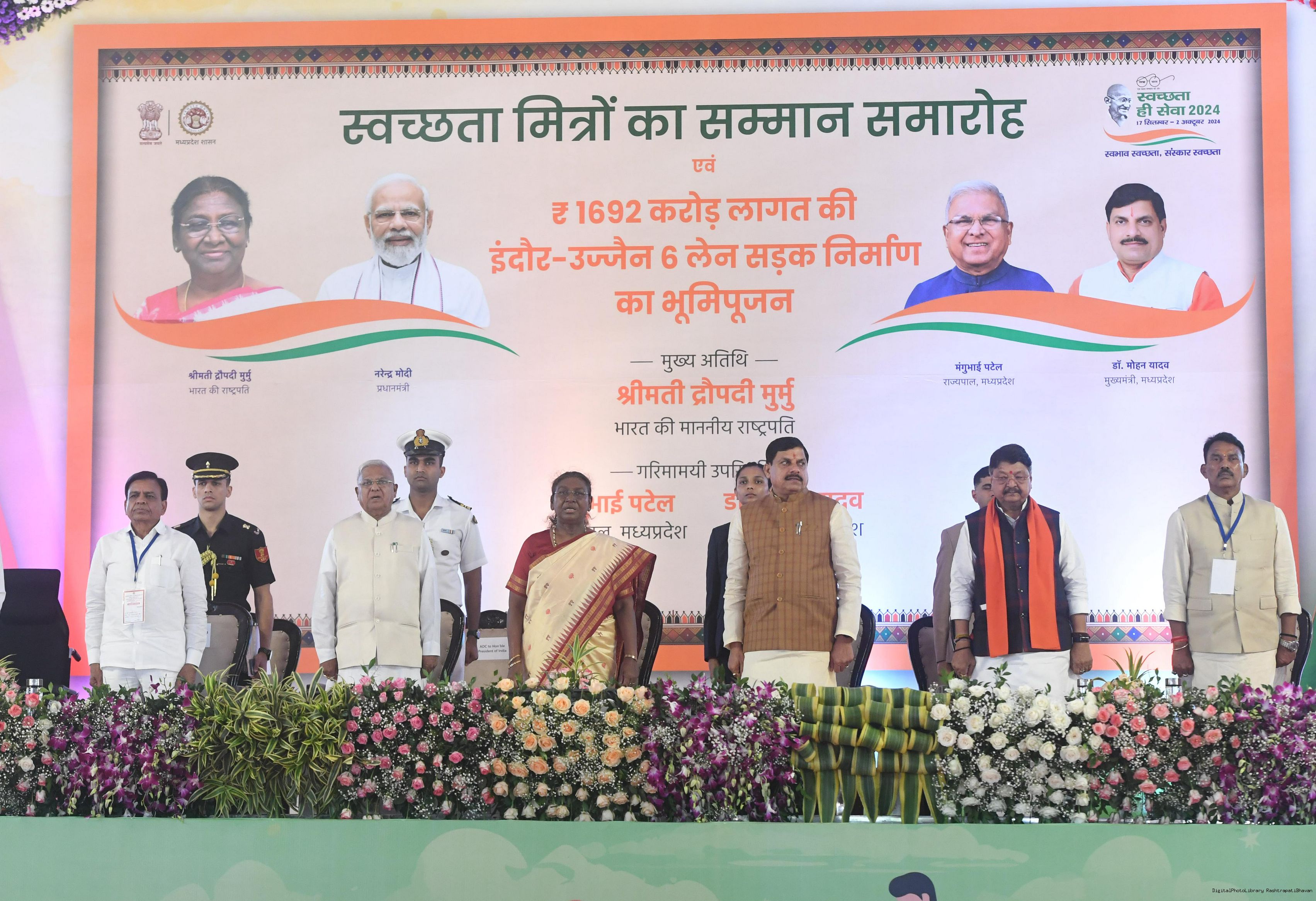| Caption: | The President of India, Smt Droupadi Murmu graced and addressed Safai Mitra Sammelan at Ujjain, Madhya Pradesh on September 19, 2024. |