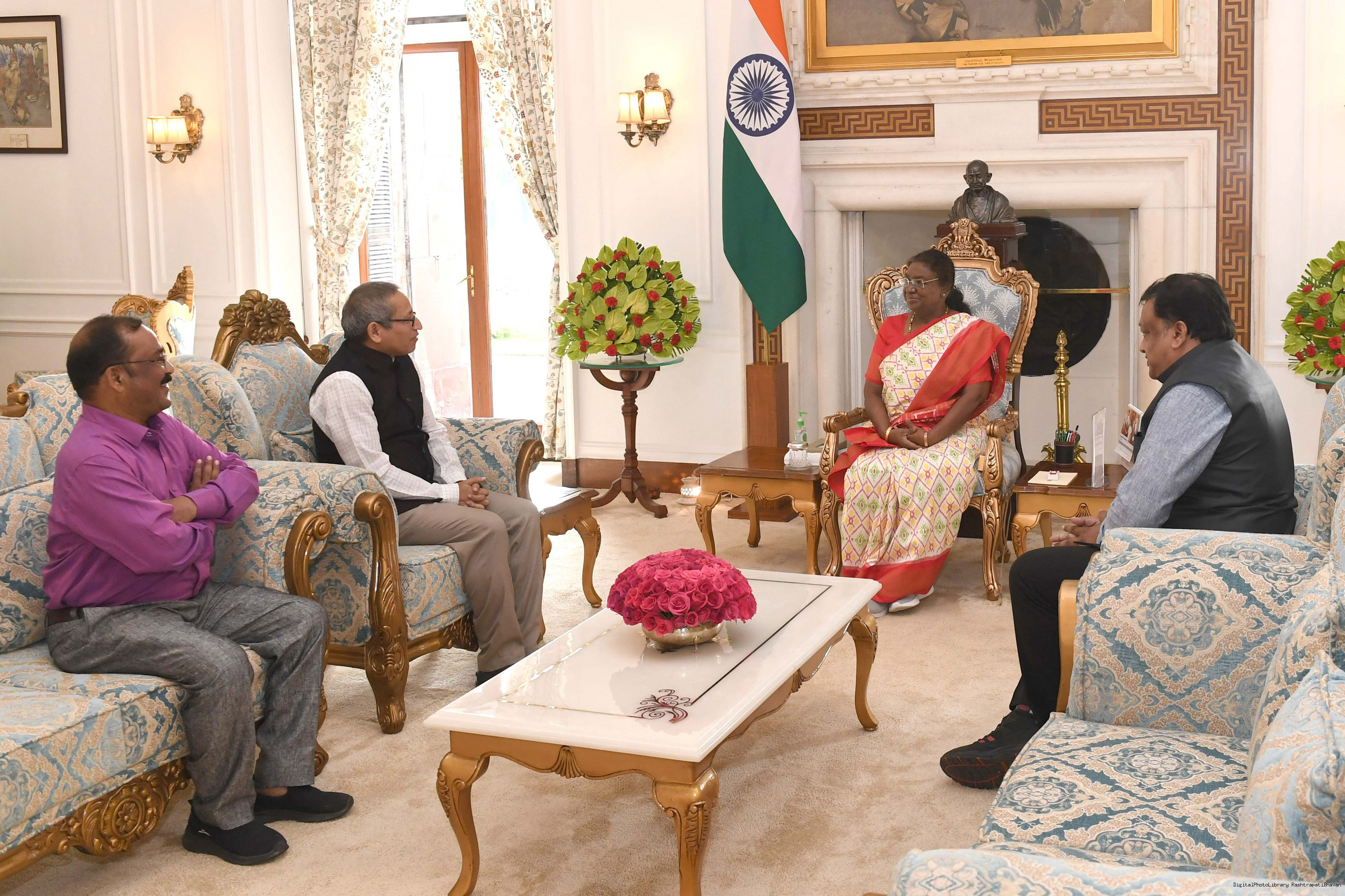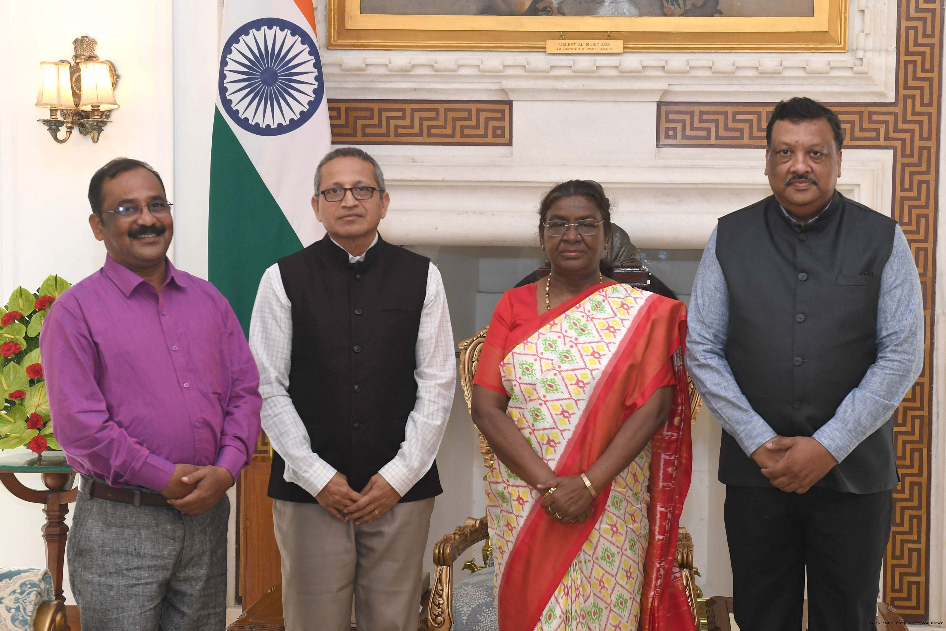| Caption: | Shri Prashant Kumar Naik, Chief Executive, Lepra Society, Hyderabad along with others meeting with the President of India Smt Droupadi Murmu at Rashtrapati Bhavan on September 23, 2024. |