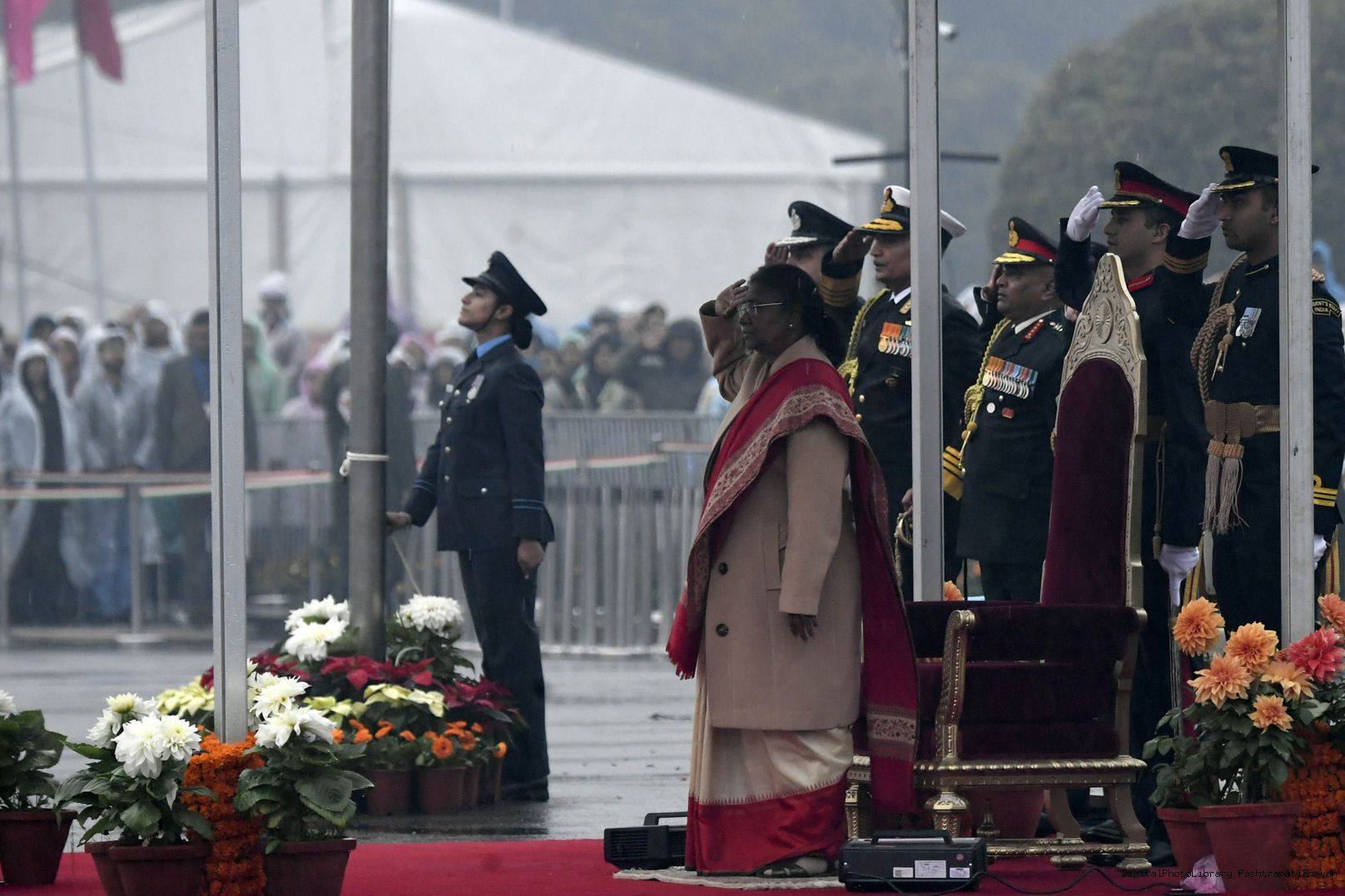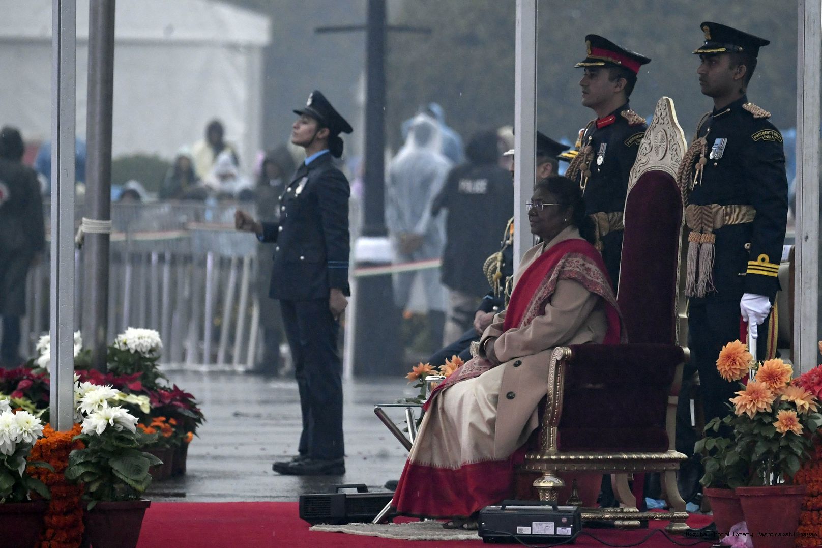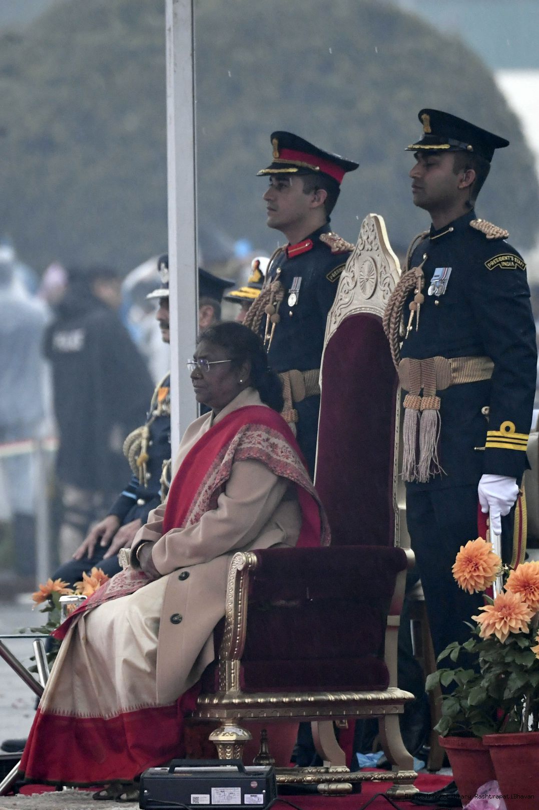 | Caption: | The President of India, Smt. Droupadi Murmu witnessed the Beating the Retreat ceremony at Vijay Chowk, marking the culmination of Republic Day celebrations, in New Delhi on January 29, 2023. |
