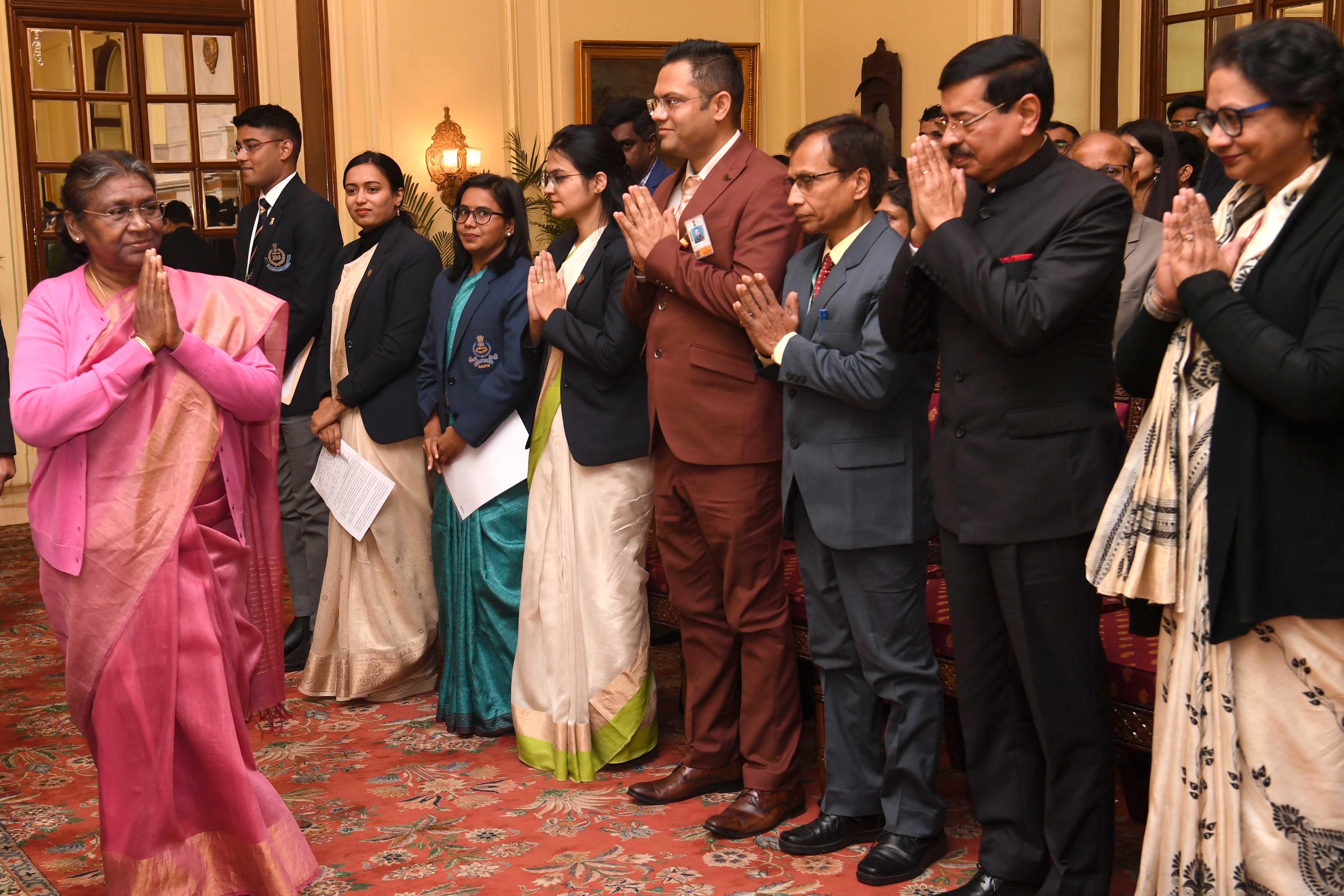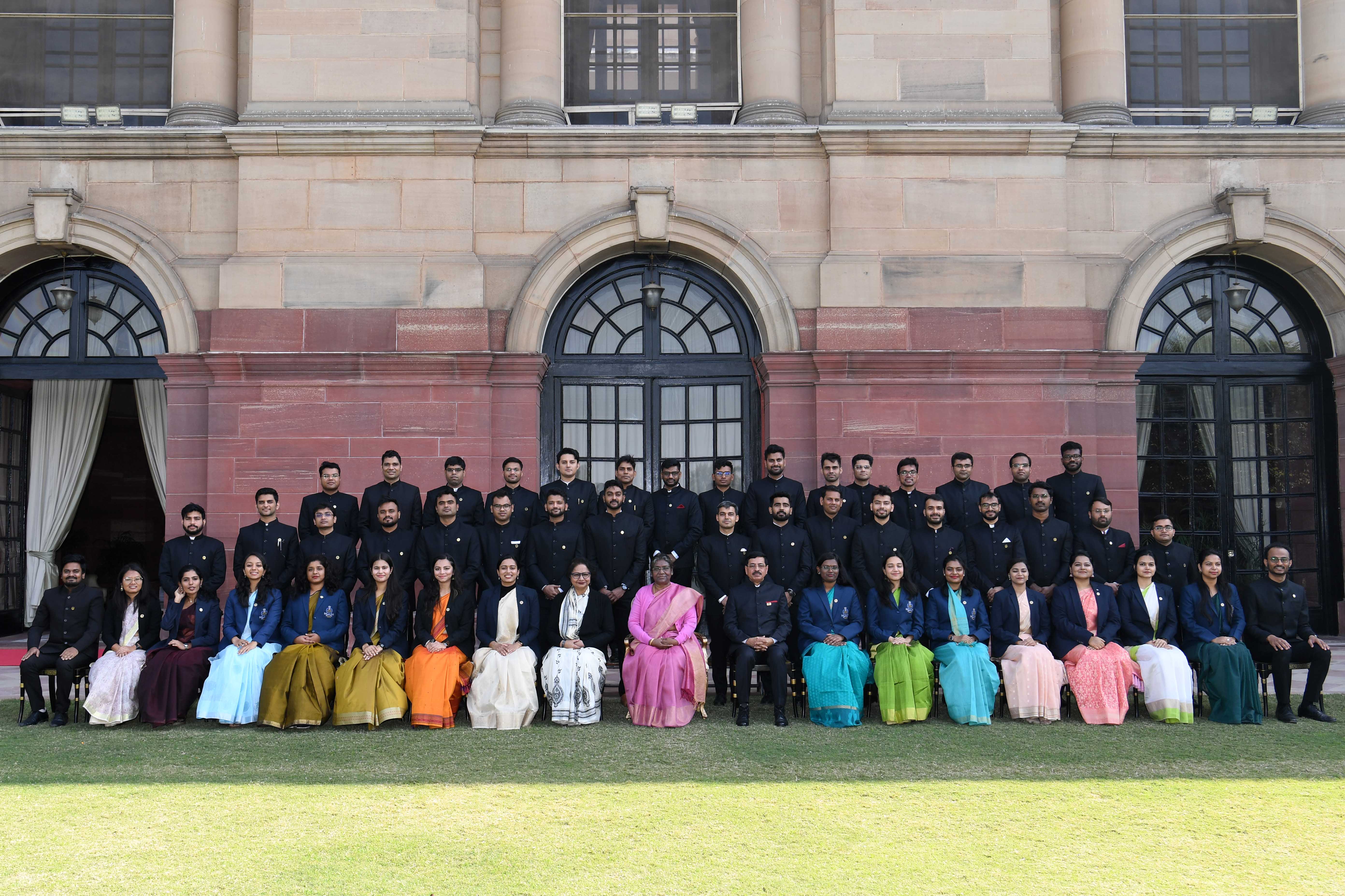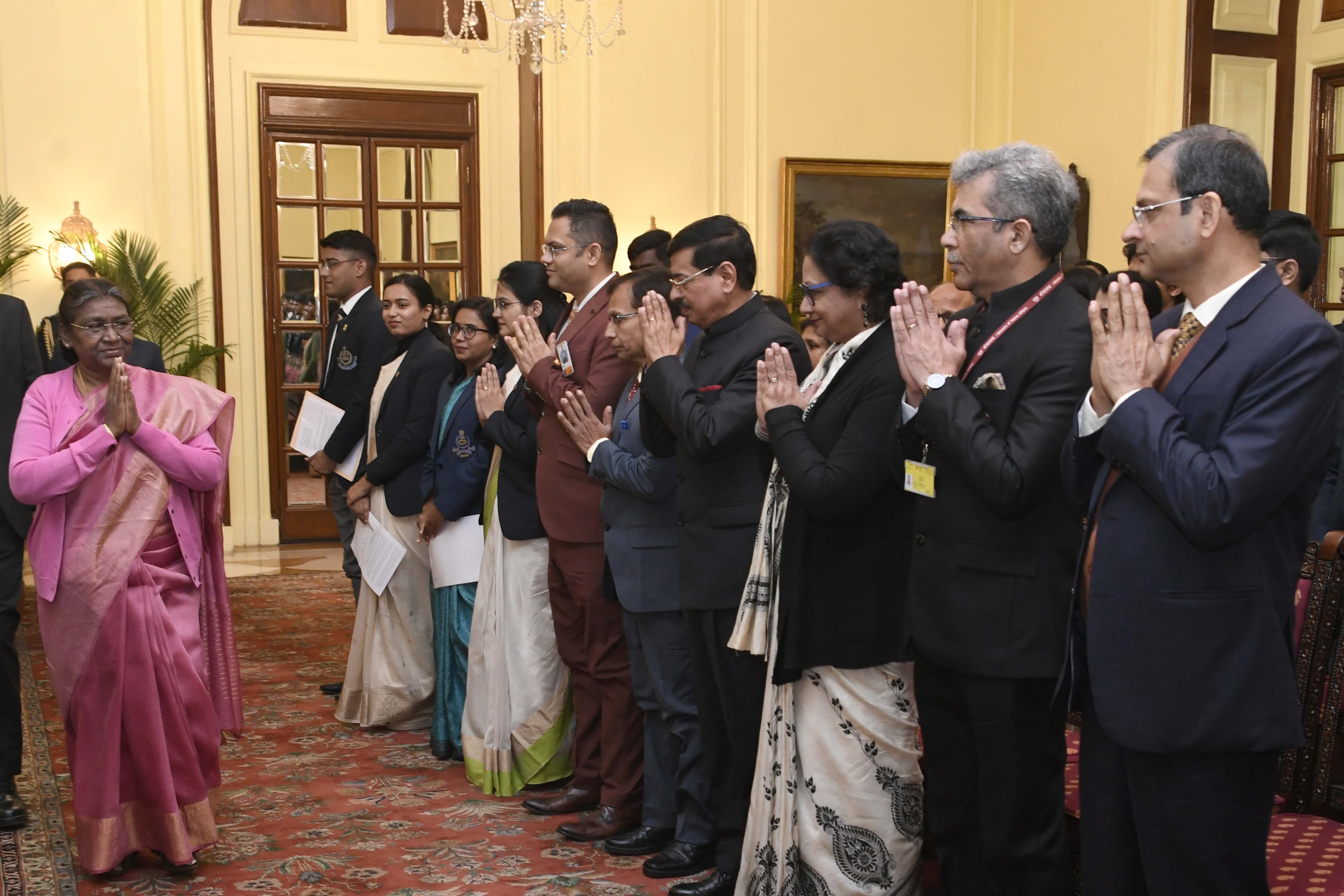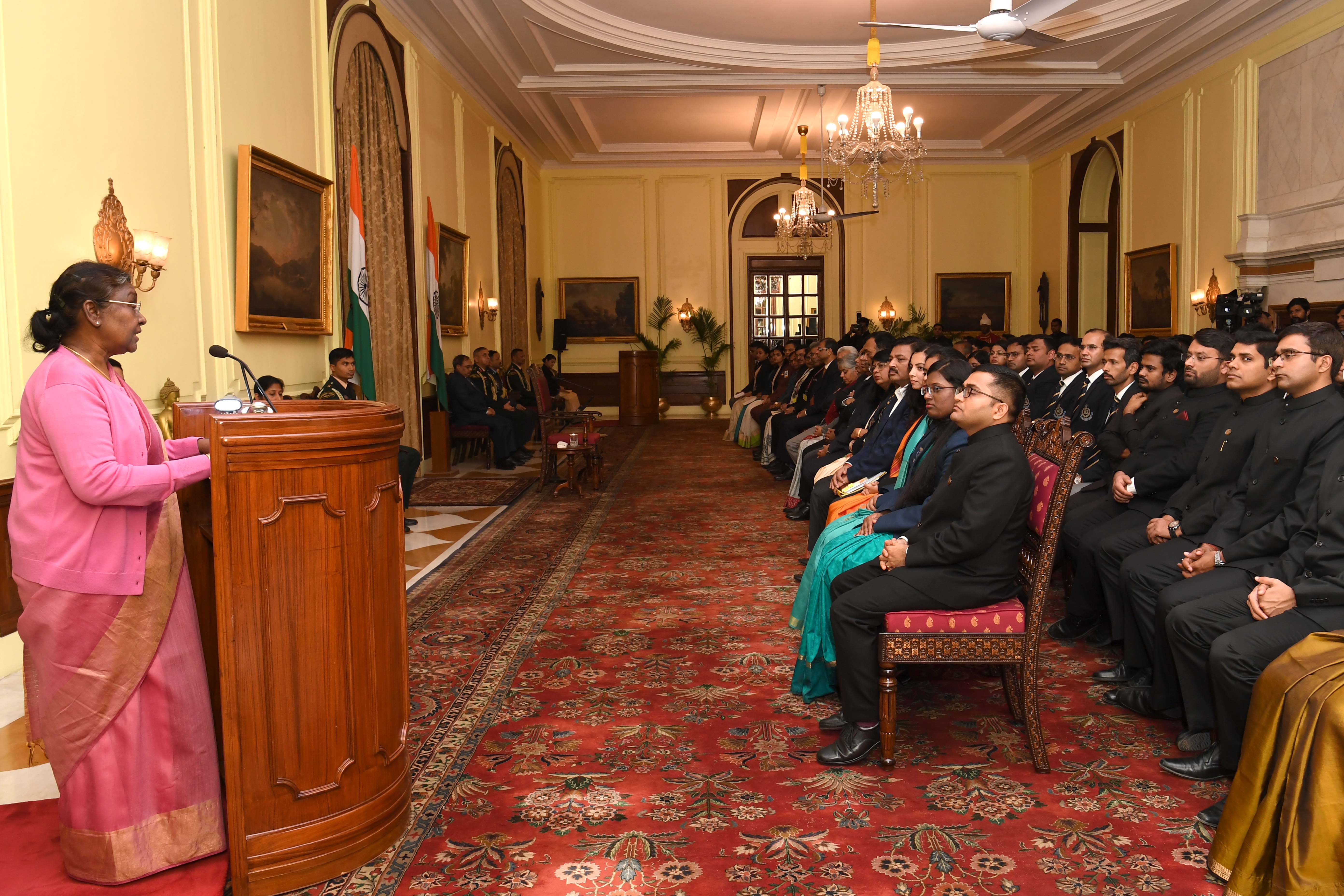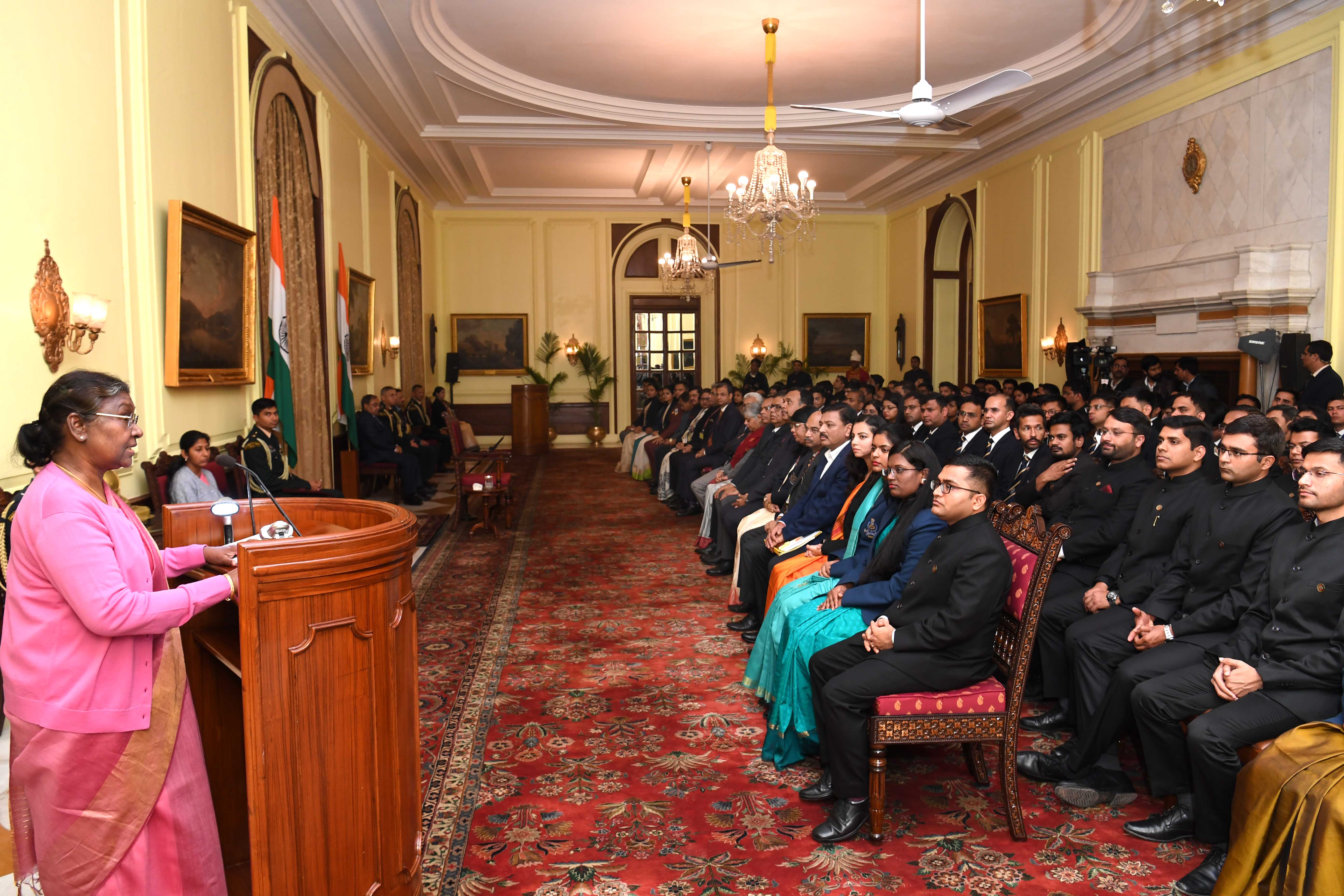 | Caption: | The President of India, Smt. Droupadi Murmu met Probationary Officers of Indian Revenue Service (Customs and Indirect Taxes), Indian Civil Accounts Service, Indian Defence Accounts Service, Indian Railway Accounts Service and Indian Post Telecommunication (Finance Accounts) Service, at Rashtrapati Bhavan on February 03, 2023. |