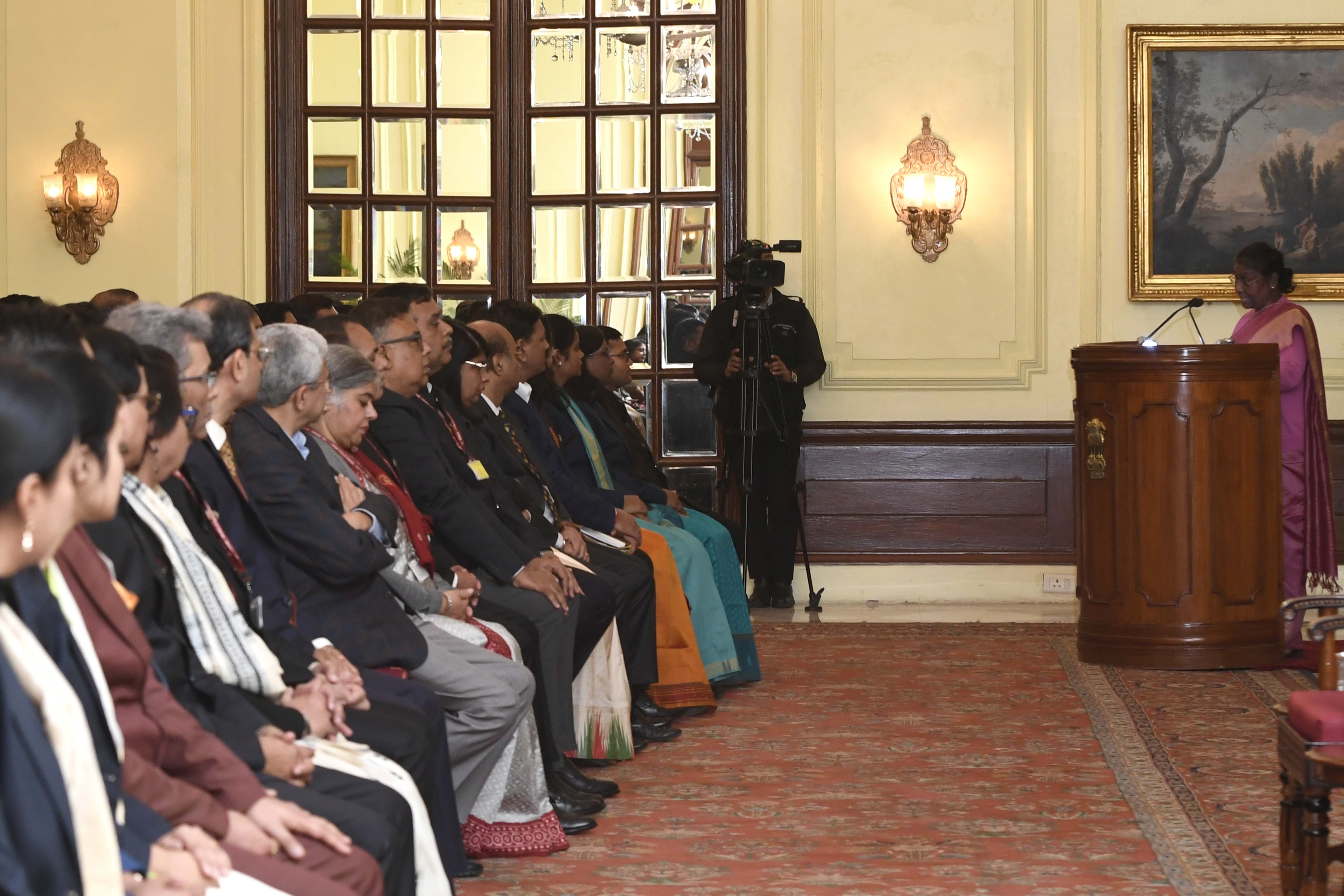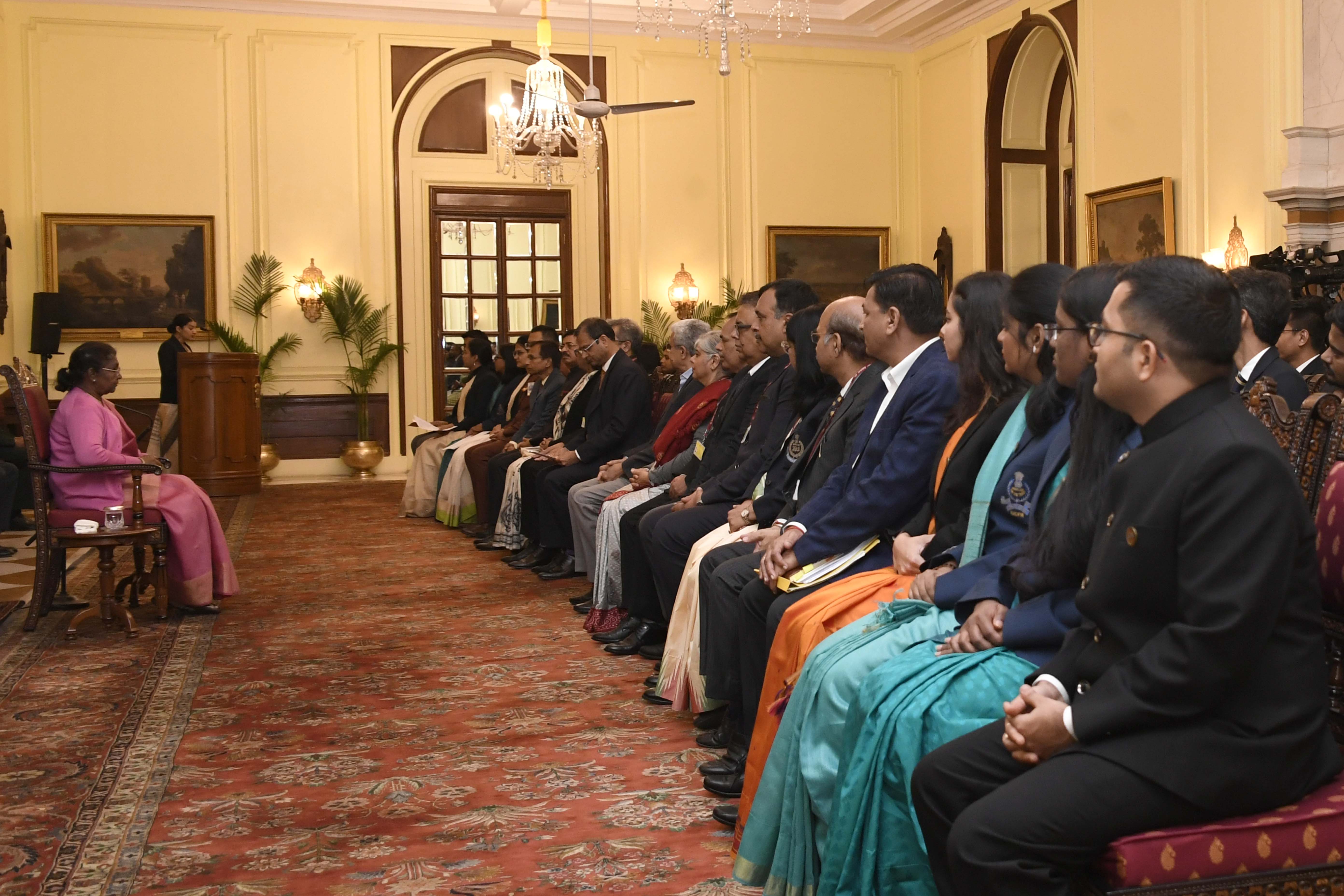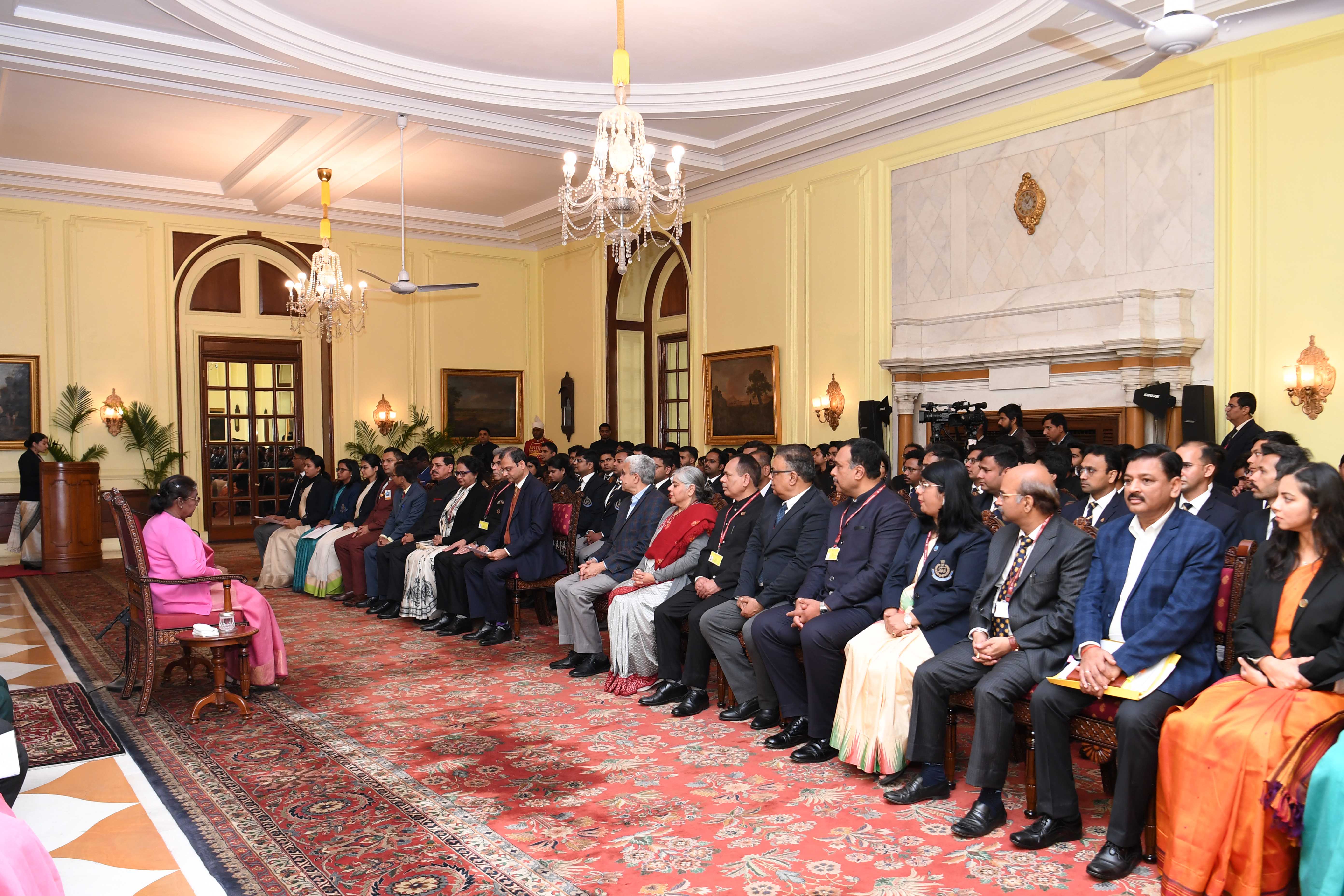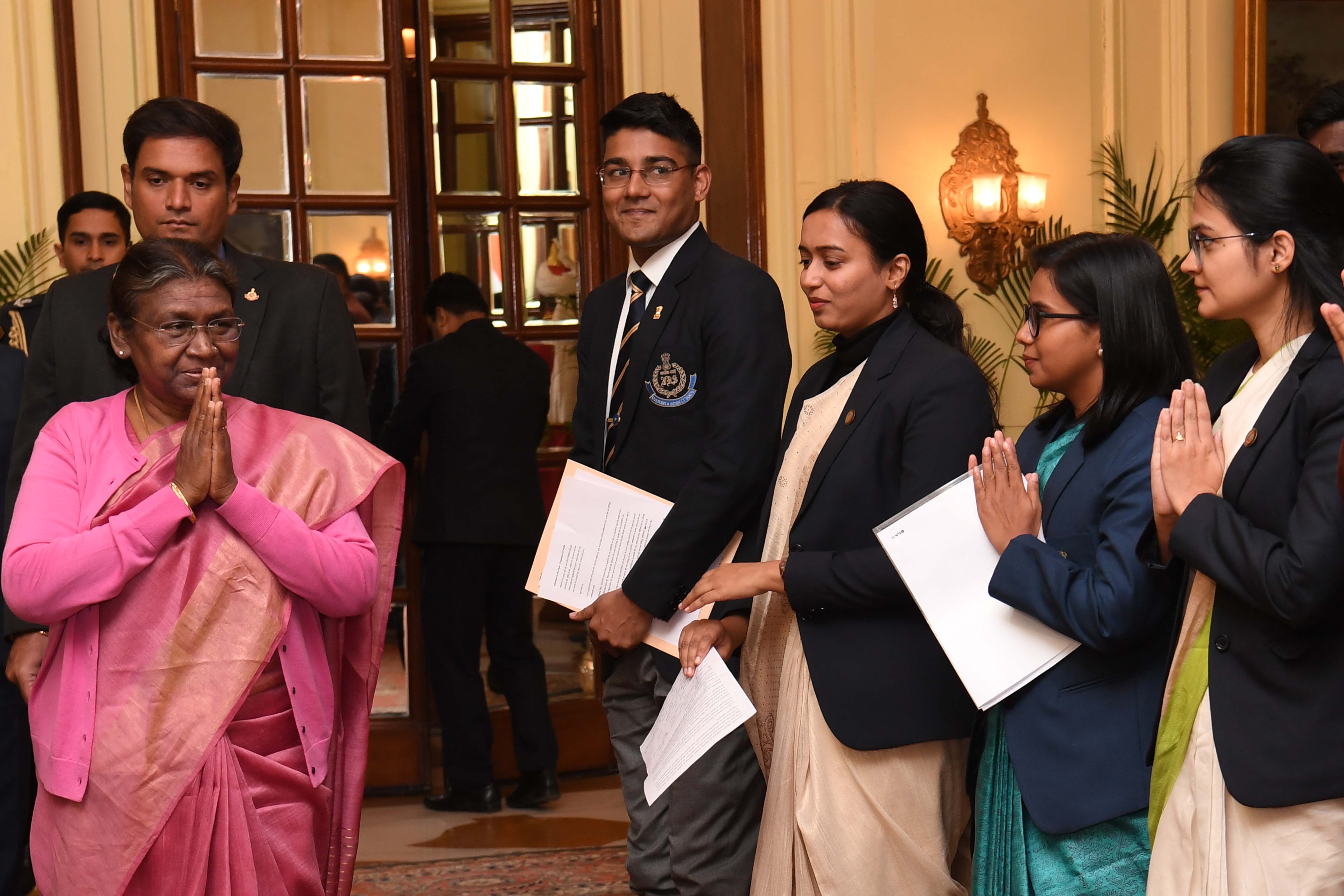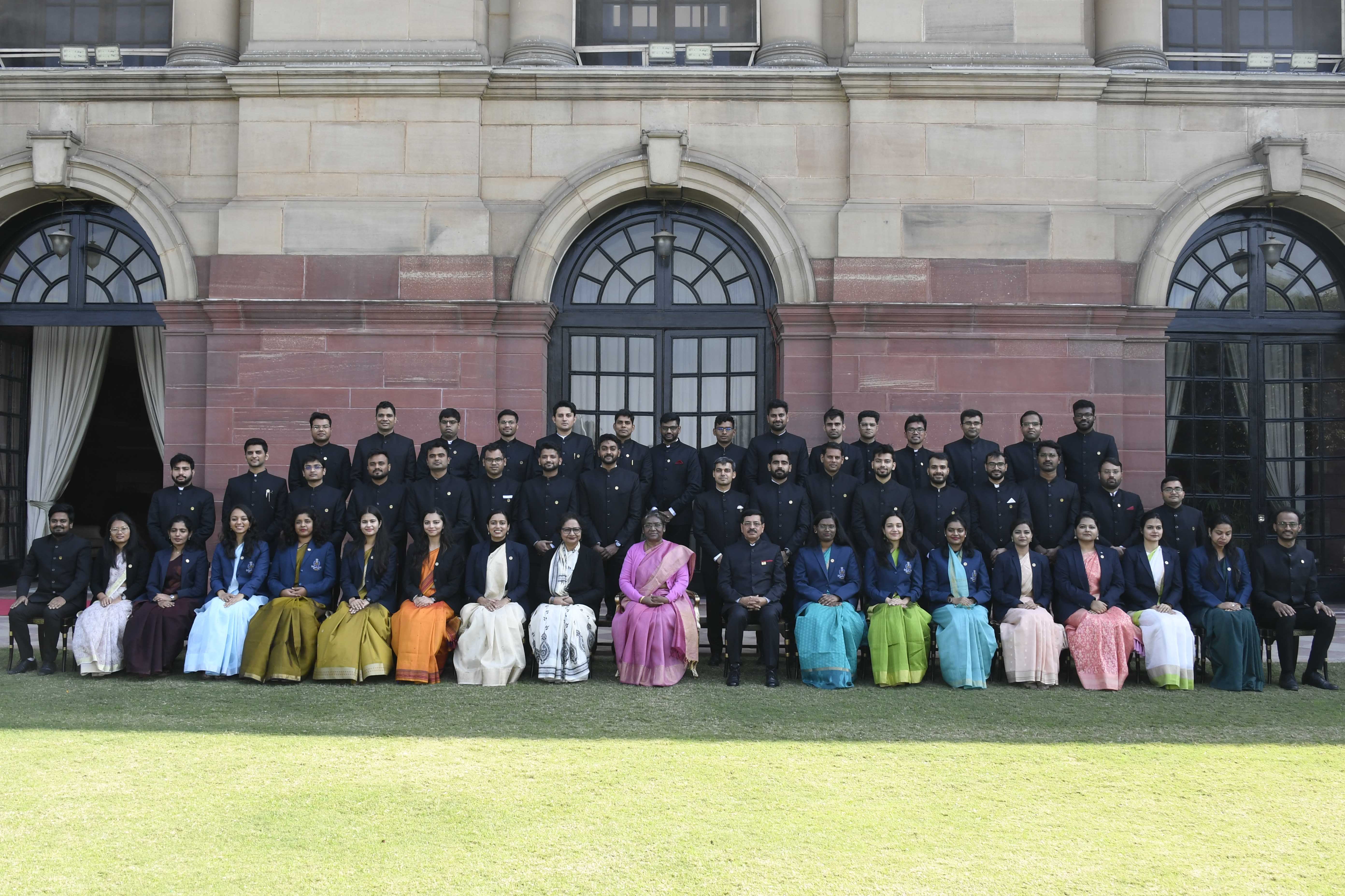 | Caption: | The President of India, Smt. Droupadi Murmu met Probationary Officers of Indian Revenue Service (Customs and Indirect Taxes), Indian Civil Accounts Service, Indian Defence Accounts Service, Indian Railway Accounts Service and Indian Post Telecommunication (Finance Accounts) Service, at Rashtrapati Bhavan on February 03, 2023. |
