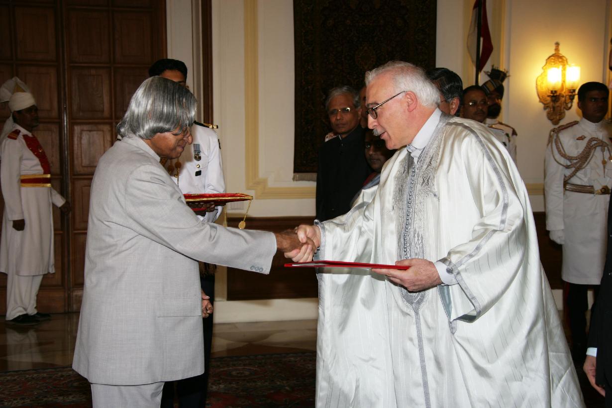 | Caption: | The Ambassador-Designate of Tunisia to India, HE Mr Raouf Chatty presenting his credentials to the President of India, Dr A P J Abdul Kalam at the Yellow Drawing Room of Rashtrapati Bhavan in New Delhi on March 13, 2007 |