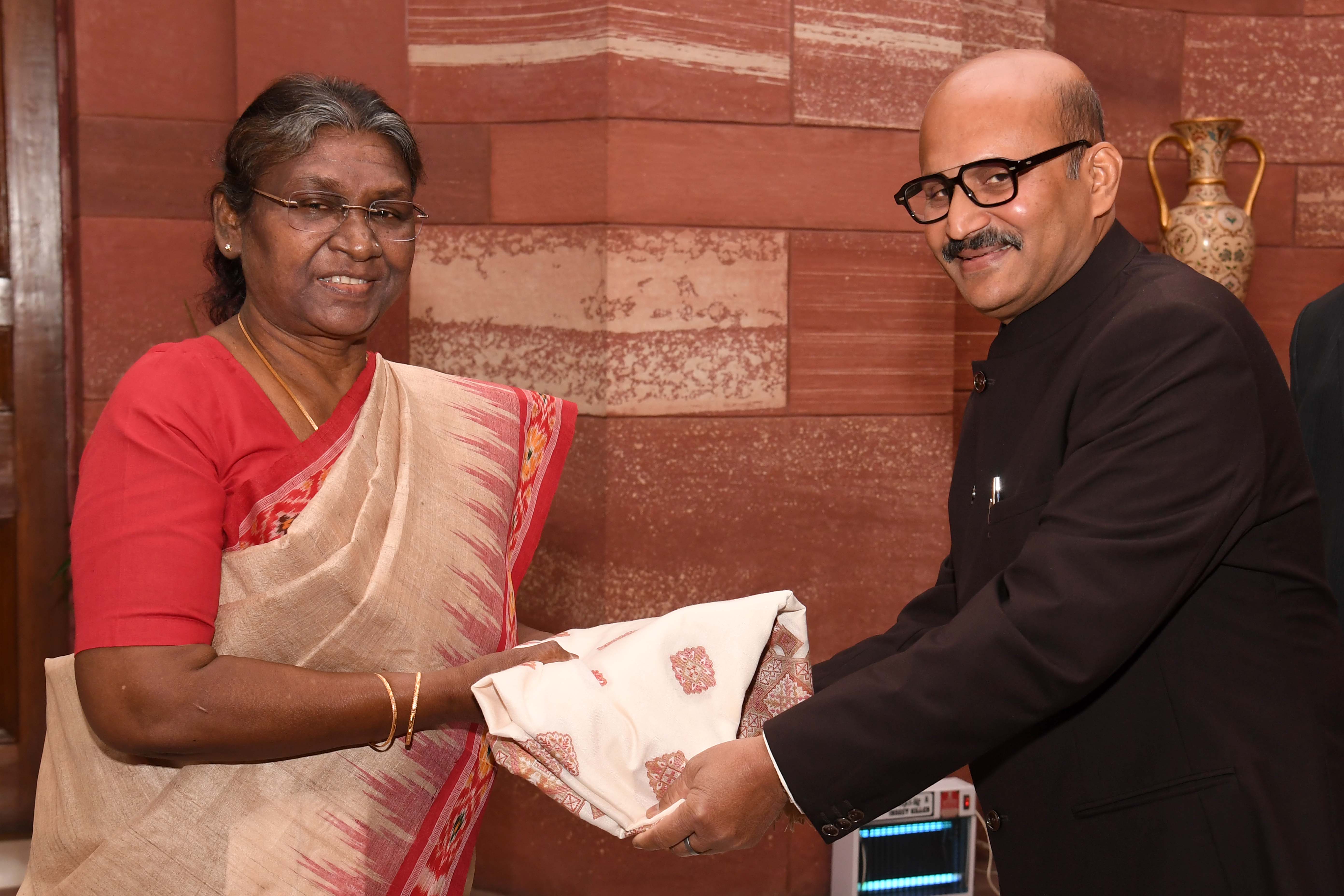 | Caption: | Shri K Rajaraman, Secretary, Telecom, Shri Srikanta Panda along with others meeting with the President of India Smt Droupadi Murmu at Rashtrapati Bhavan on February 06, 2023. |