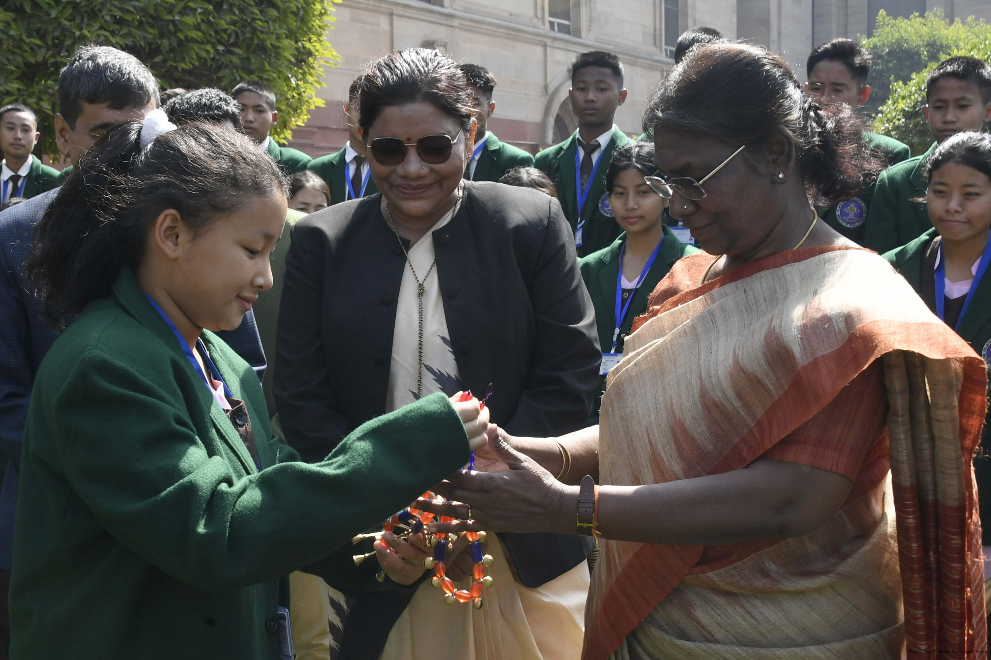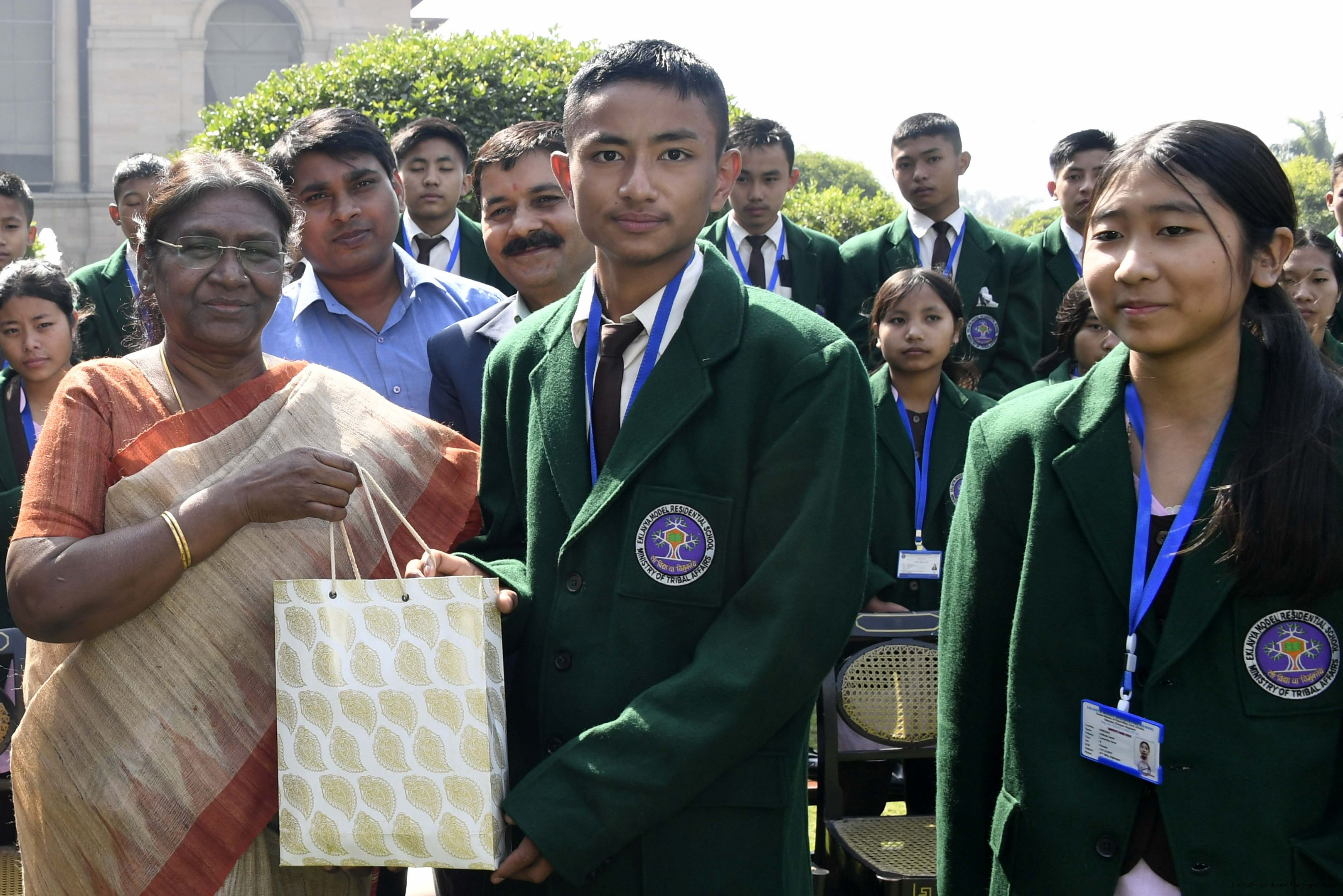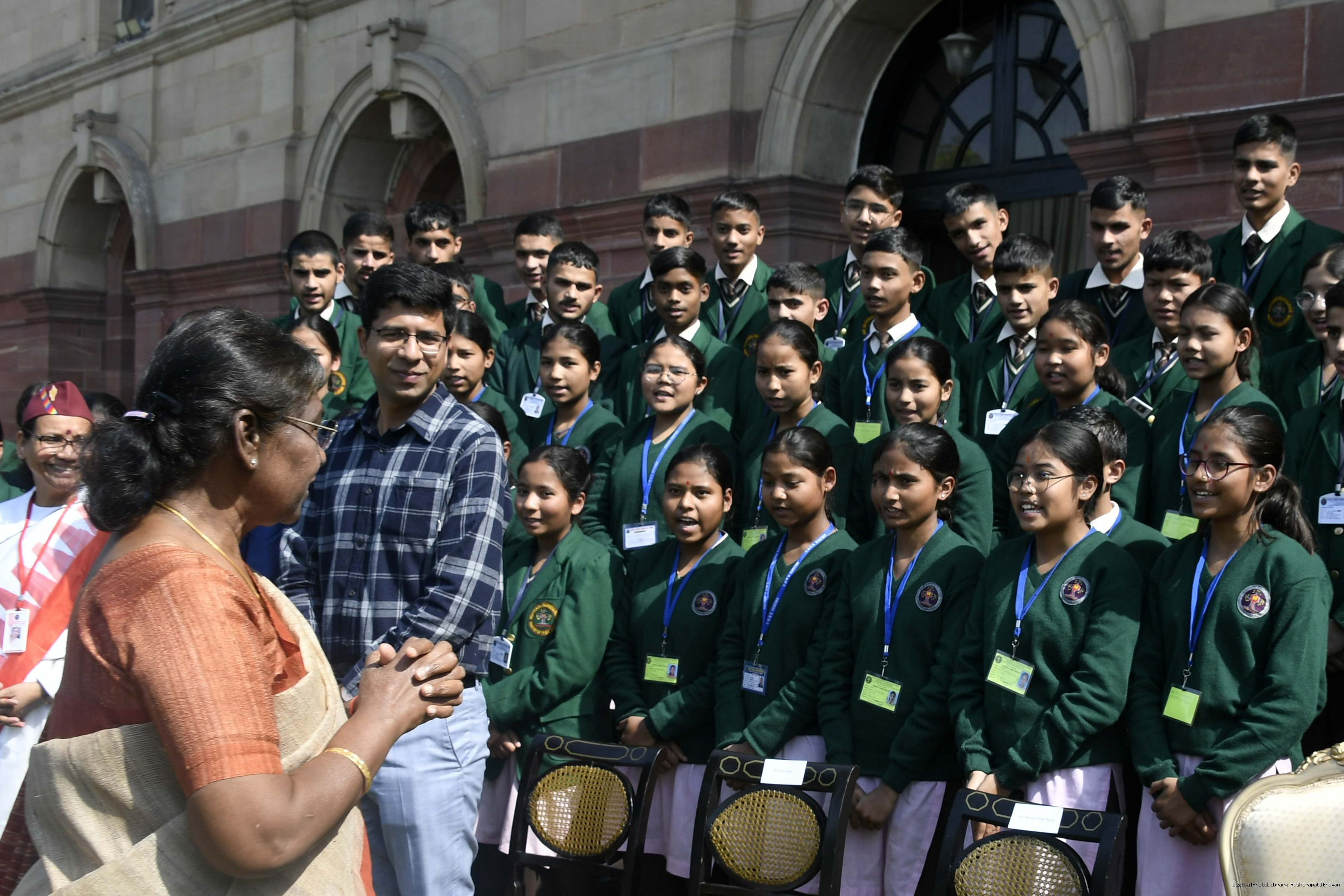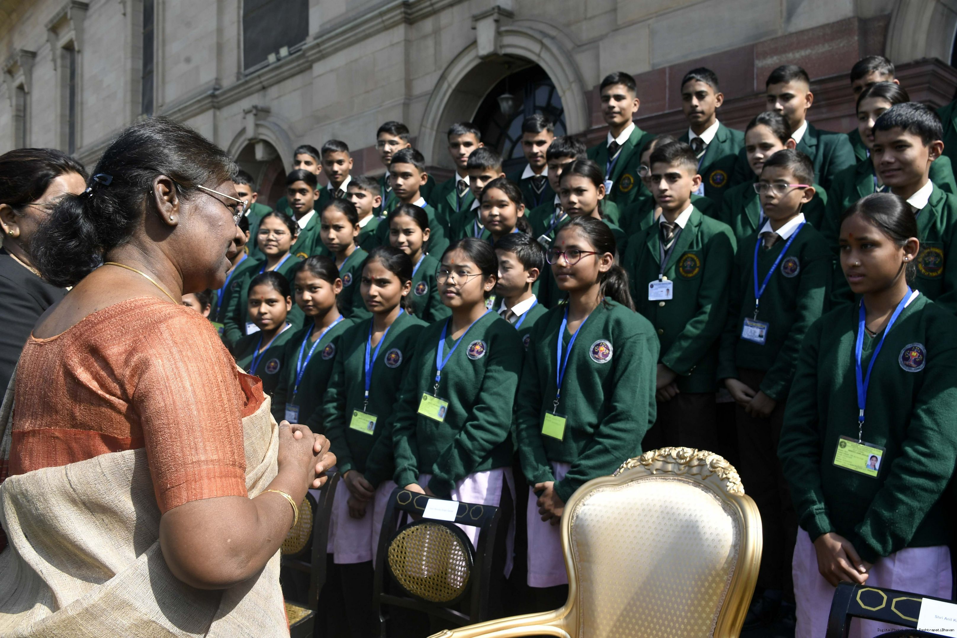 | Caption: | The President of India, Smt. Droupadi Murmu met tribal students from the schools of Nagaland, Rajasthan and Uttarakhand, at Rashtrapati Bhavan on February 15, 2023. |