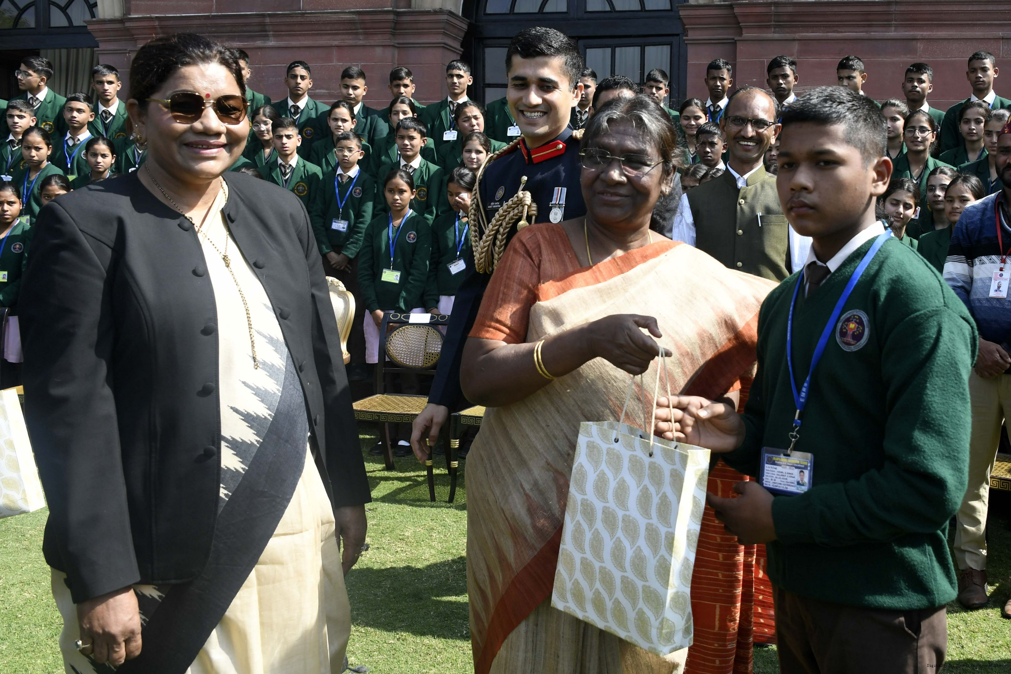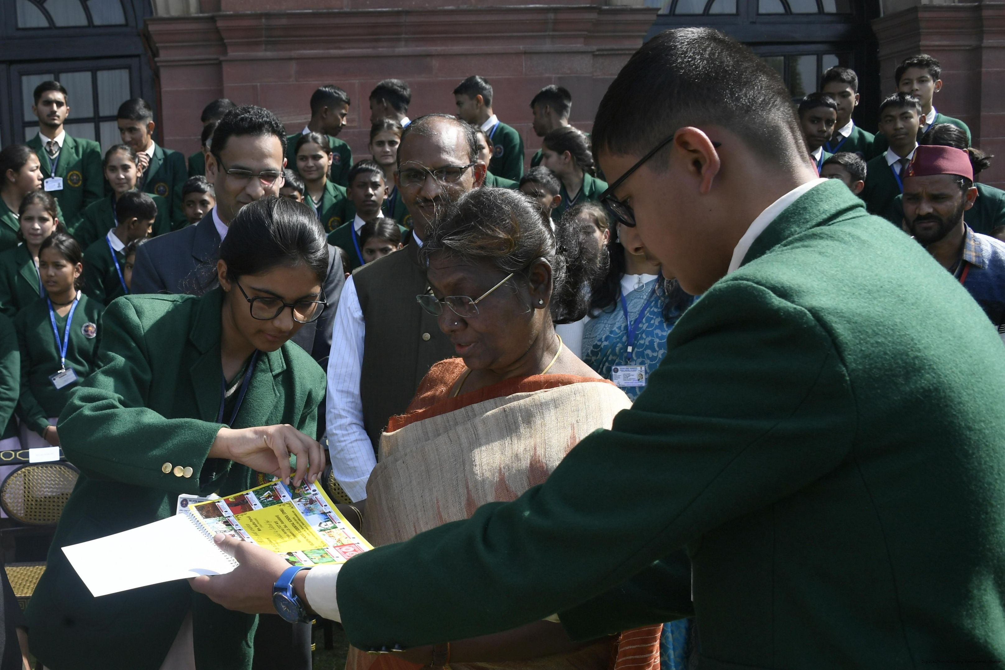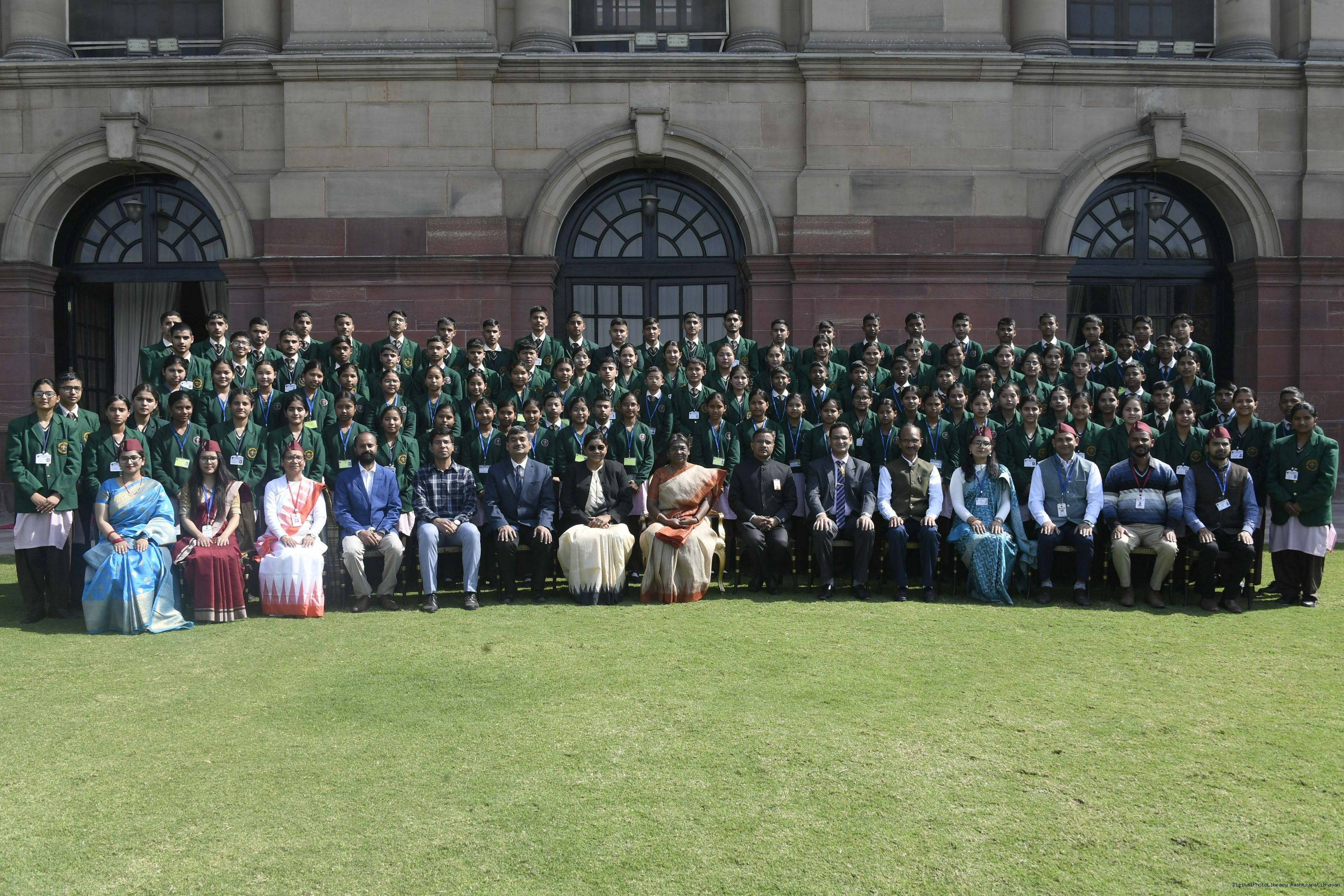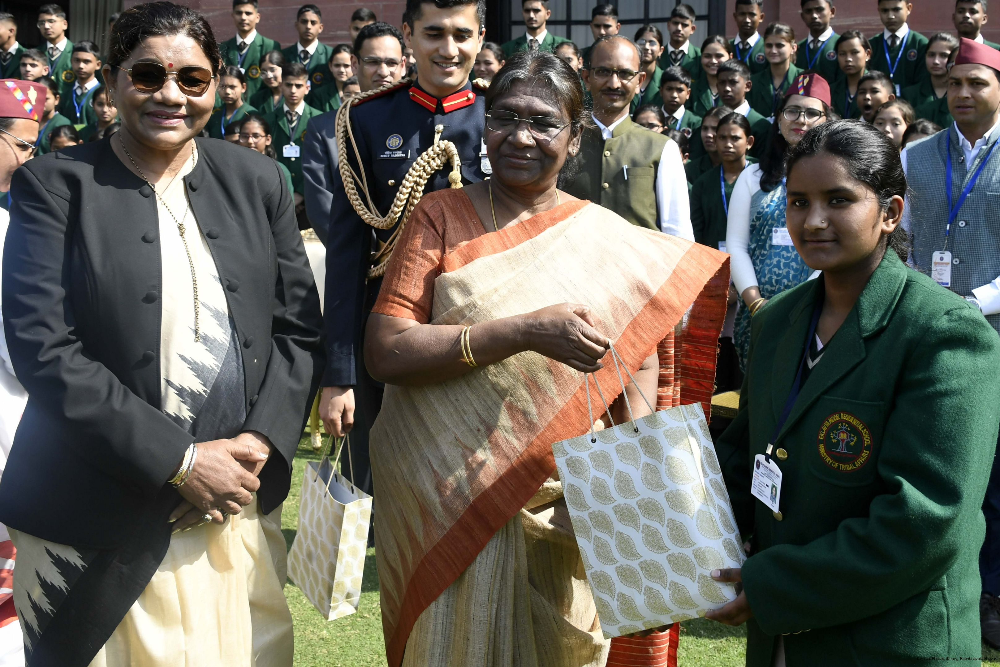 | Caption: | The President of India, Smt. Droupadi Murmu met tribal students from the schools of Nagaland, Rajasthan and Uttarakhand, at Rashtrapati Bhavan on February 15, 2023. |