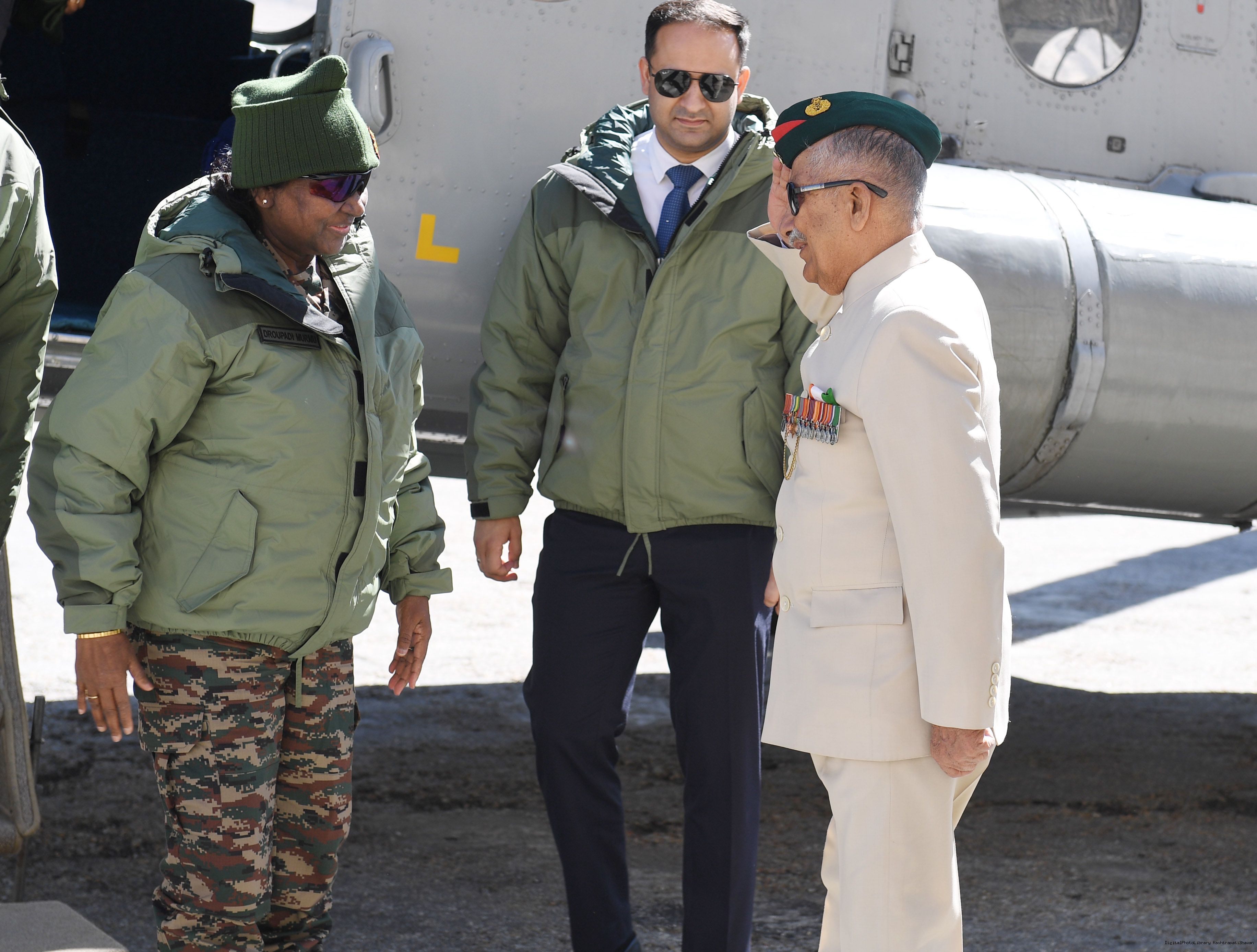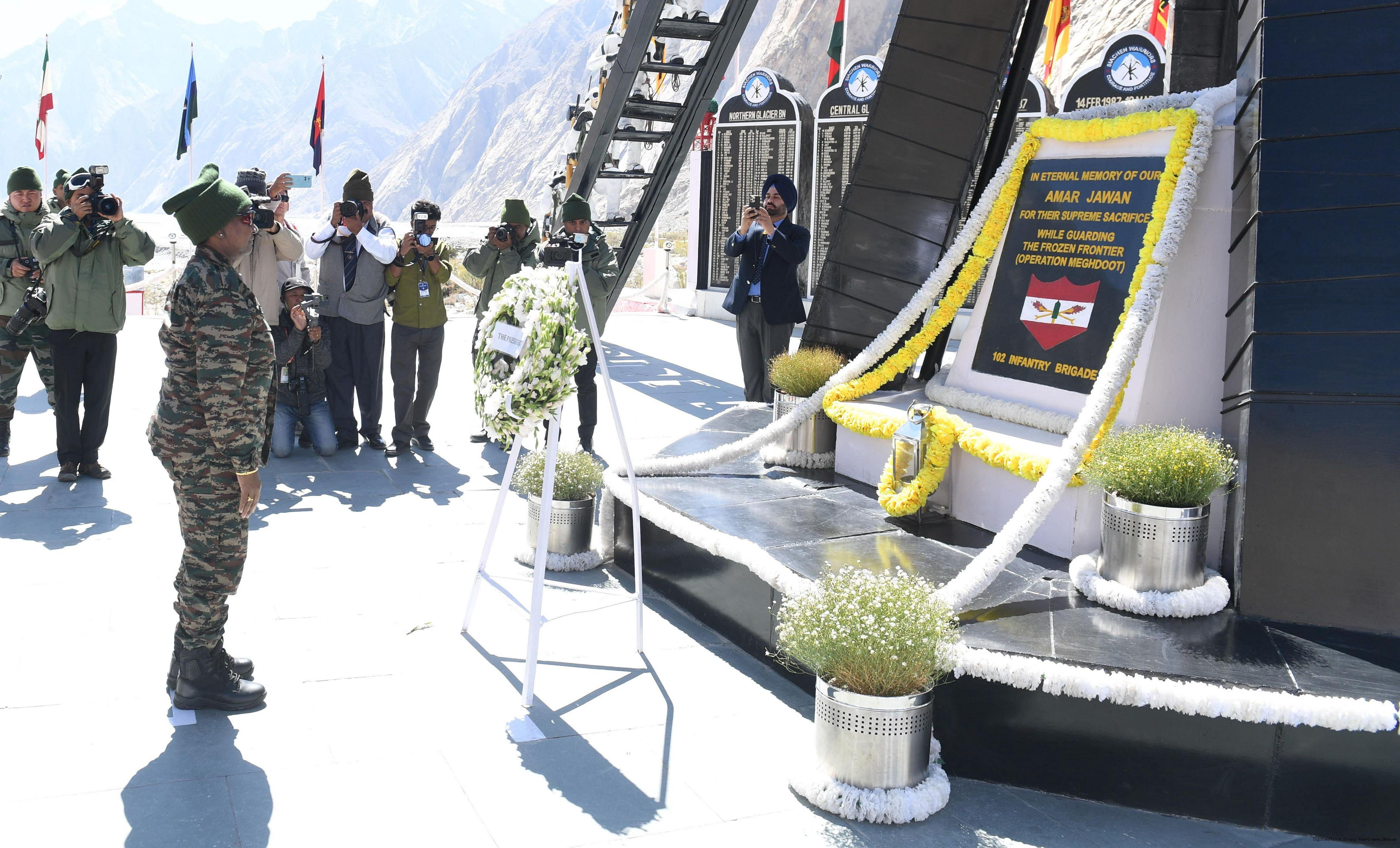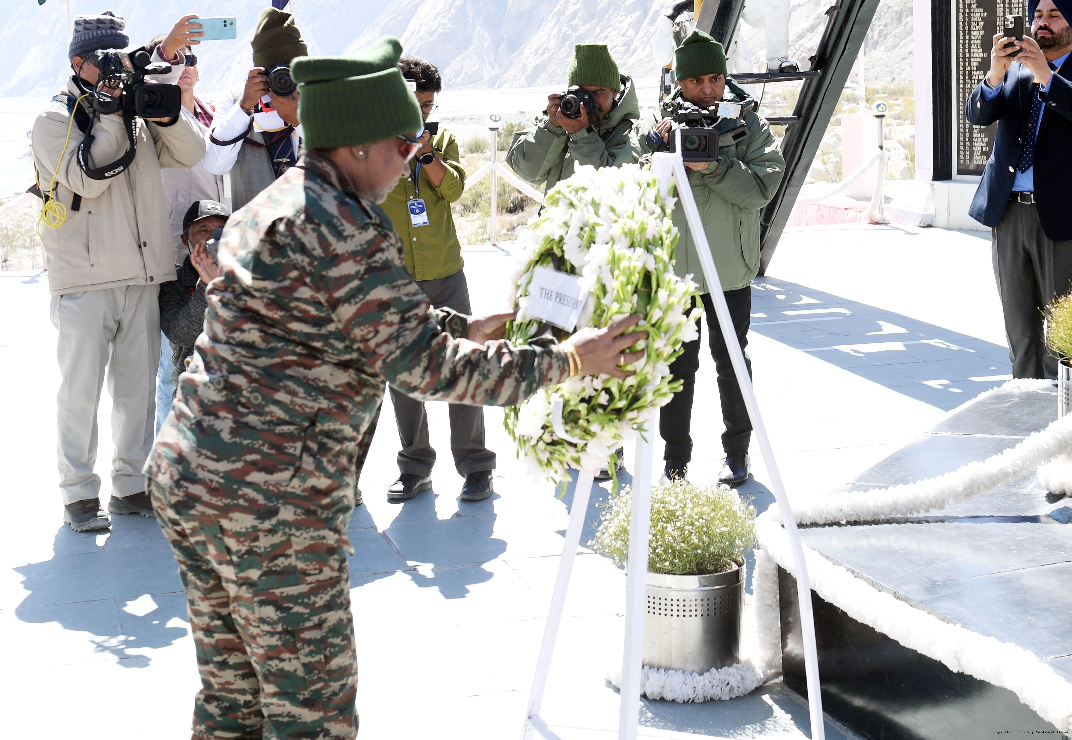| Caption: | The President of India Smt. Droupadi Murmu paid her tributes at the Siachen War Memorial, Ladakh on September 26, 2024. |