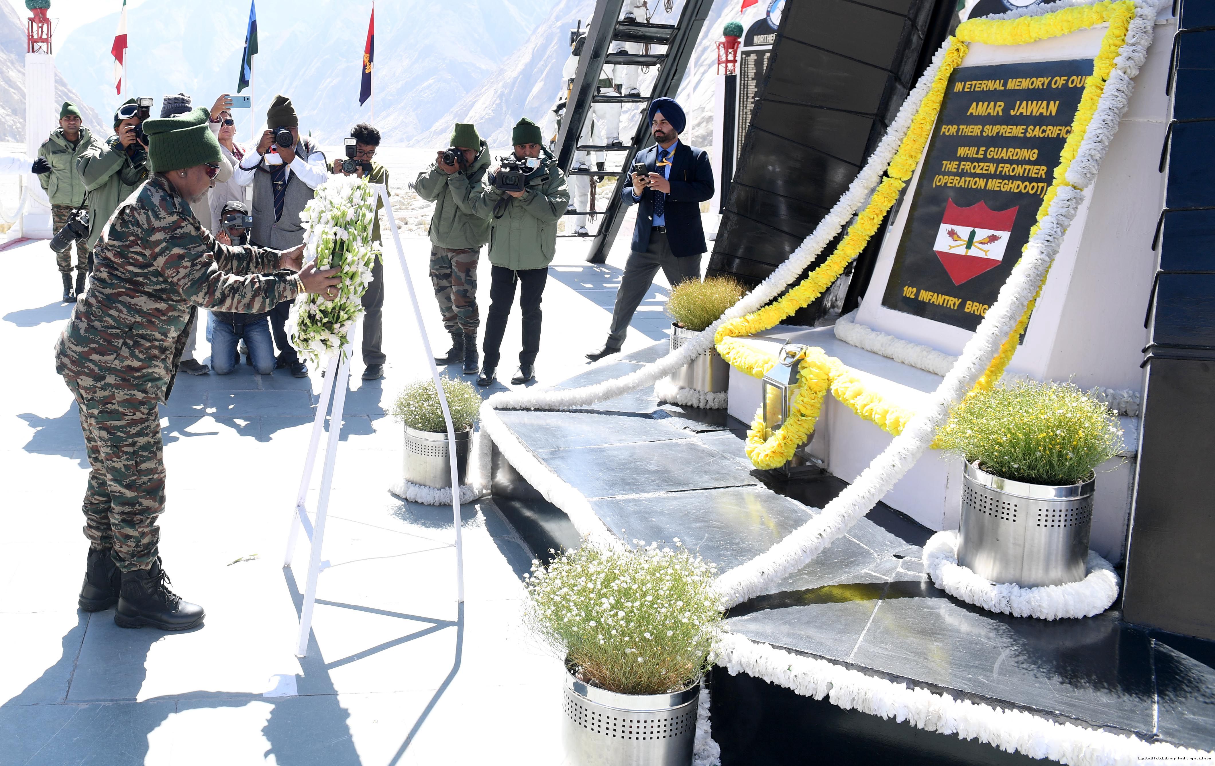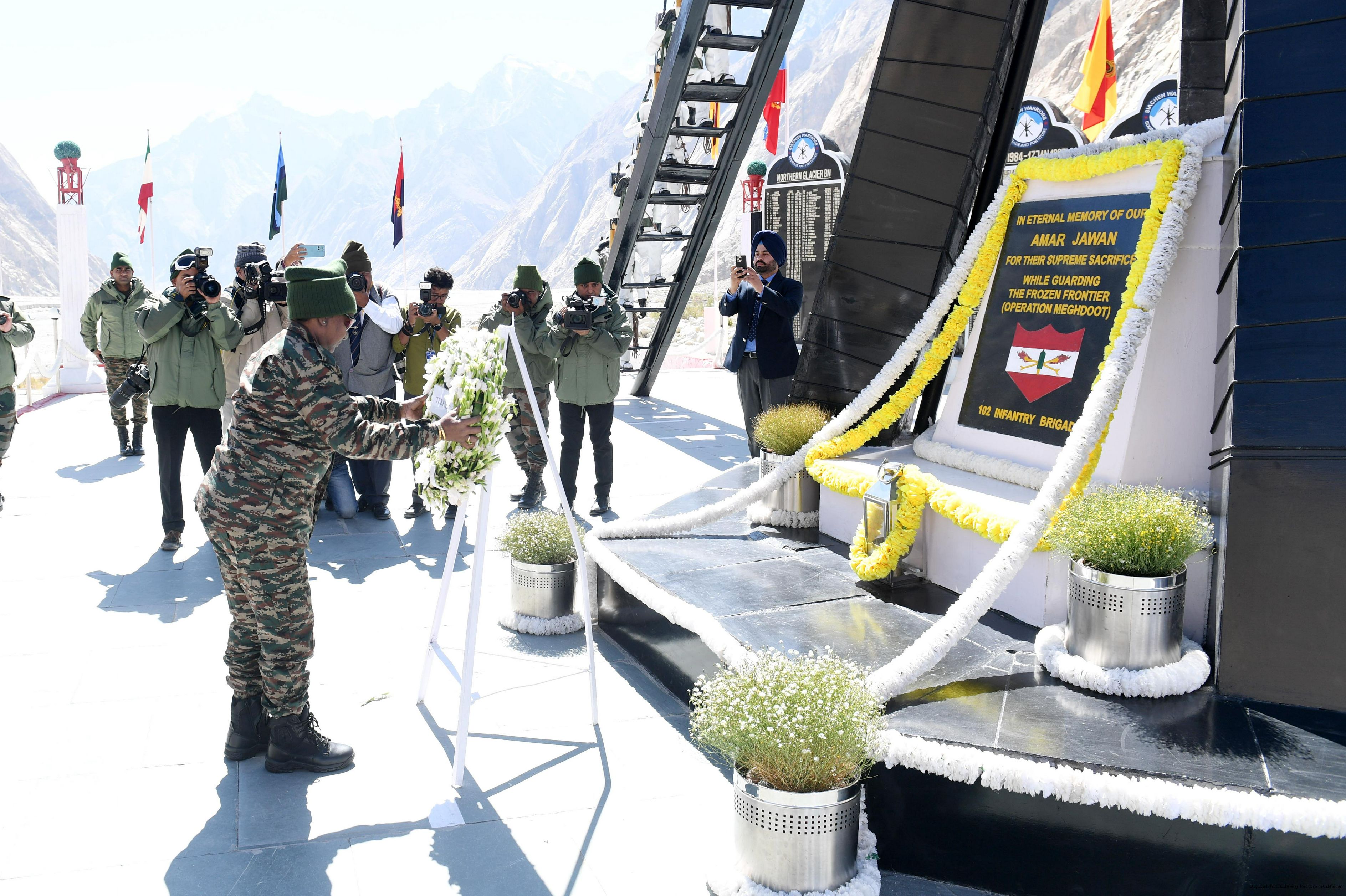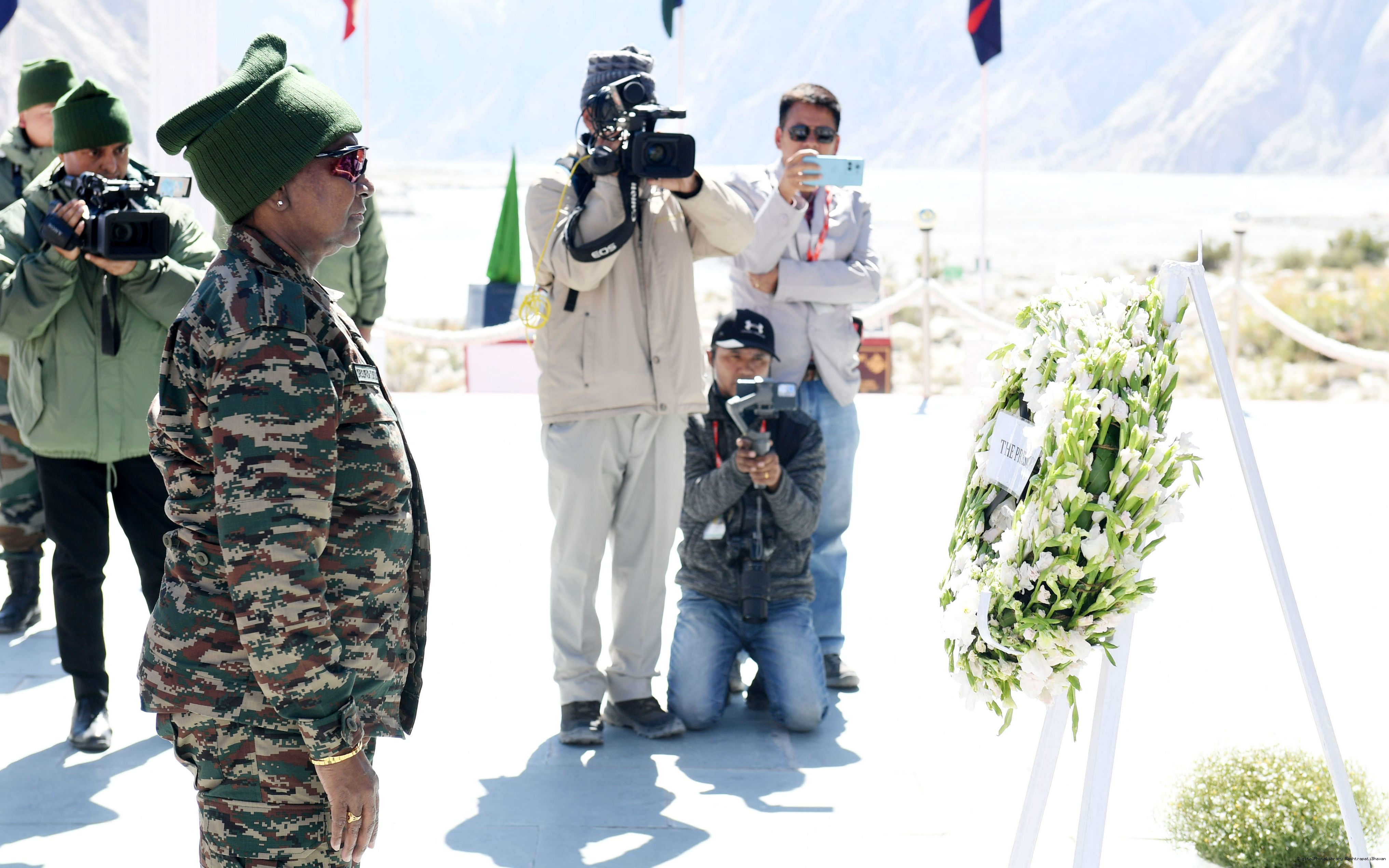| Caption: | The President of India Smt. Droupadi Murmu paid her tributes at the Siachen War Memorial, Ladakh on September 26, 2024. |