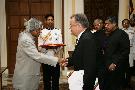 | Caption: | The Ambassador-Designate of Portugal to India, HE Mr Luis Filipe Carrilho de Castro Mendes presenting his credentials to the President of India, Dr A P J Abdul Kalam at the Yellow Drawing Room of Rashtrapati Bhavan in New Delhi on March 13, 2007 |