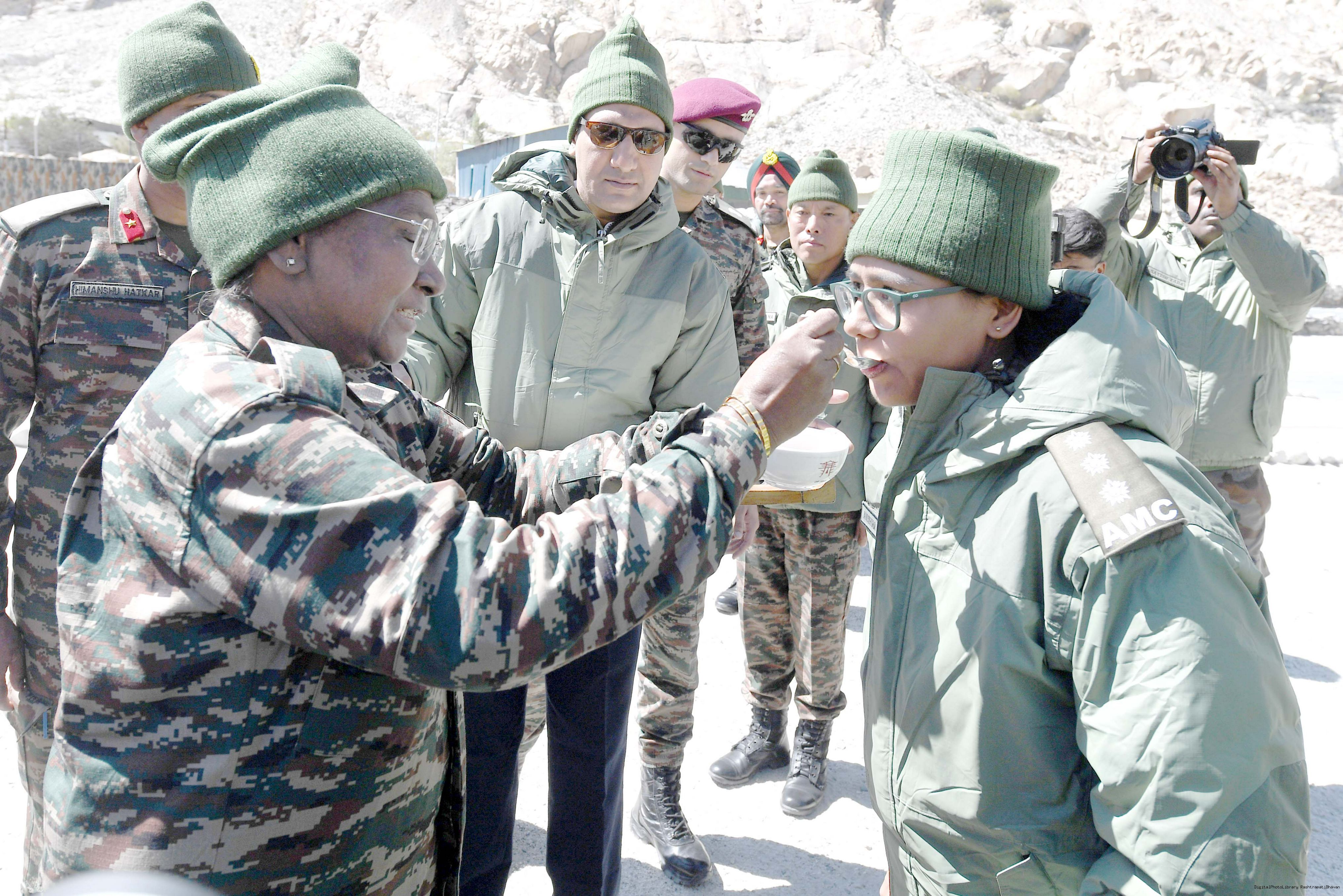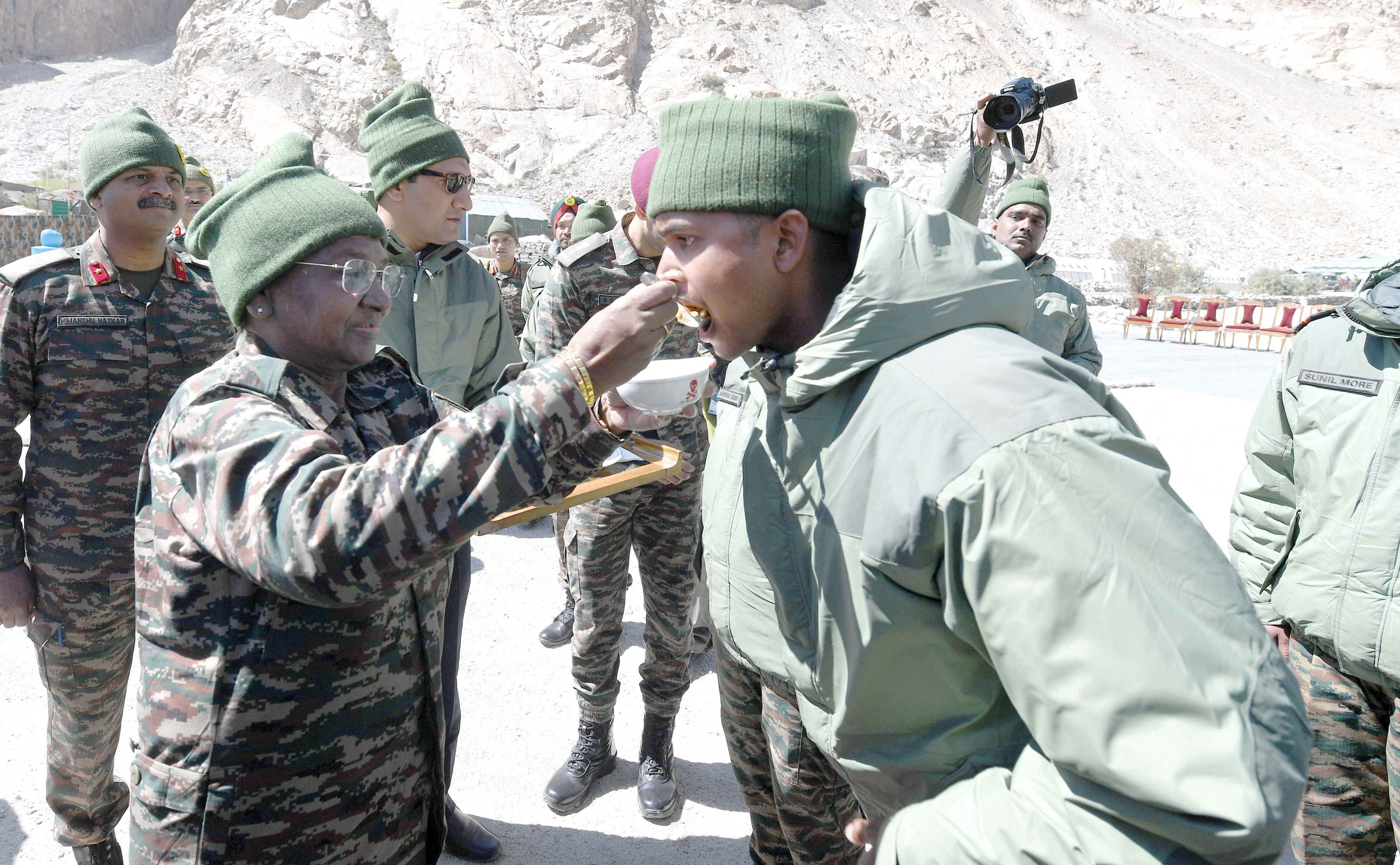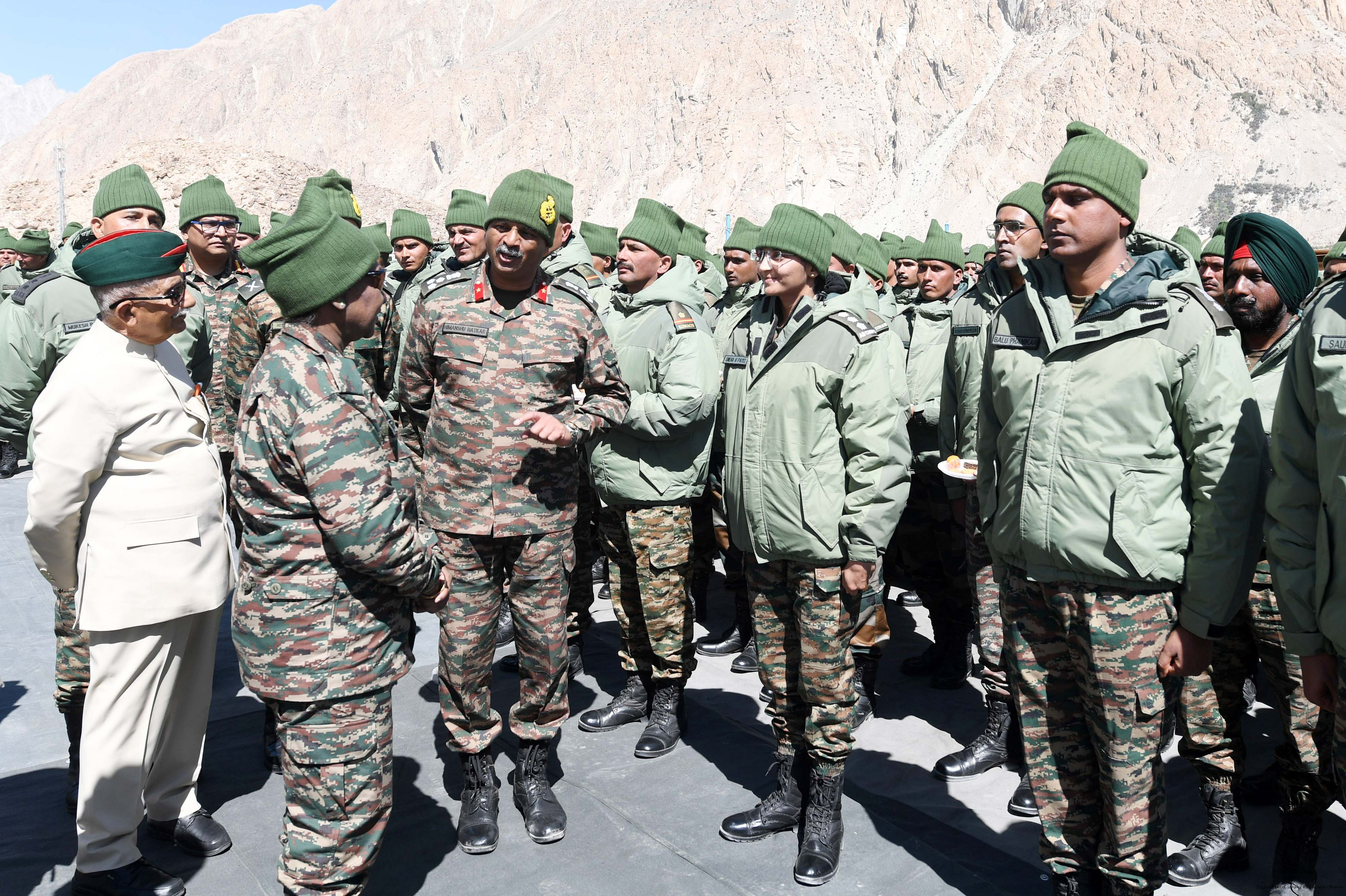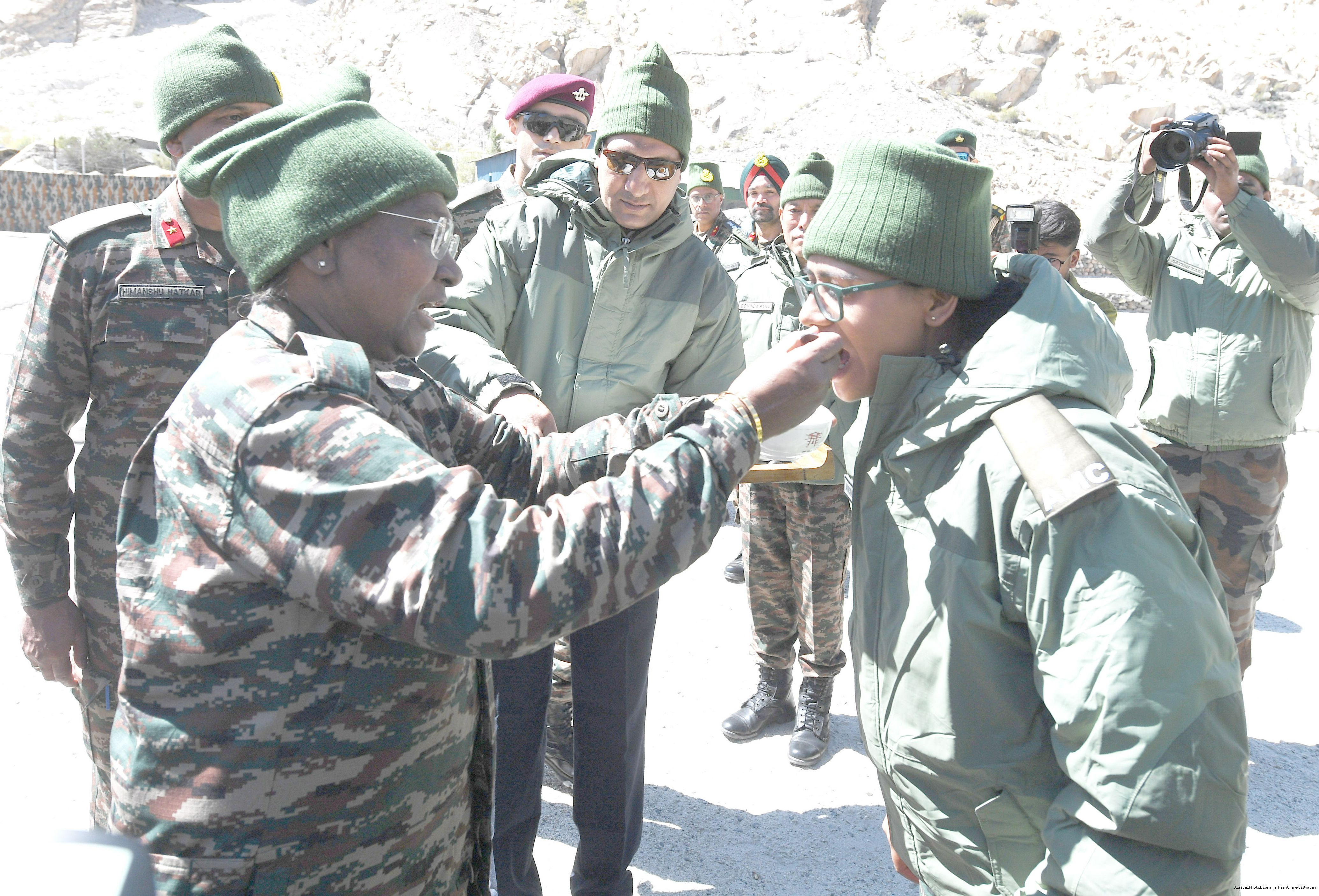 | Caption: | The President of India Smt. Droupadi Murmu visited Siachen Base Camp and addressed the soldiers posted there Ladakh on September 26, 2024. |