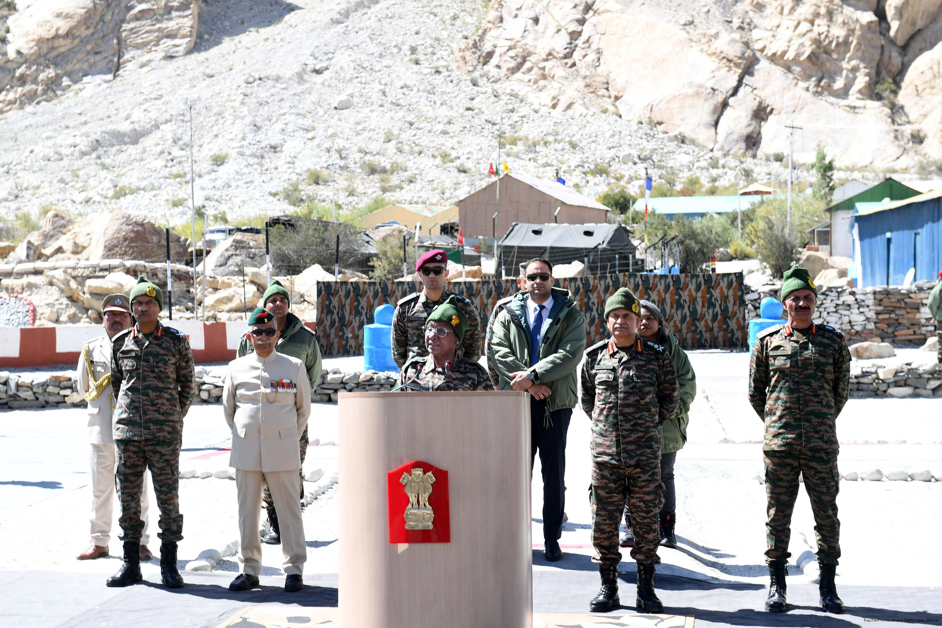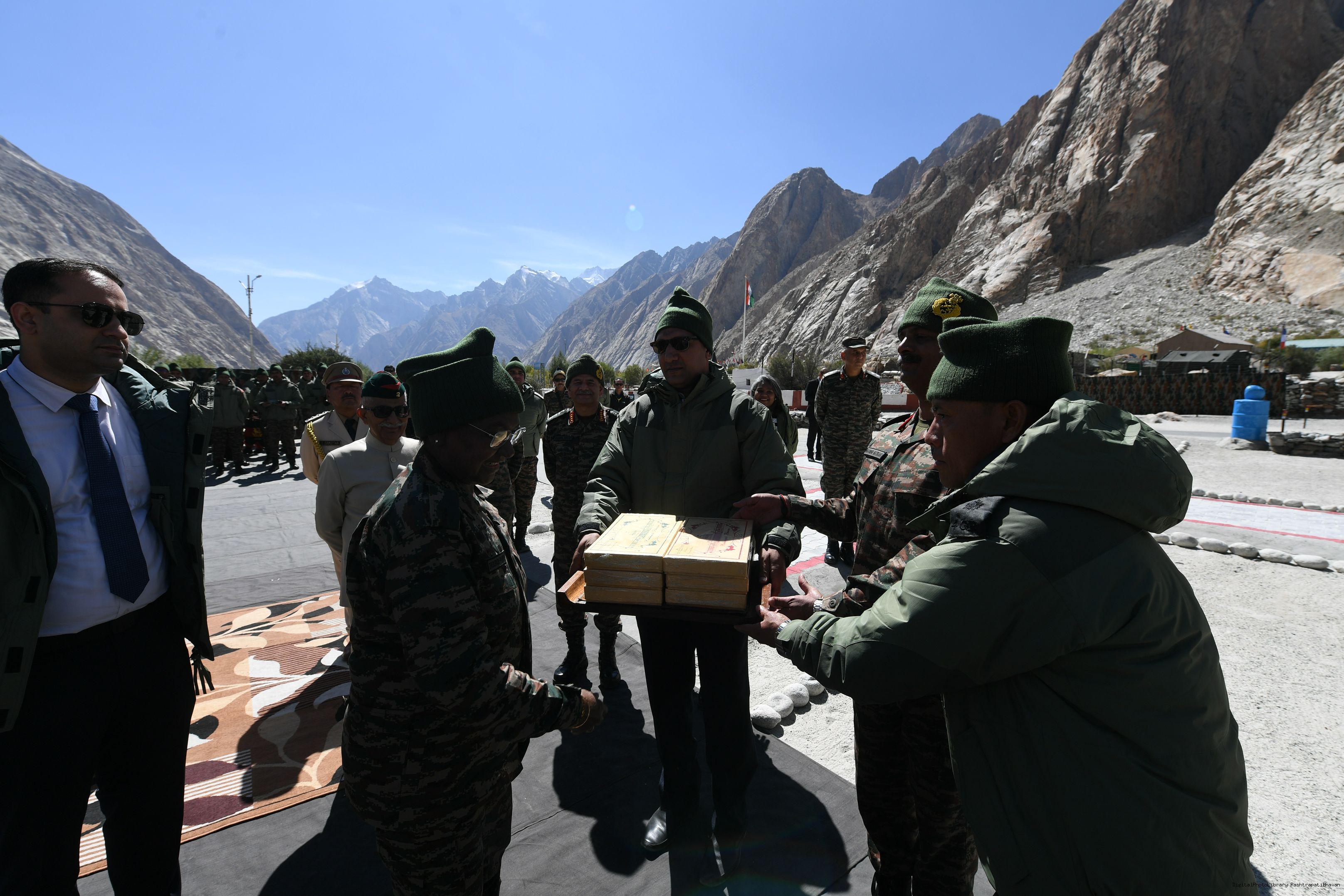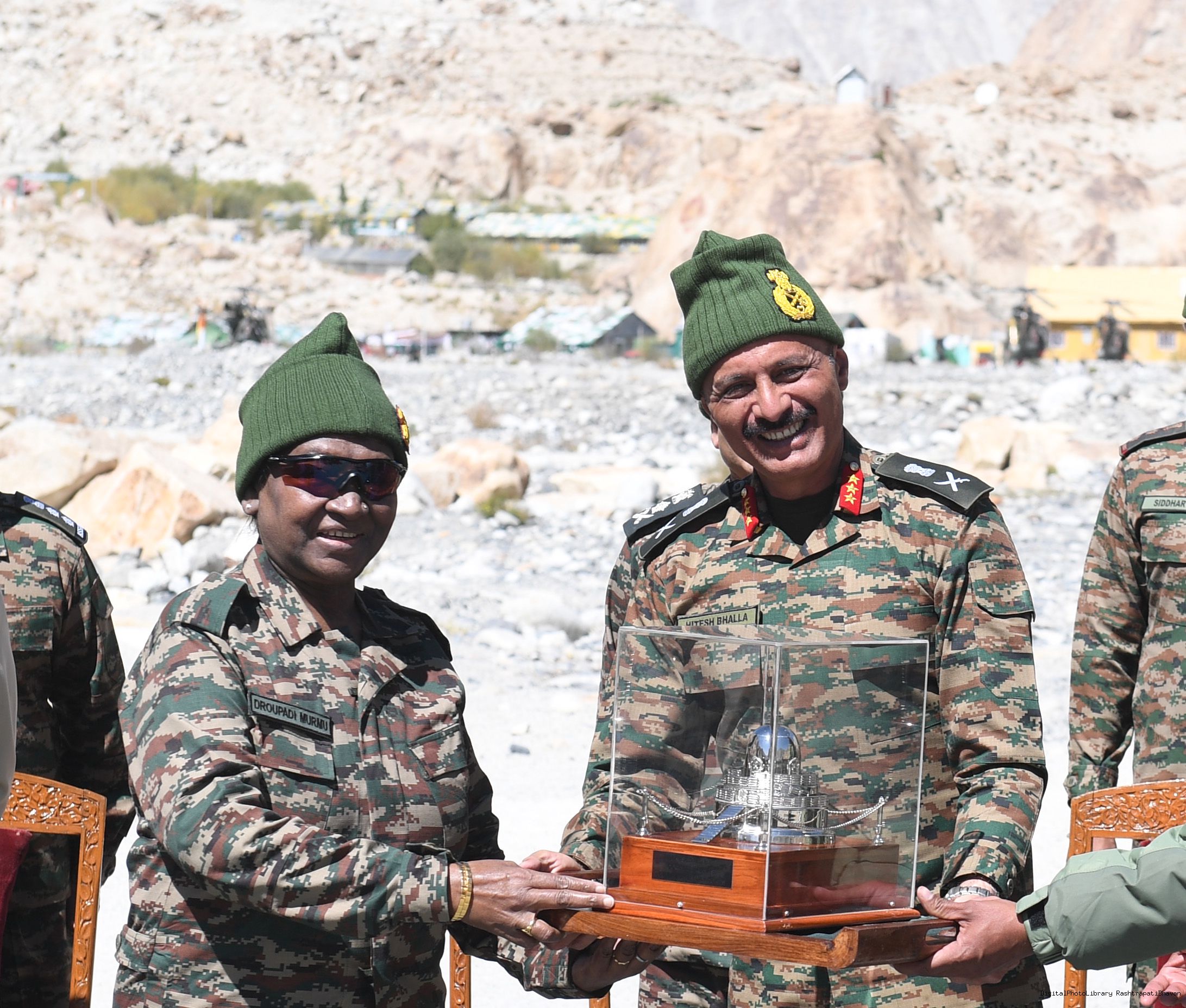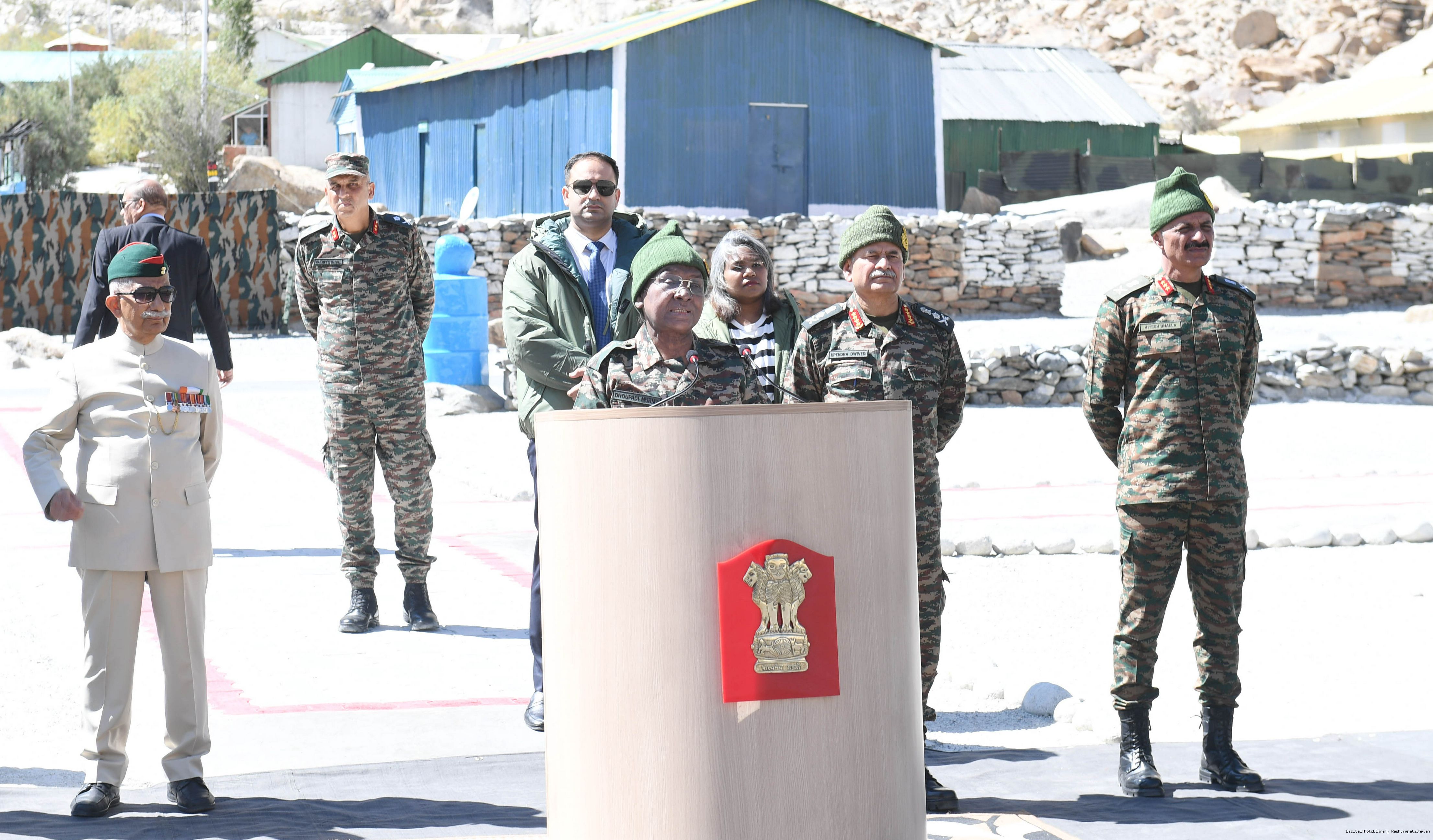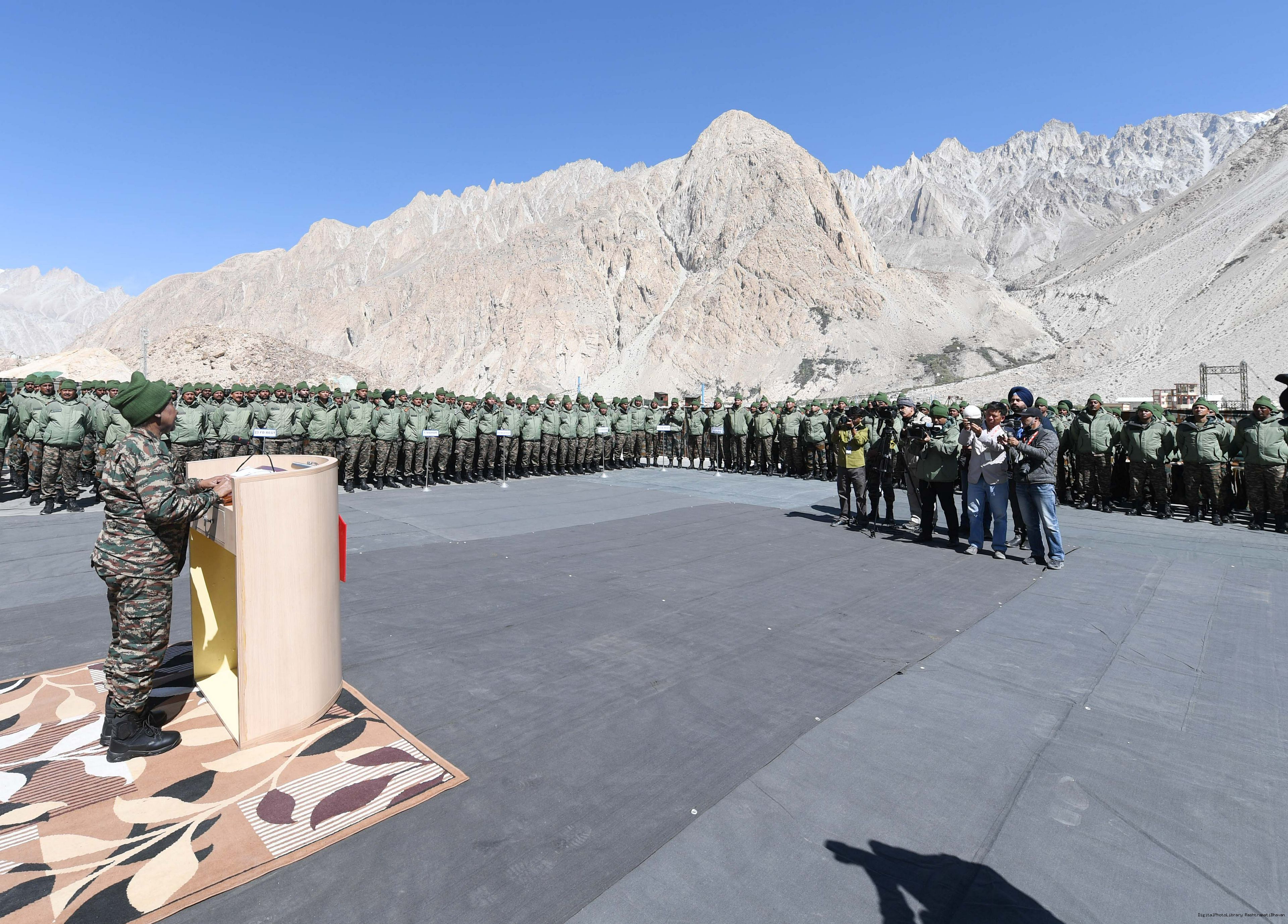 | Caption: | The President of India Smt. Droupadi Murmu visited Siachen Base Camp and addressed the soldiers posted there Ladakh on September 26, 2024. |