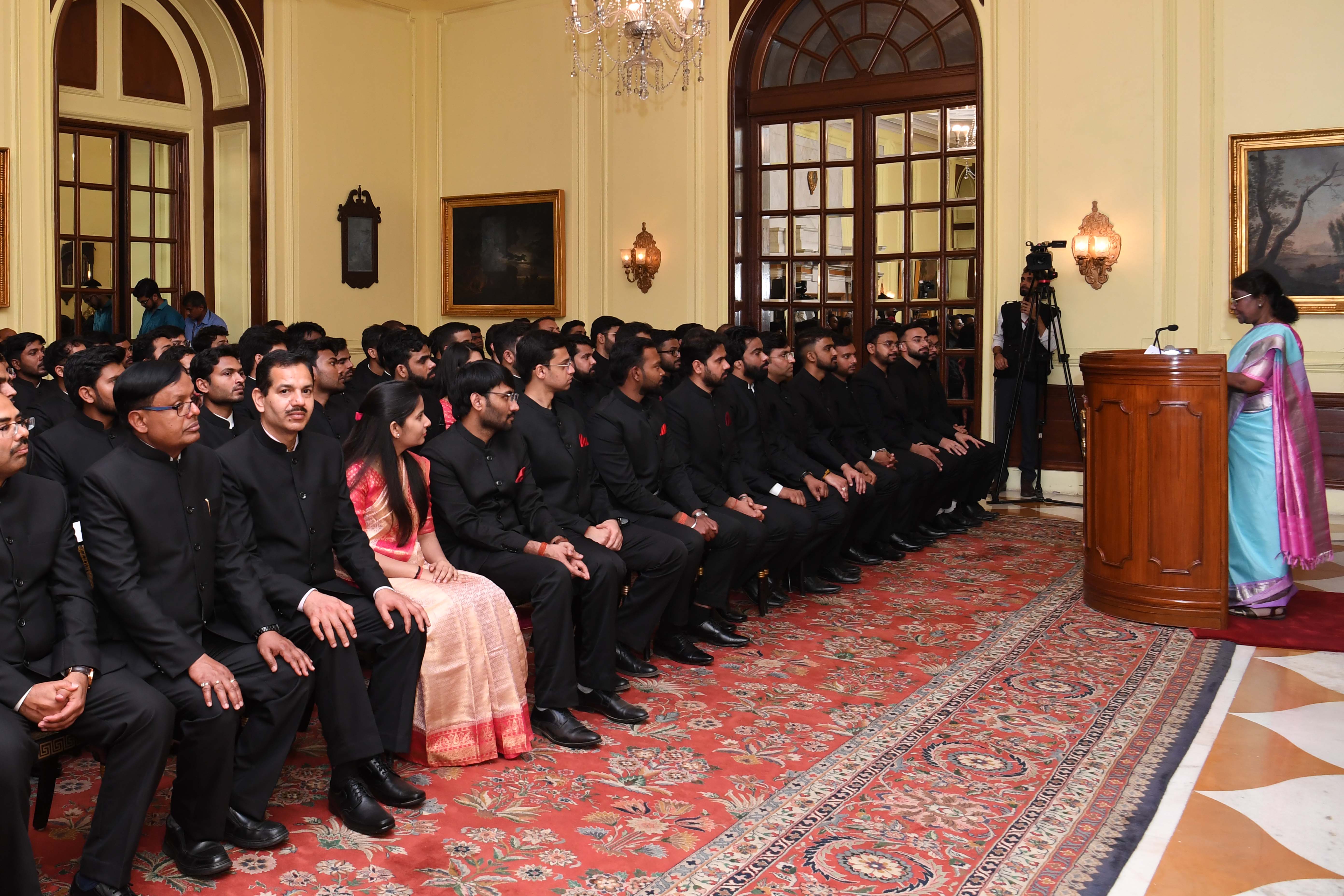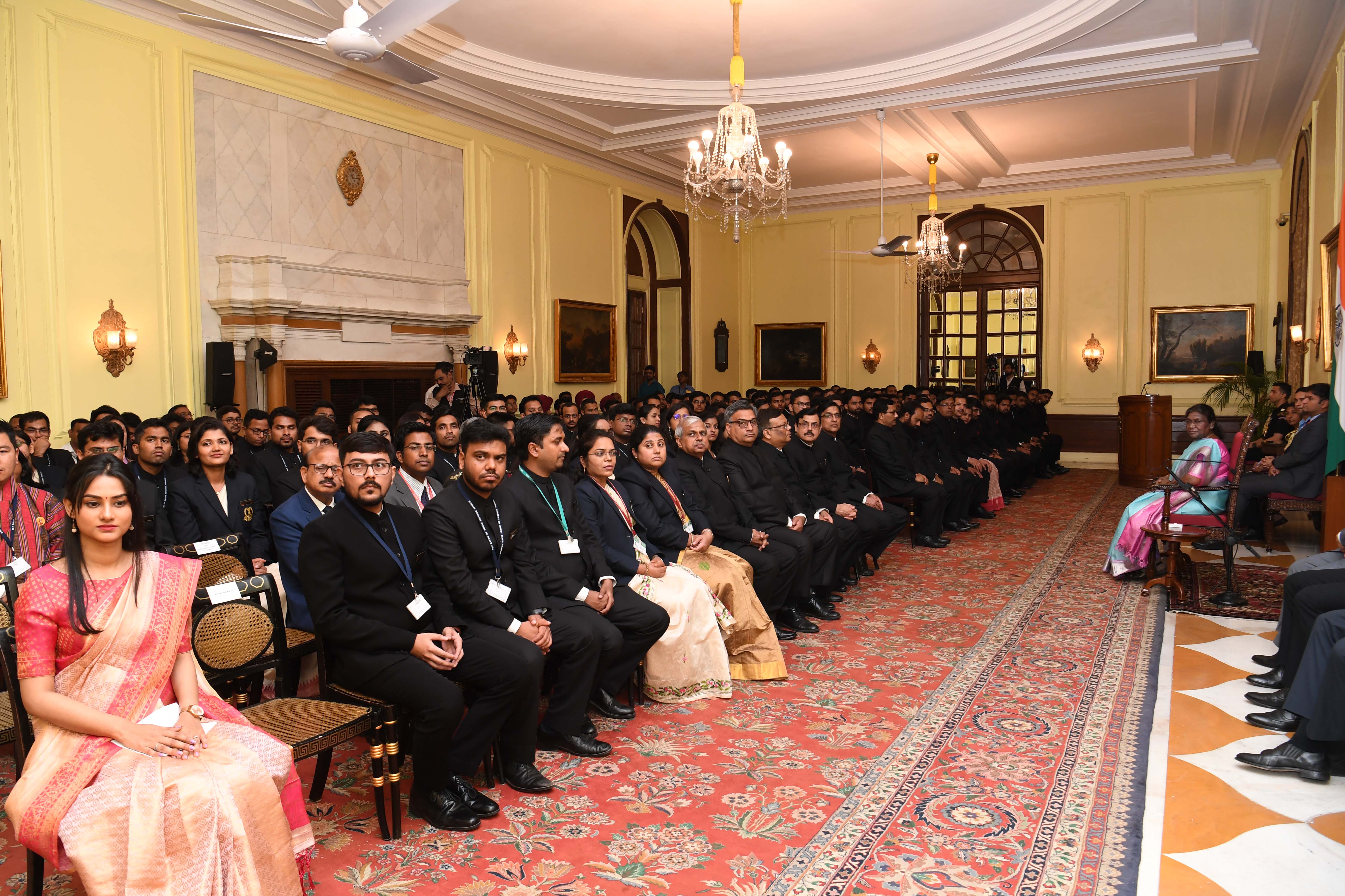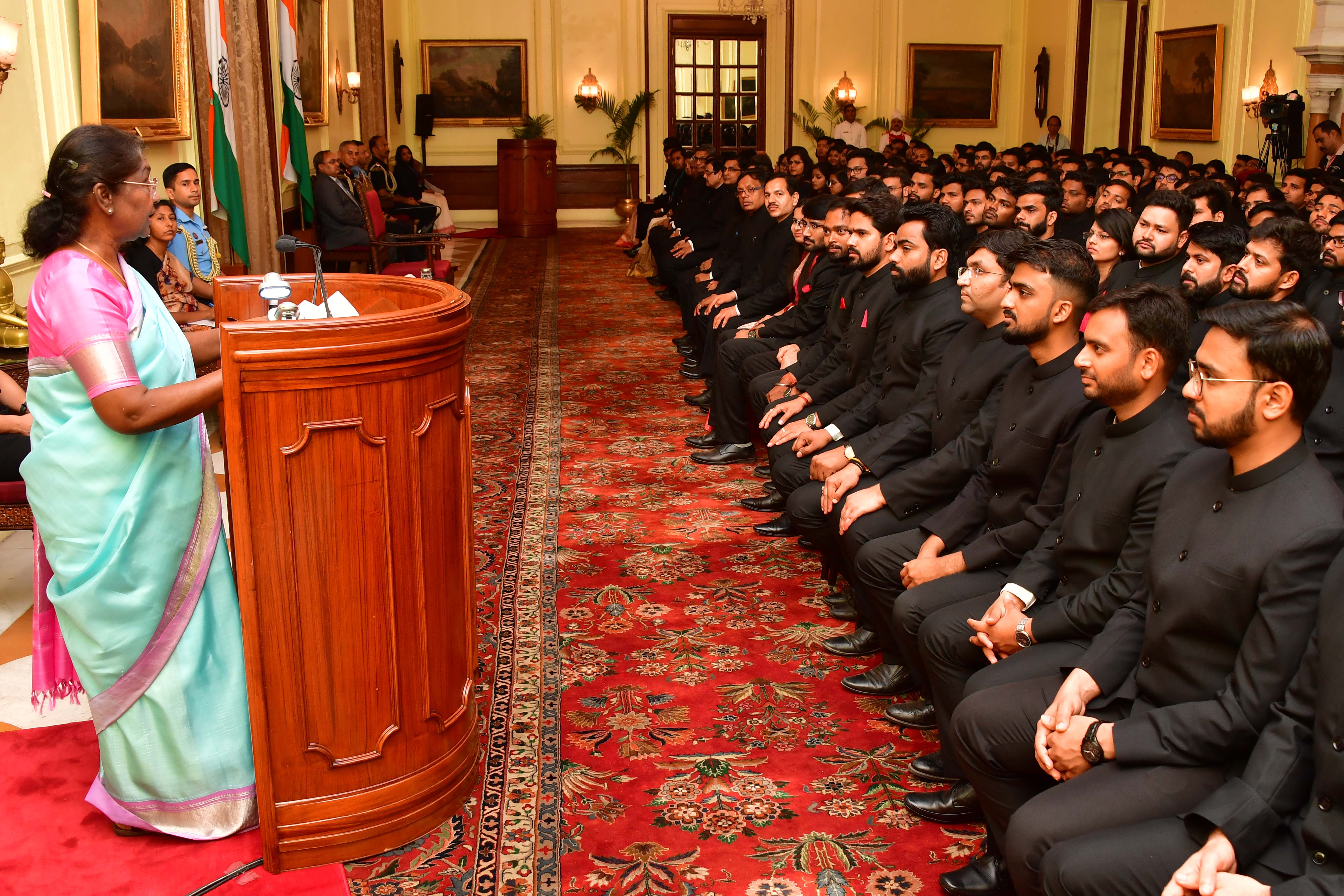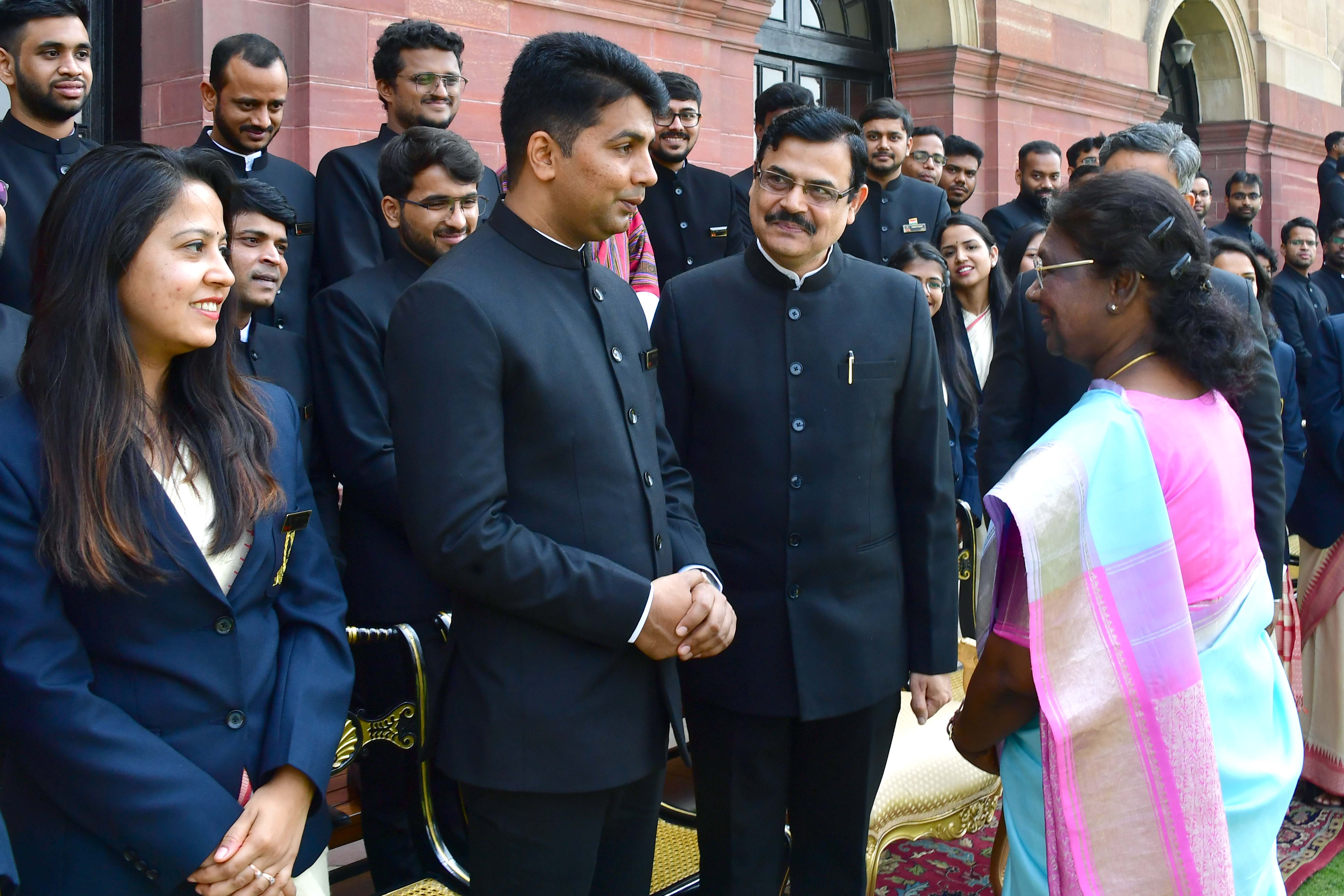 | Caption: | The Officer Trainees of the 76th batch of Indian Revenue Service and Assistant Executive Engineers of CPWD (2020 and 2021 batches) called on the President of India, Smt Droupadi Murmu at Rashtrapati Bhavanon on March 14, 2023. |