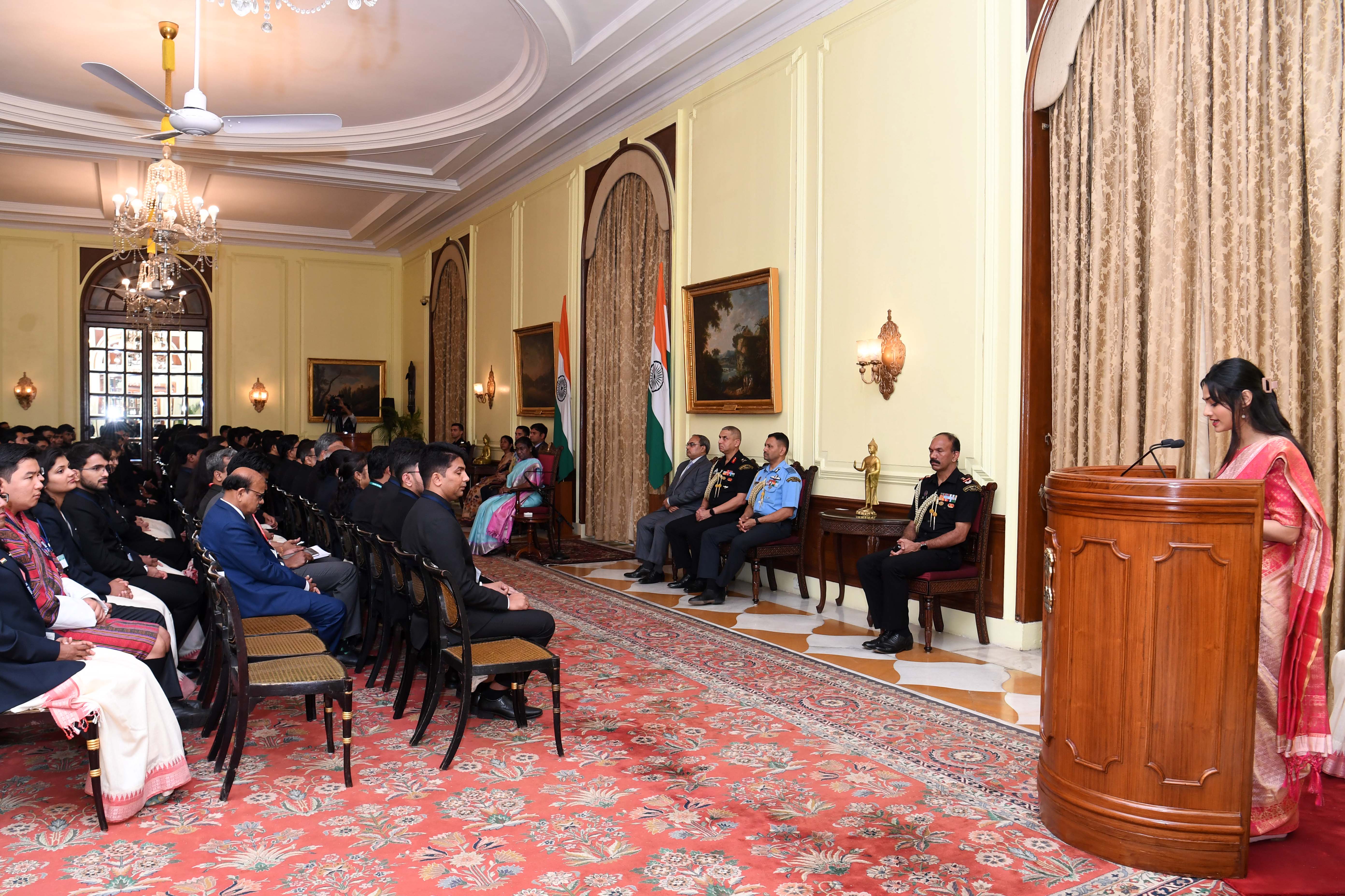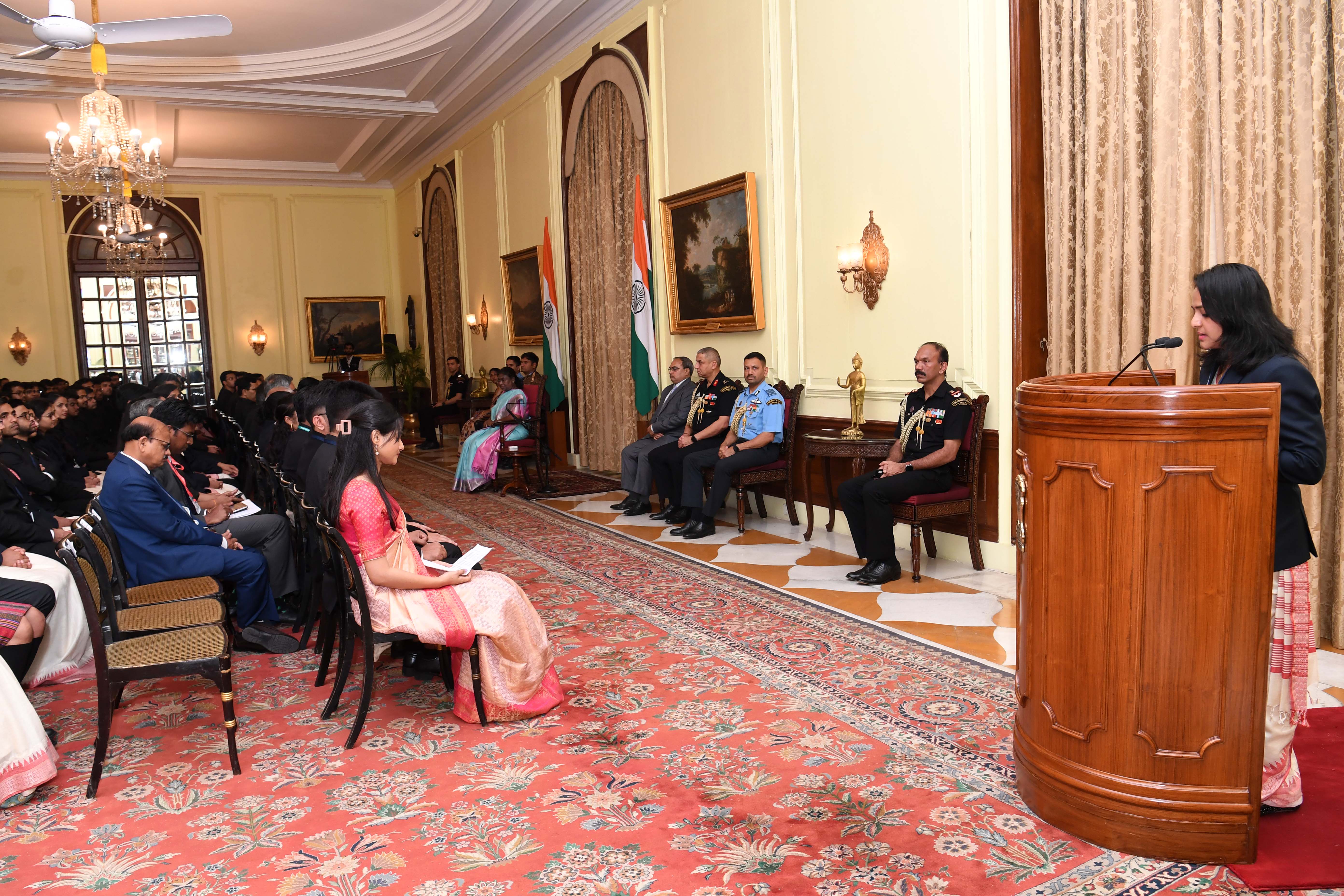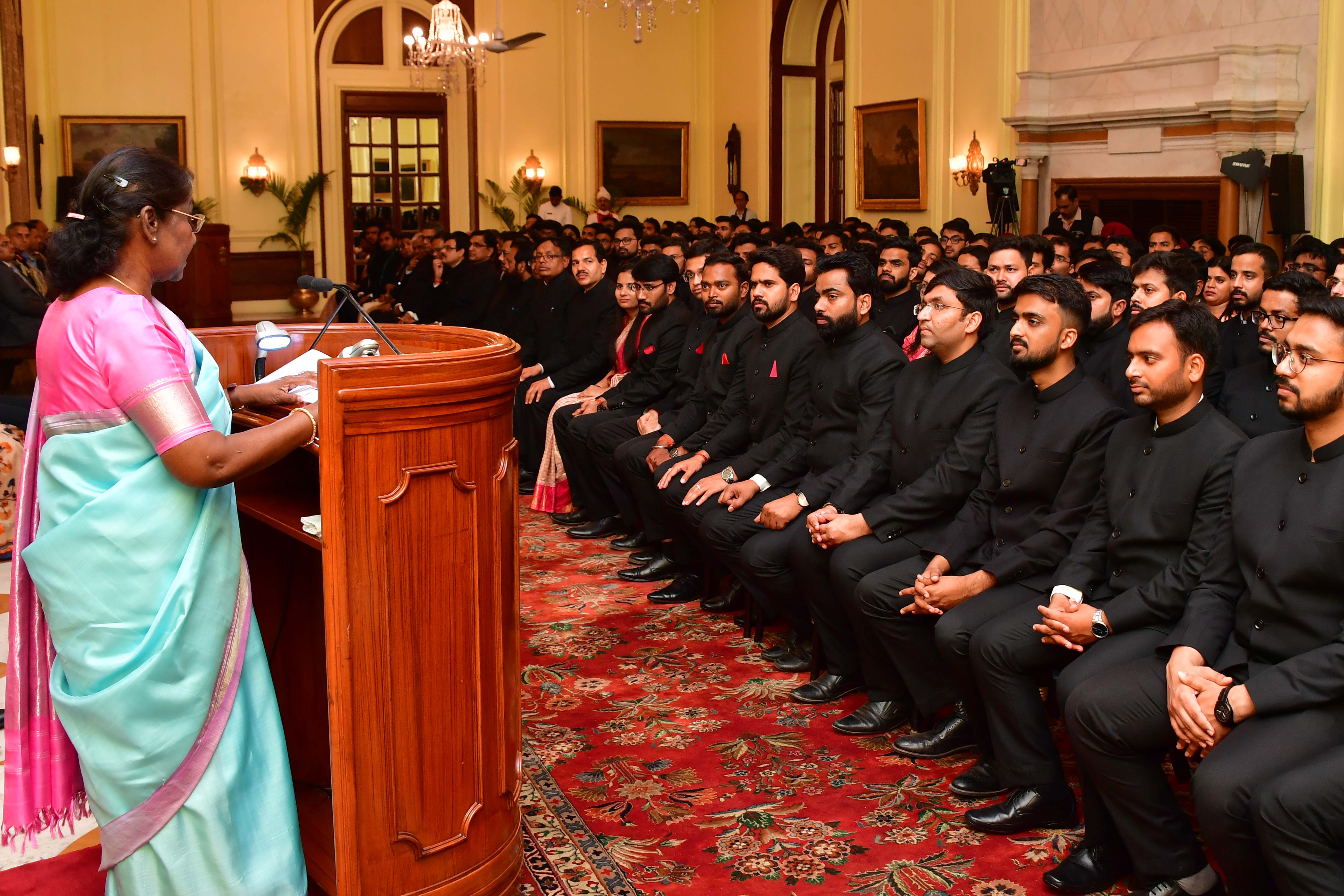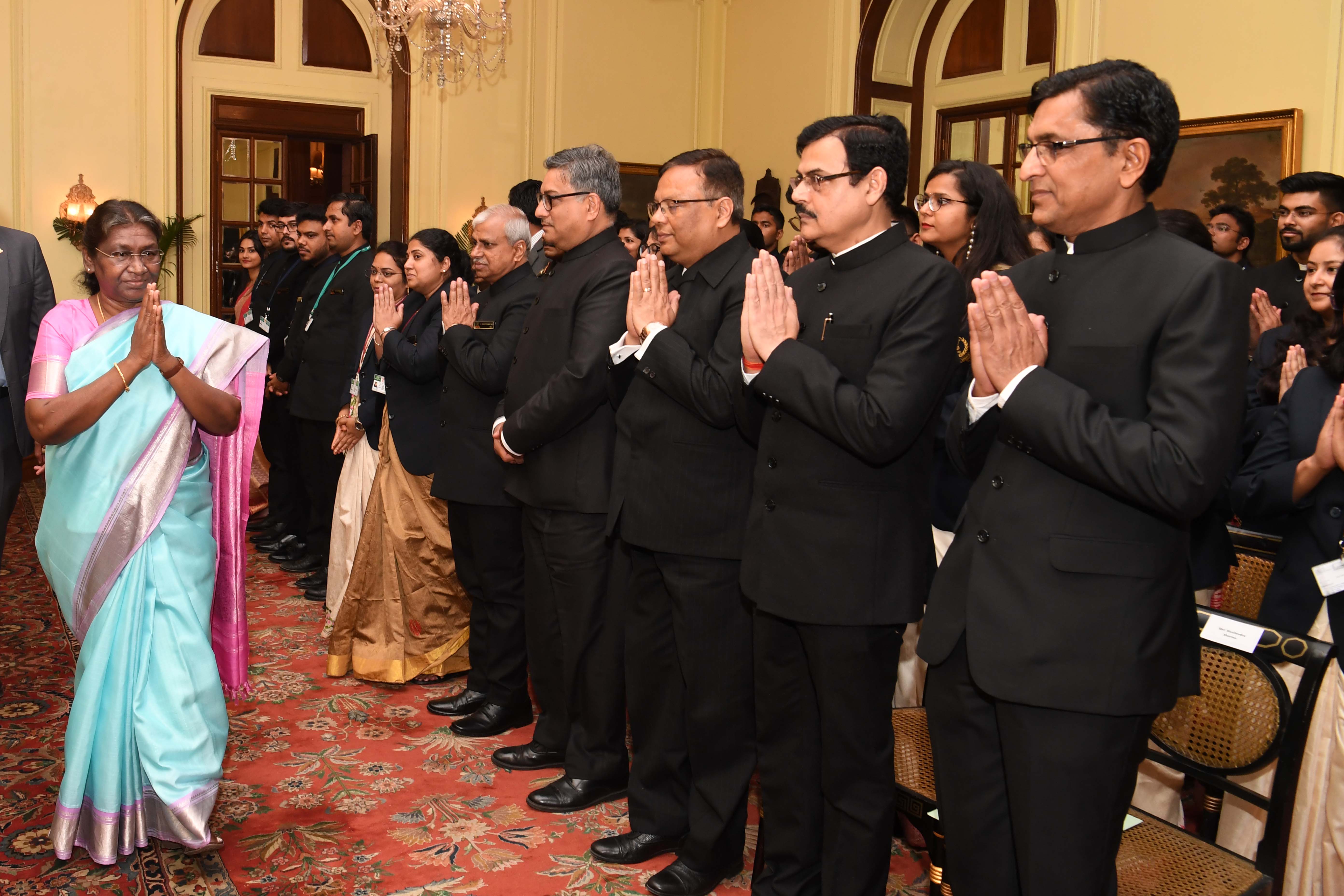 | Caption: | The Officer Trainees of the 76th batch of Indian Revenue Service and Assistant Executive Engineers of CPWD (2020 and 2021 batches) called on the President of India, Smt Droupadi Murmu at Rashtrapati Bhavanon on March 14, 2023. |