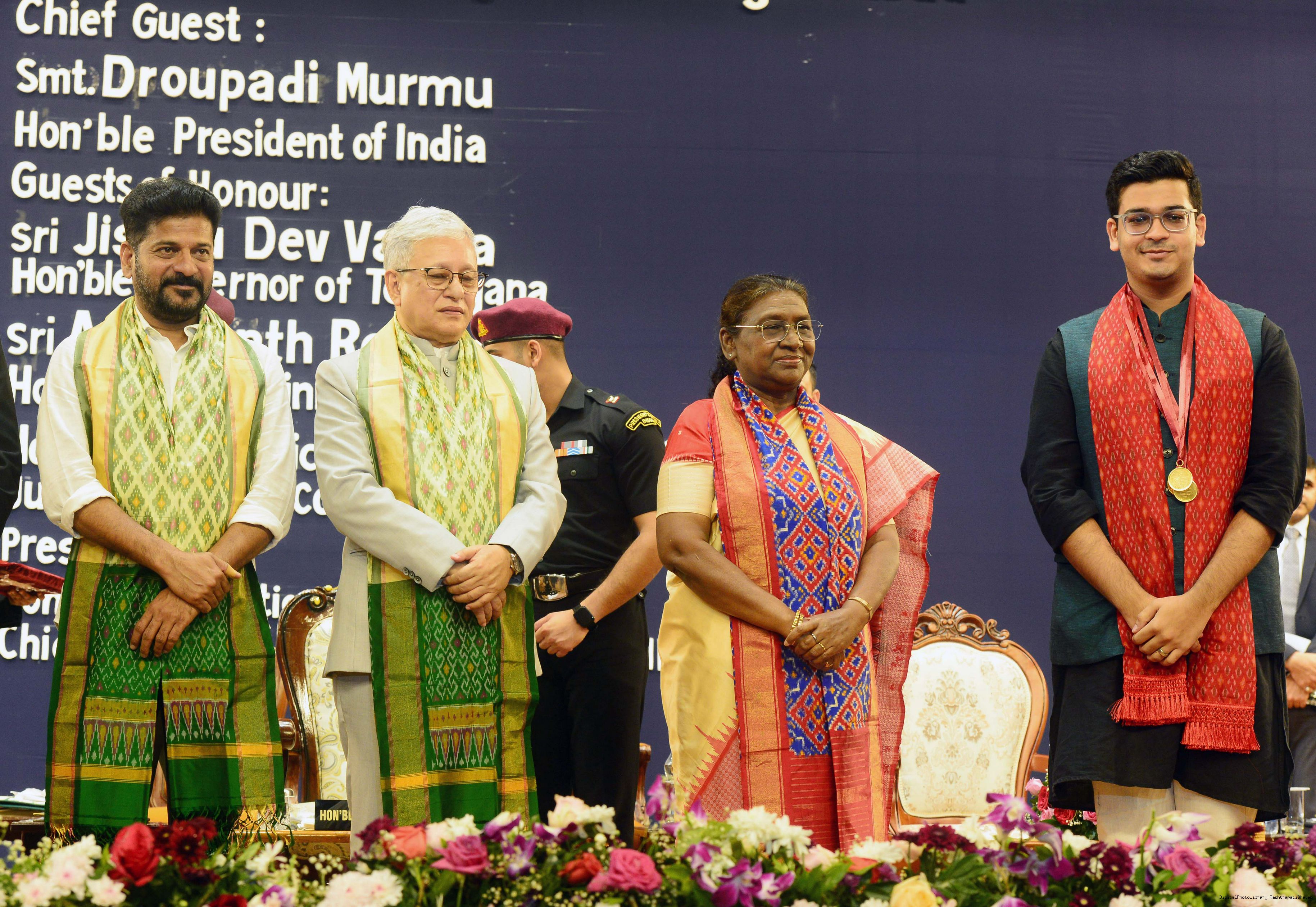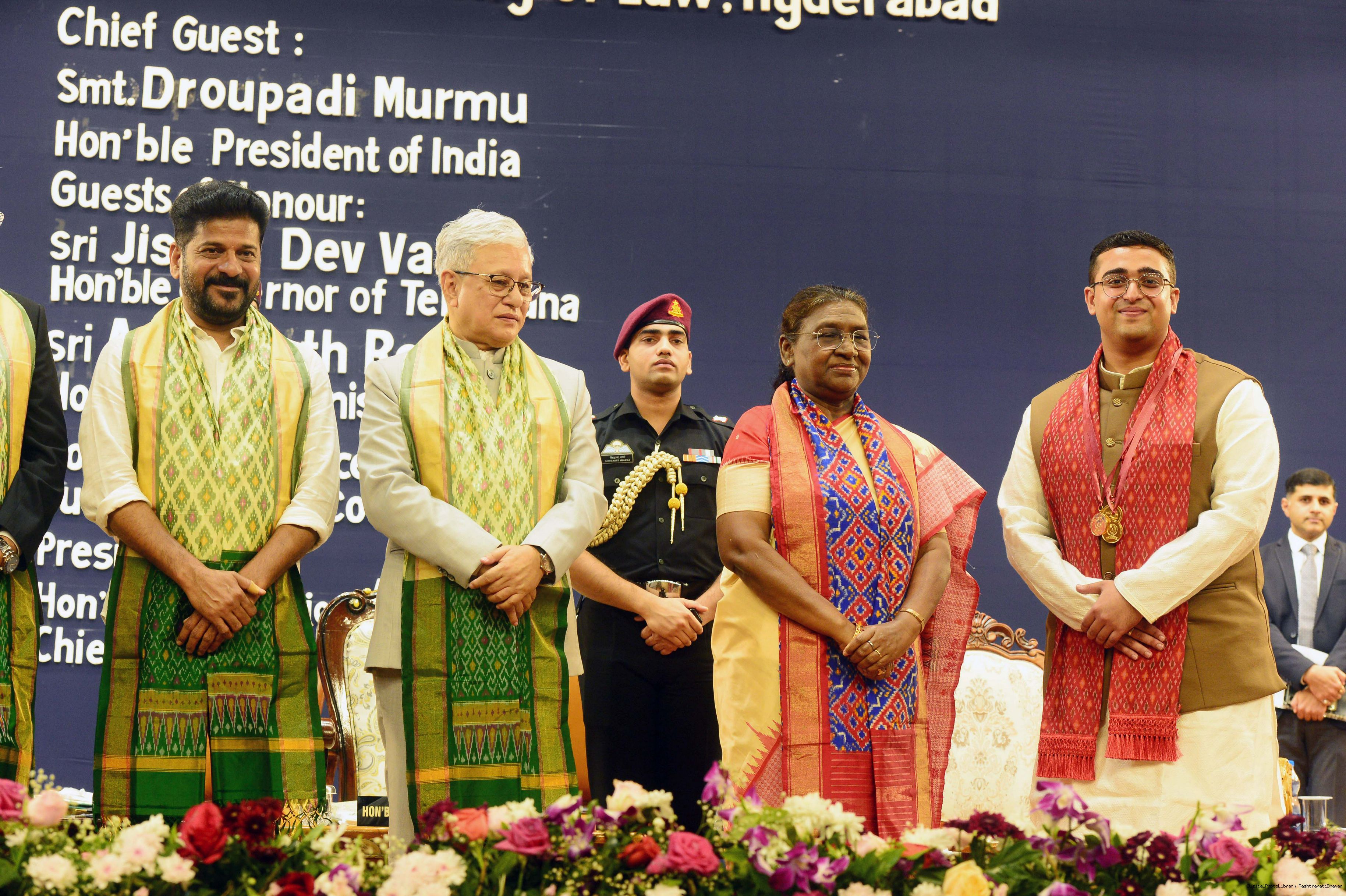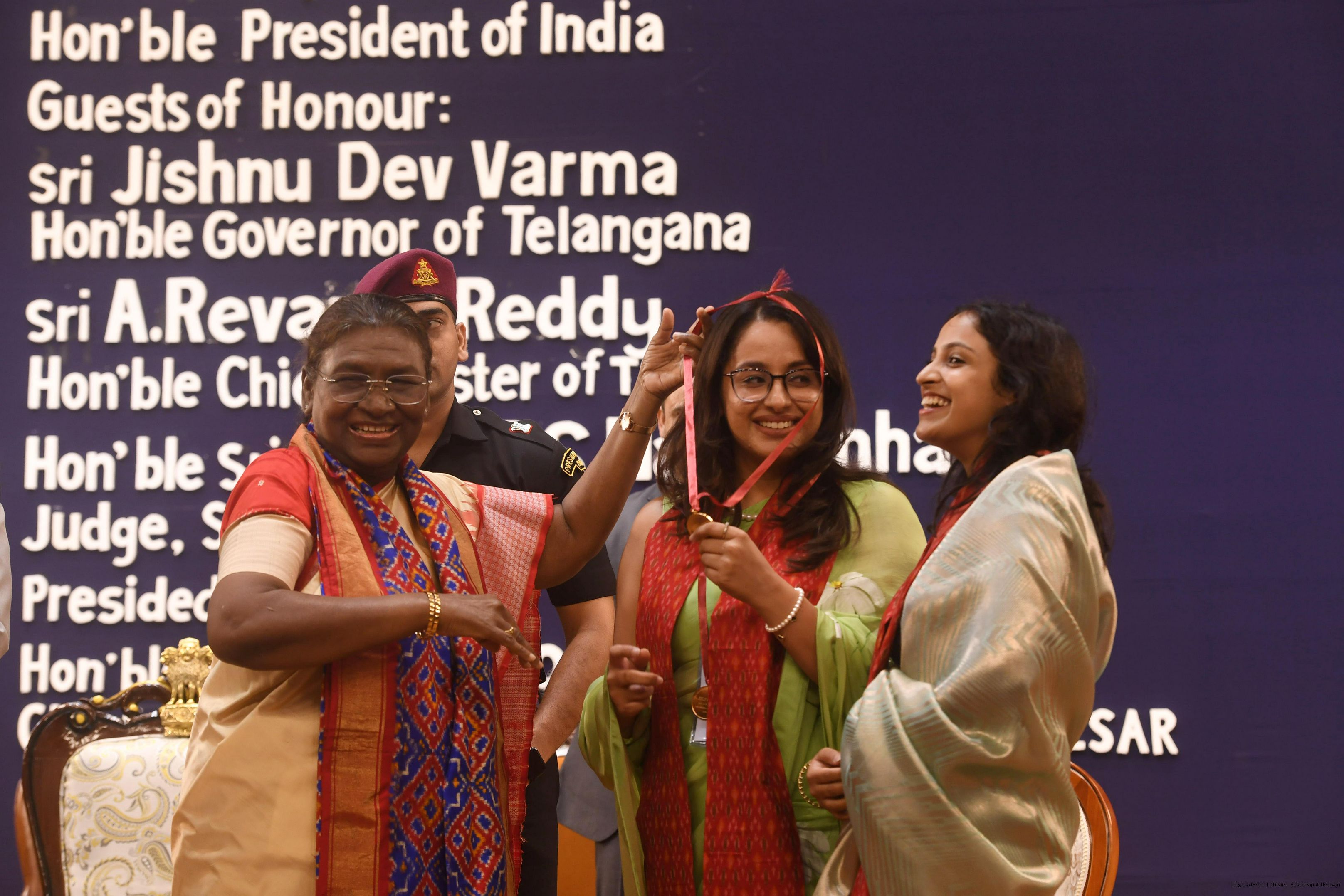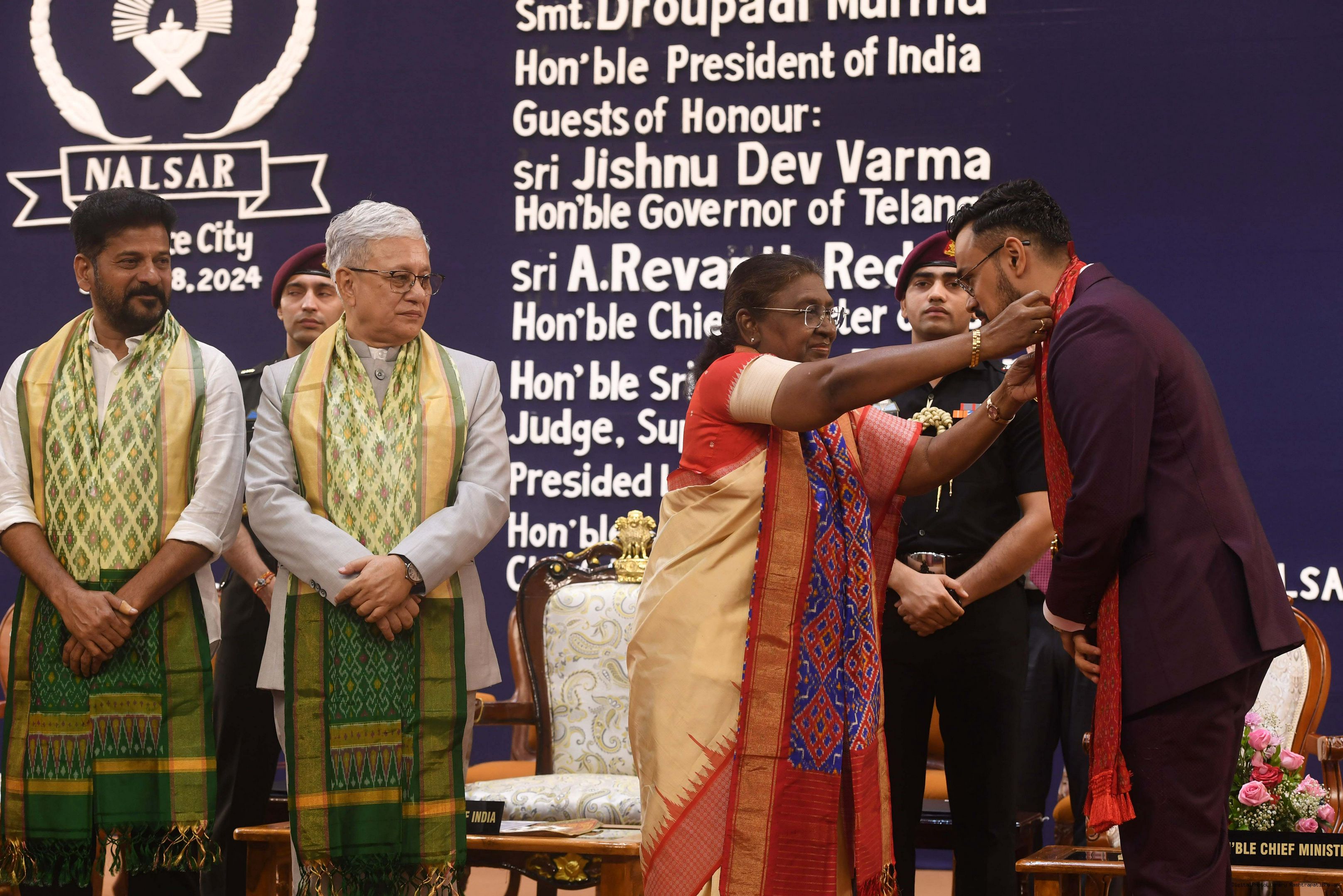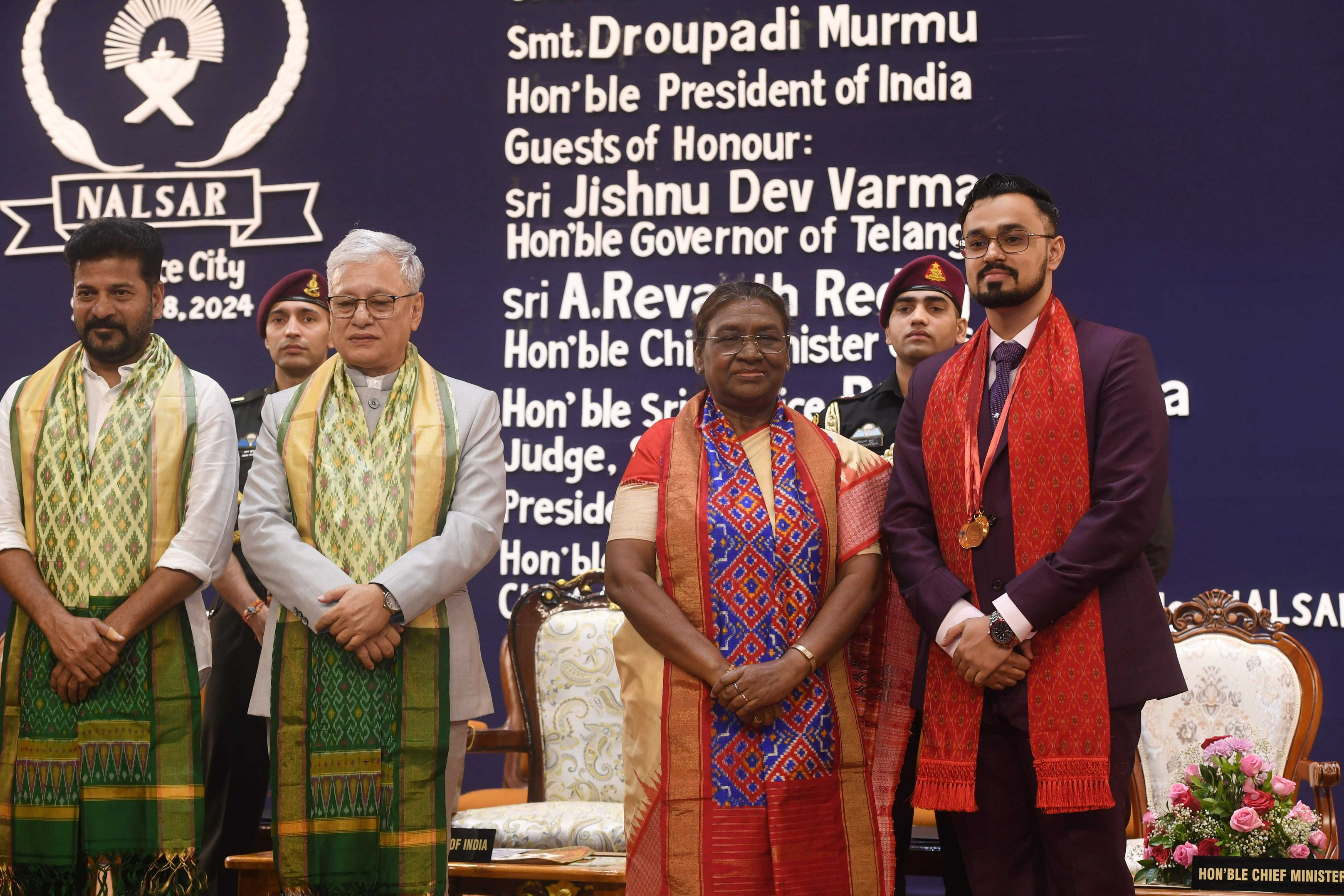 | Caption: | The President of India, Smt. Droupadi Murmu graced the 21st convocation of NALSAR University of Law at Hyderabad, Telangana on September 28, 2024. |