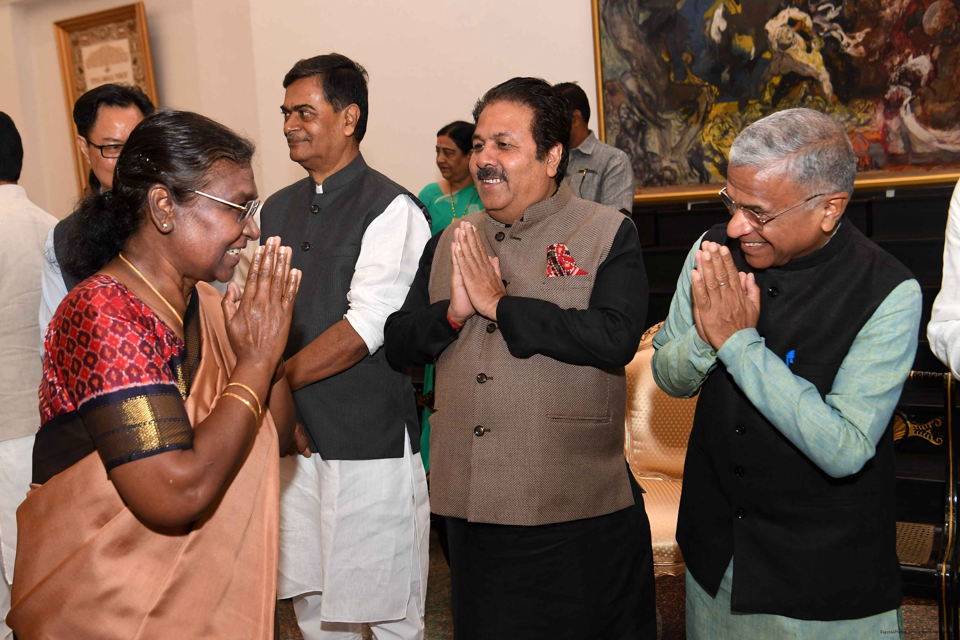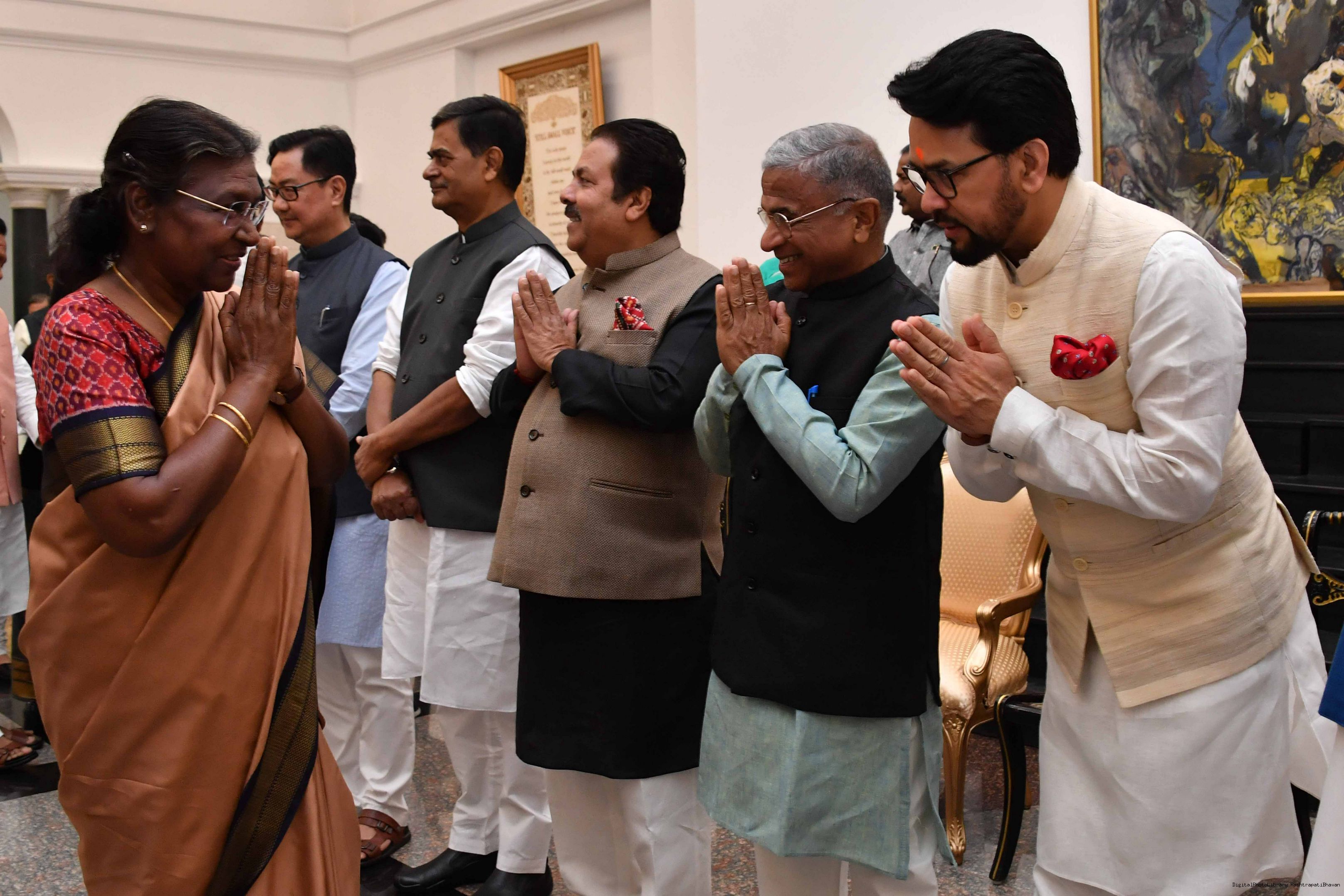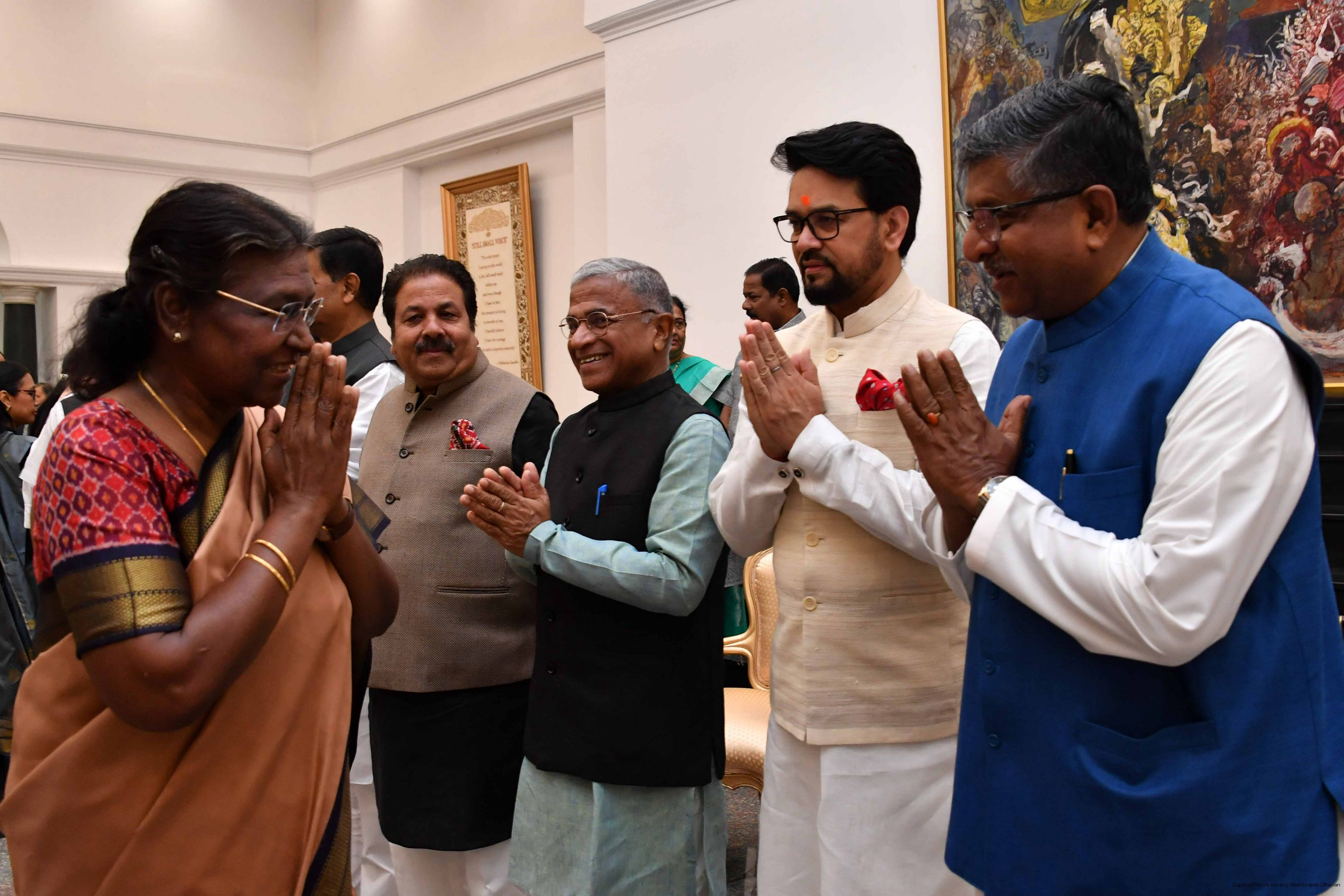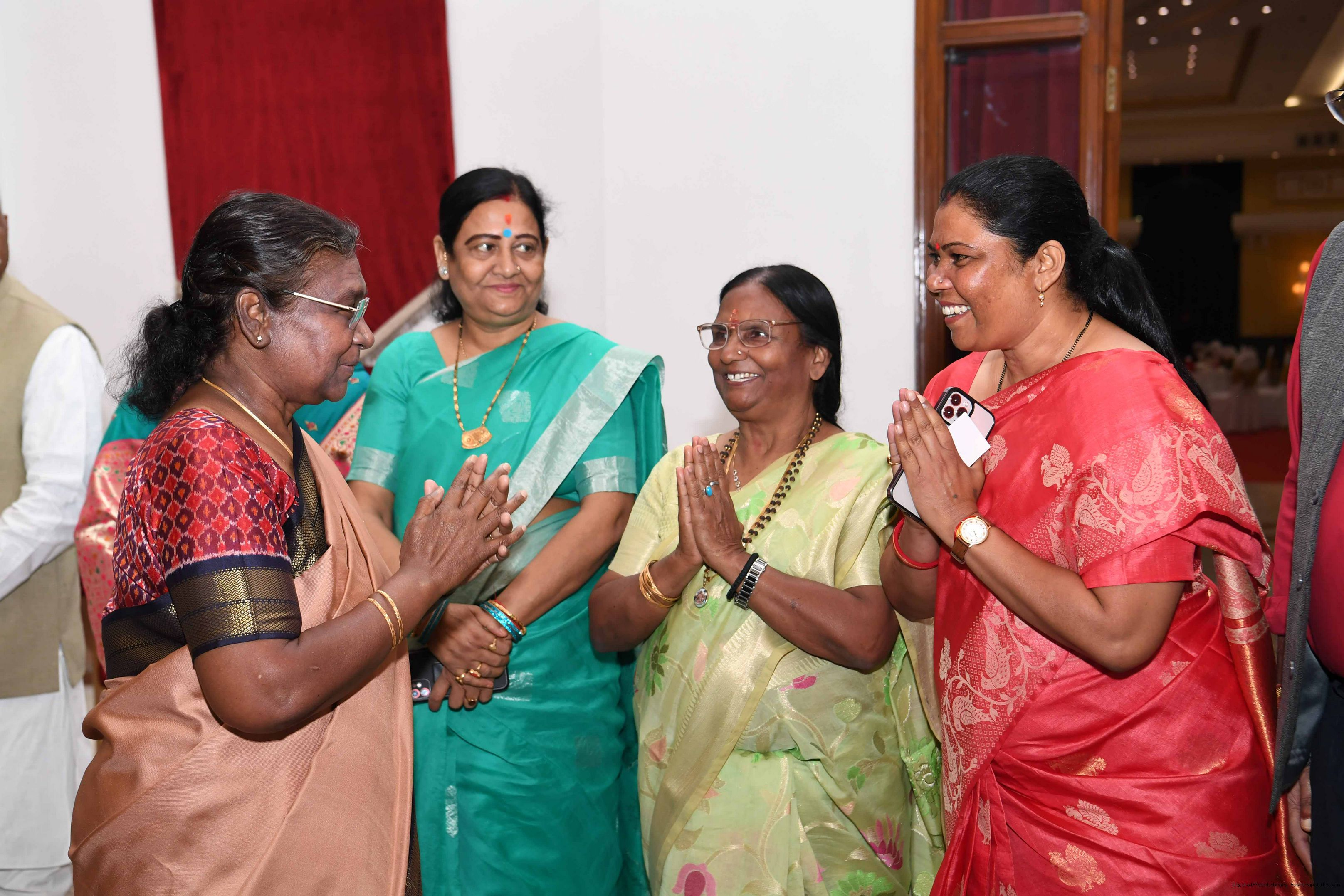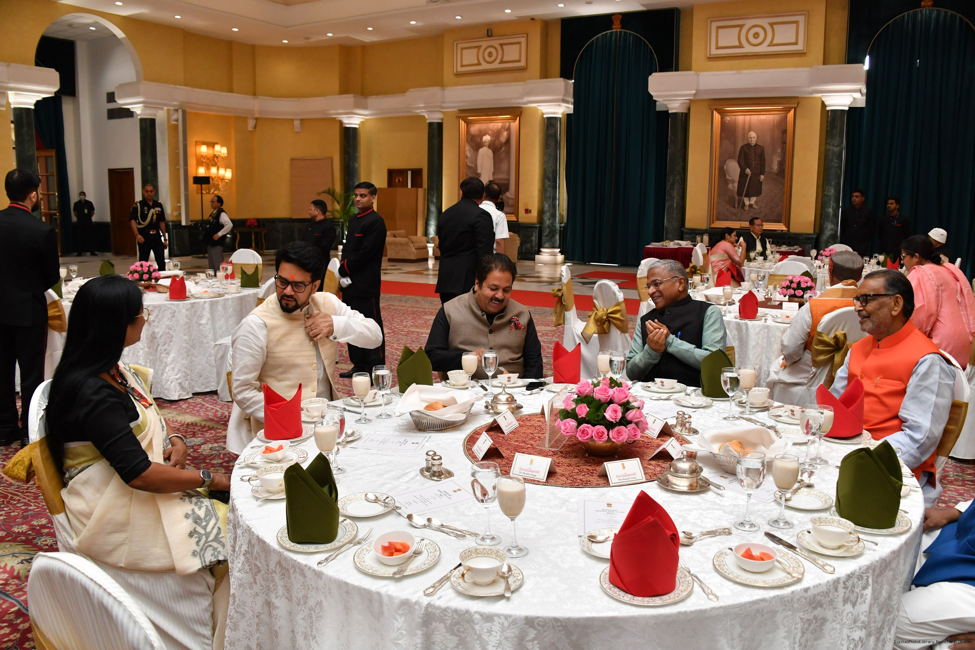 | Caption: | The President of India Smt. Droupadi Murmu breakfast meeting with the Members of Parliament (LS RS) at Rashtrapati Bhavan on April 03, 2023. |