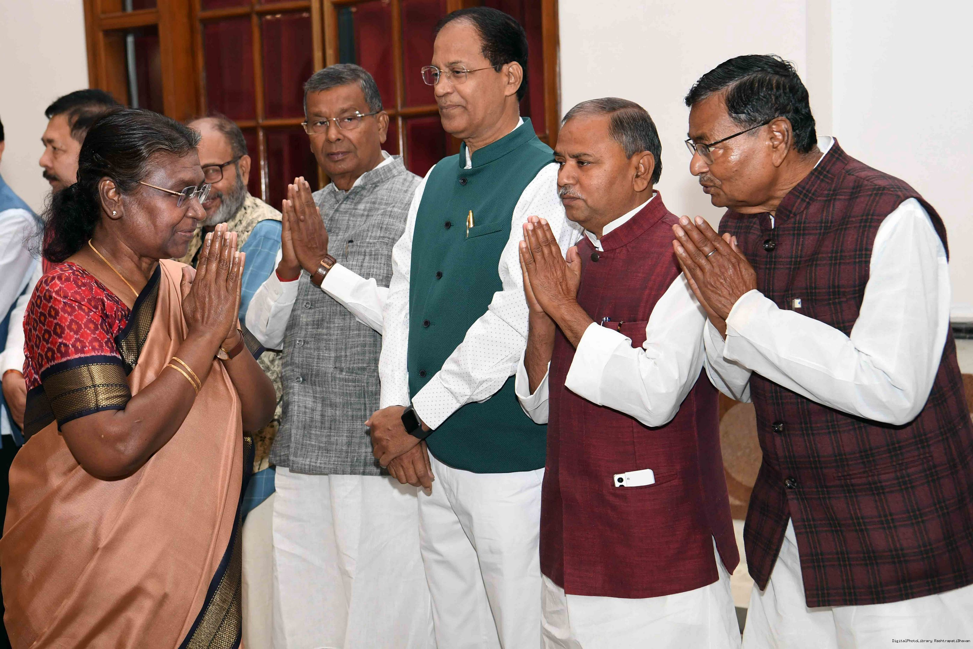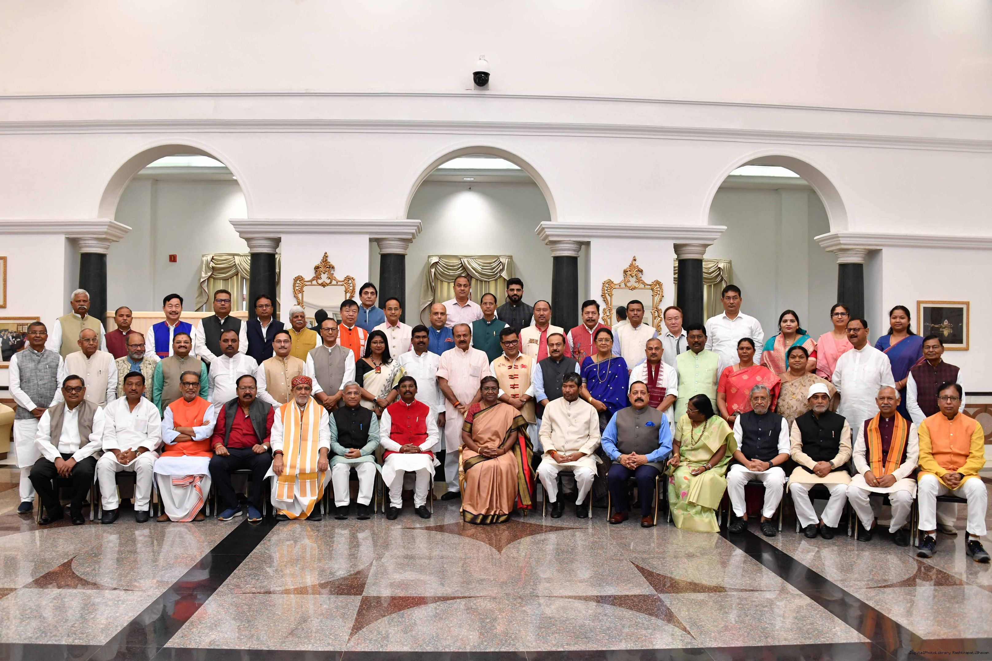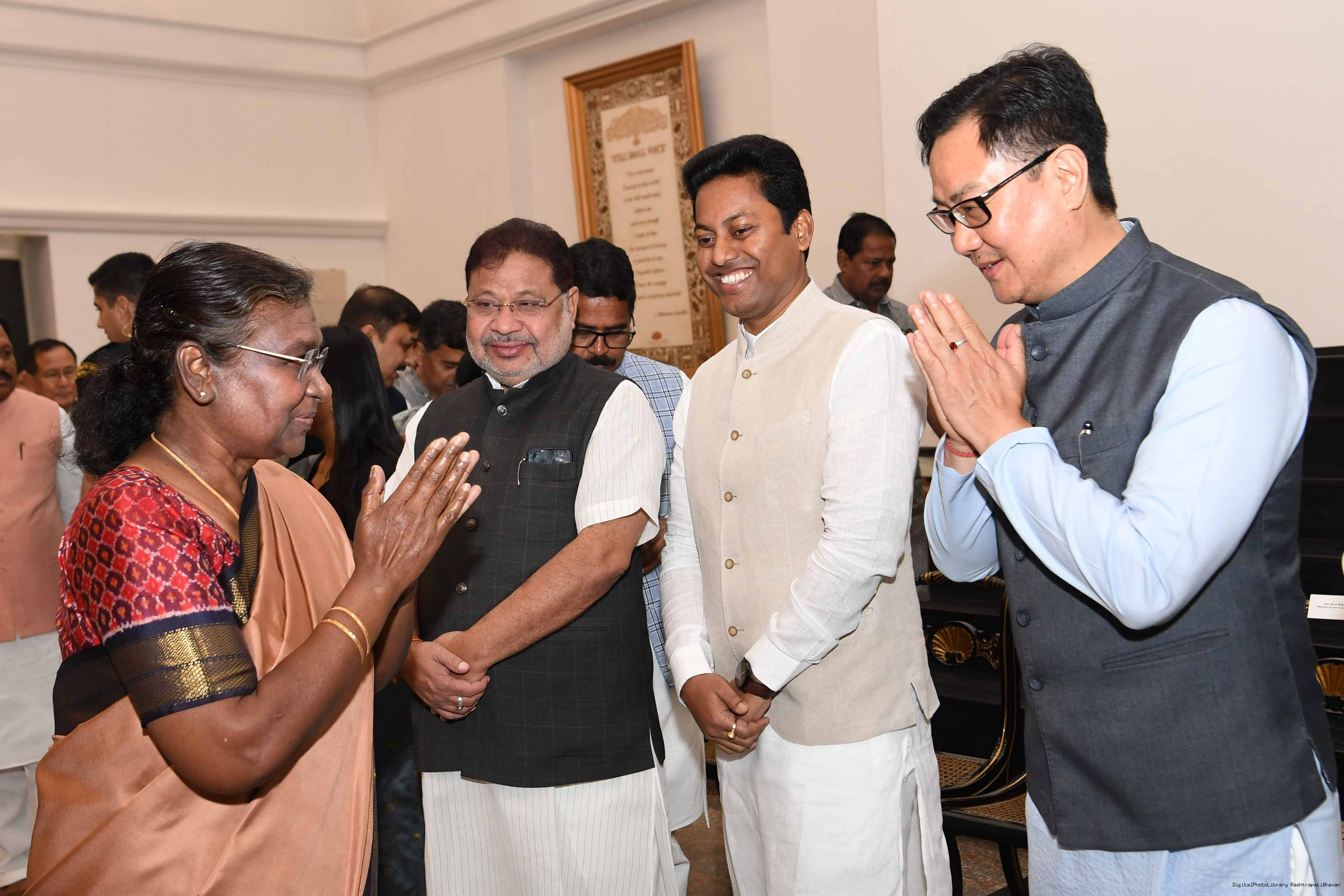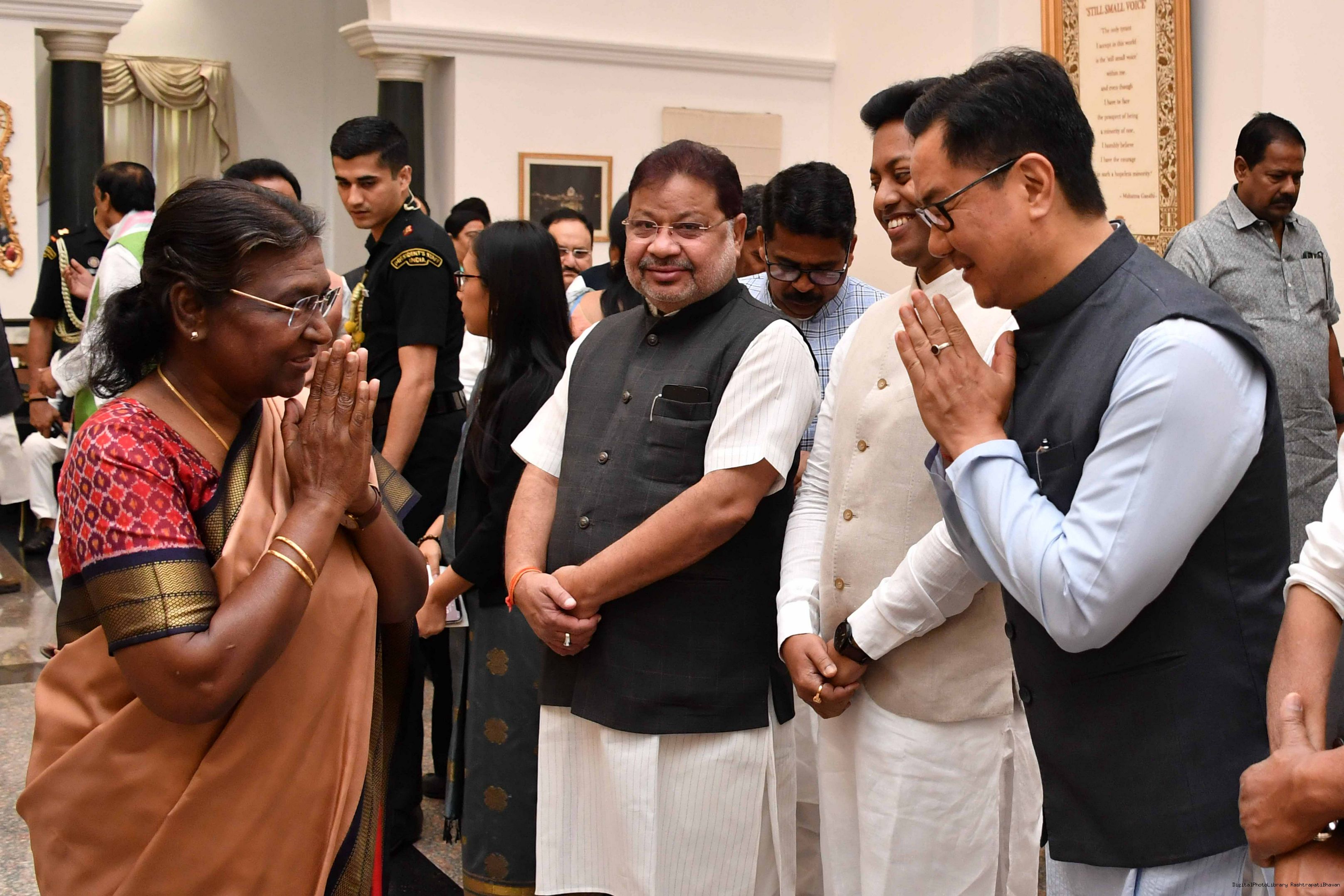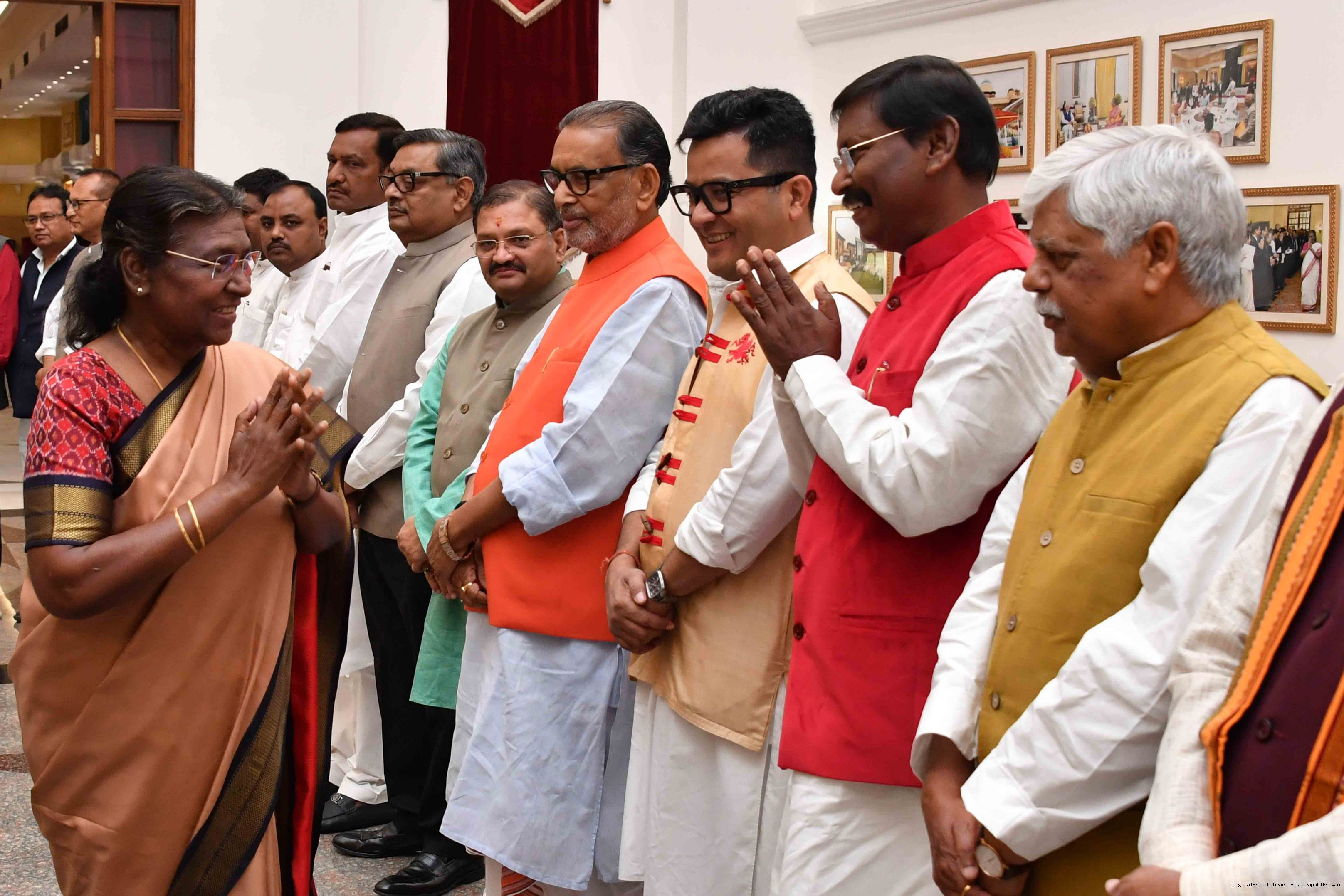 | Caption: | The President of India Smt. Droupadi Murmu breakfast meeting with the Members of Parliament (LS RS) at Rashtrapati Bhavan on April 03, 2023. |