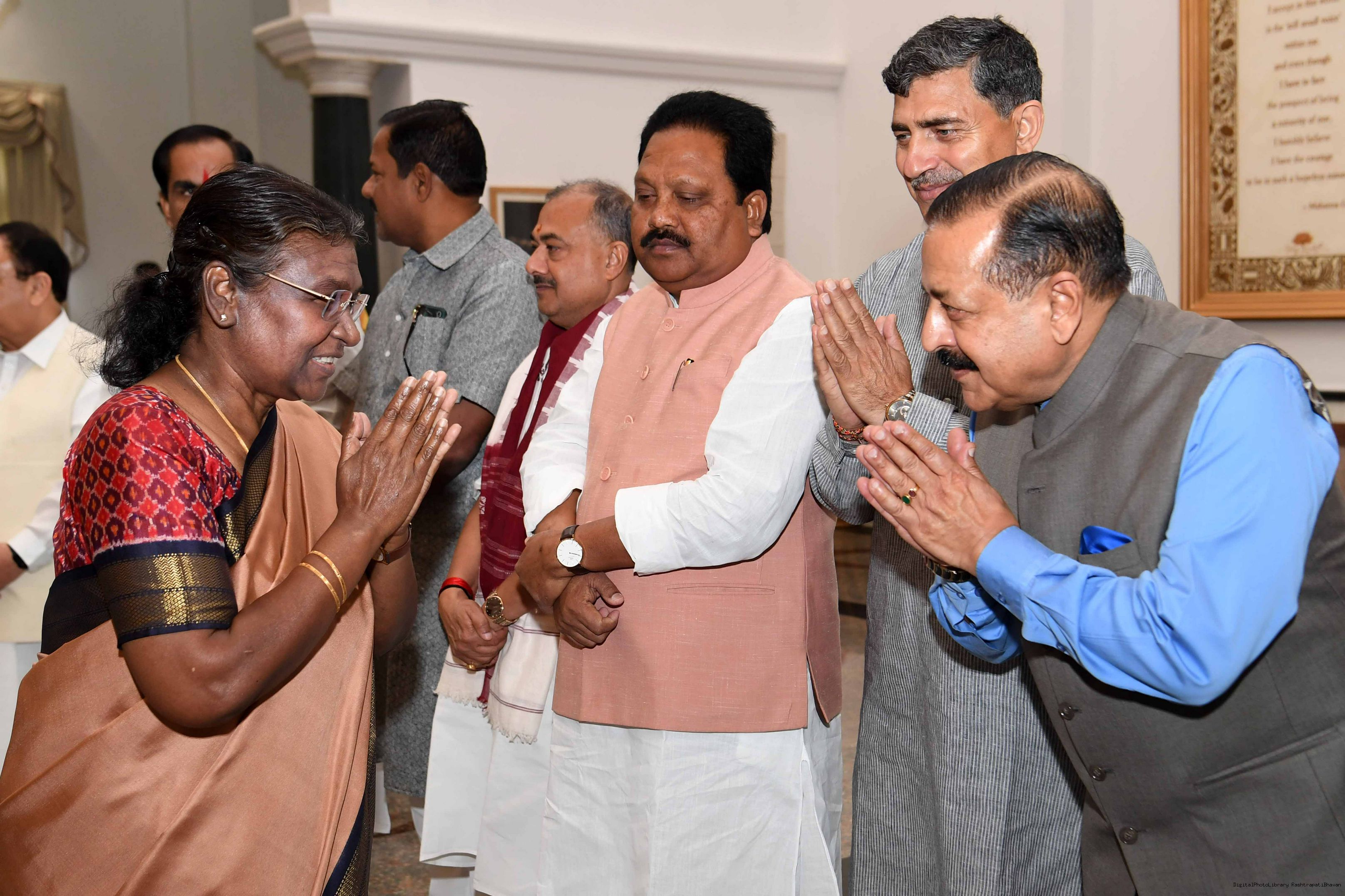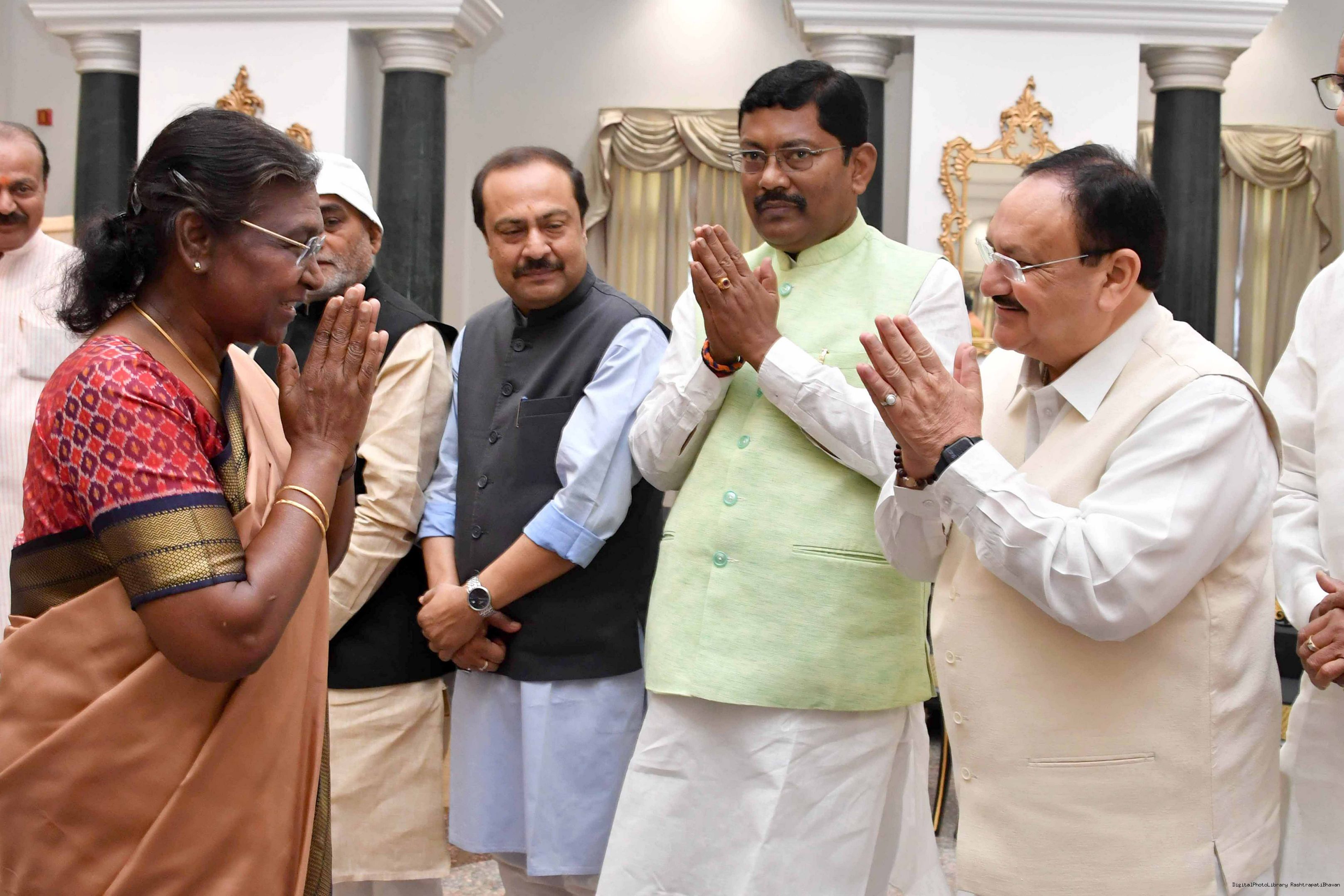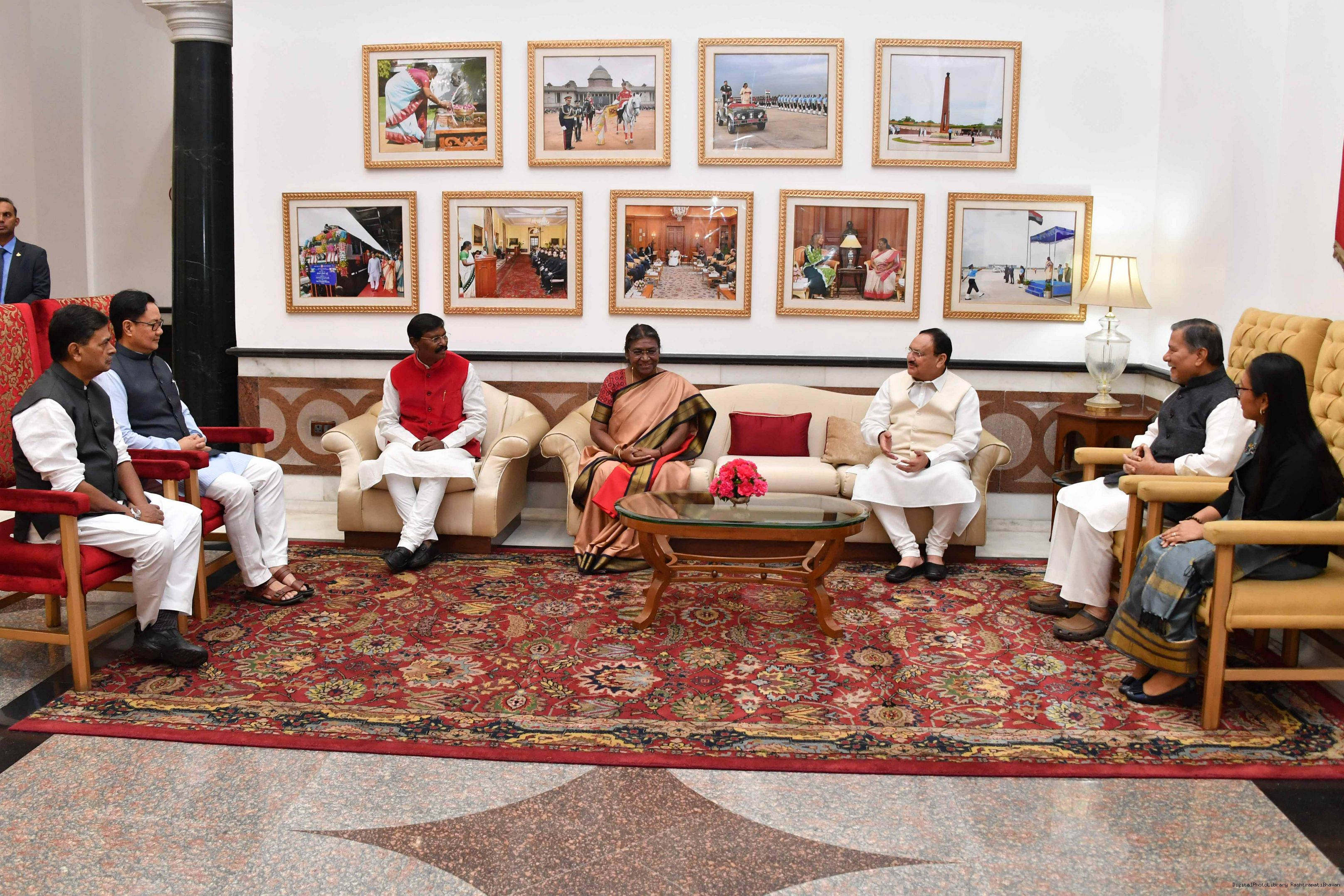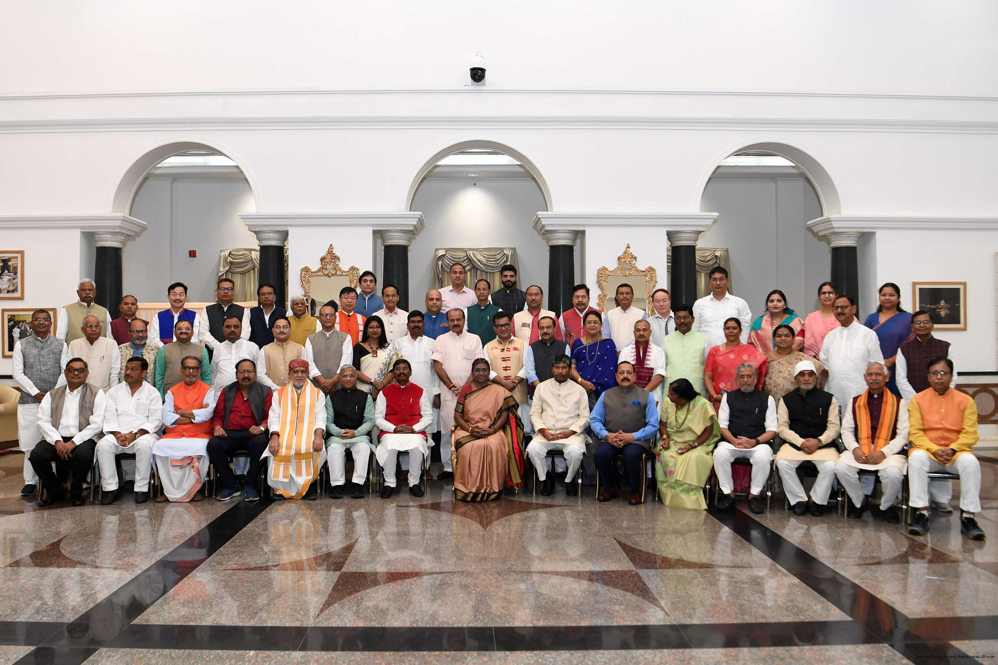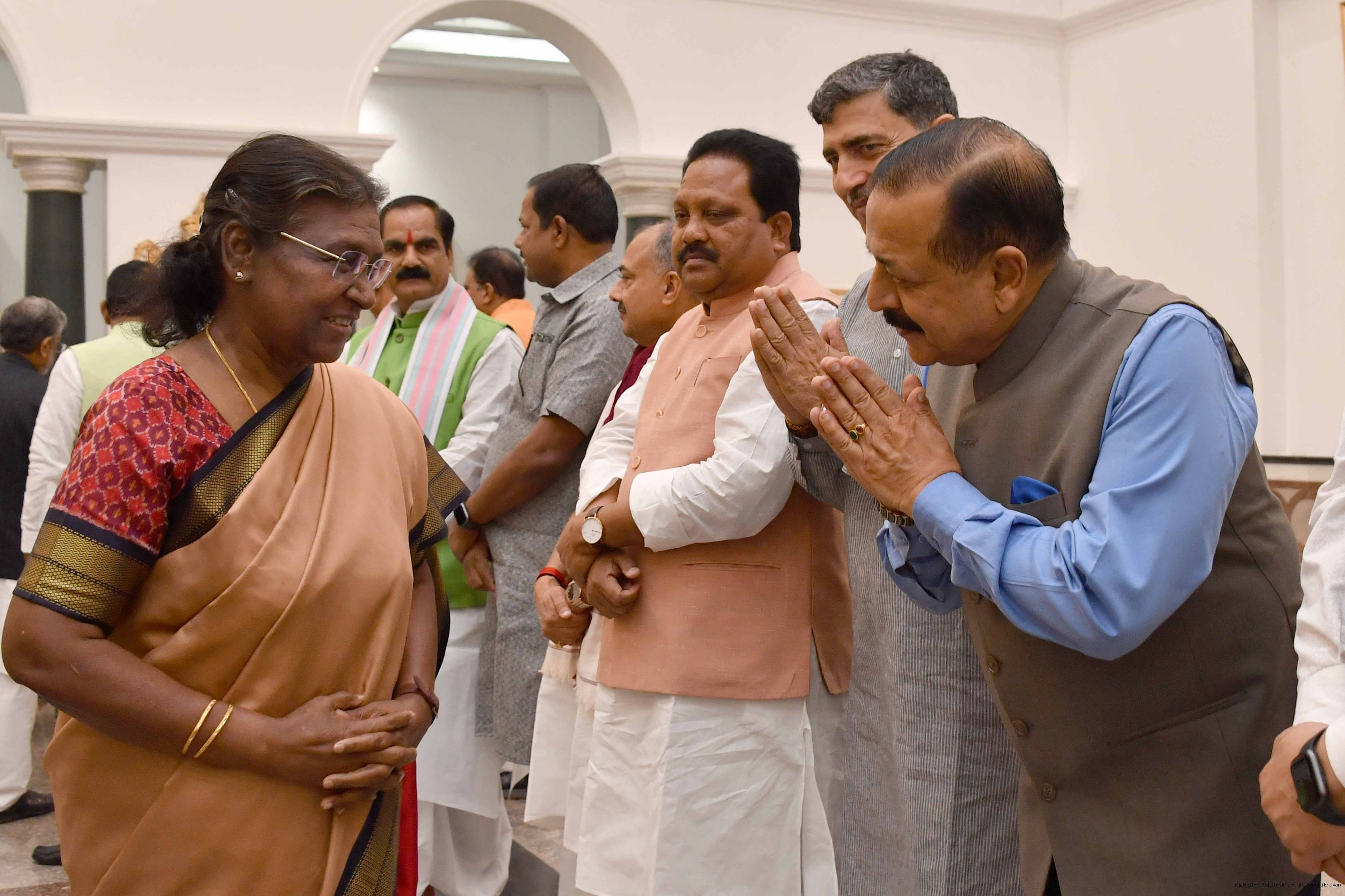 | Caption: | The President of India Smt. Droupadi Murmu breakfast meeting with the Members of Parliament (LS RS) at Rashtrapati Bhavan on April 03, 2023. |